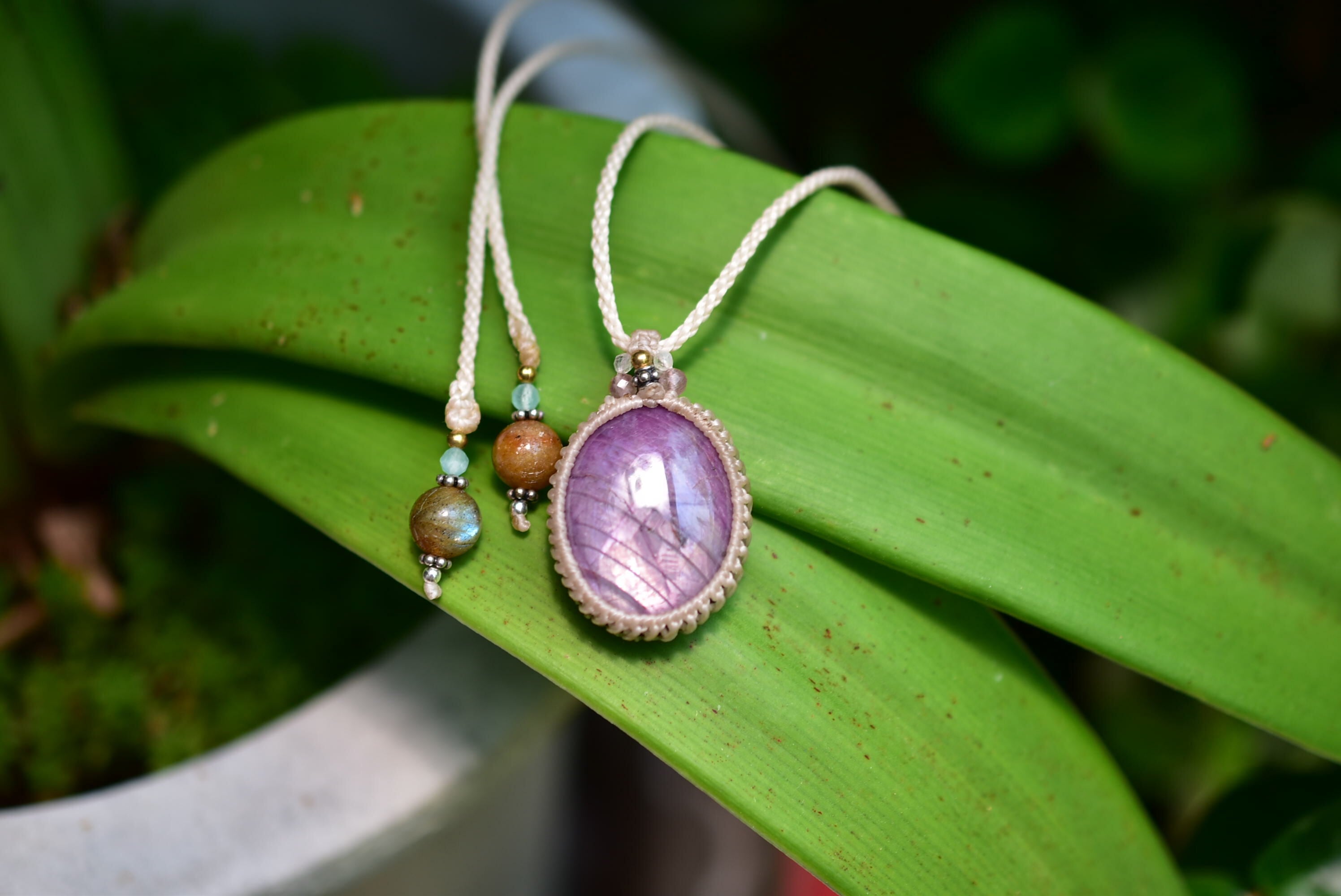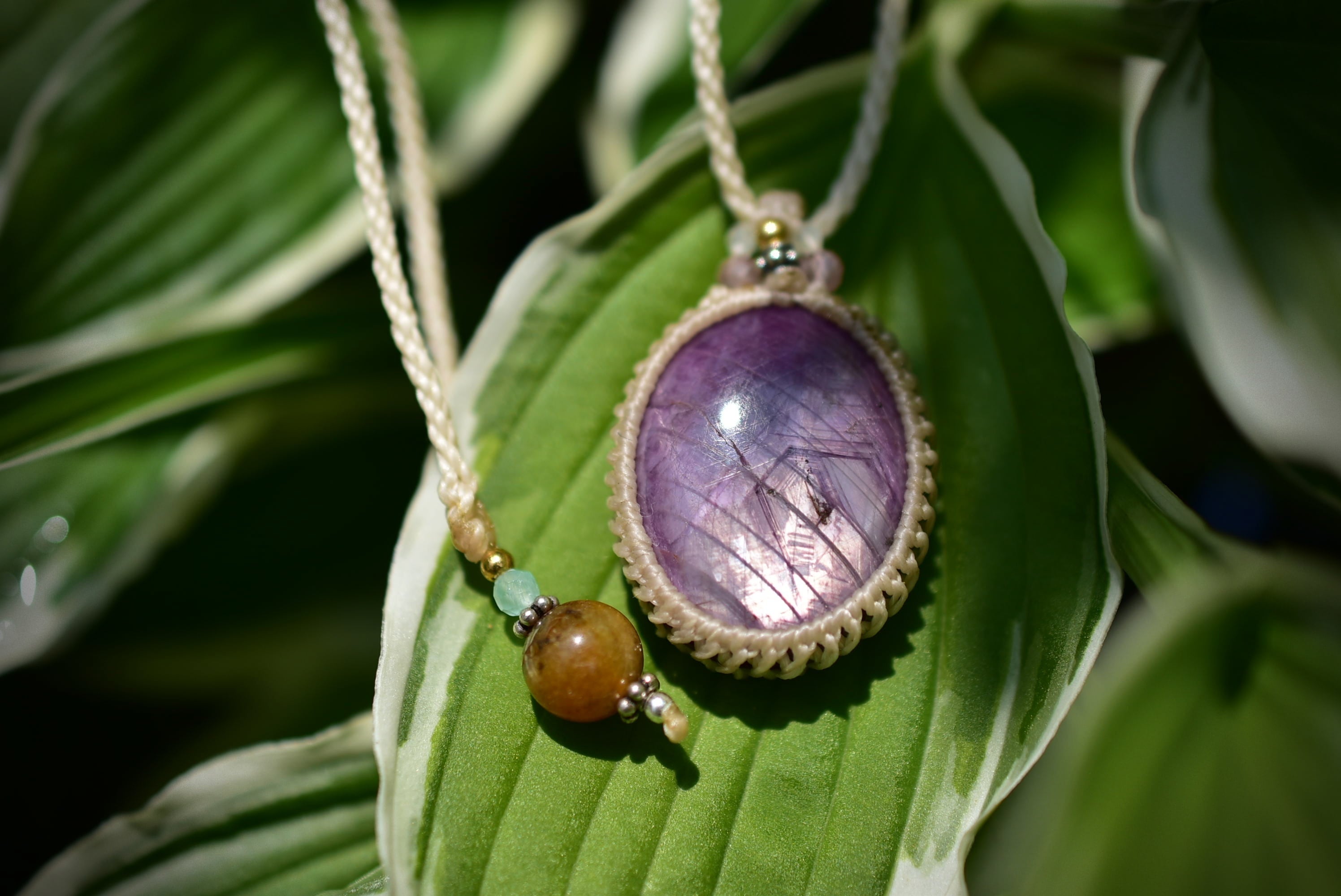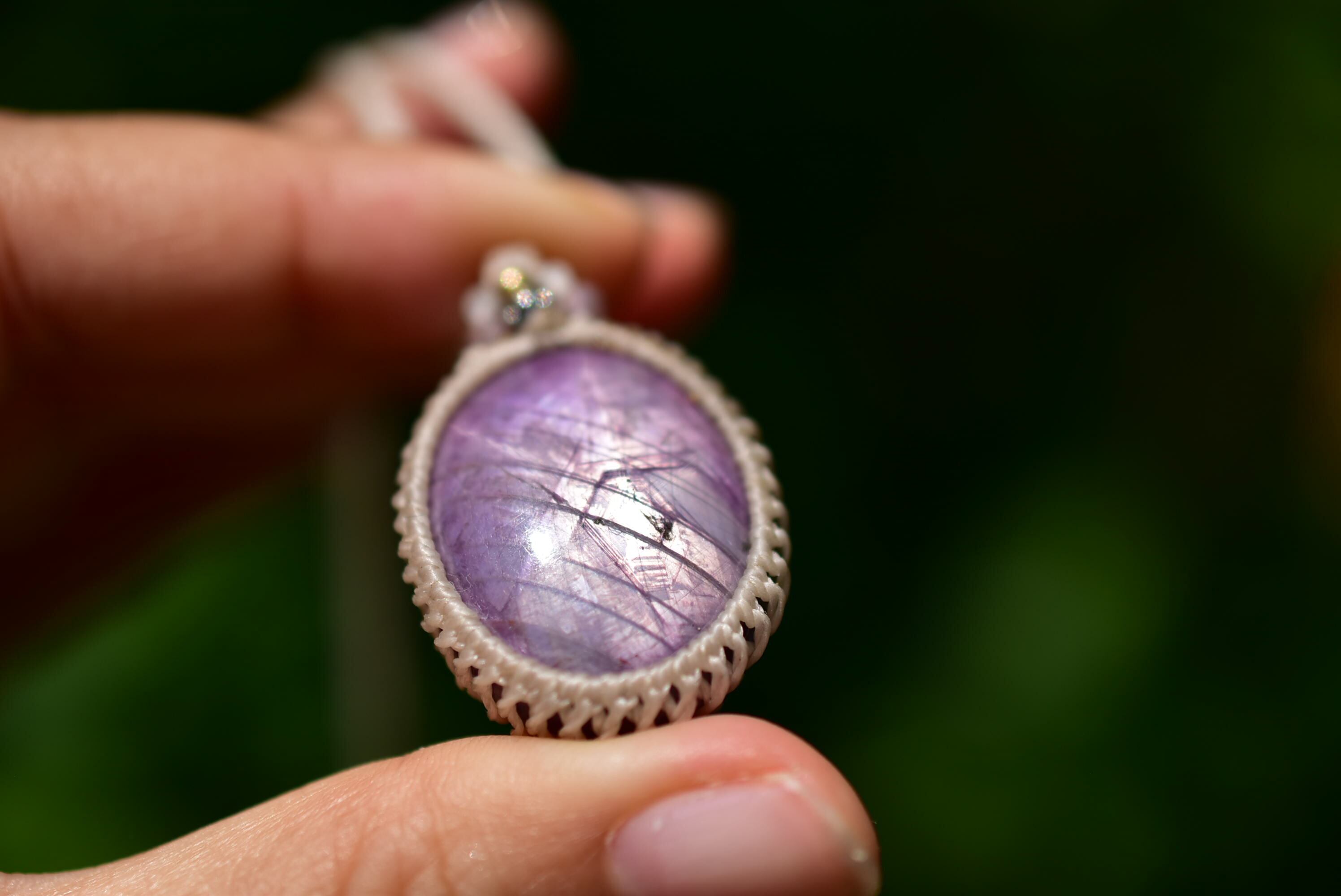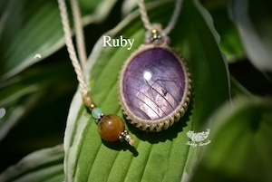 シルクとスター★コランダム入り★ルビー マクラメペンダント432