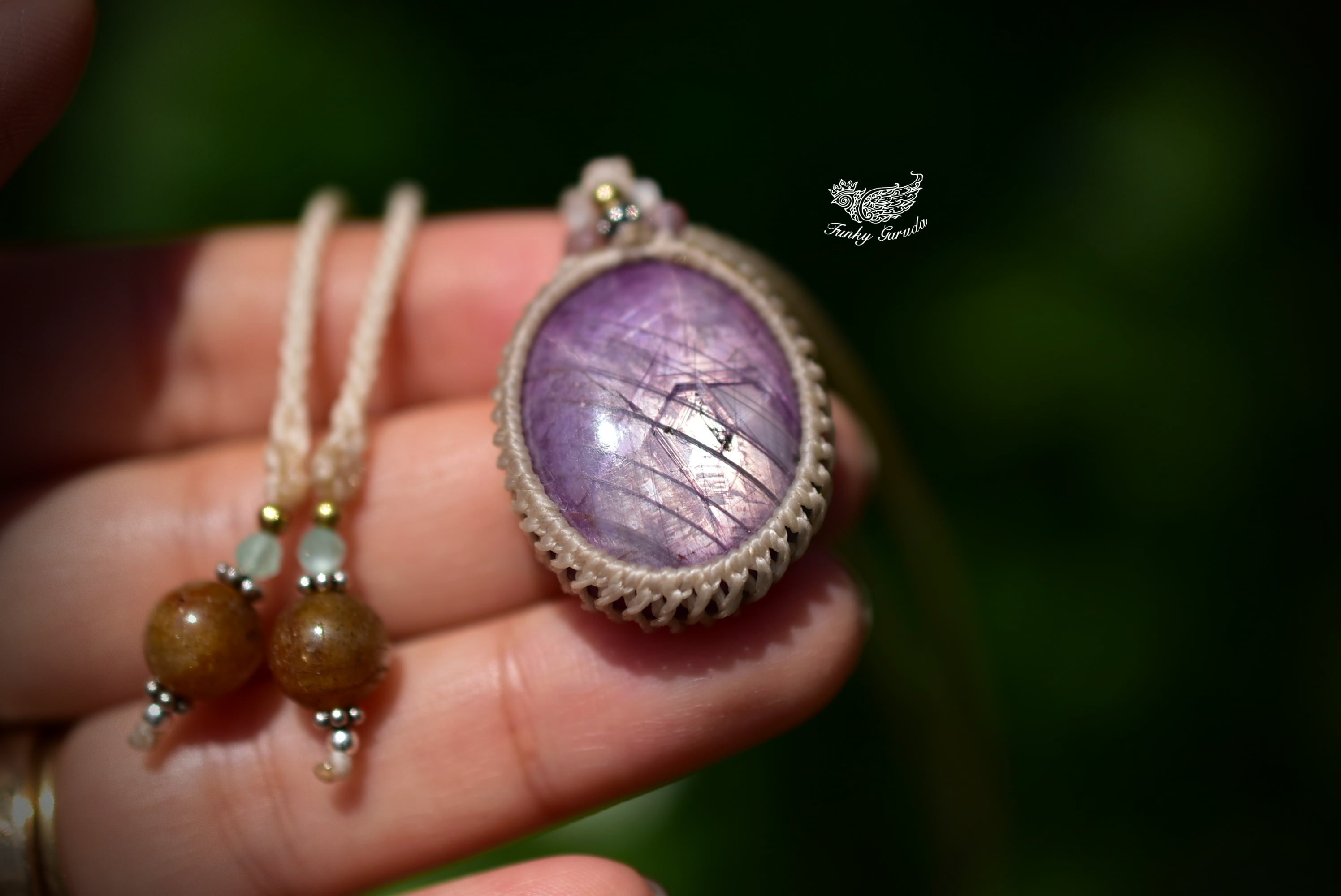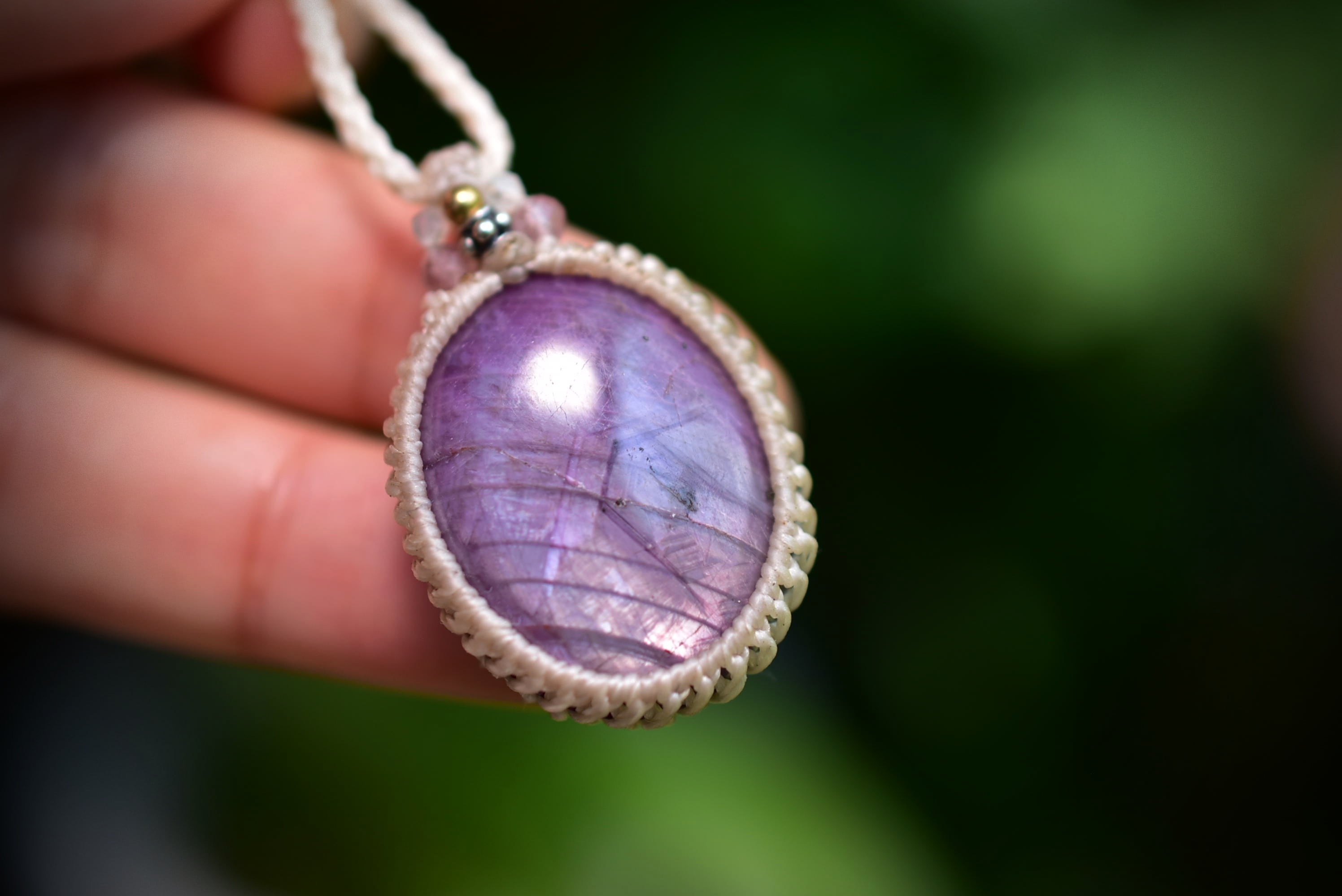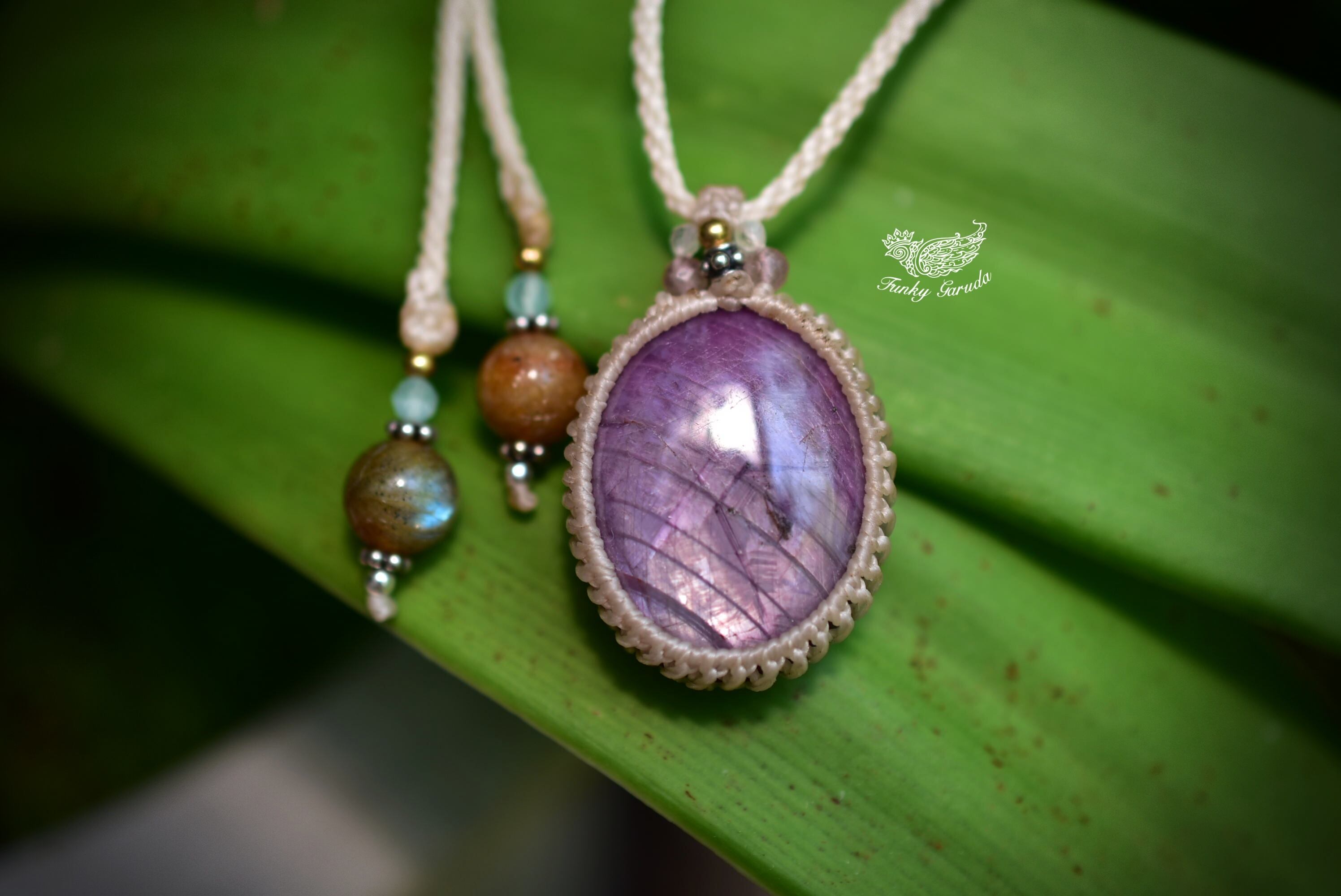 シルクとスター★コランダム入り★ルビー マクラメペンダント432