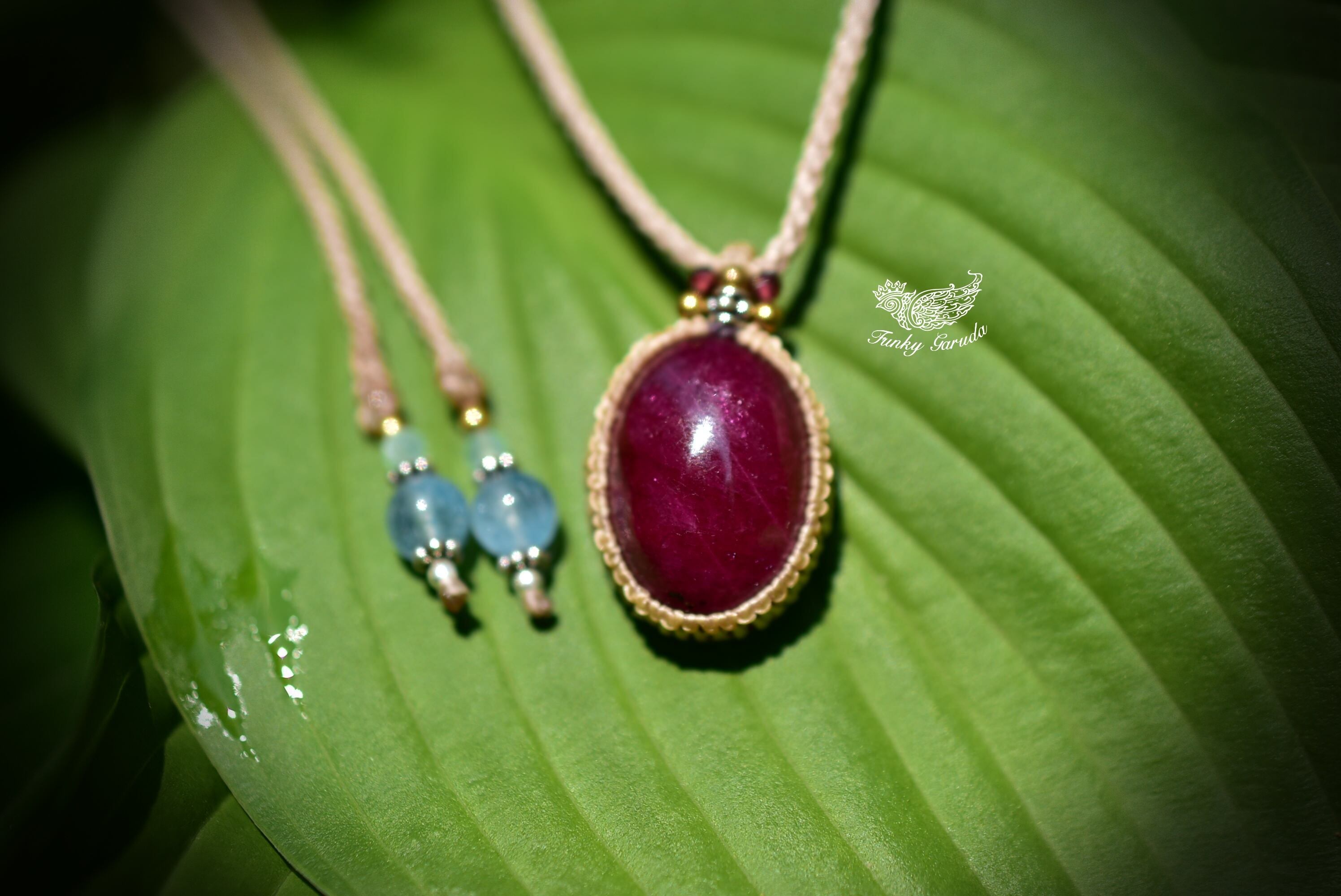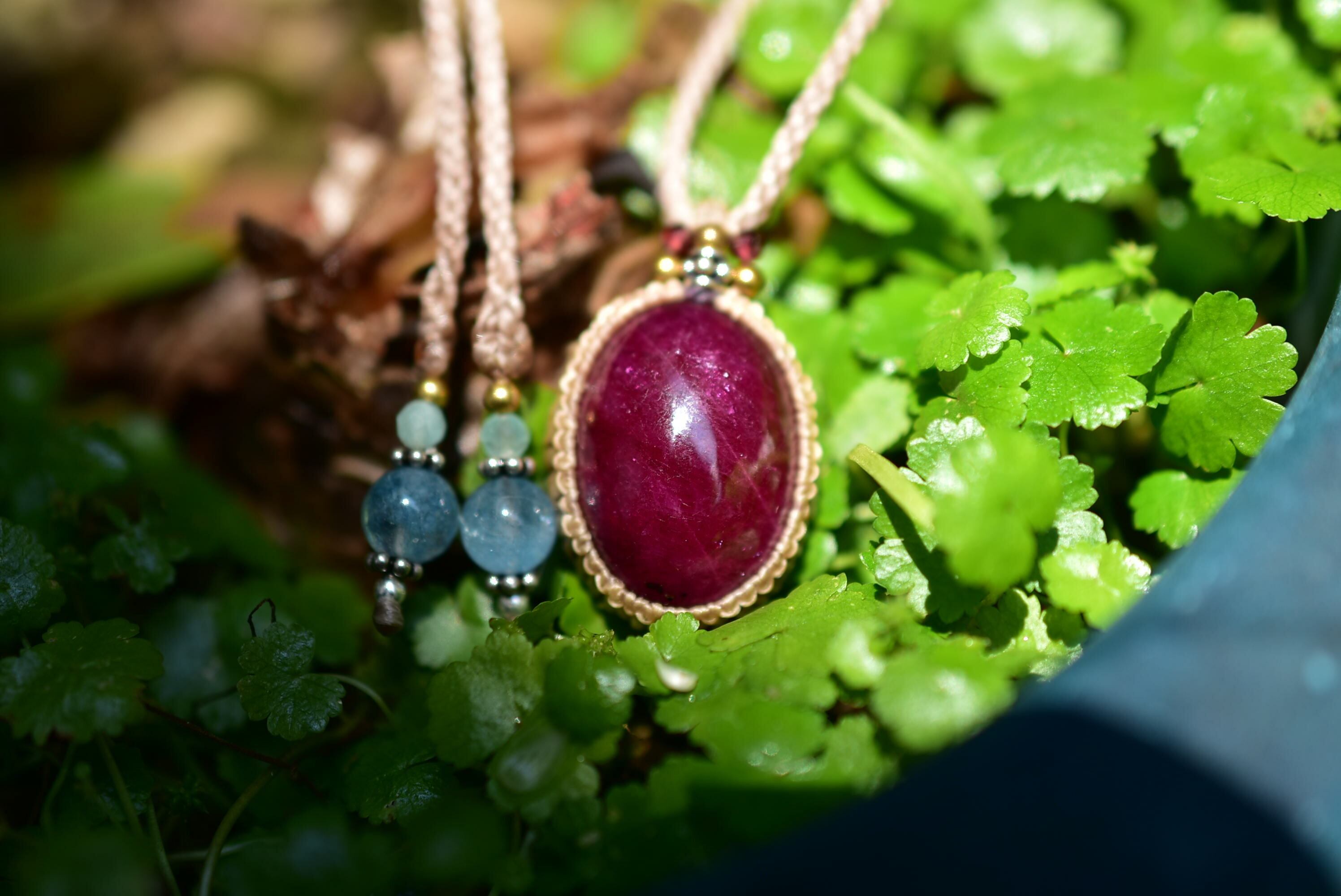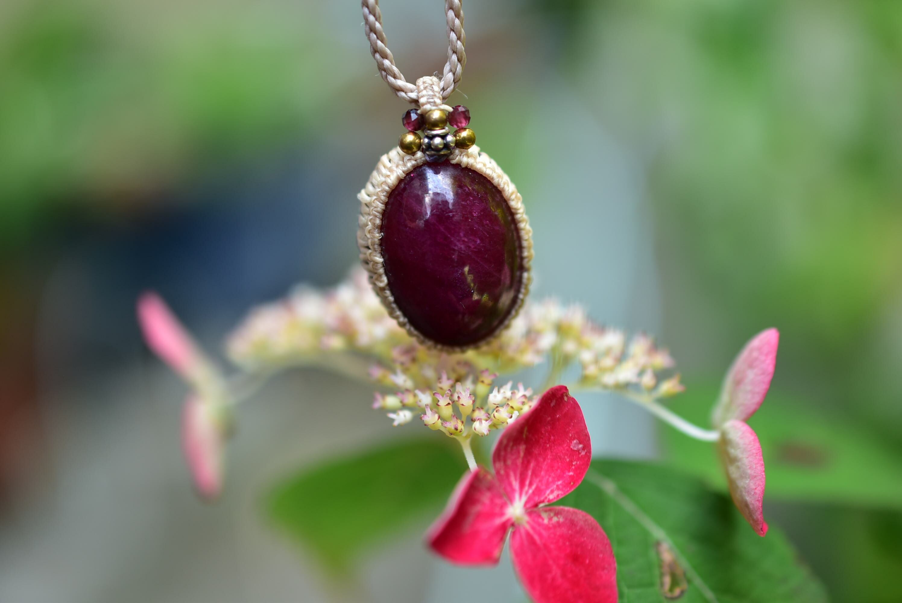 キラッとシラー★ディープ★ルビー マクラメペンダント433
