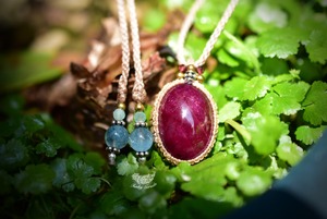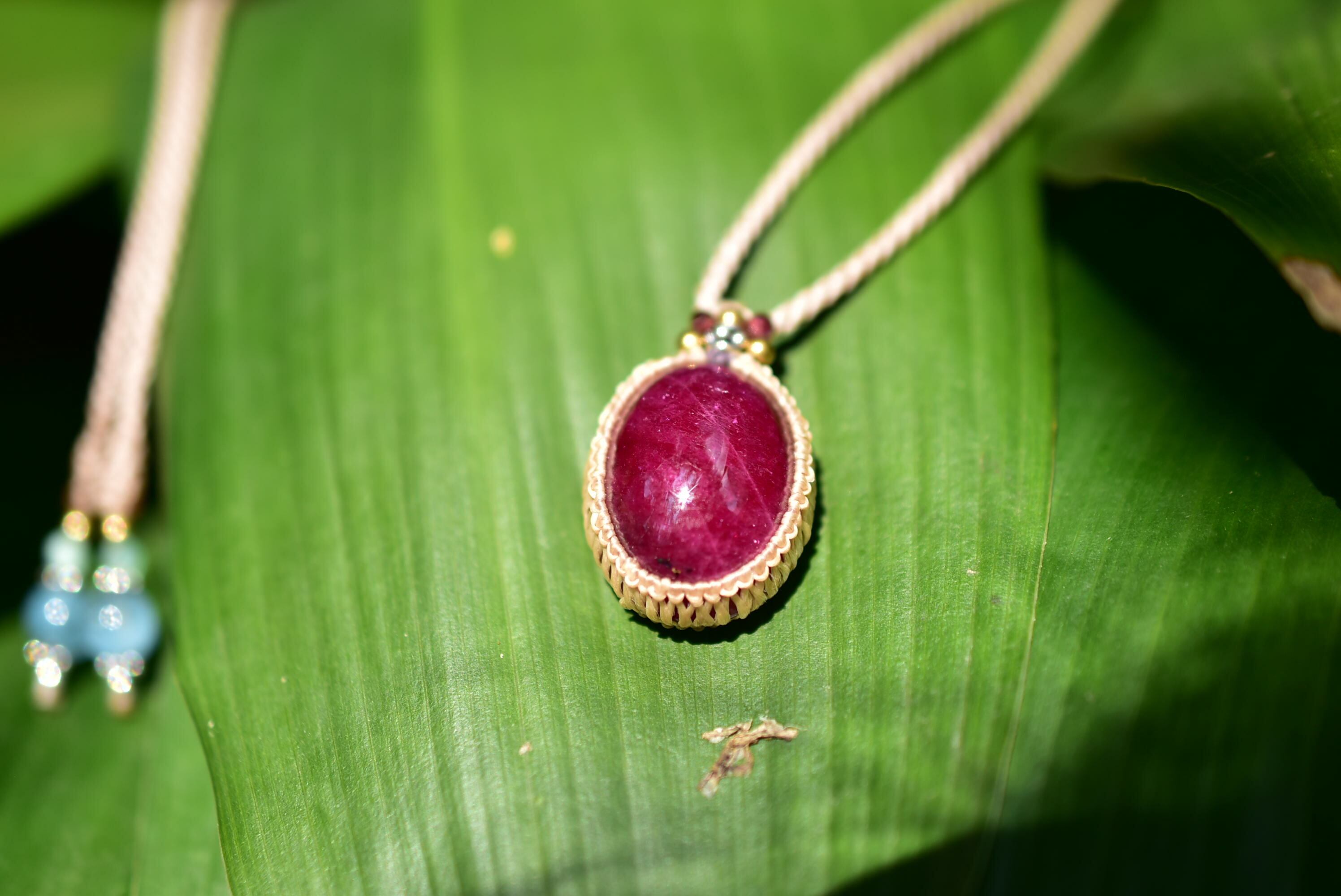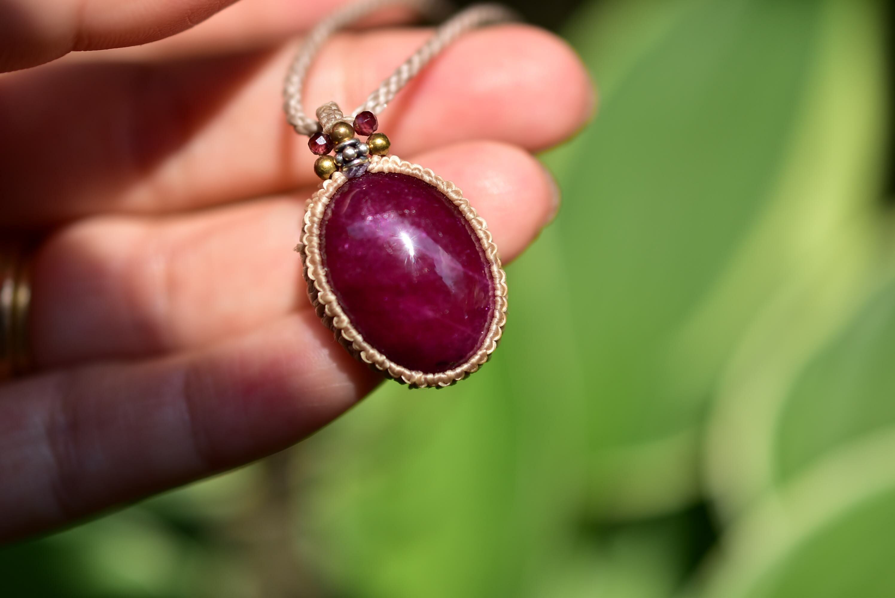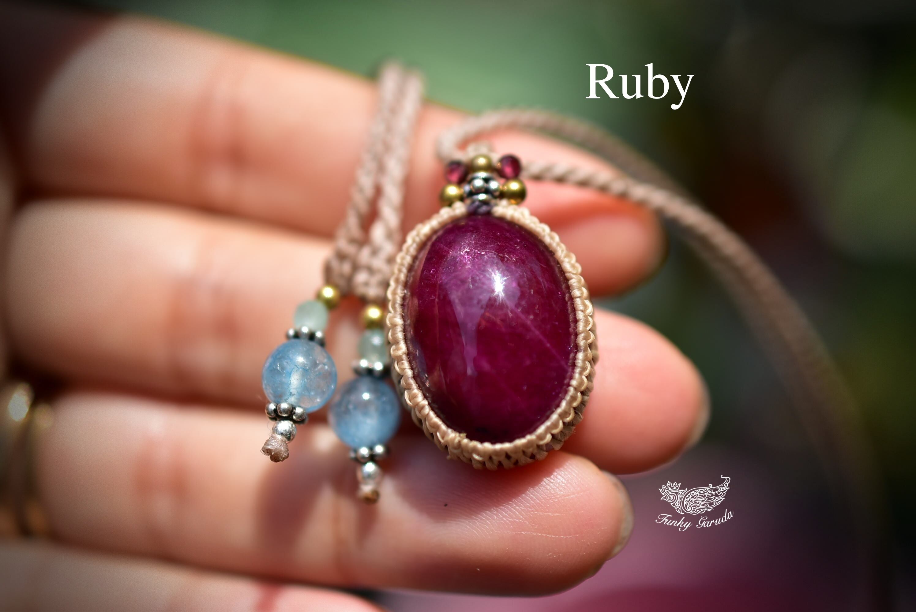 キラッとシラー★ディープ★ルビー マクラメペンダント433