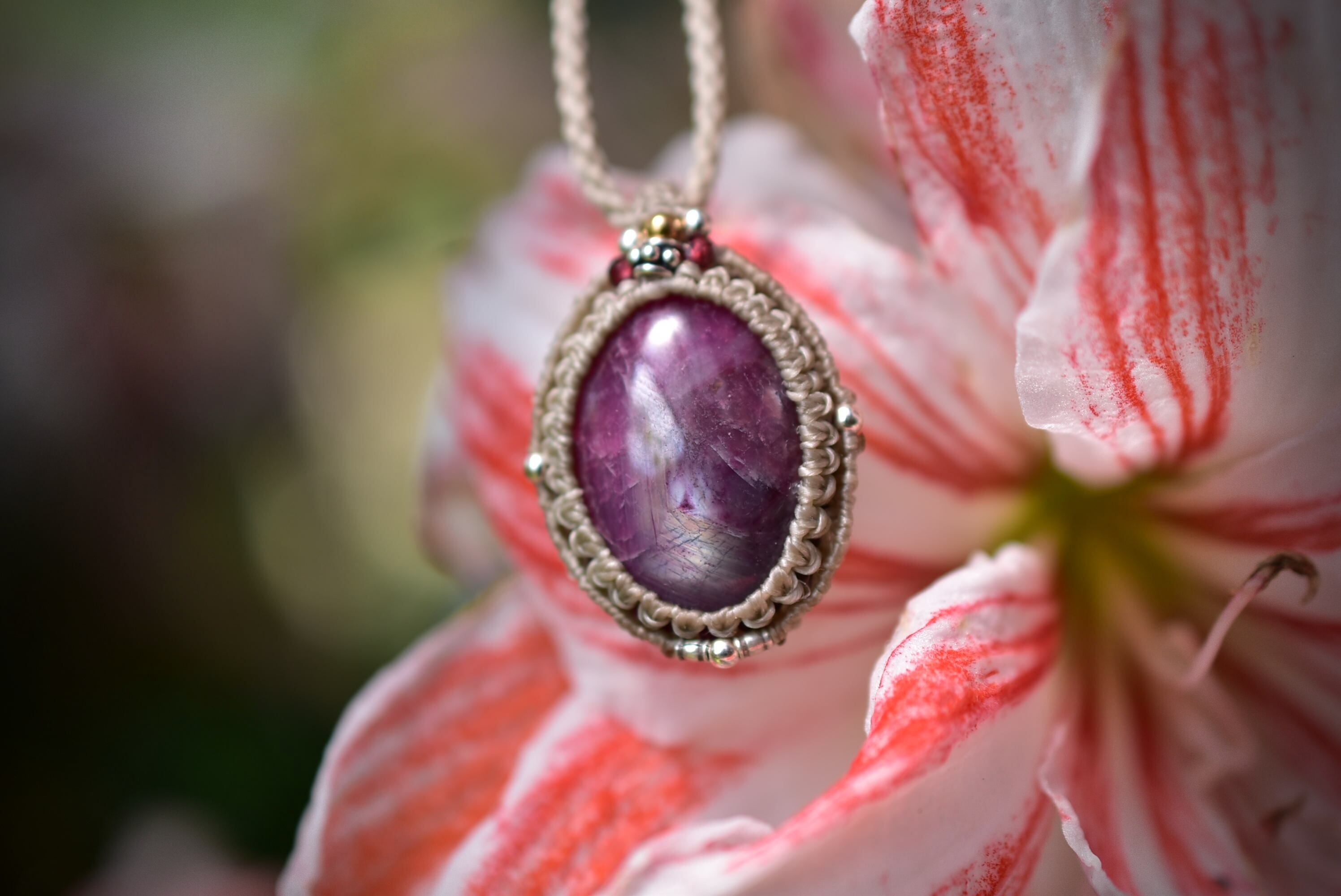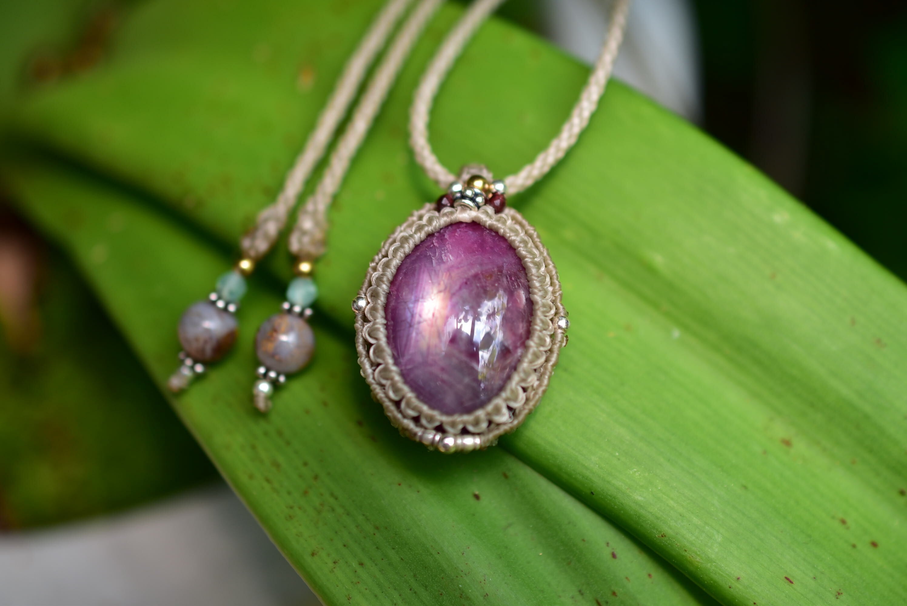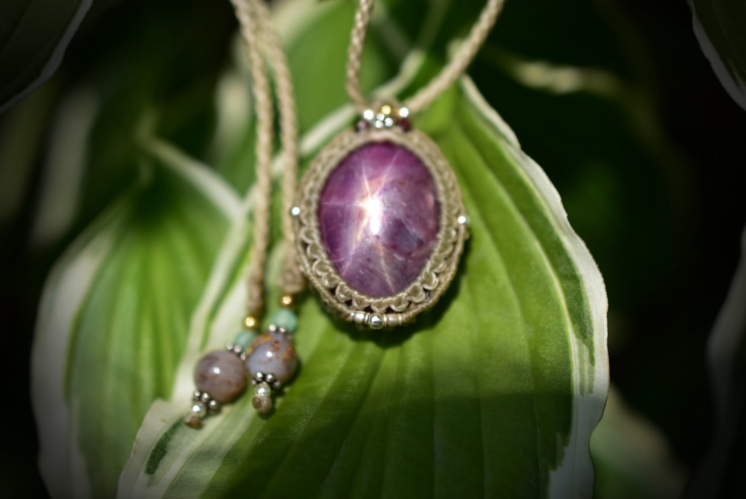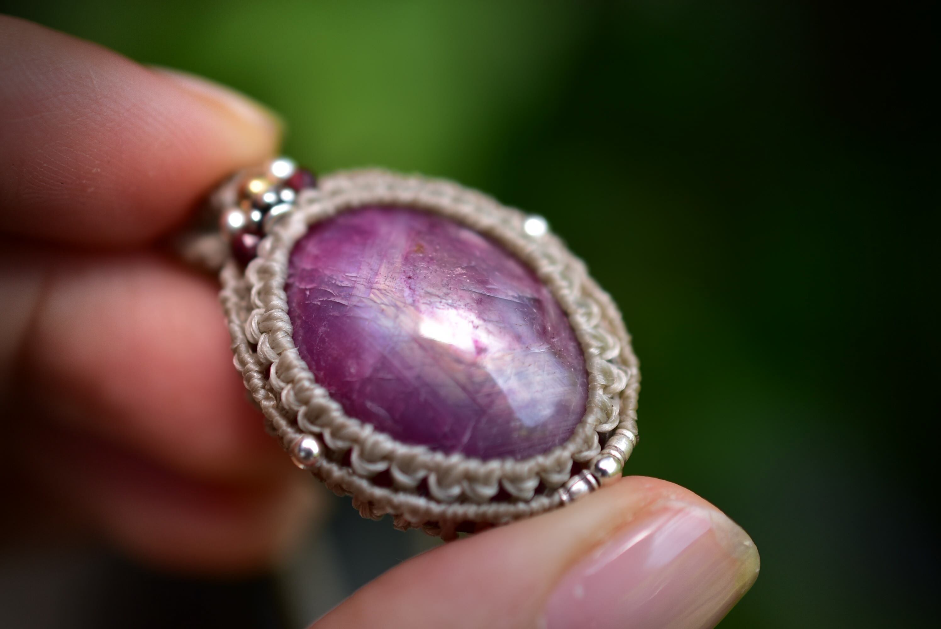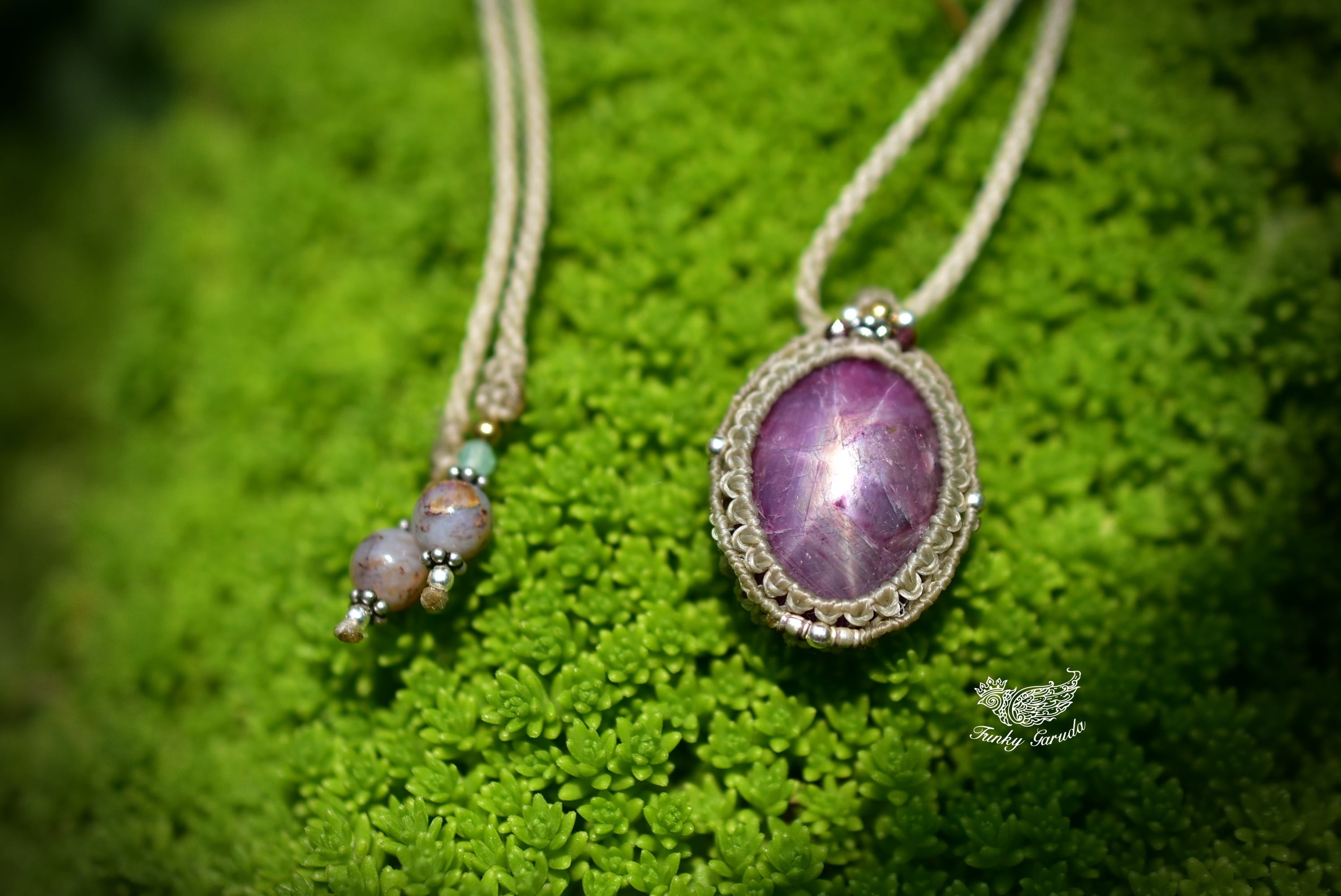豪華なピンク★中粒★スタールビー マクラメペンダント435