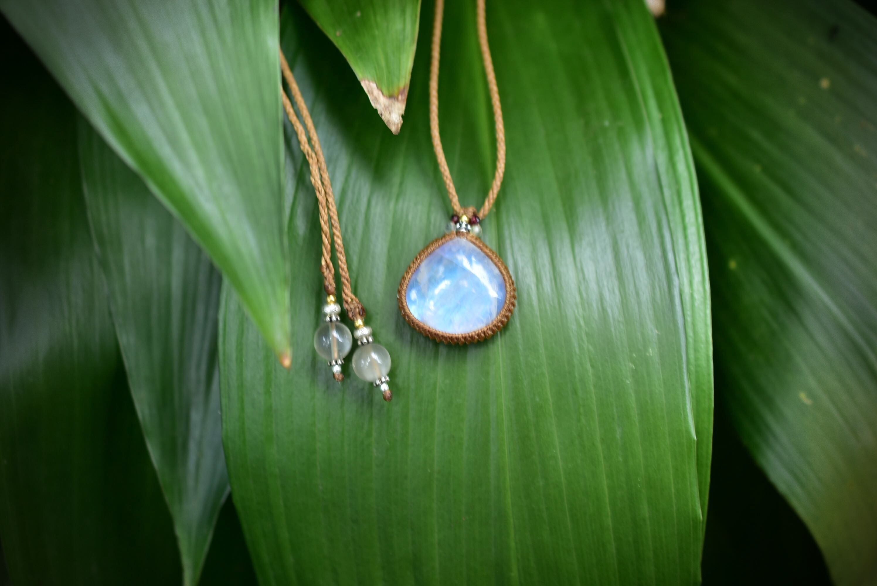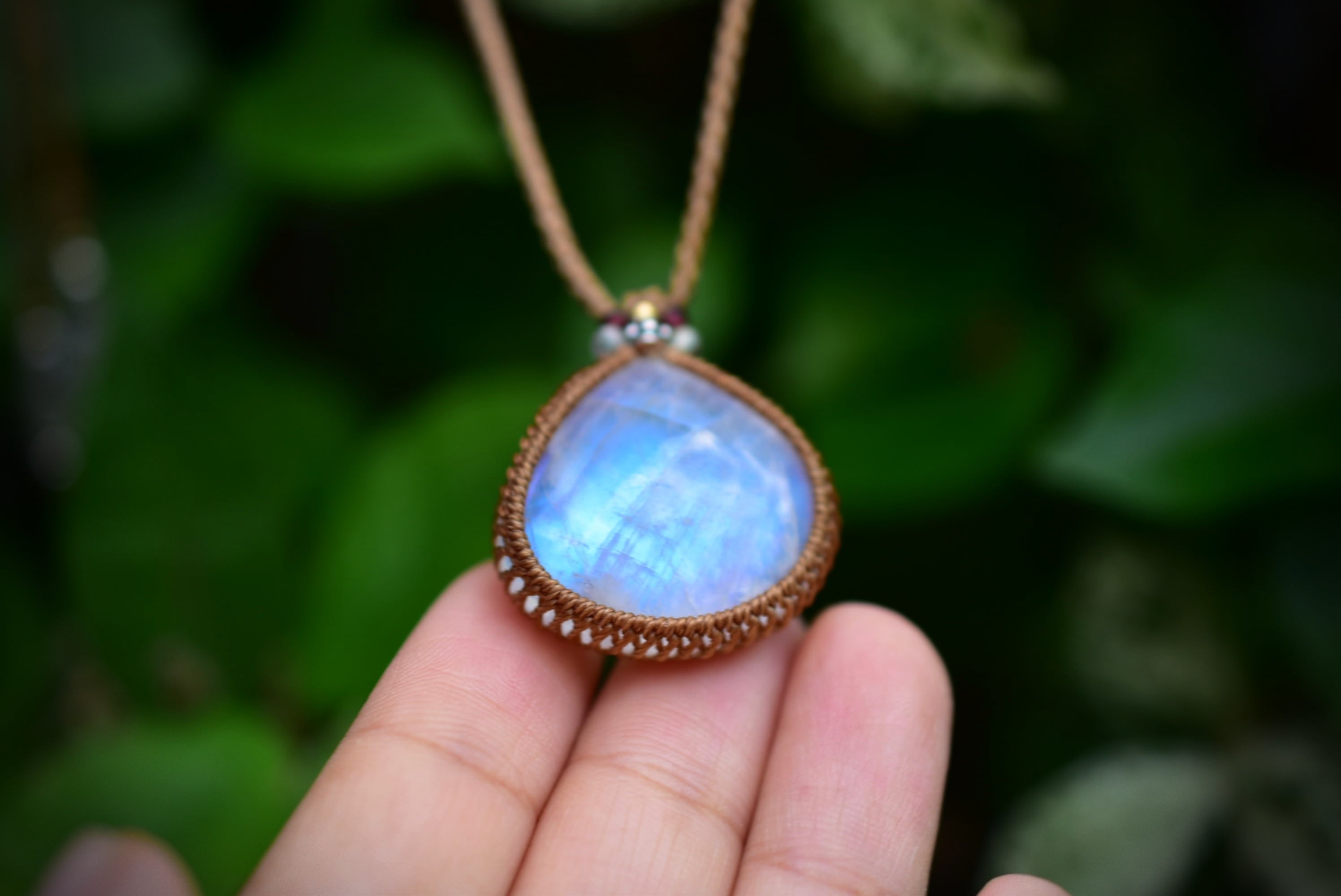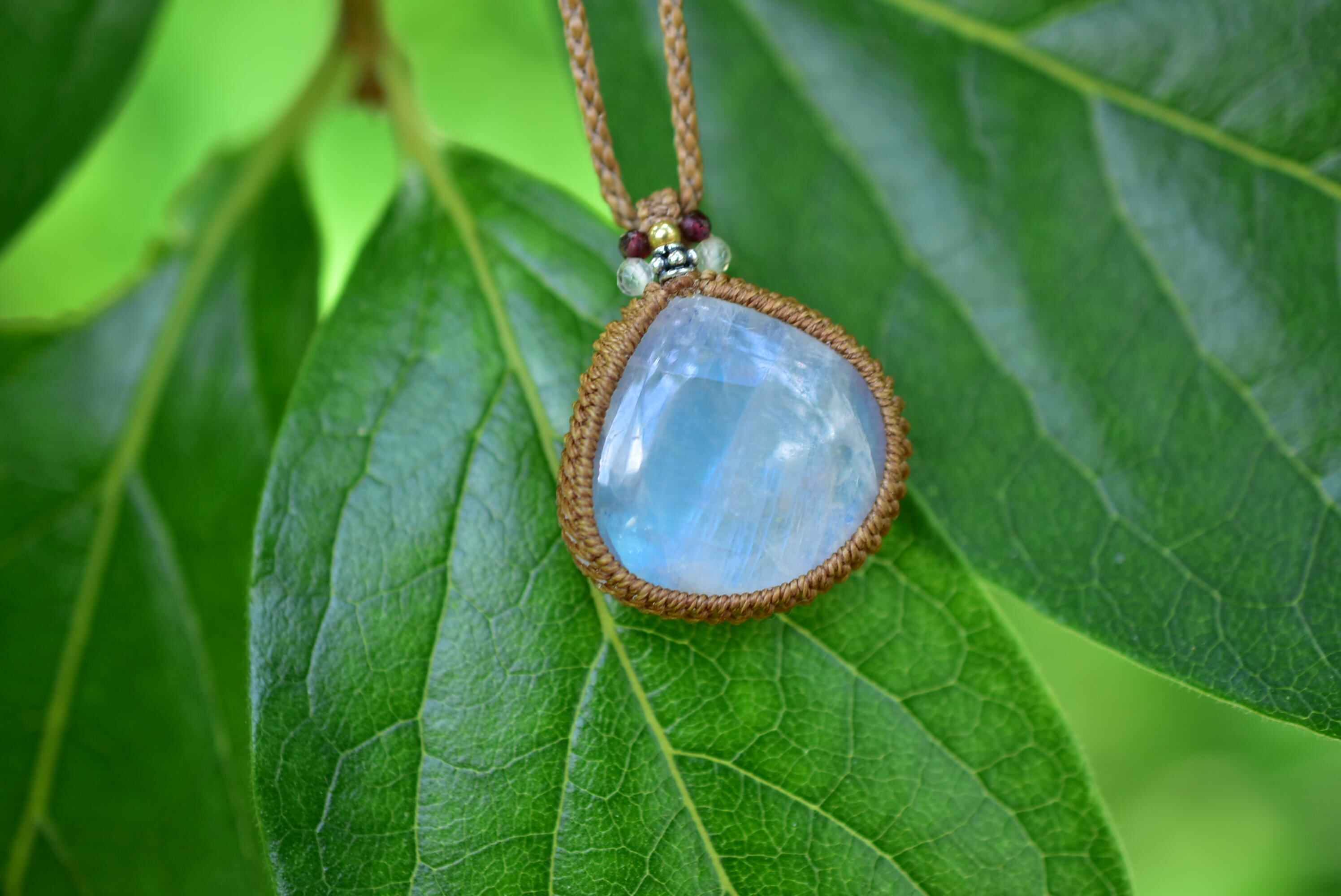 ブルーシラー★レインボームーンストーン マクラメペンダント447