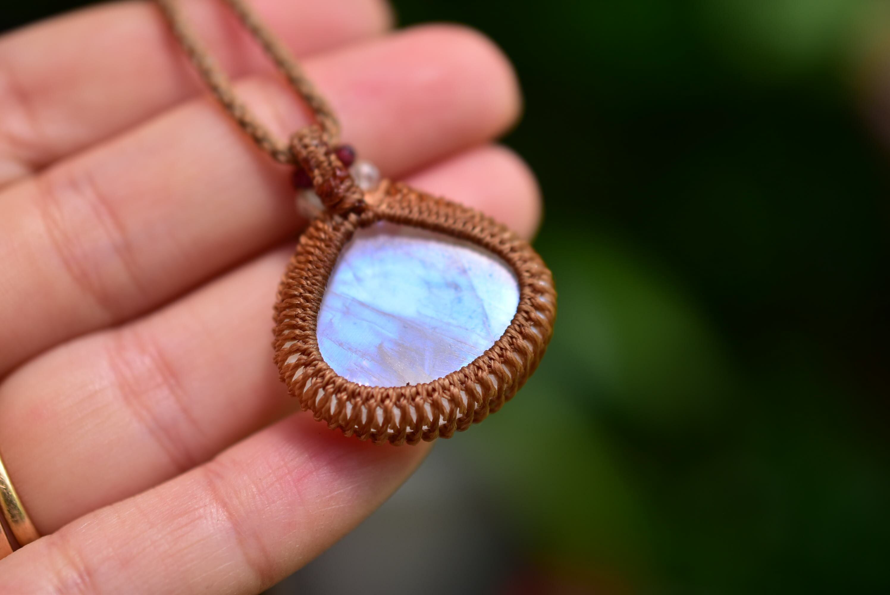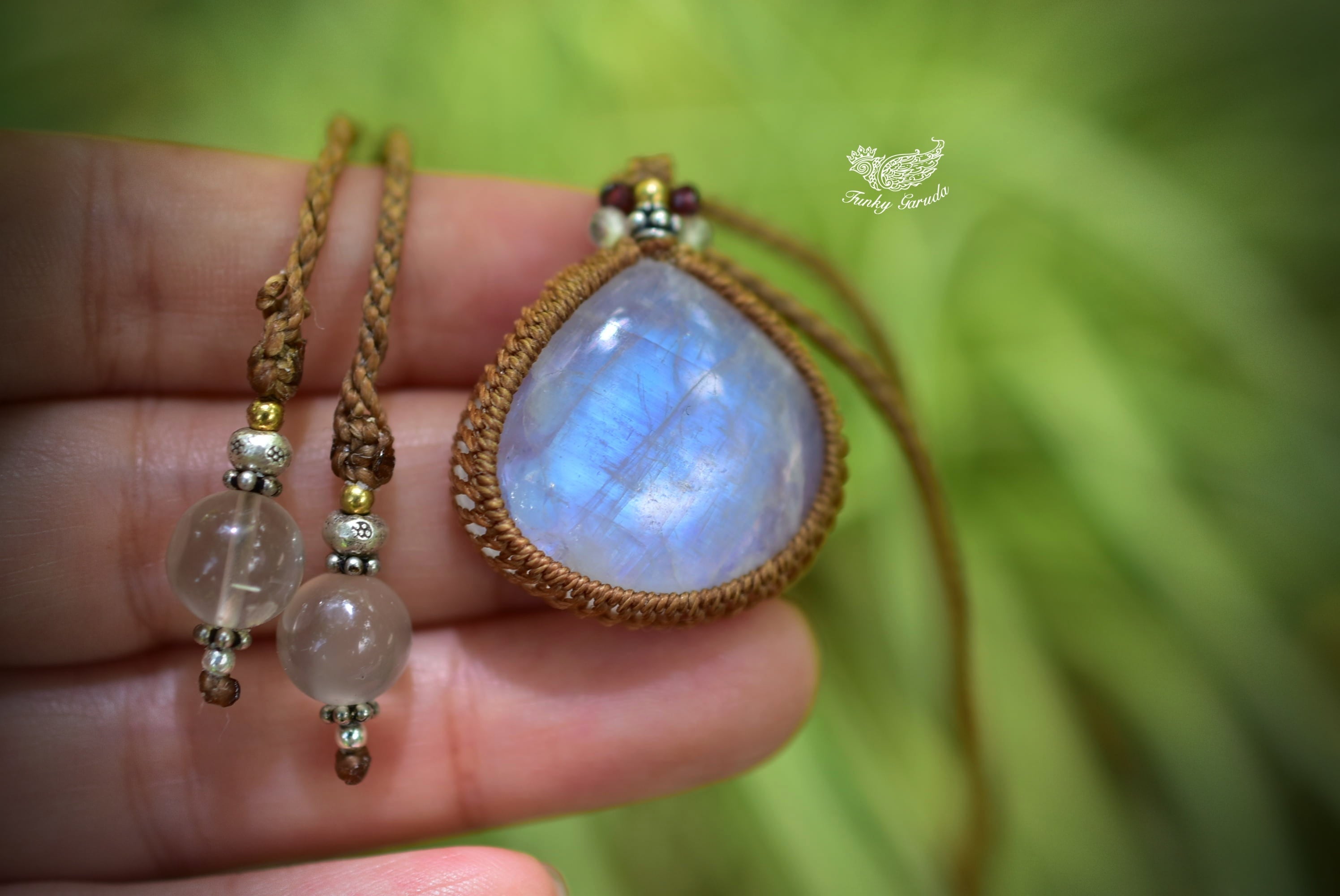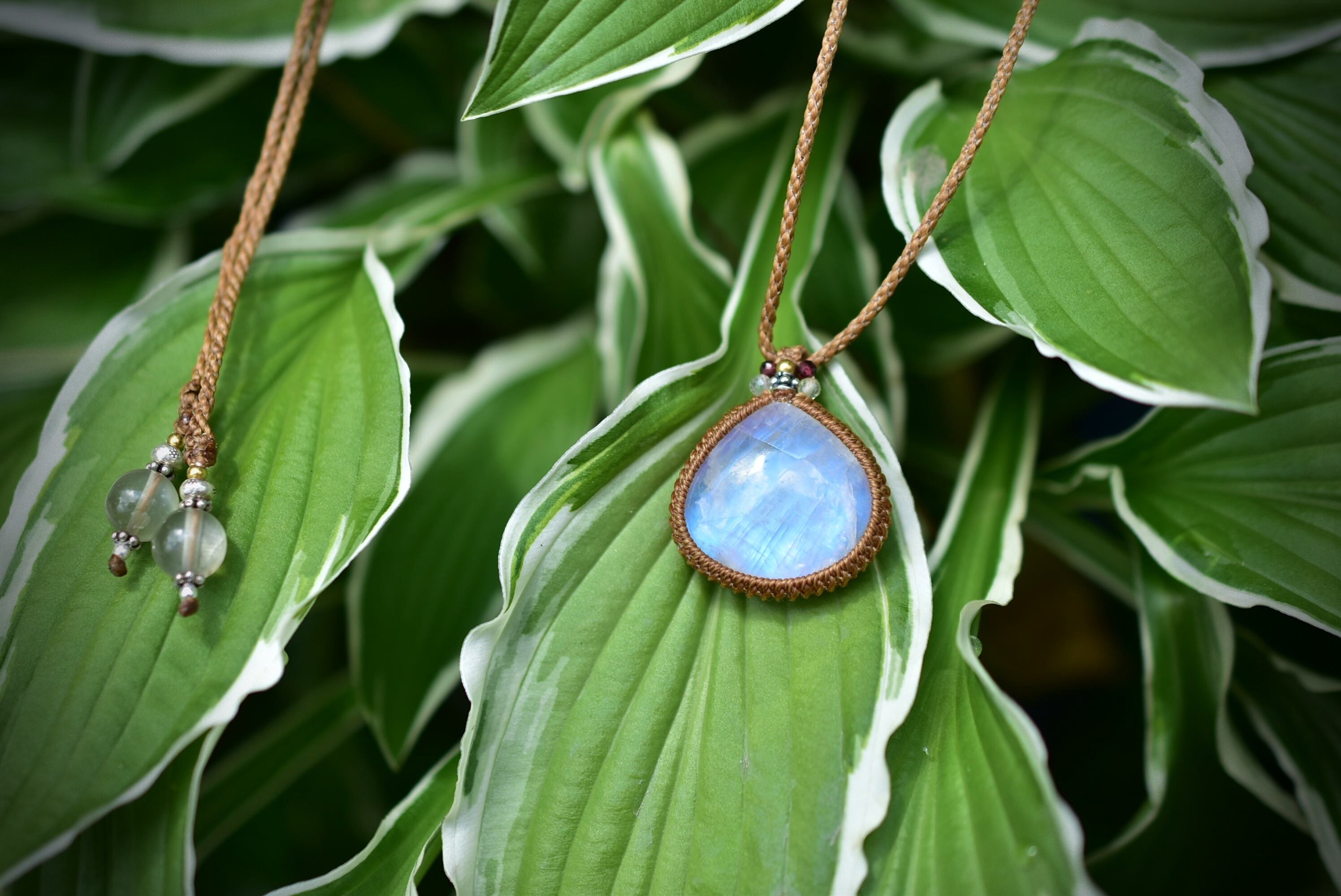 ブルーシラー★レインボームーンストーン マクラメペンダント447