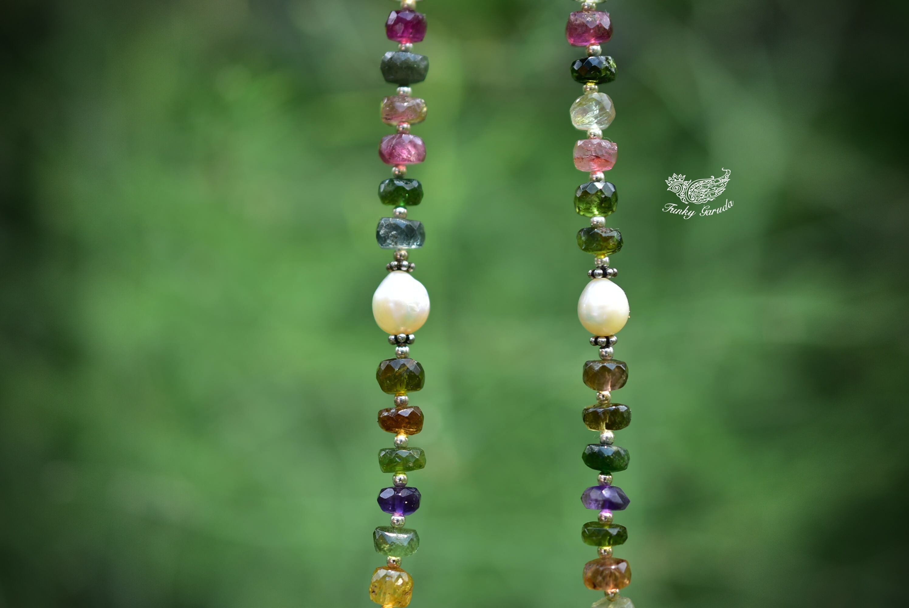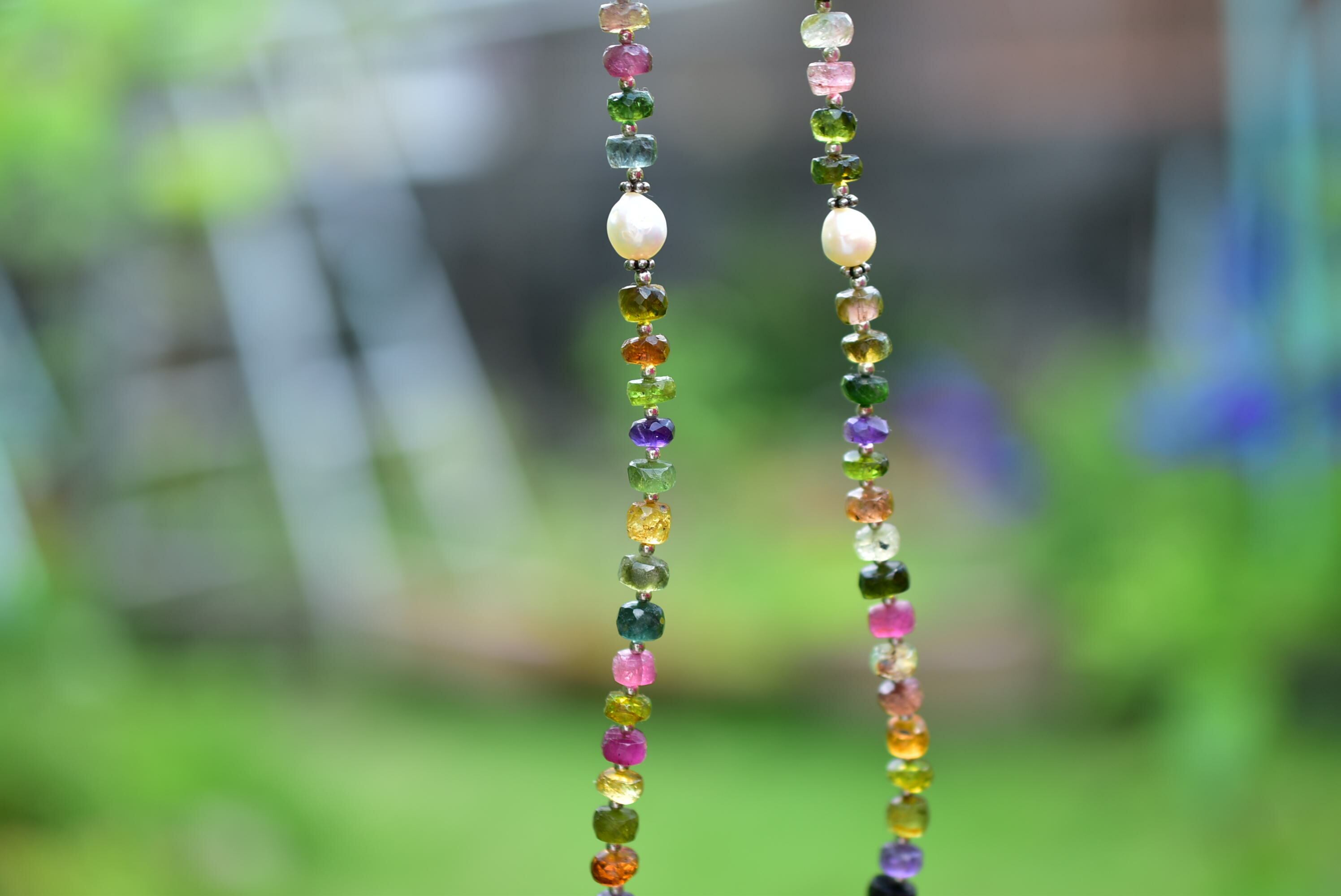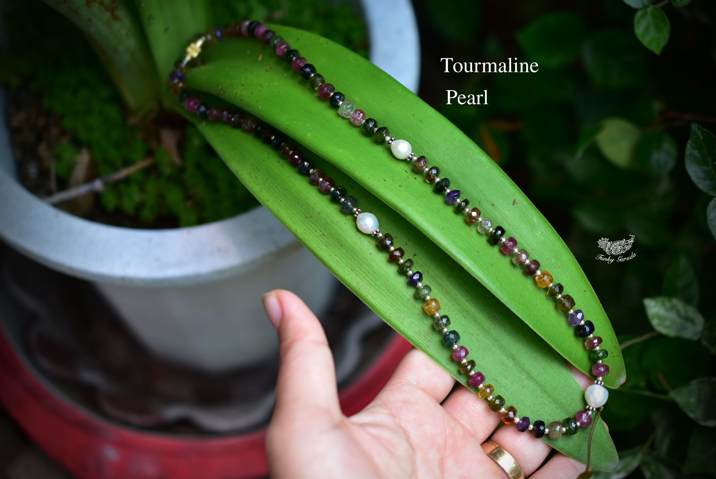 ひと粒ひと粒パールとトルマリンビーズを見立てて