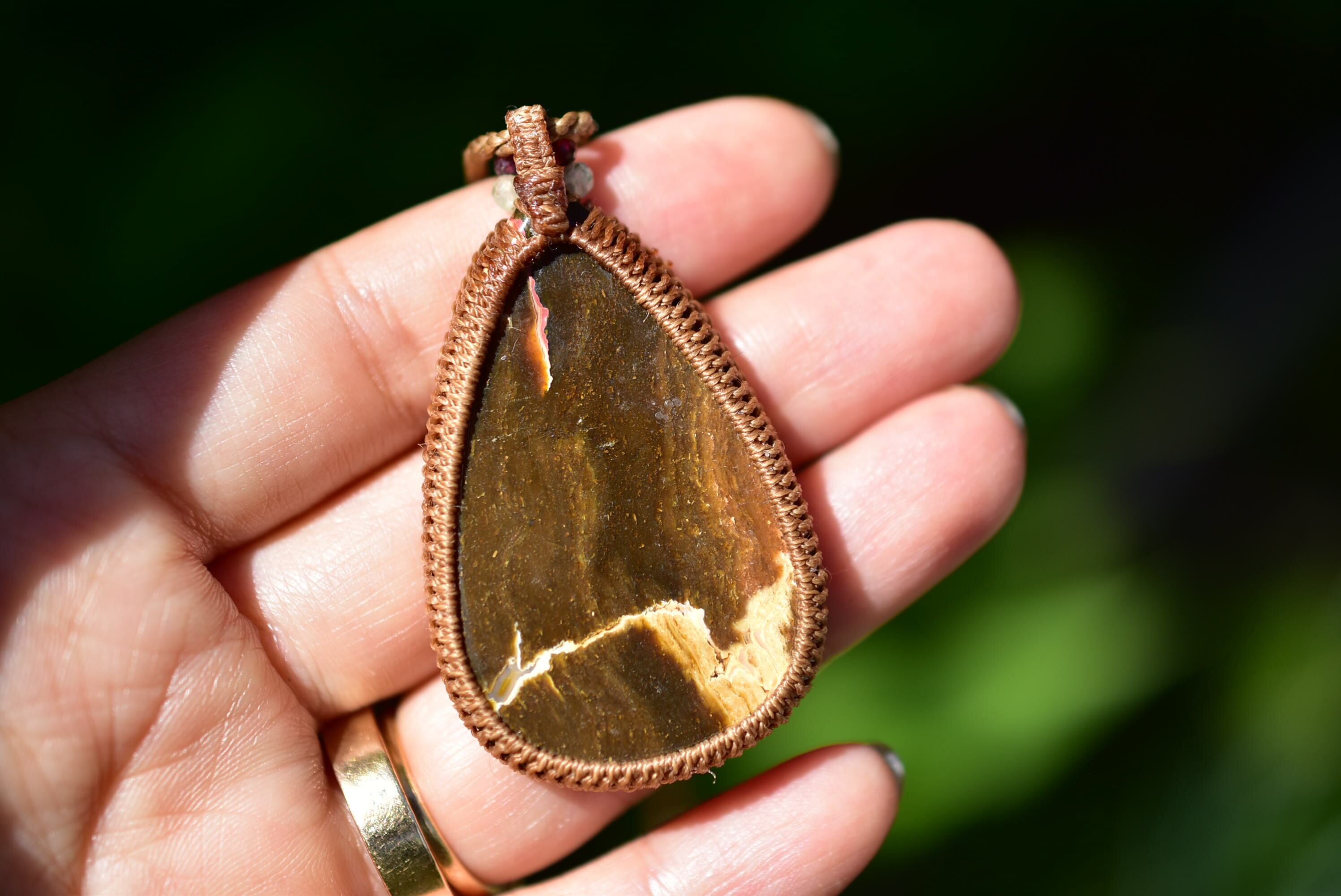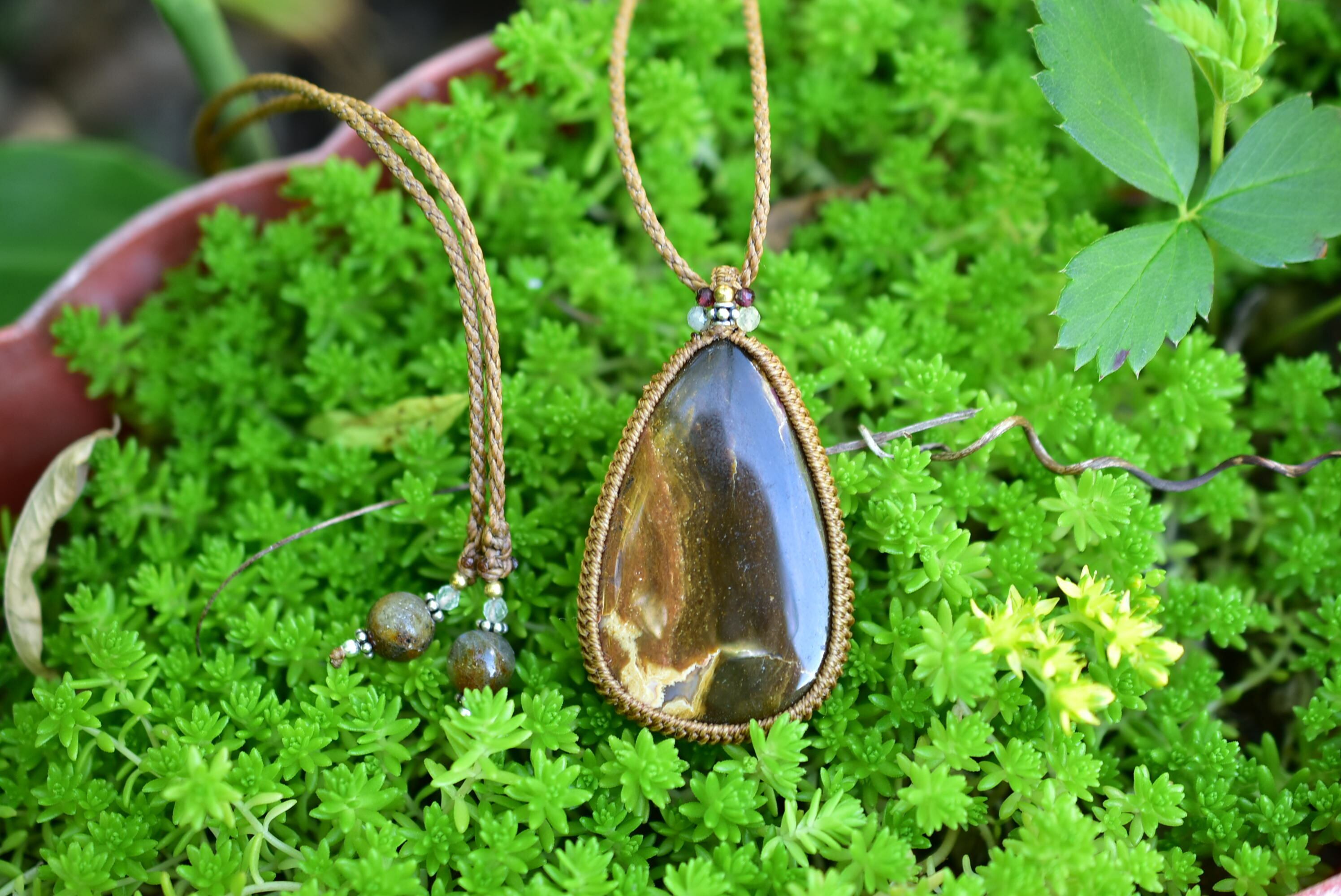 深い地層★ブラウンジャスパー シンプルマクラメペンダント453
