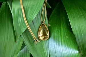 ◆このたびはゴールドブラウン色の蝋引き糸を使用しマクラメ編み装飾を施しました。