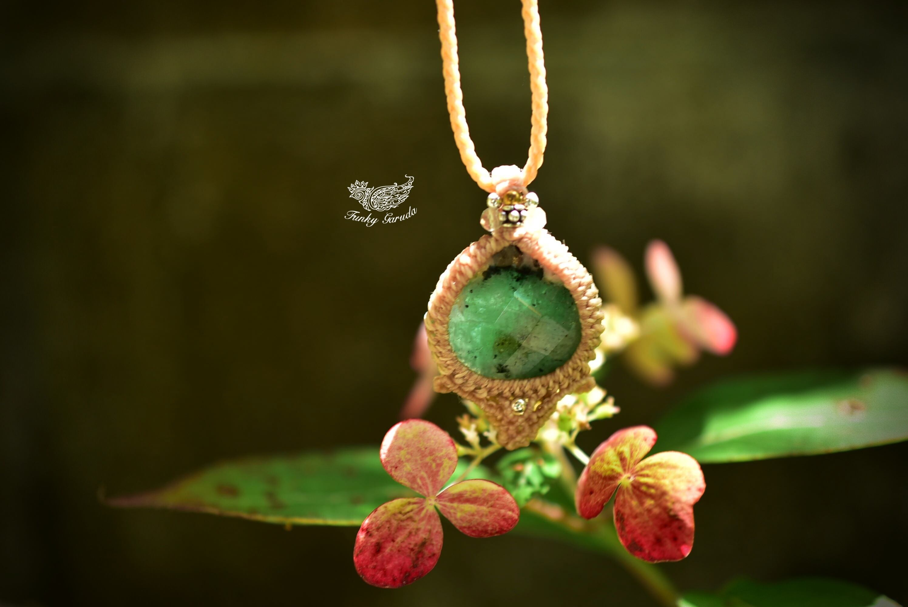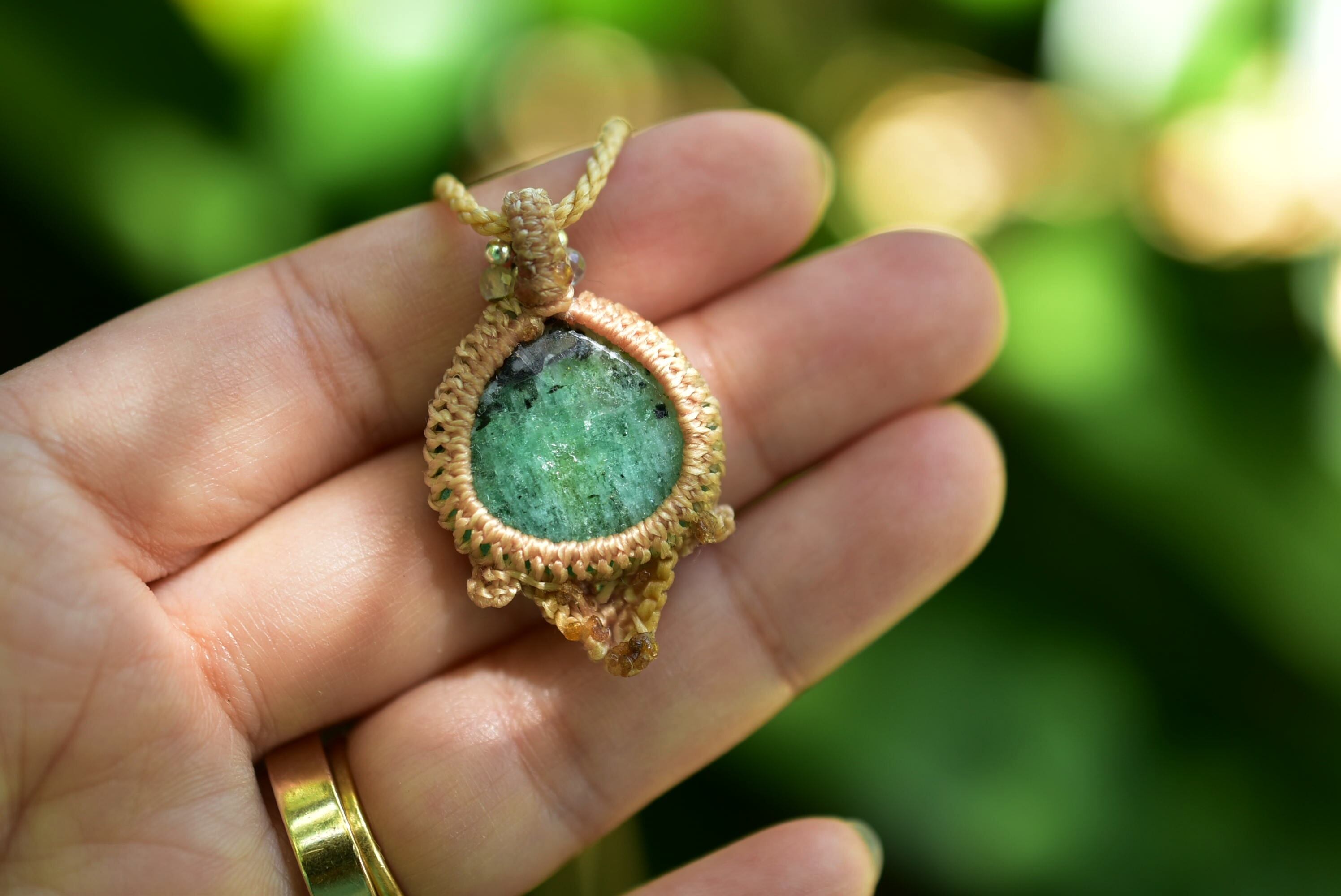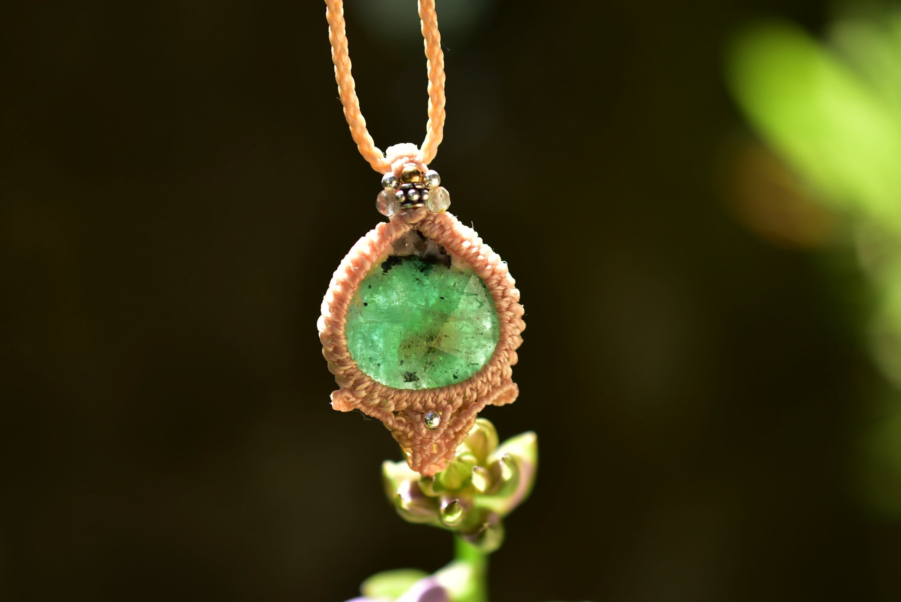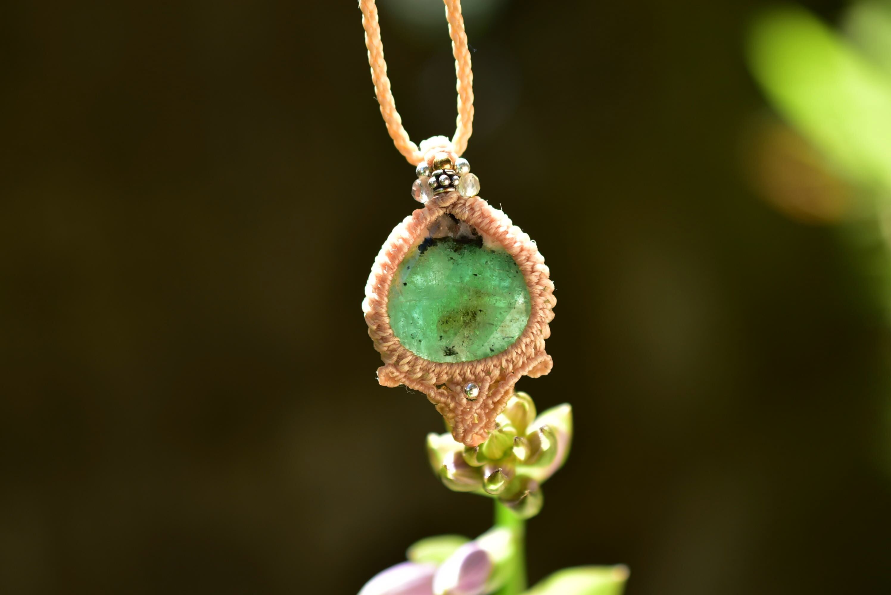 ときめくエメラルド★20ct★エメラルド マクラメペンダント460