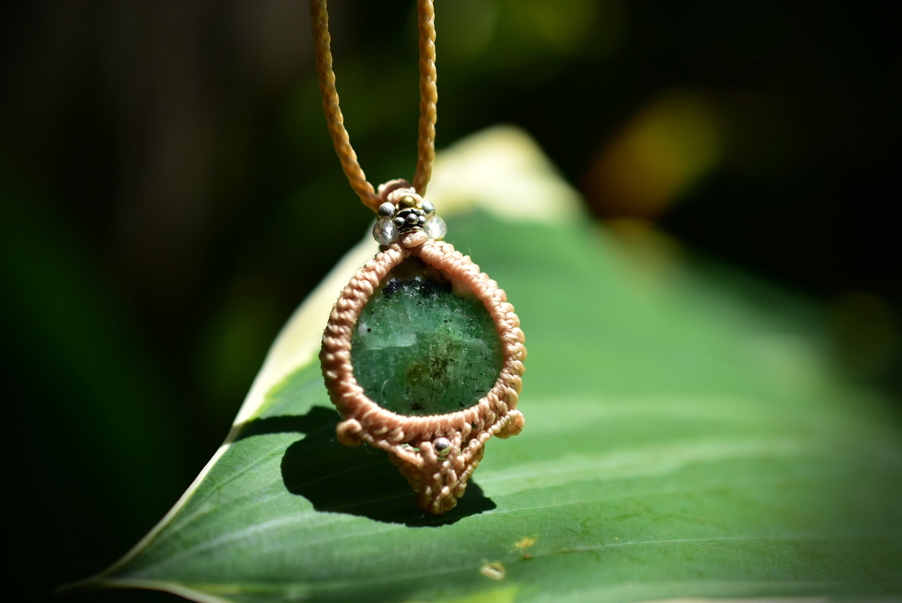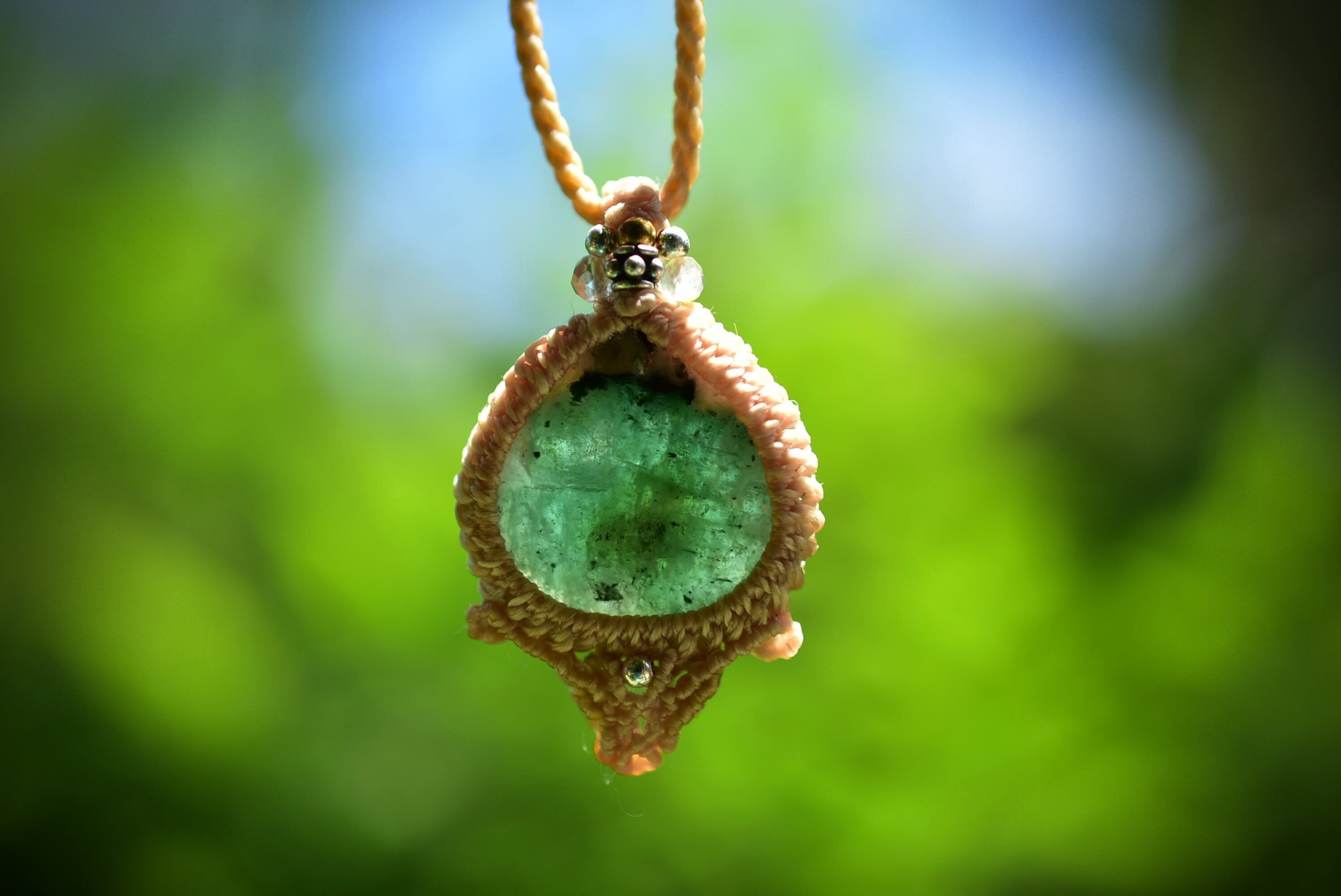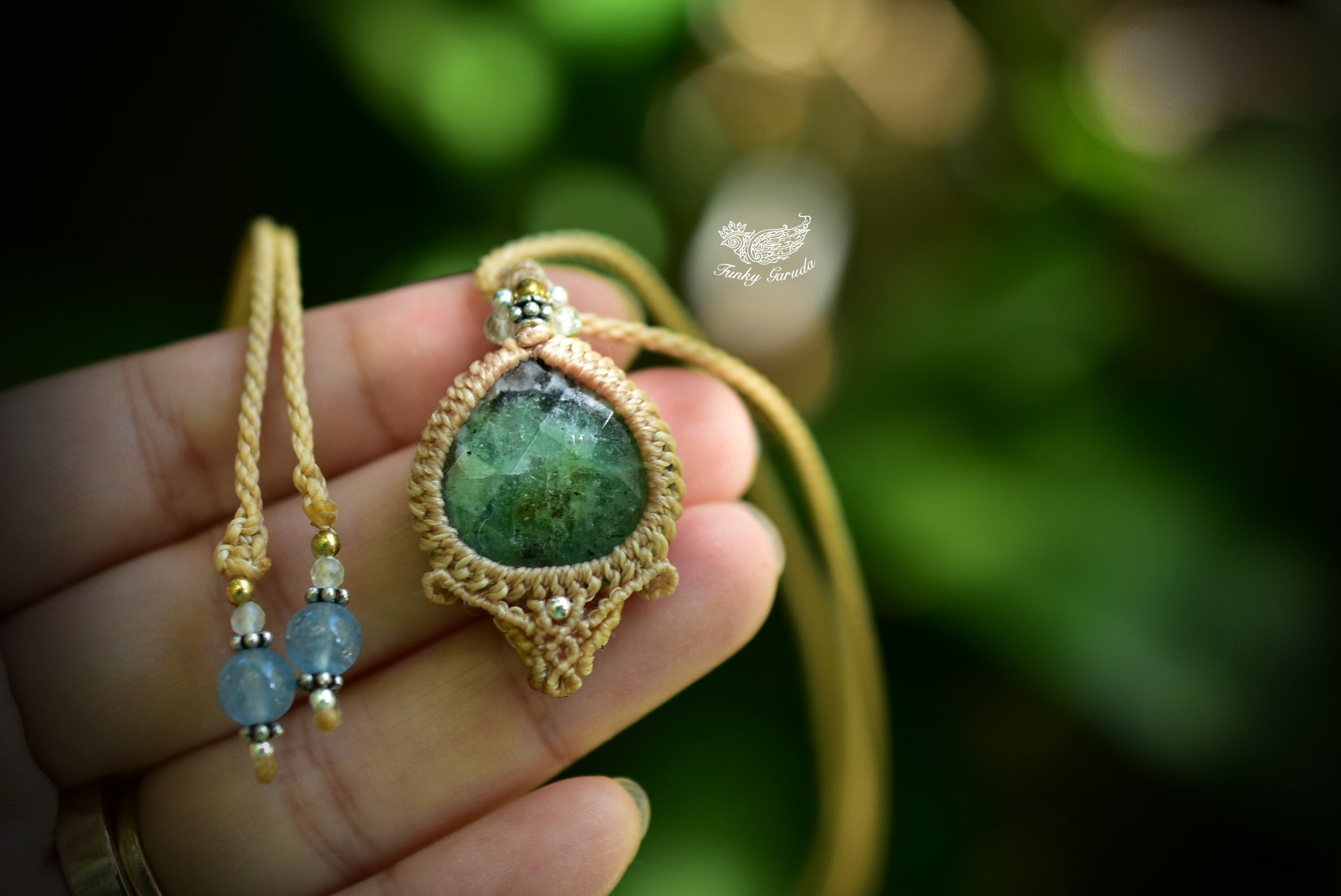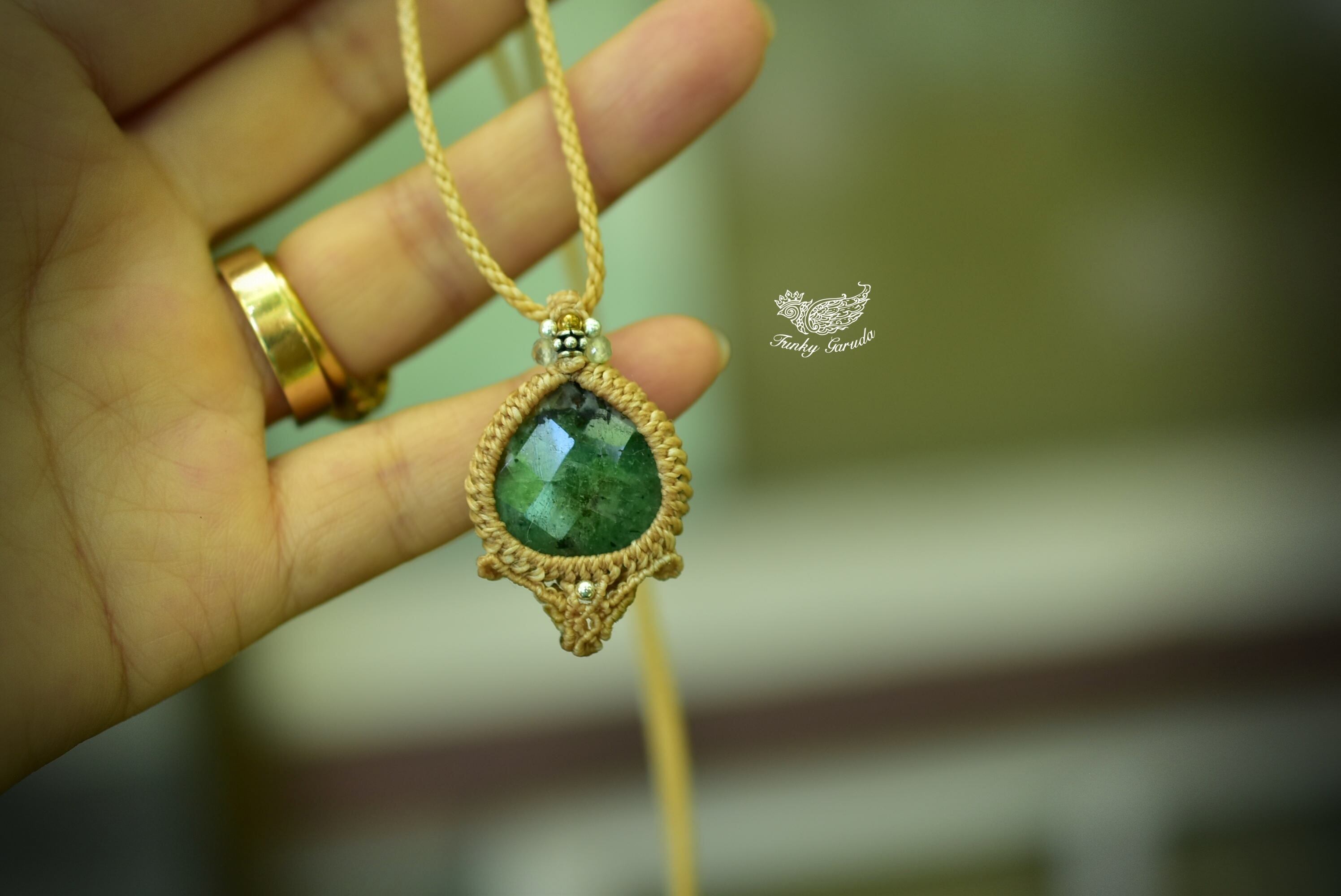 ときめくエメラルド★20ct★エメラルド マクラメペンダント460