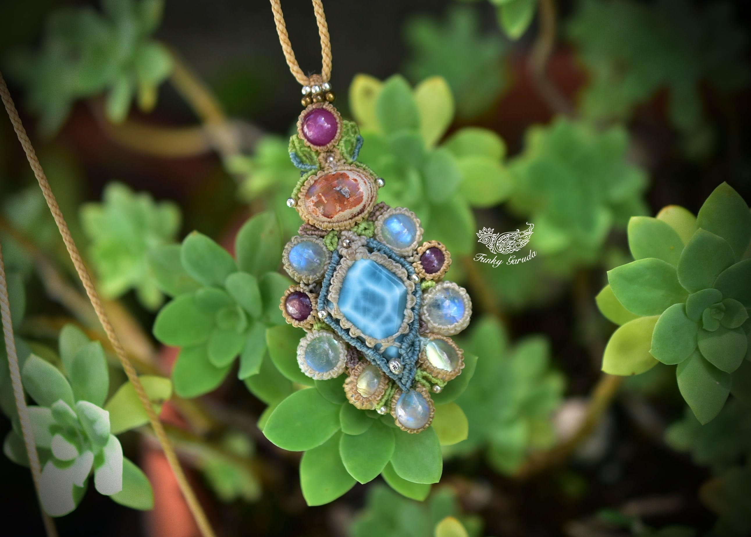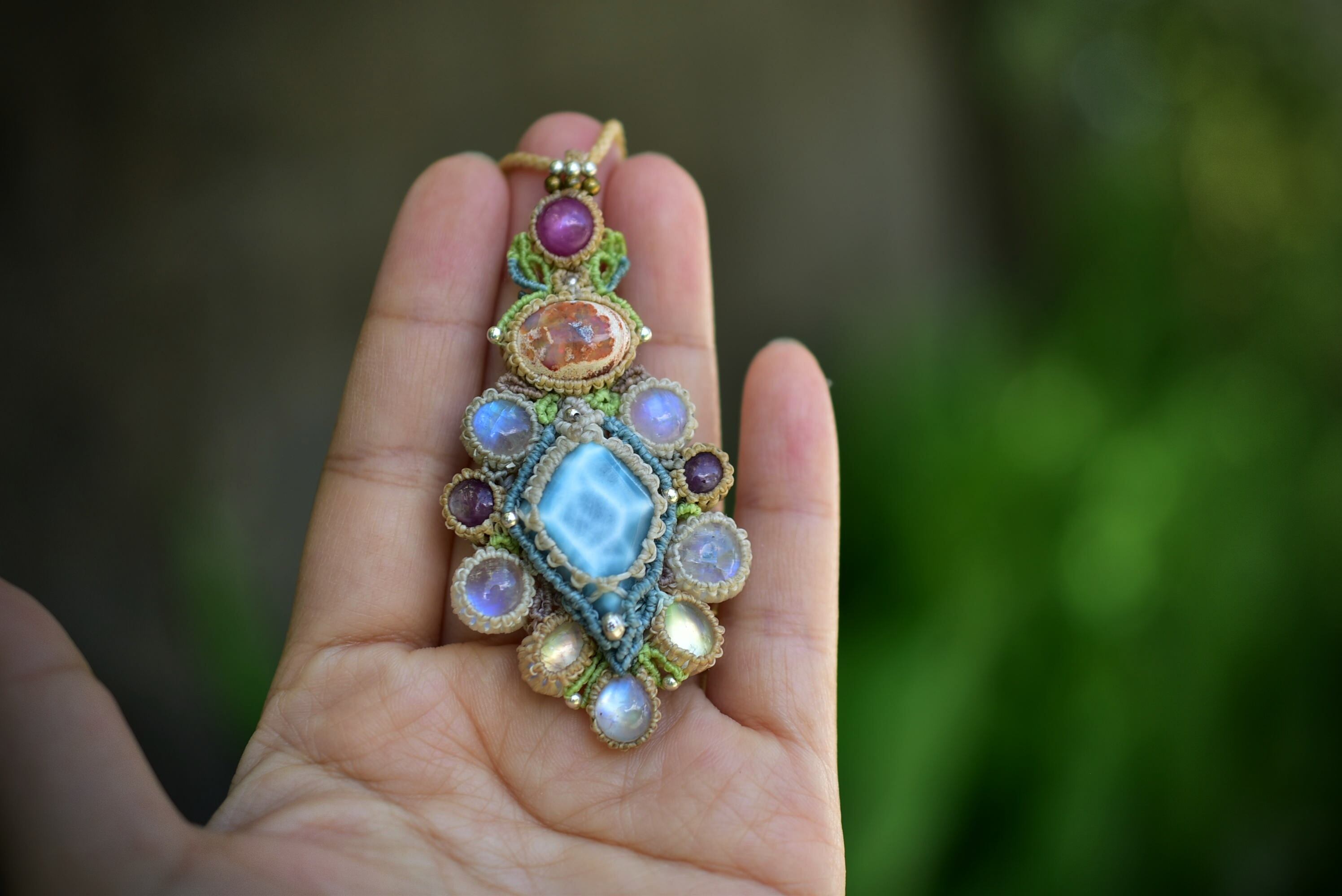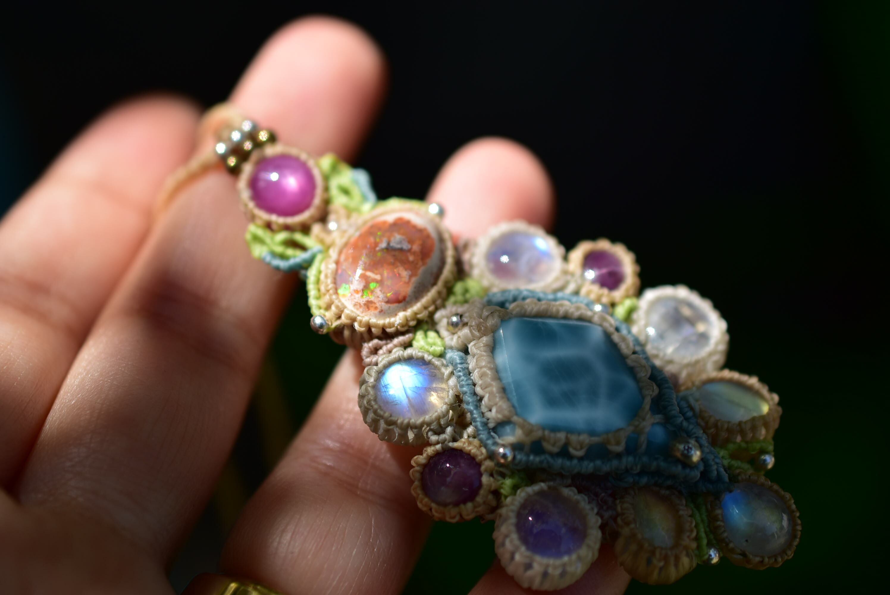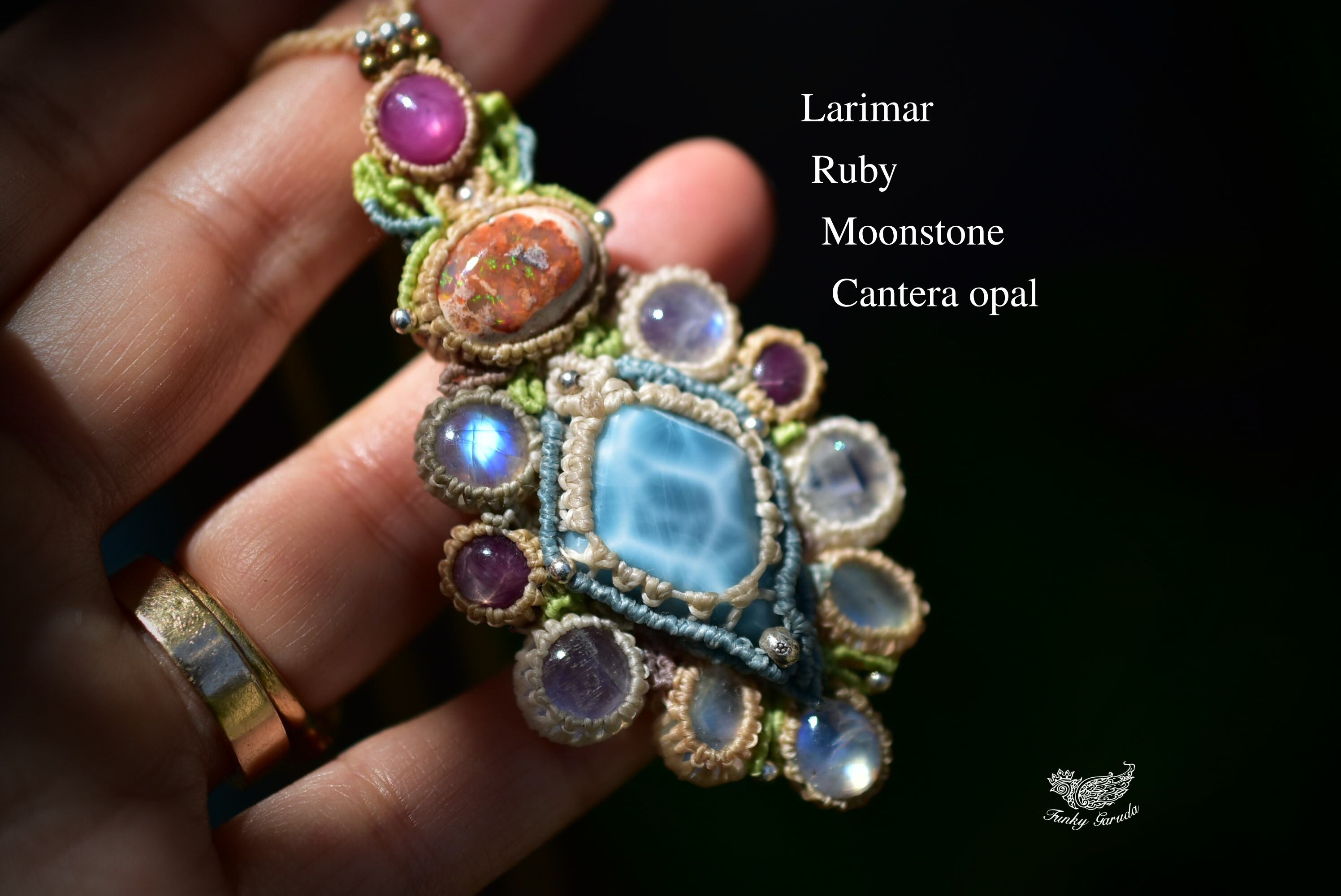 彩りの惑星★カンテラオパール ラリマー マクラメペンダント 461
