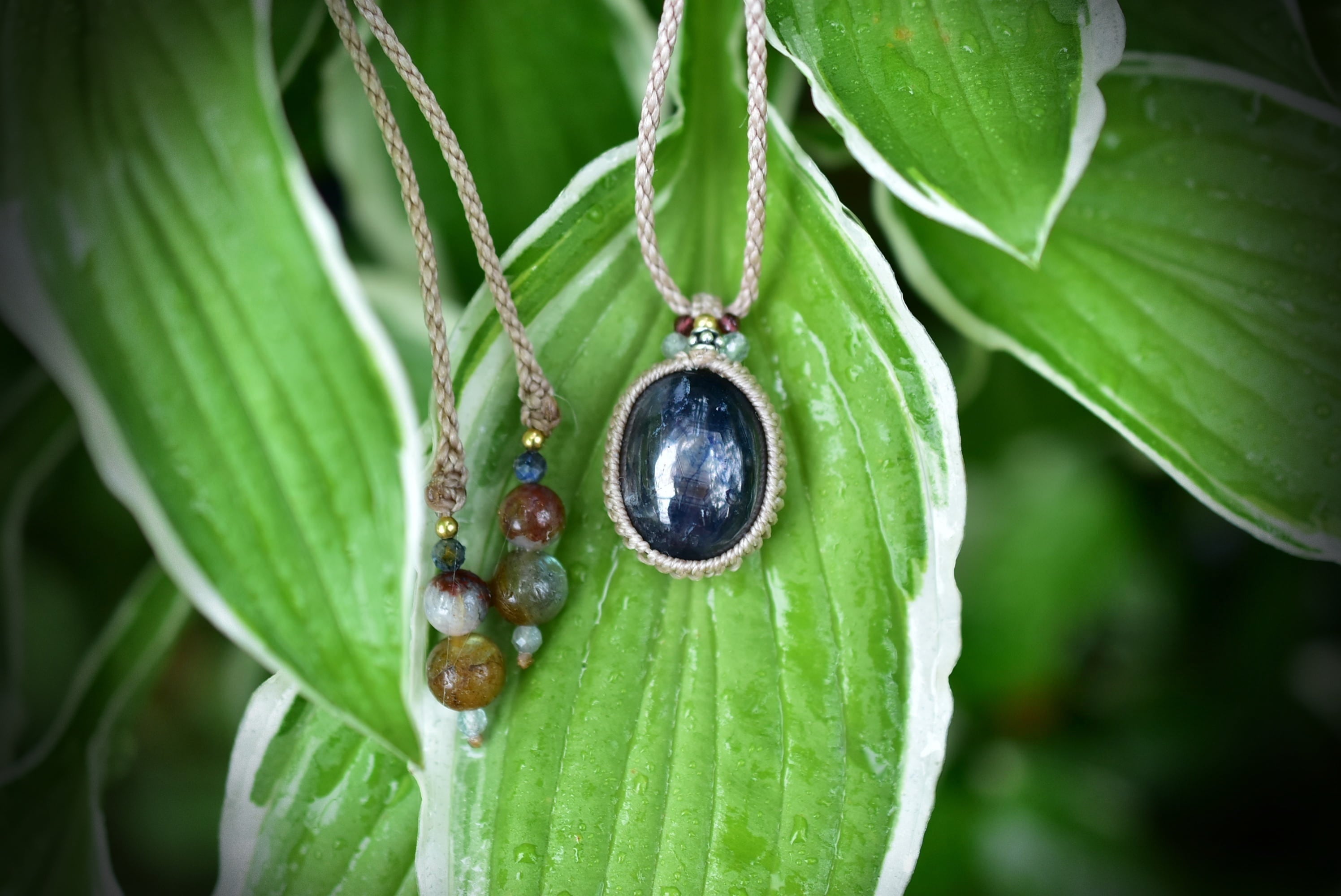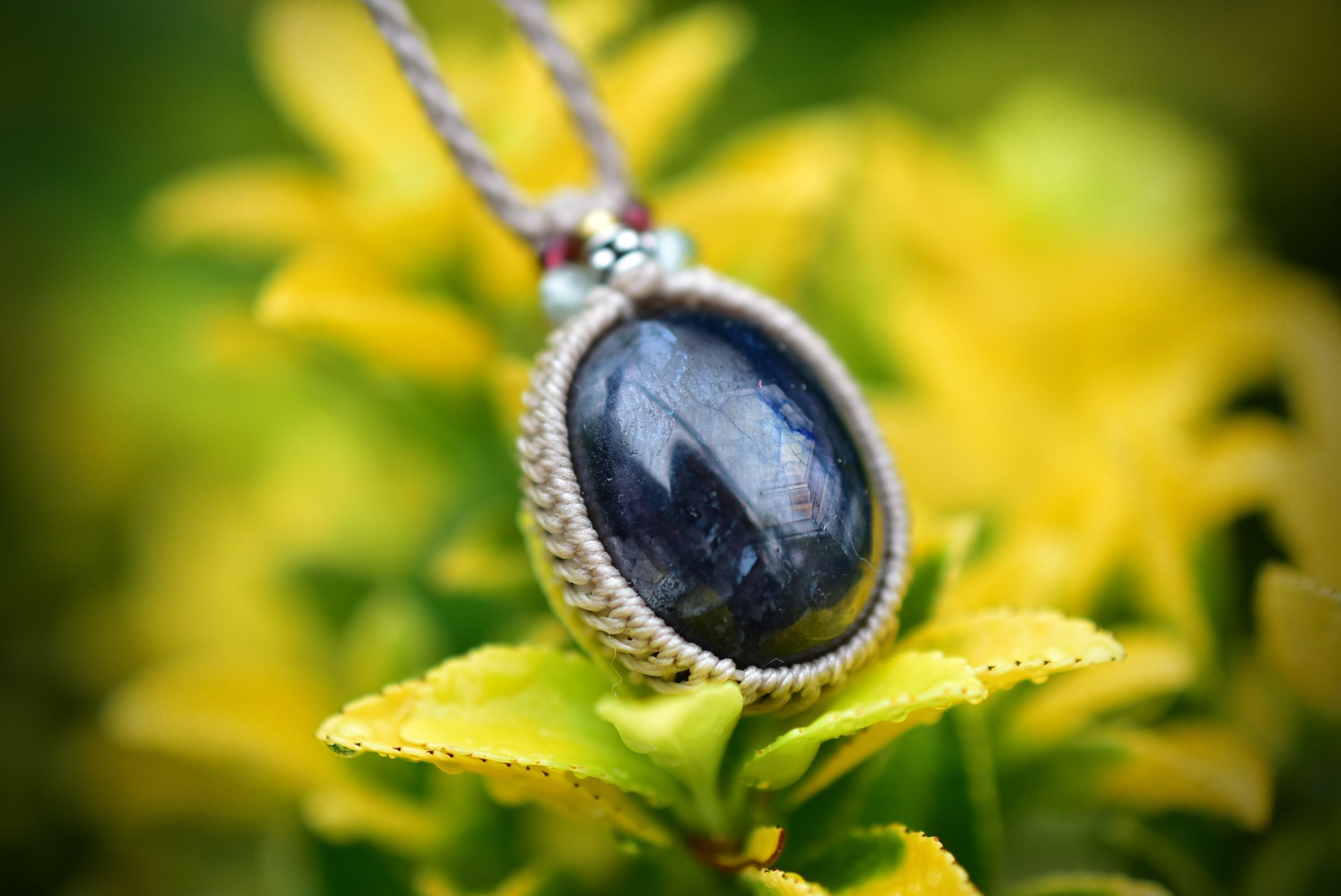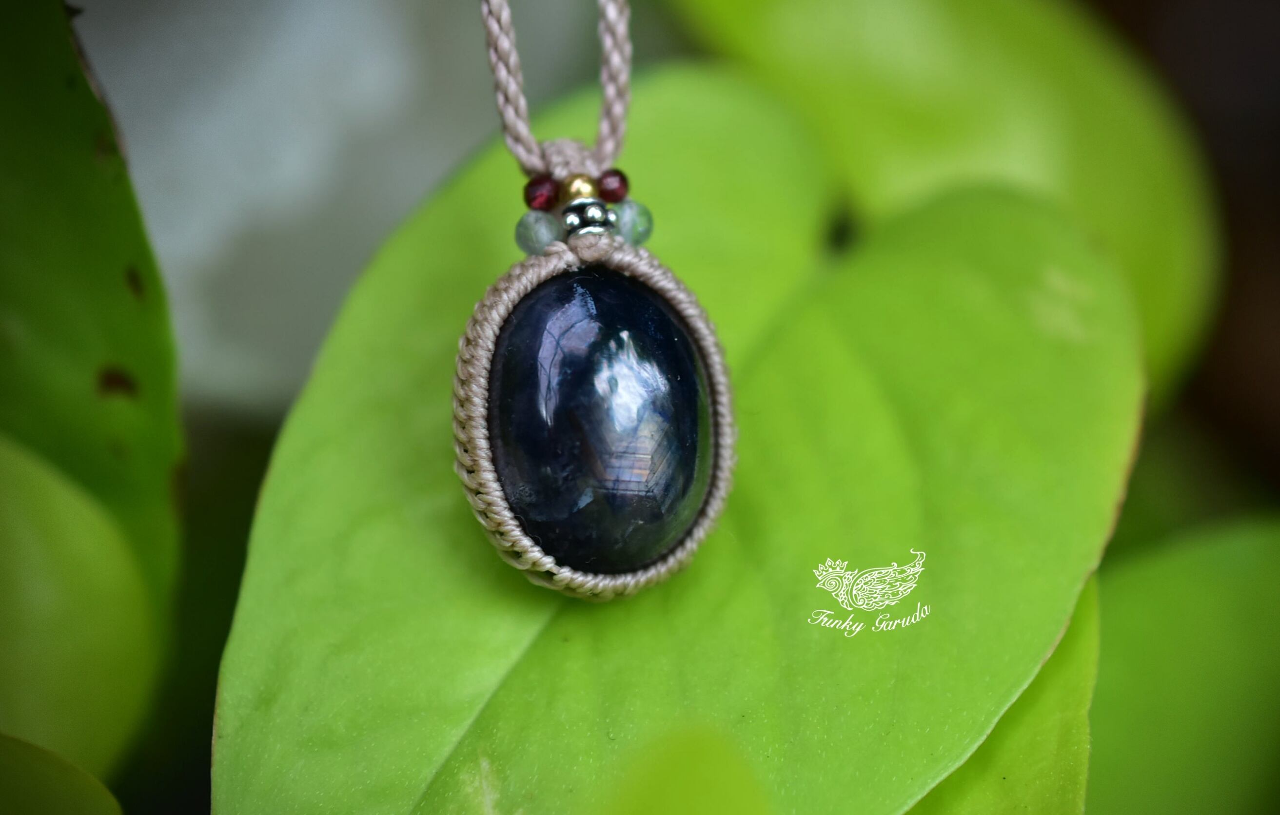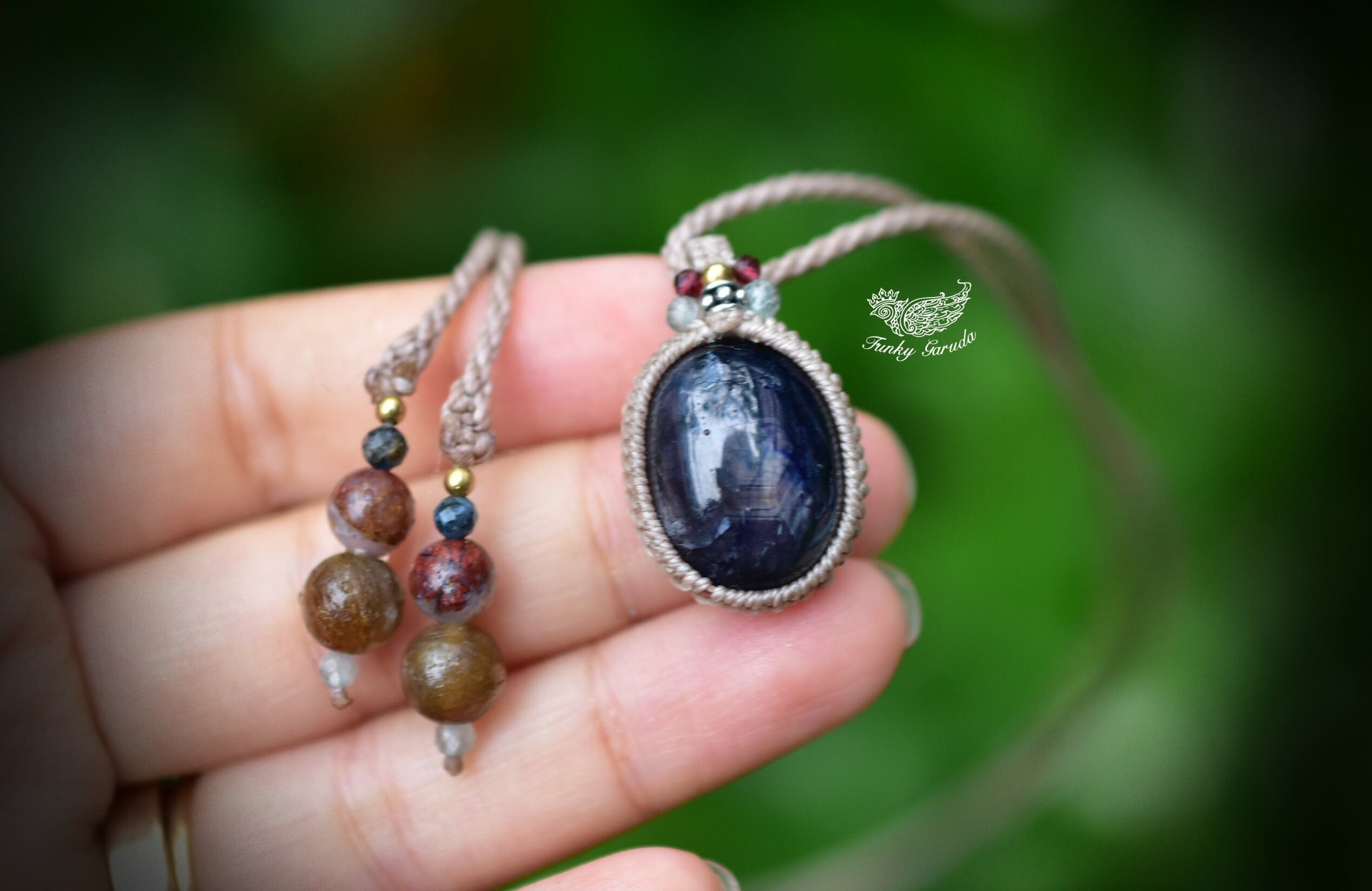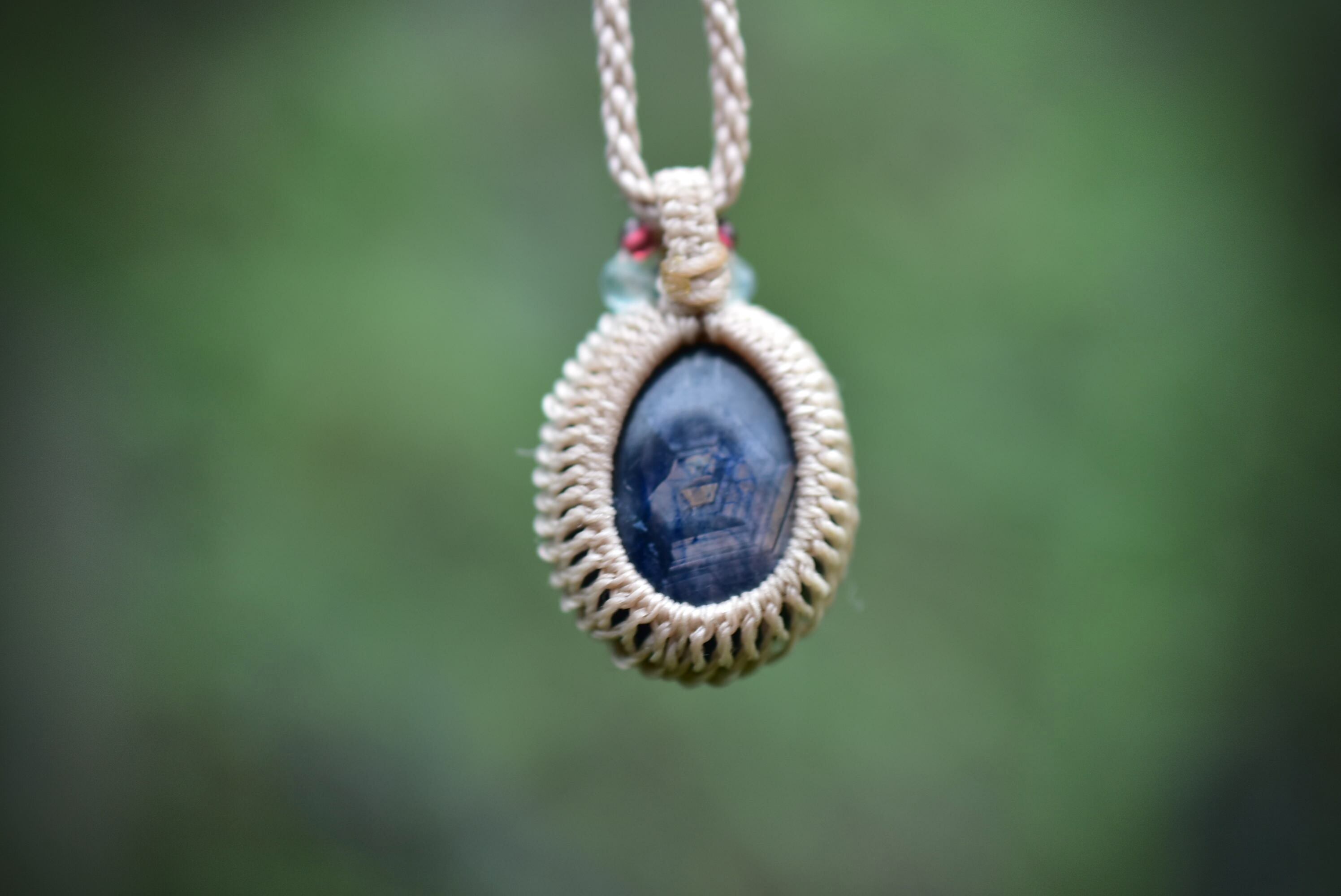 ほんのり星★ブルースターサファイア マクラメペンダント 464