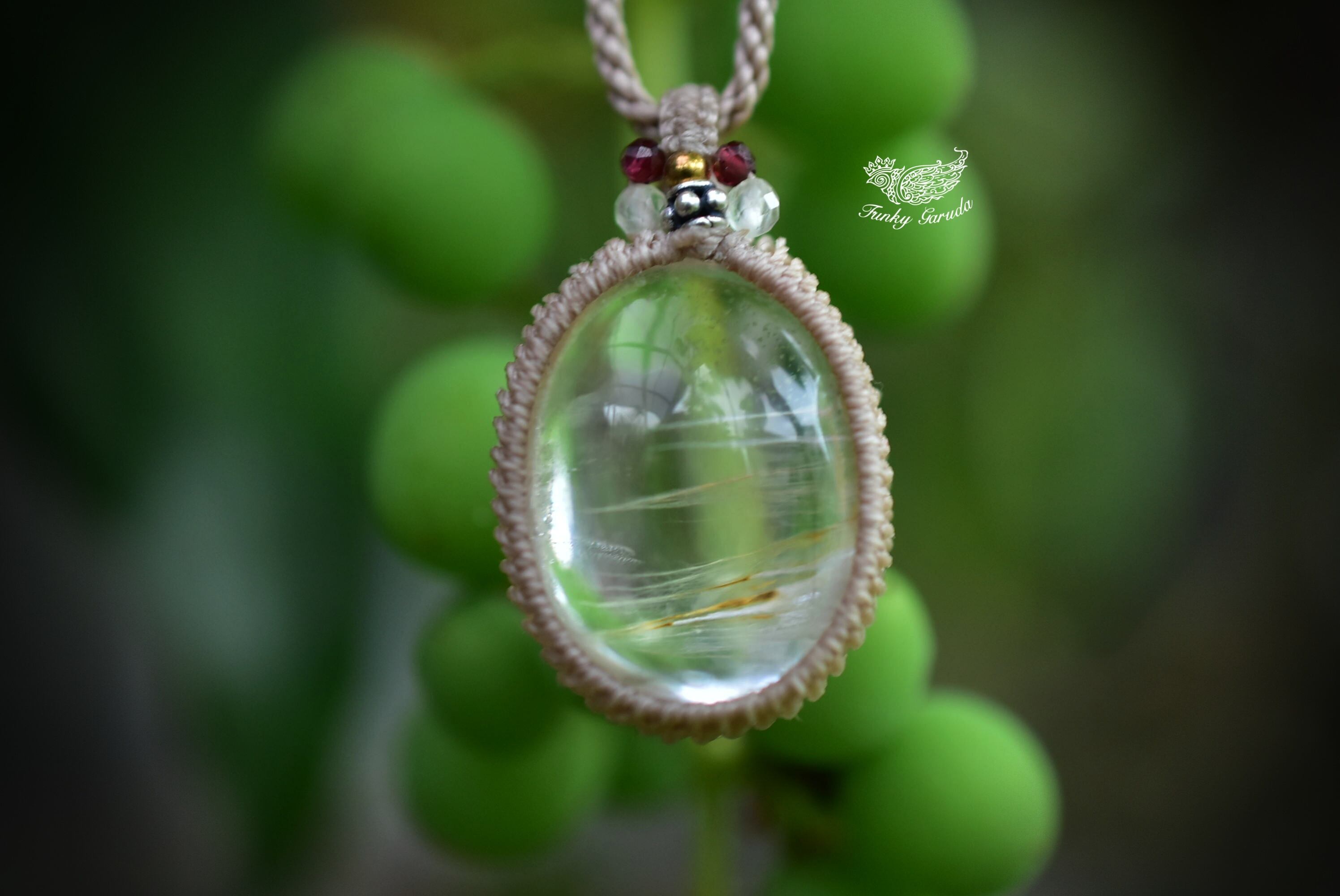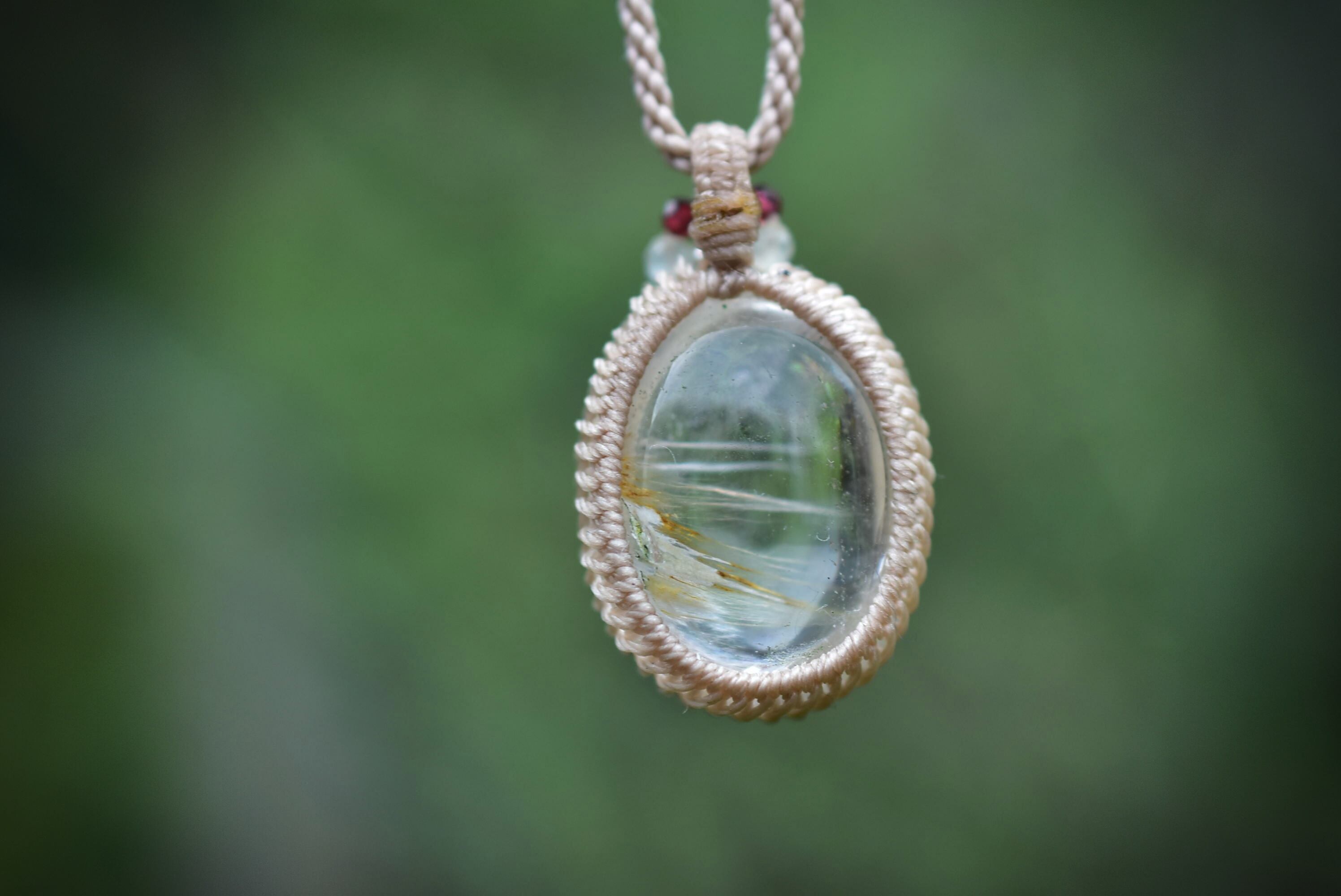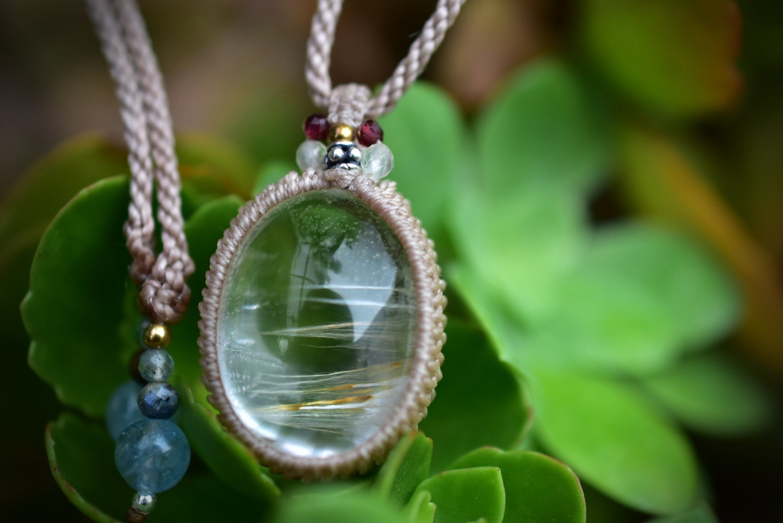 鋭いライン★ガーデンクォーツ マクラメペンダント467