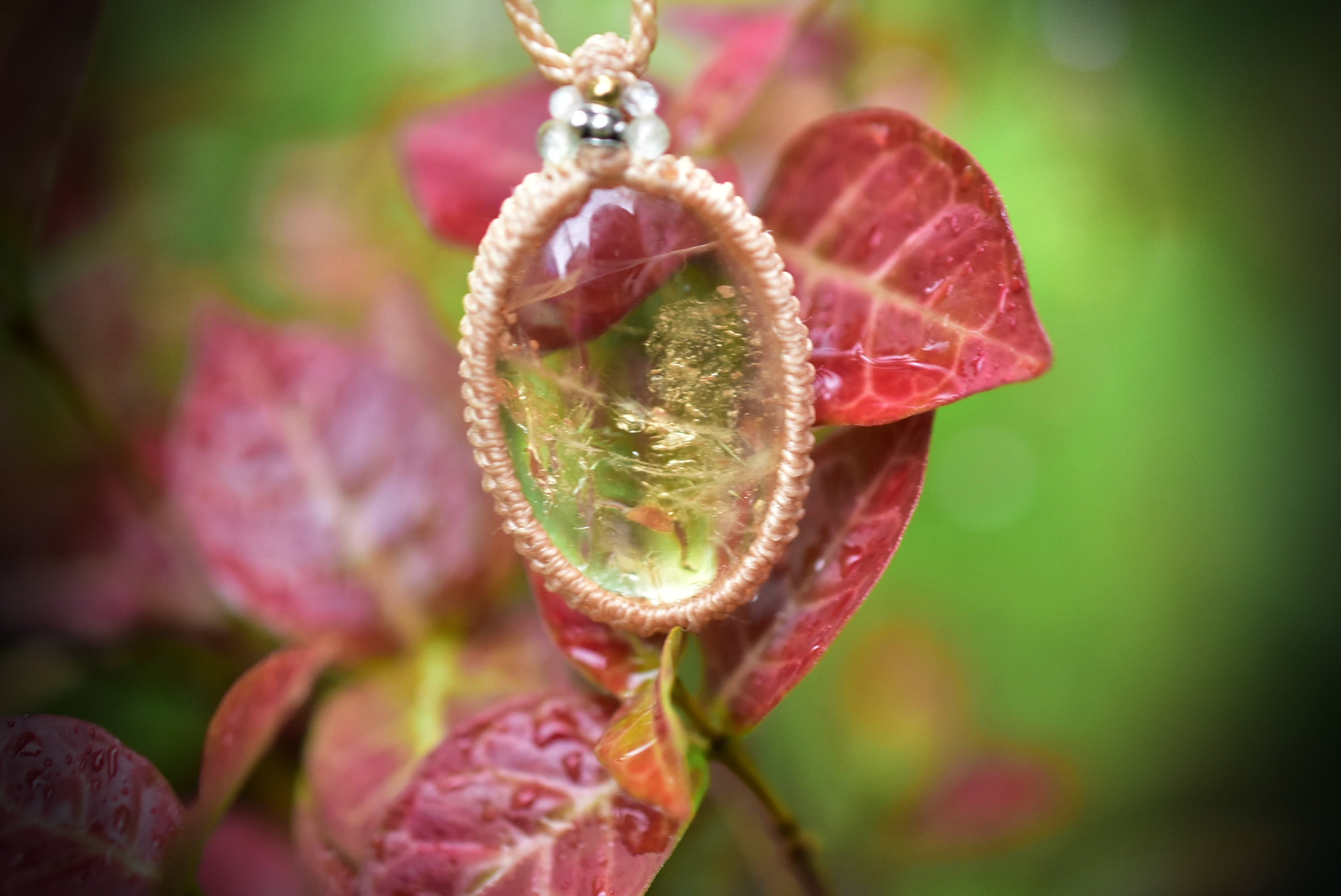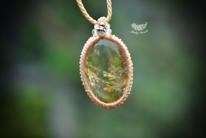 ◆このたびはキャラメル色の蝋引き糸を使用しマクラメ編み装飾を施しました。