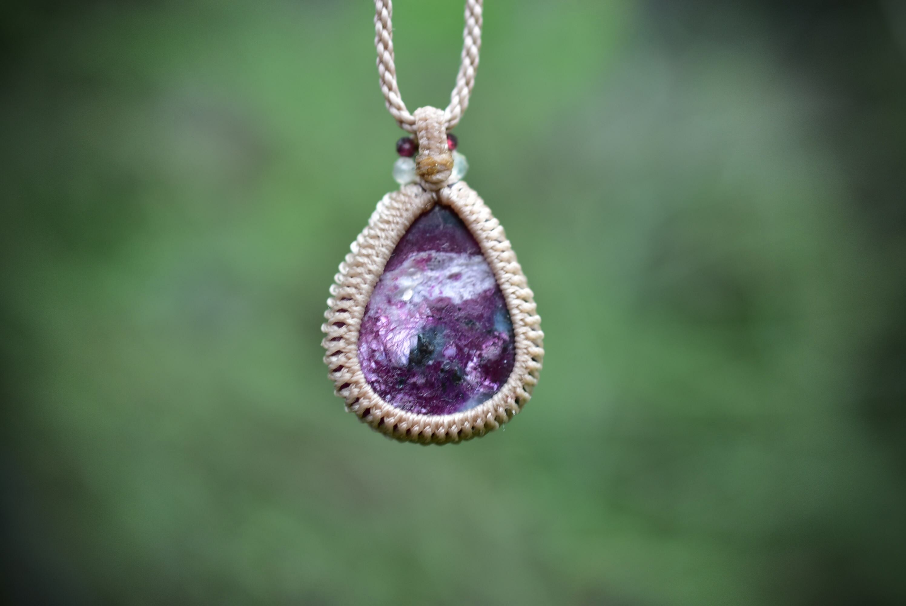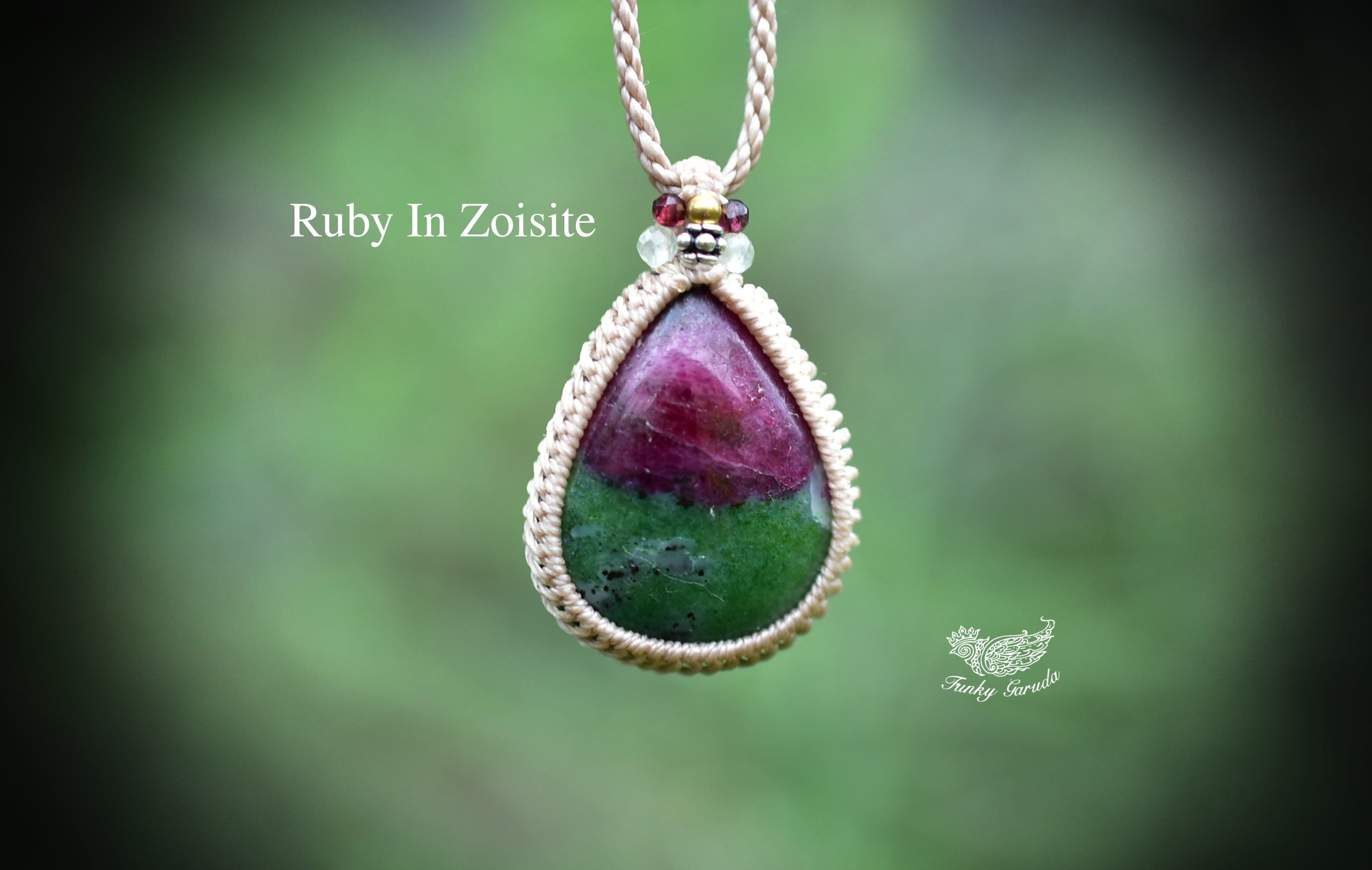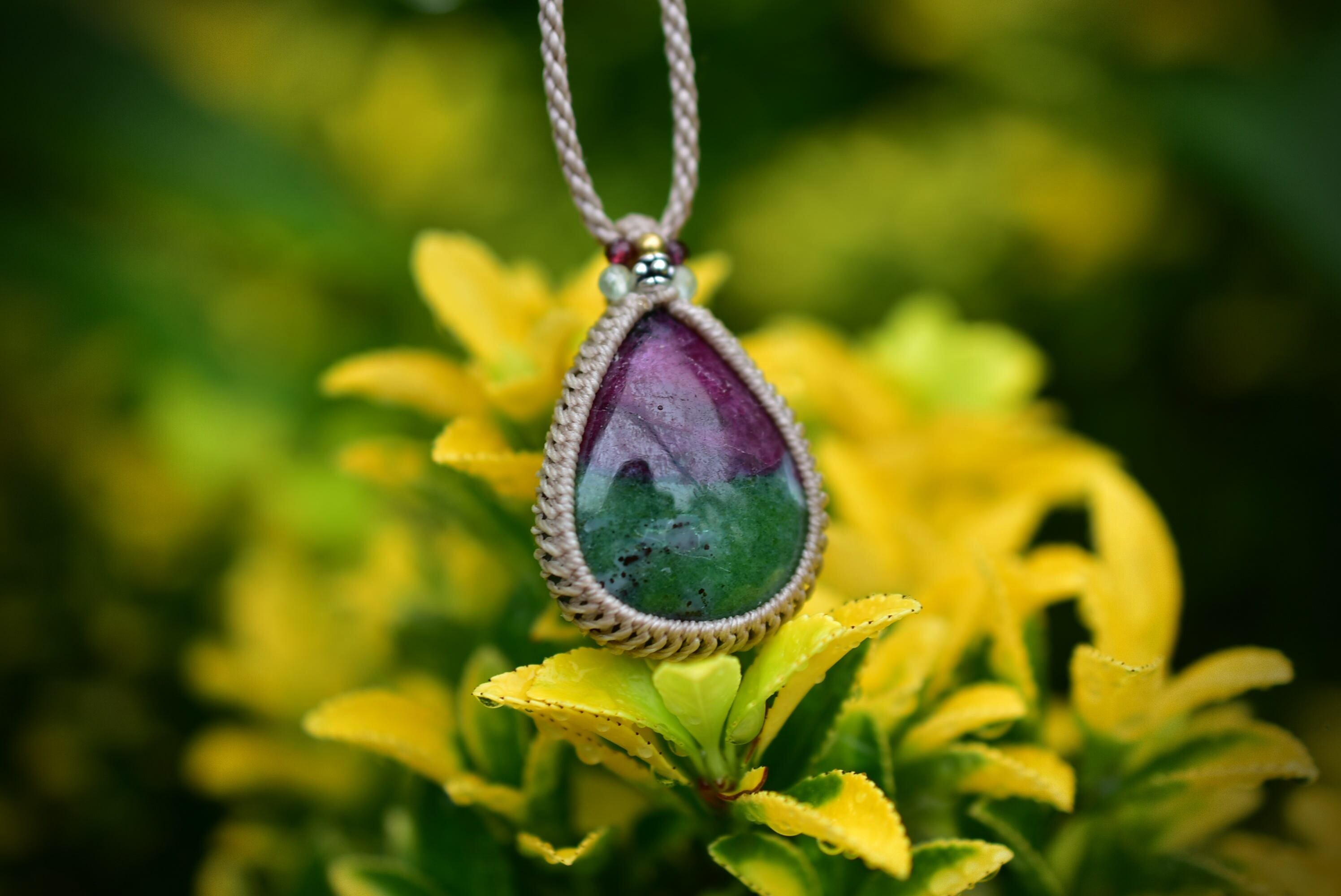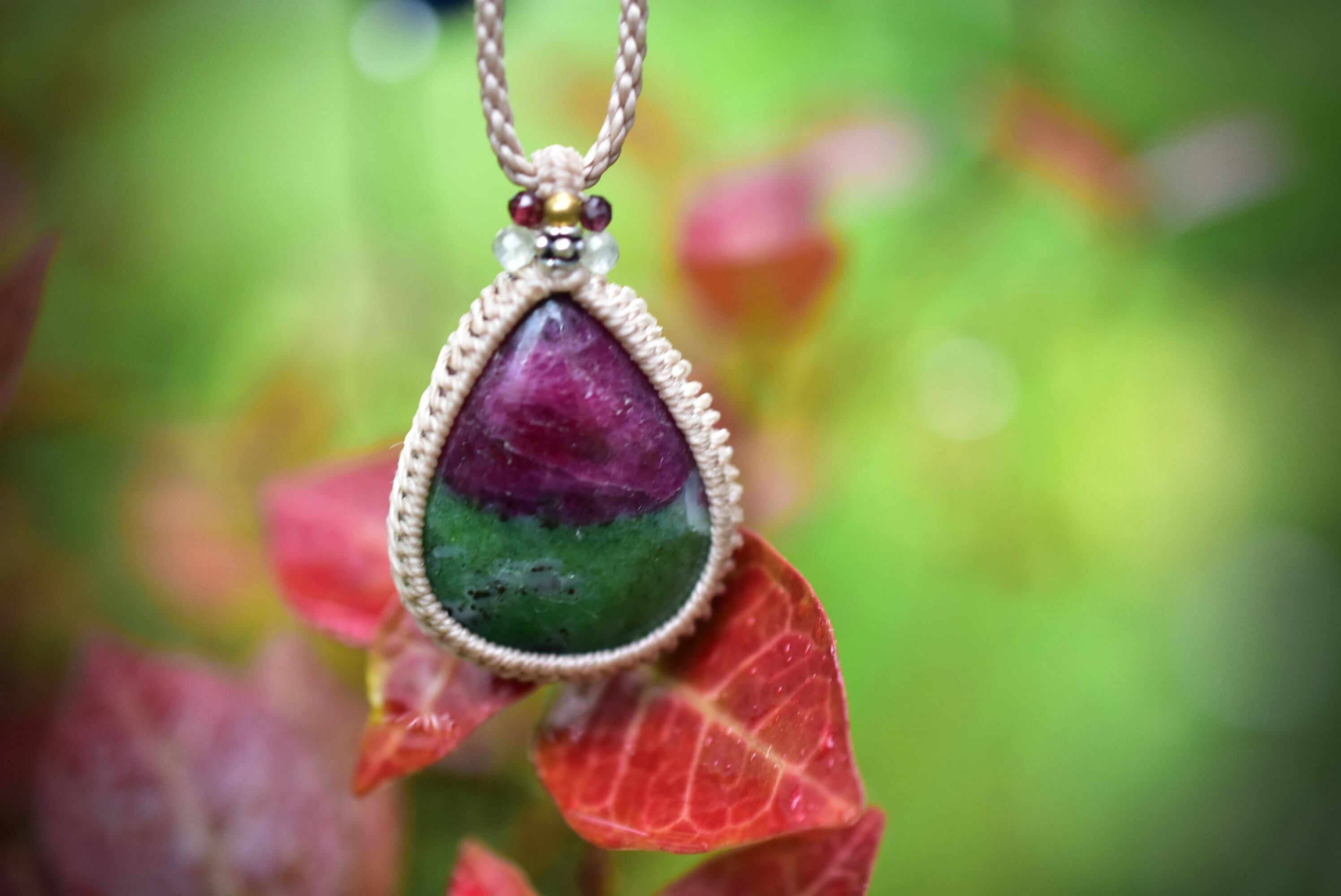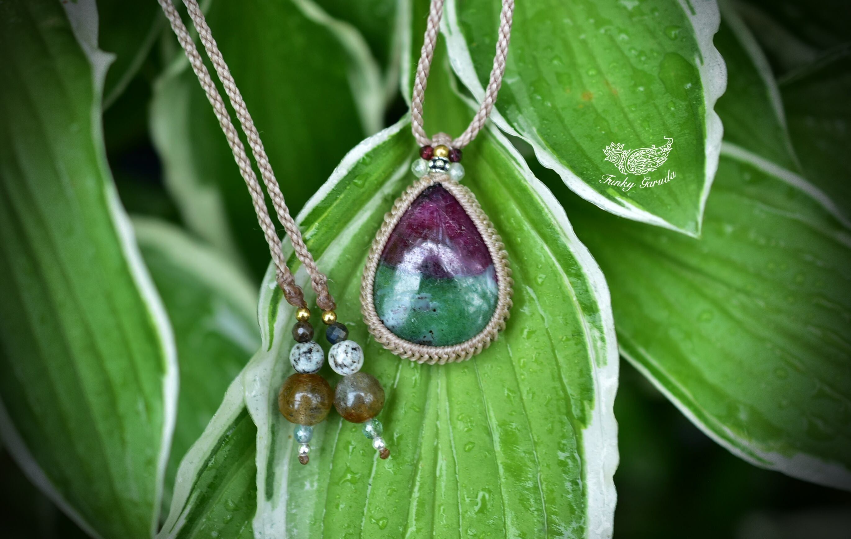 ディープな2色★ルビーインゾイサイト マクラメペンダント472
