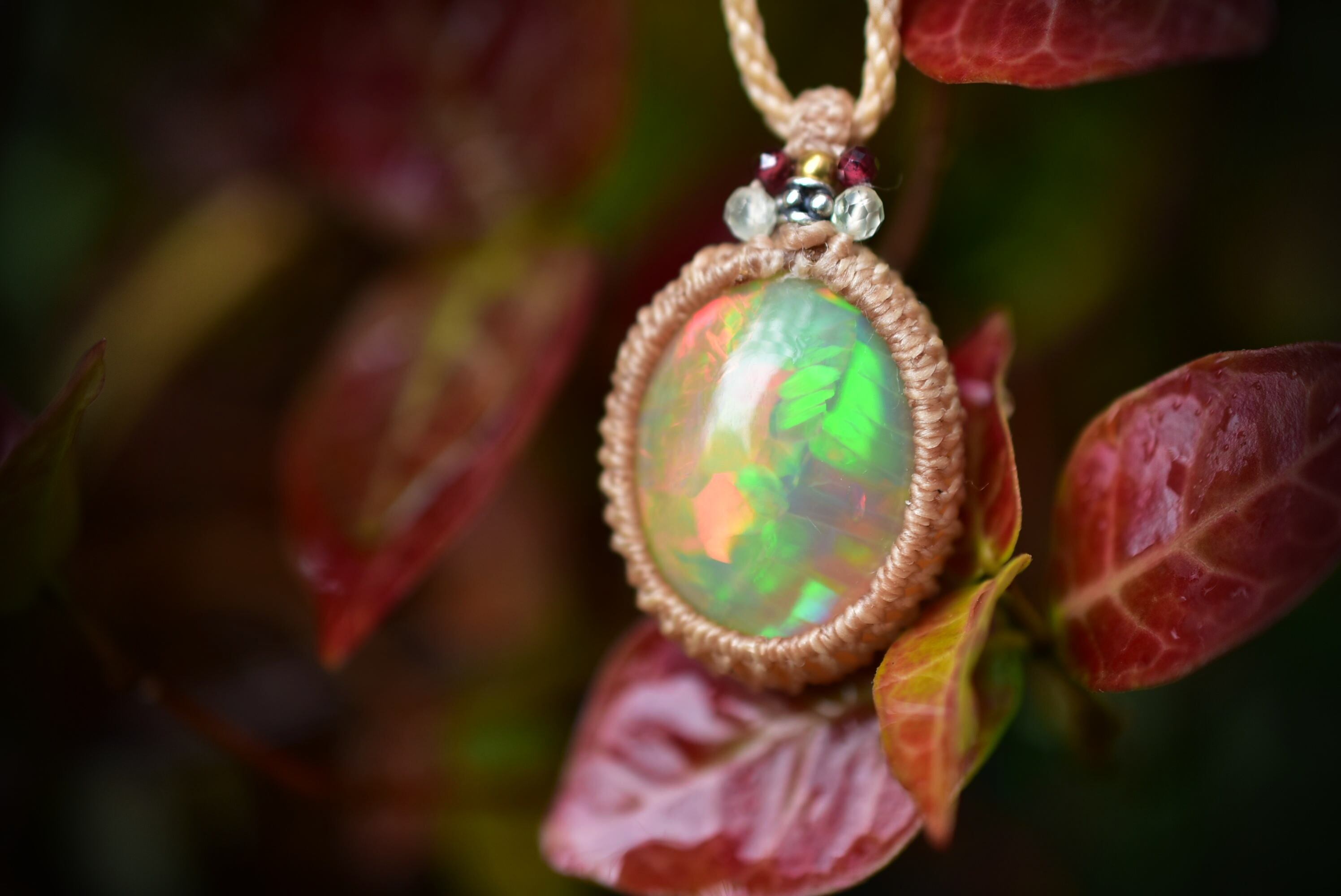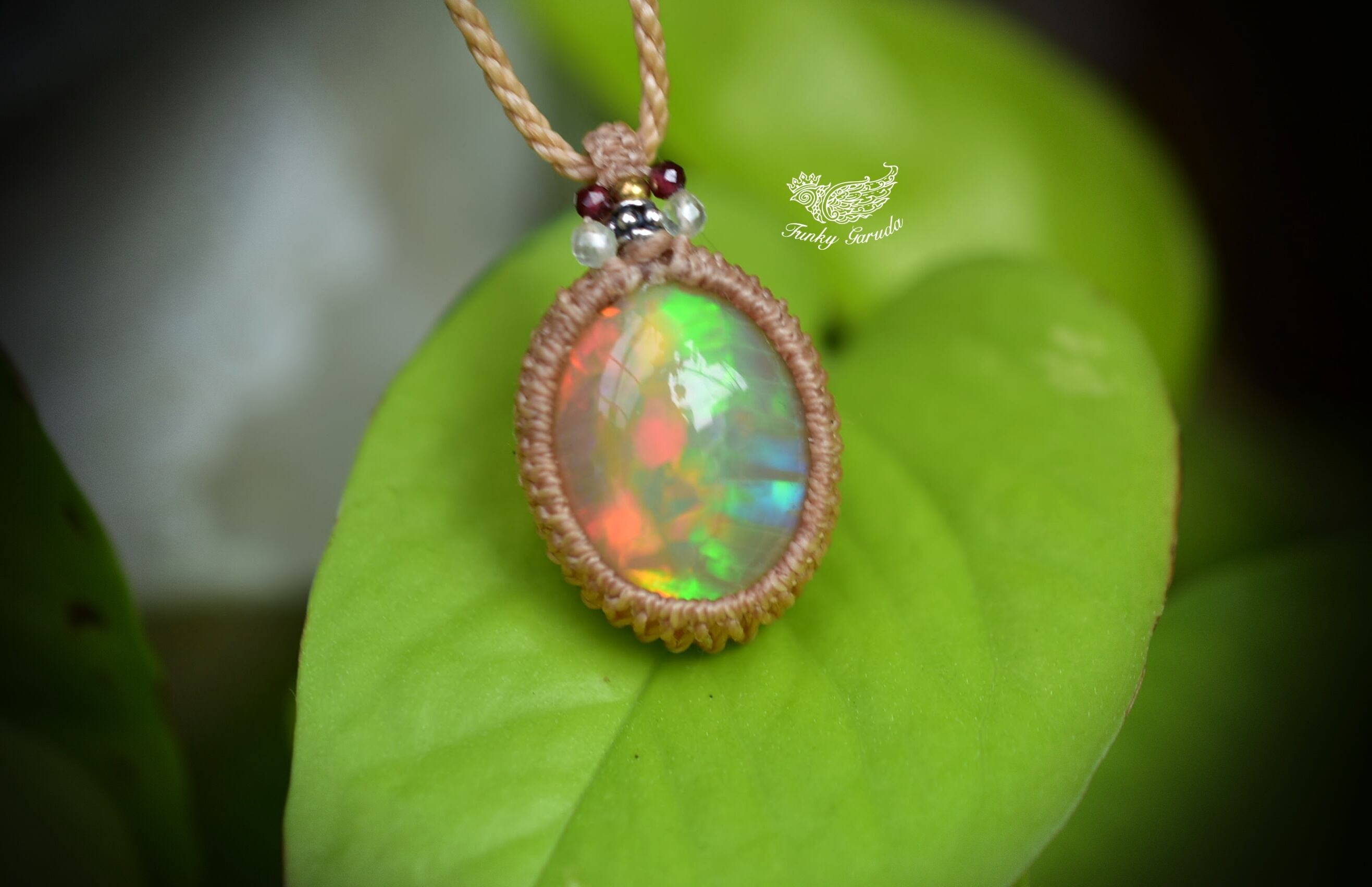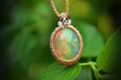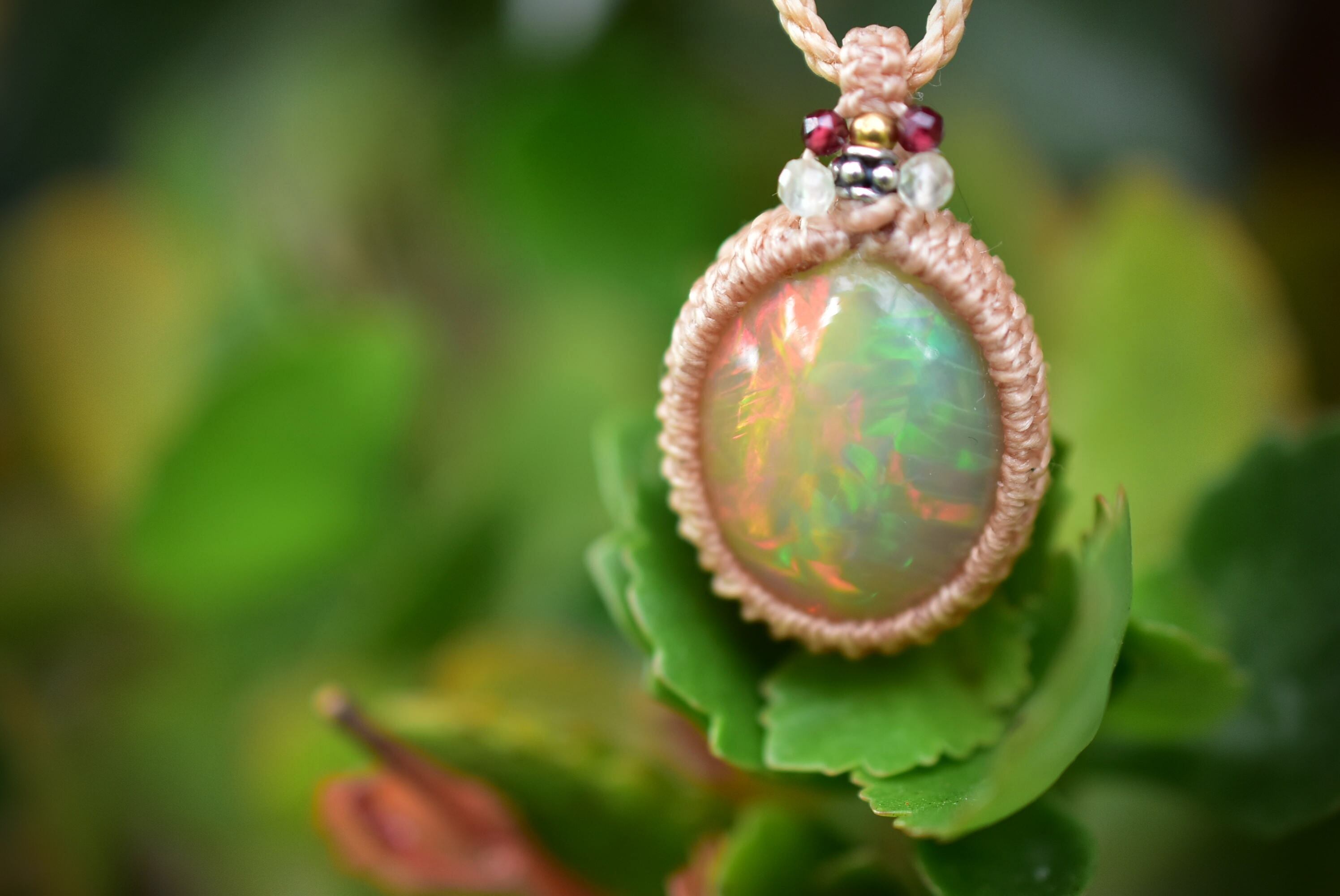 大きな虹のプリズムライン★23ct★エチオピア産オパール マクラメペンダント473