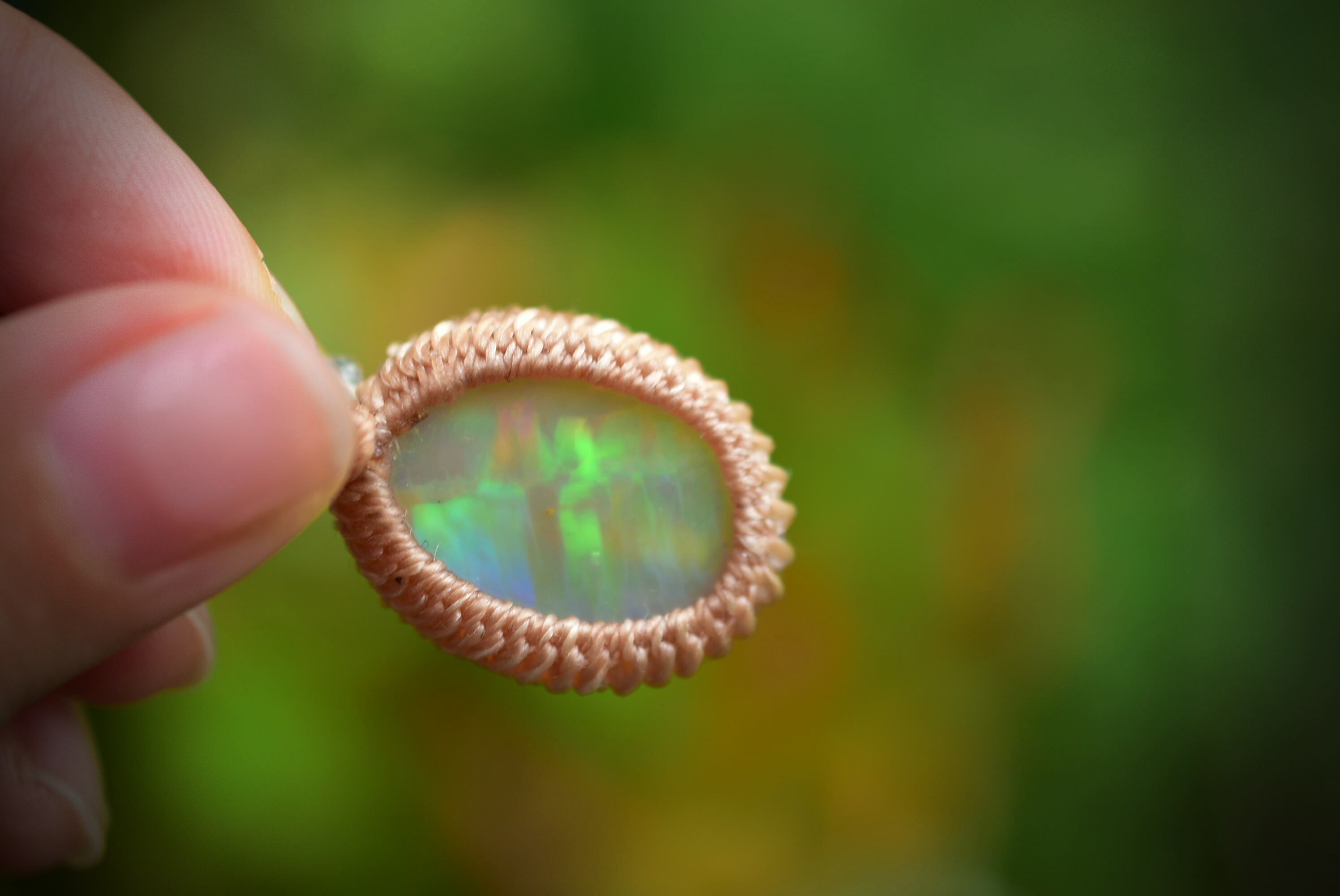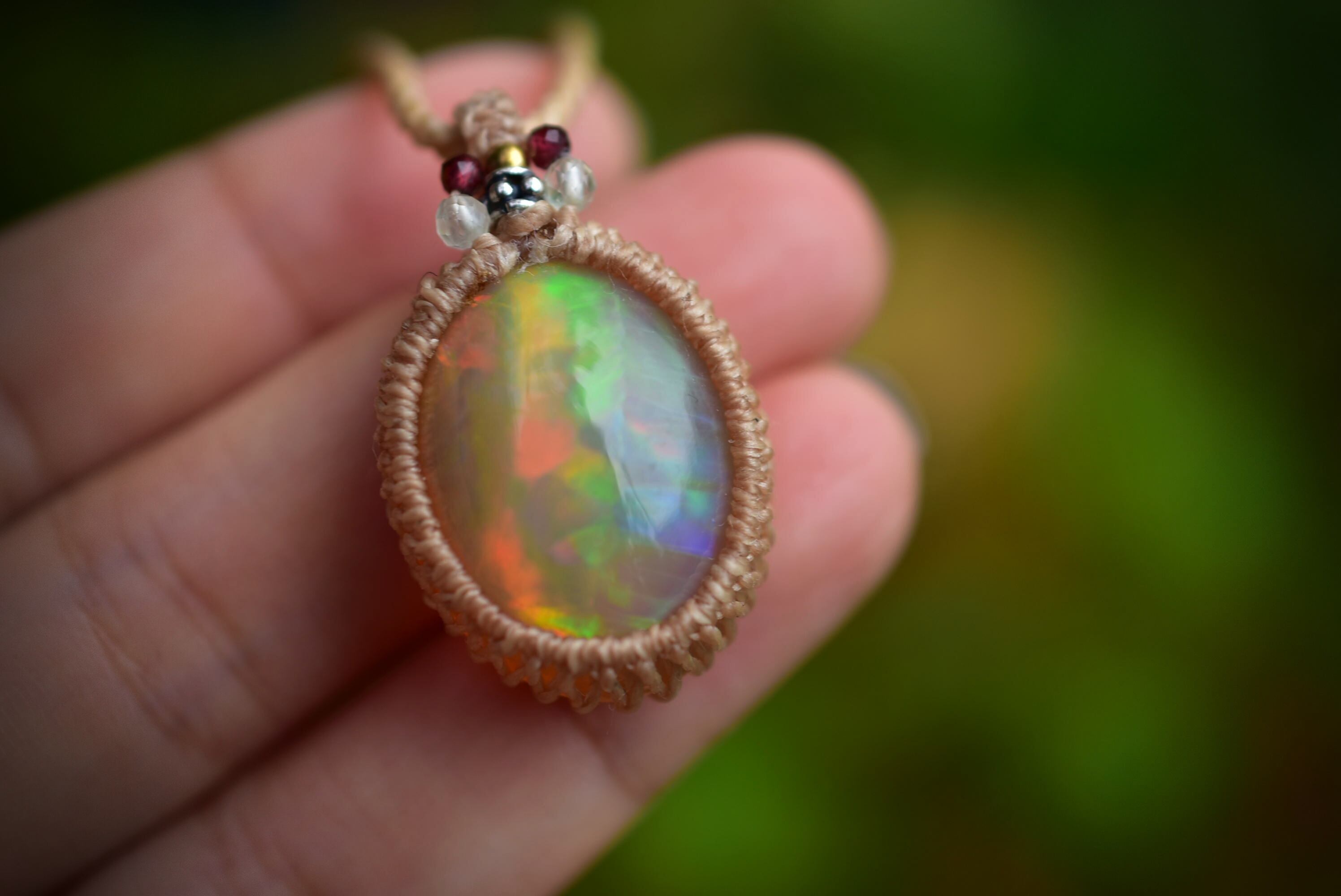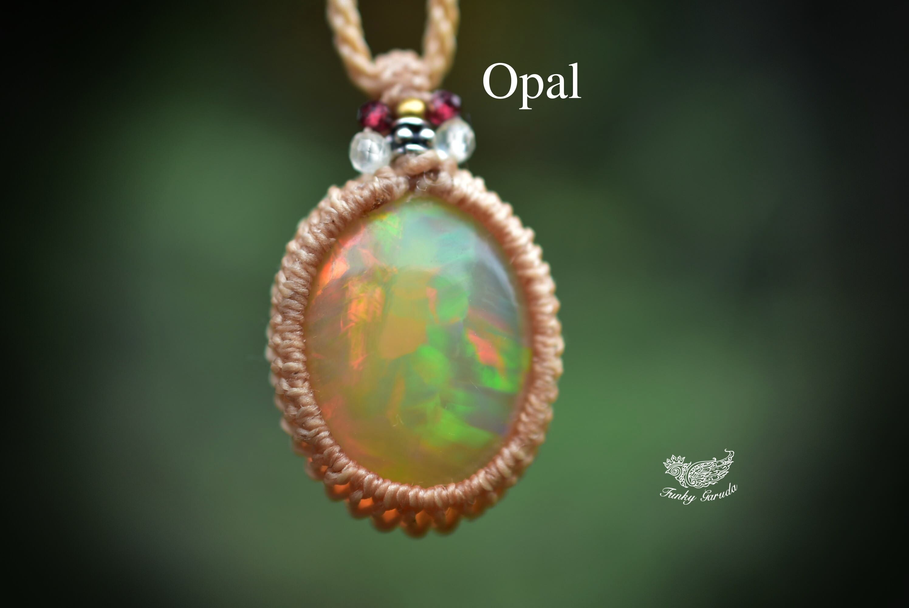 大きな虹のプリズムライン★23ct★エチオピア産オパール マクラメペンダント473