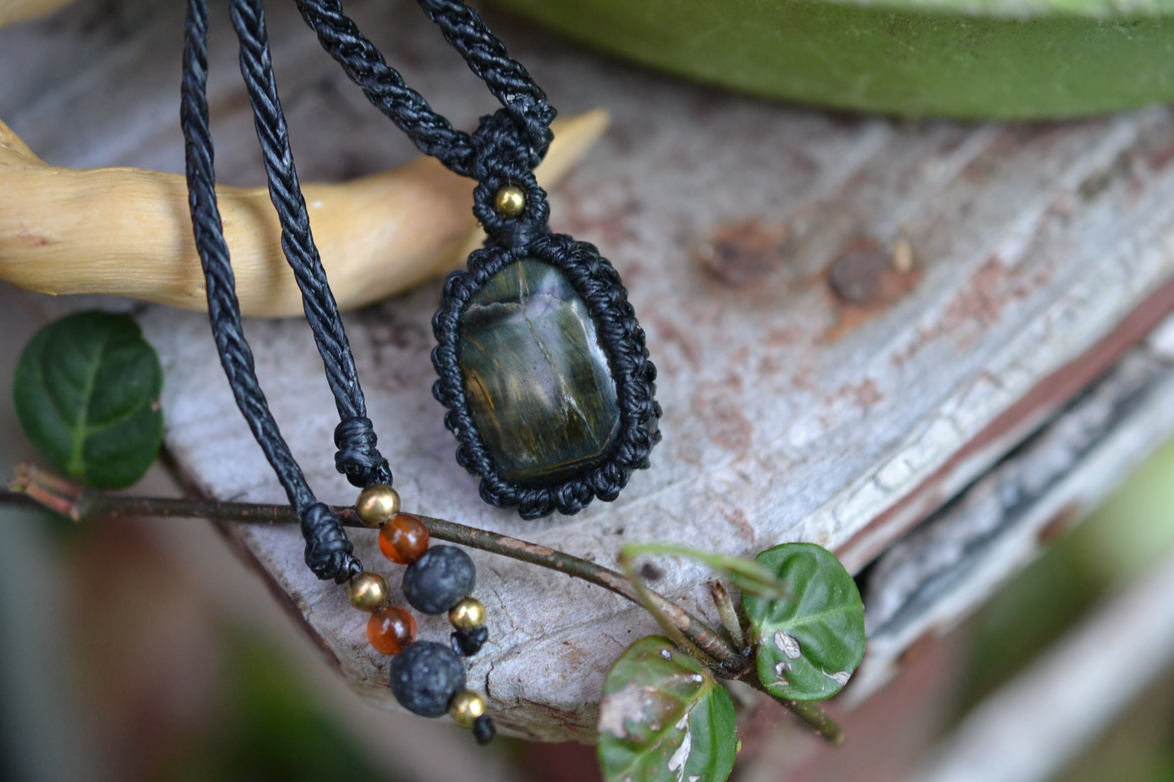 見るからに勇ましいブラックタイガーアイをペンダントに仕上げました。