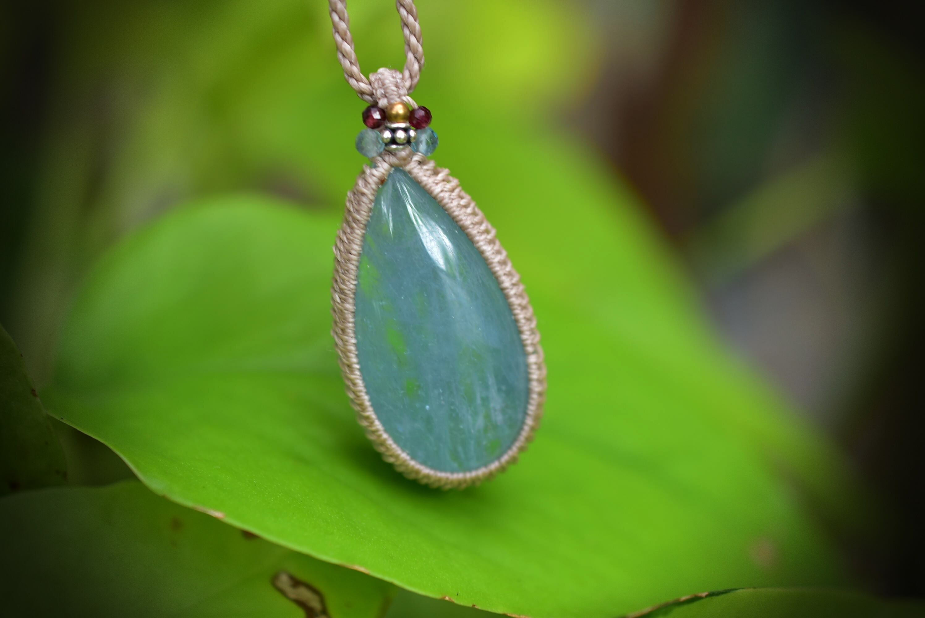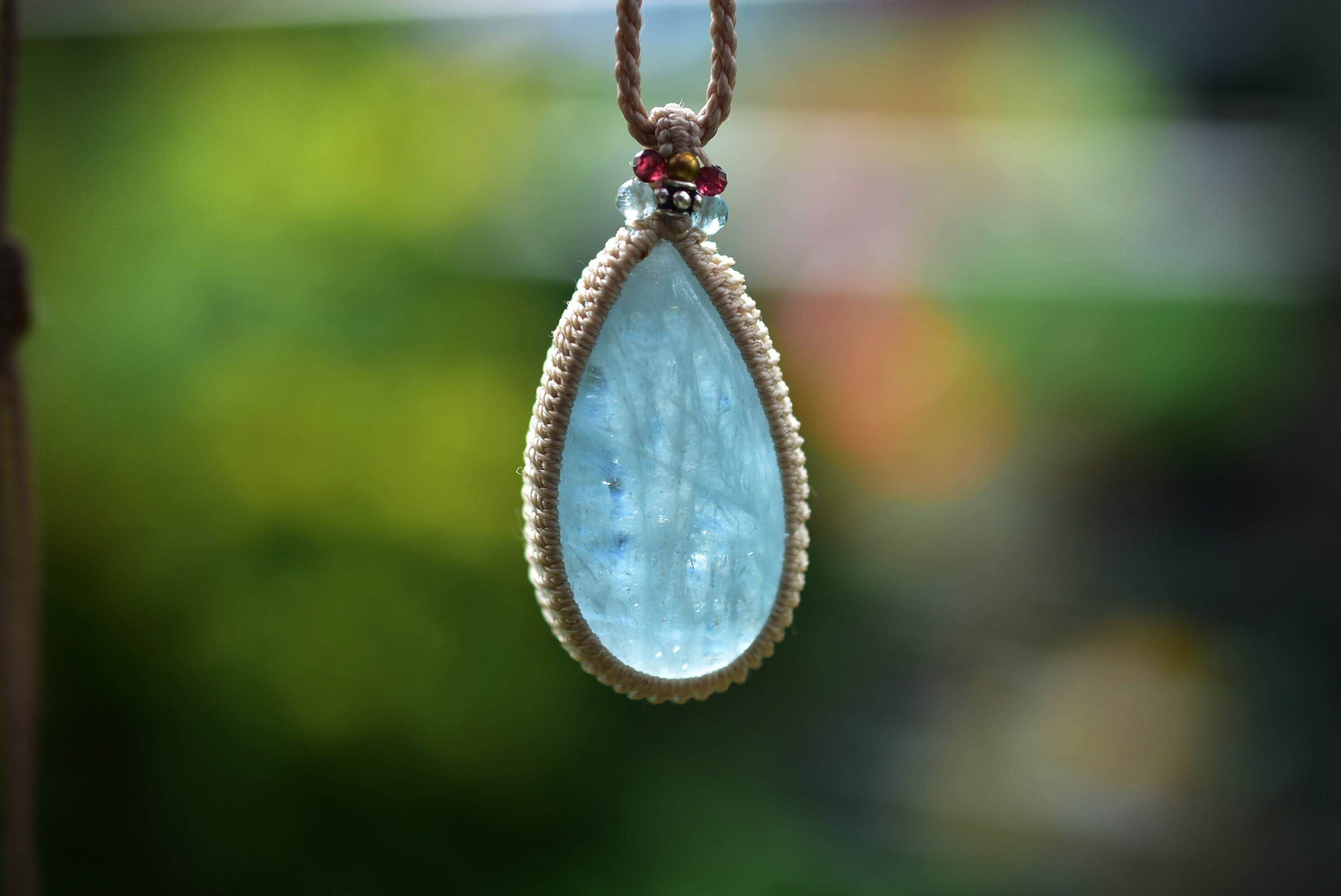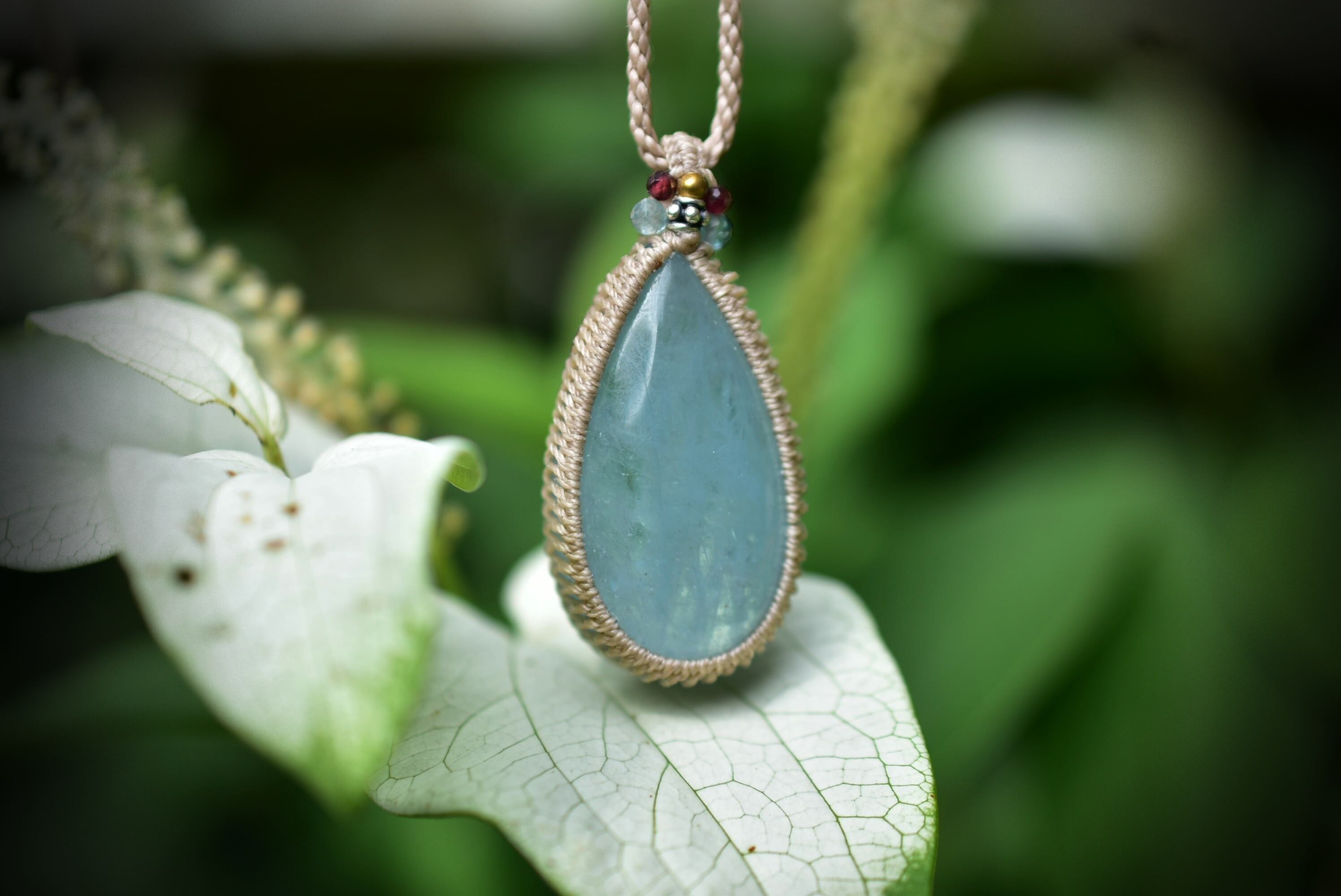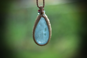 透明ブルー★高品質アクアマリン マクラメペンダント485