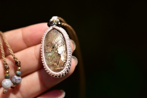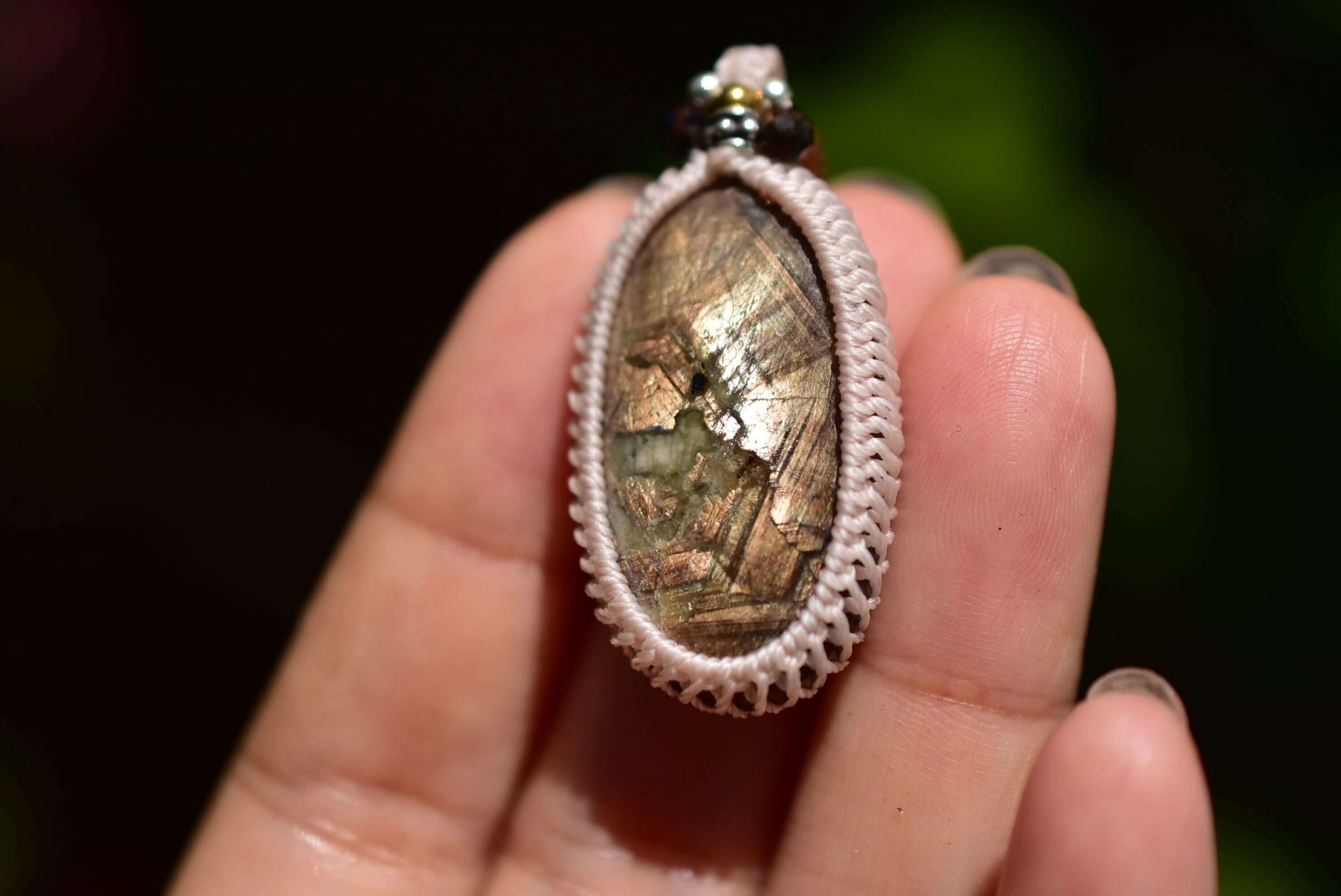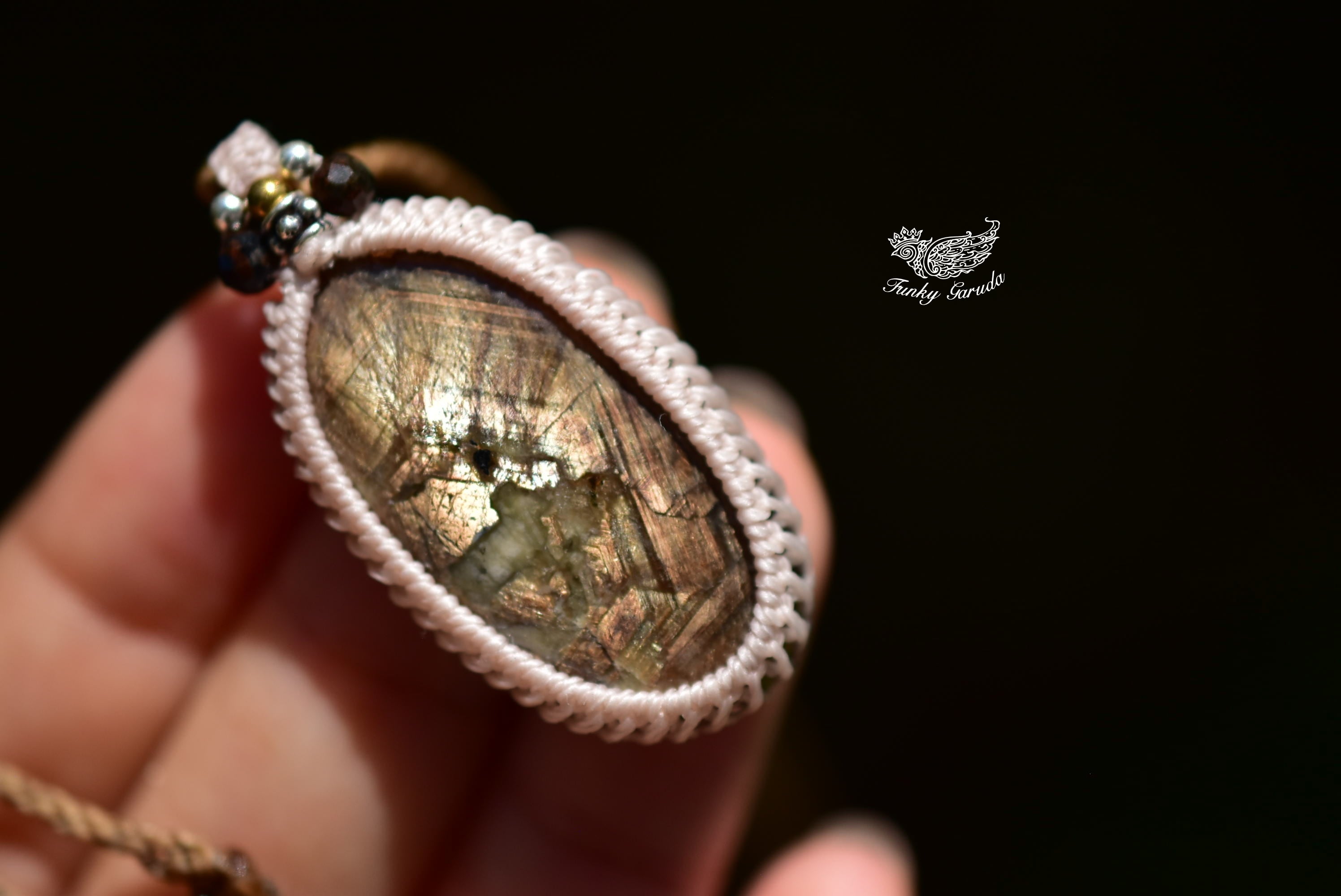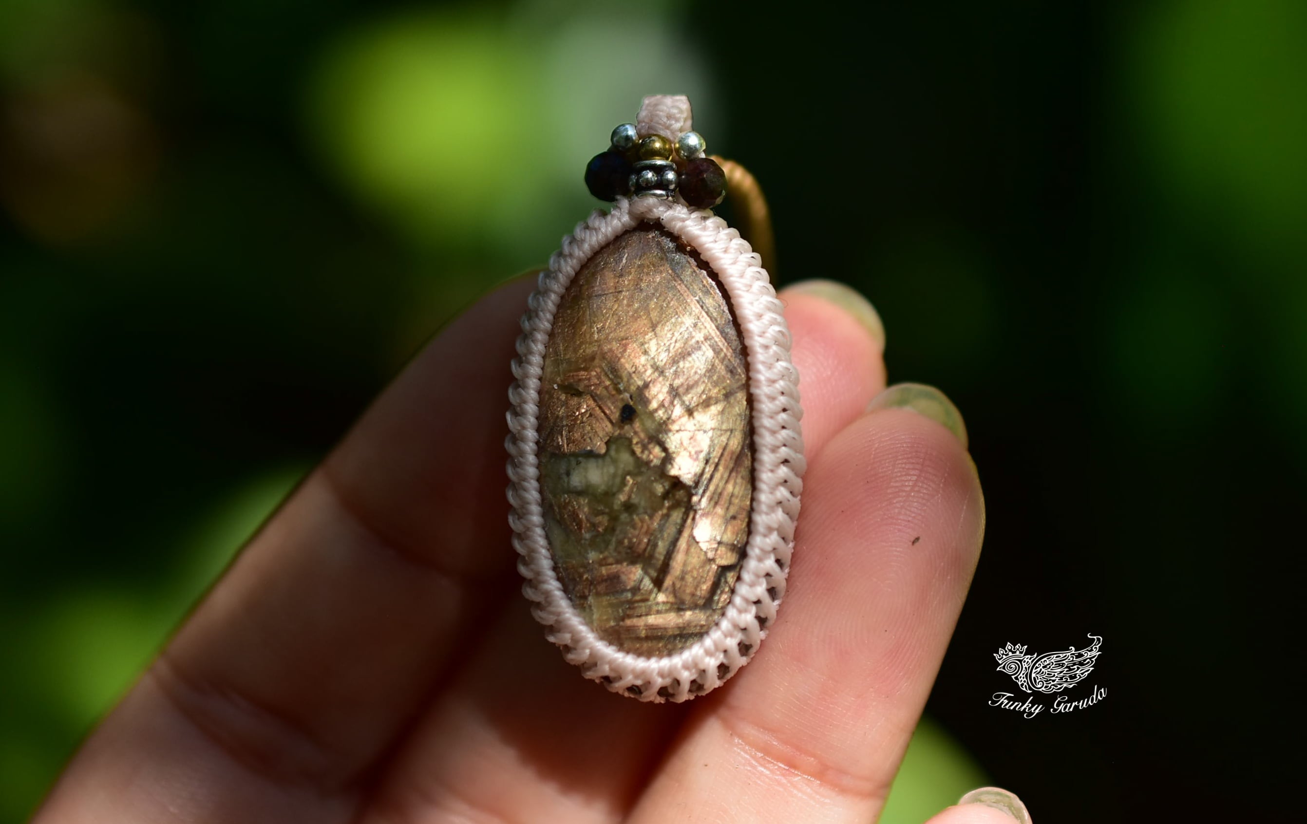 光るゴールド★ゴールデンサファイア マクラメペンダント487