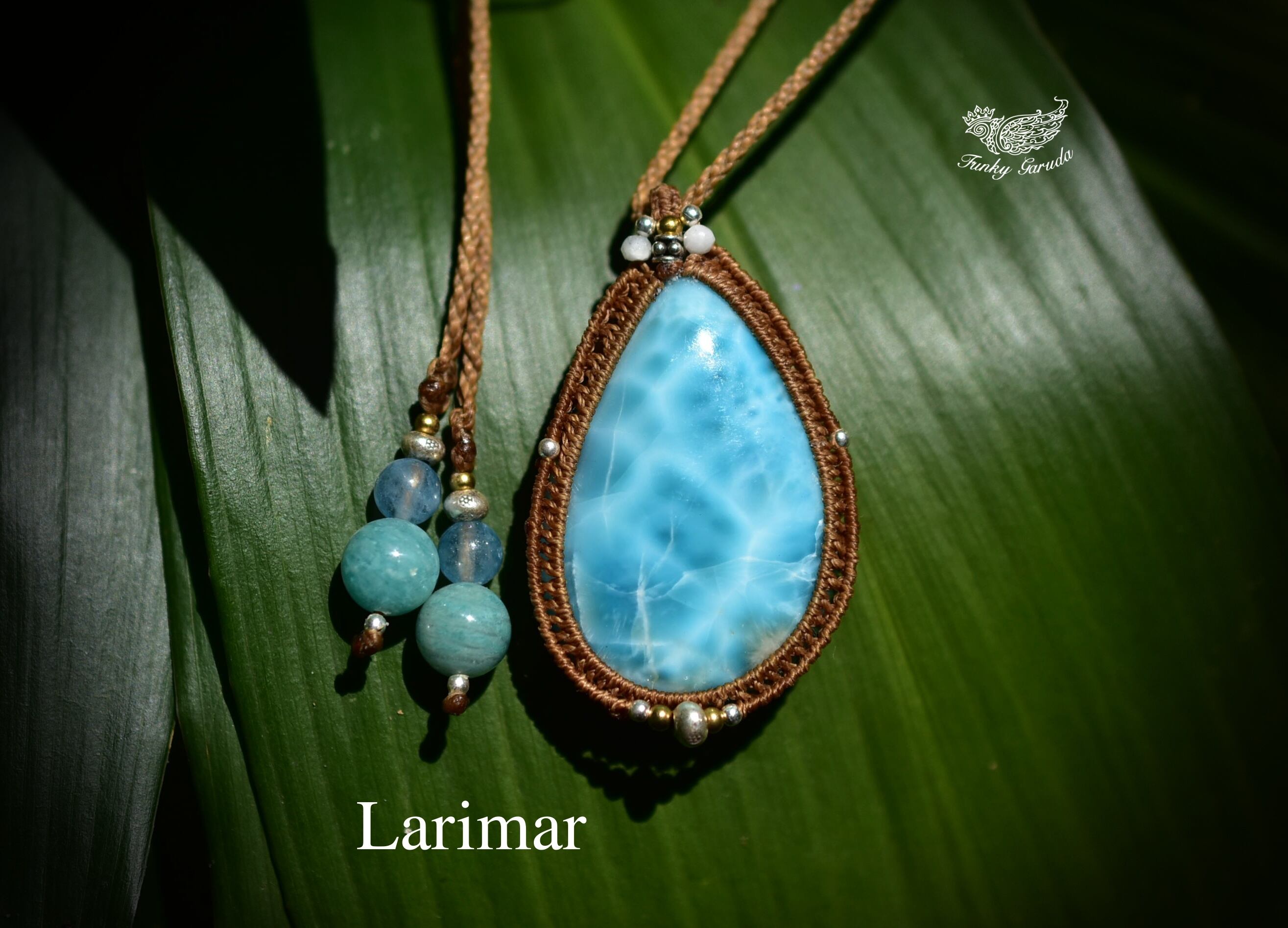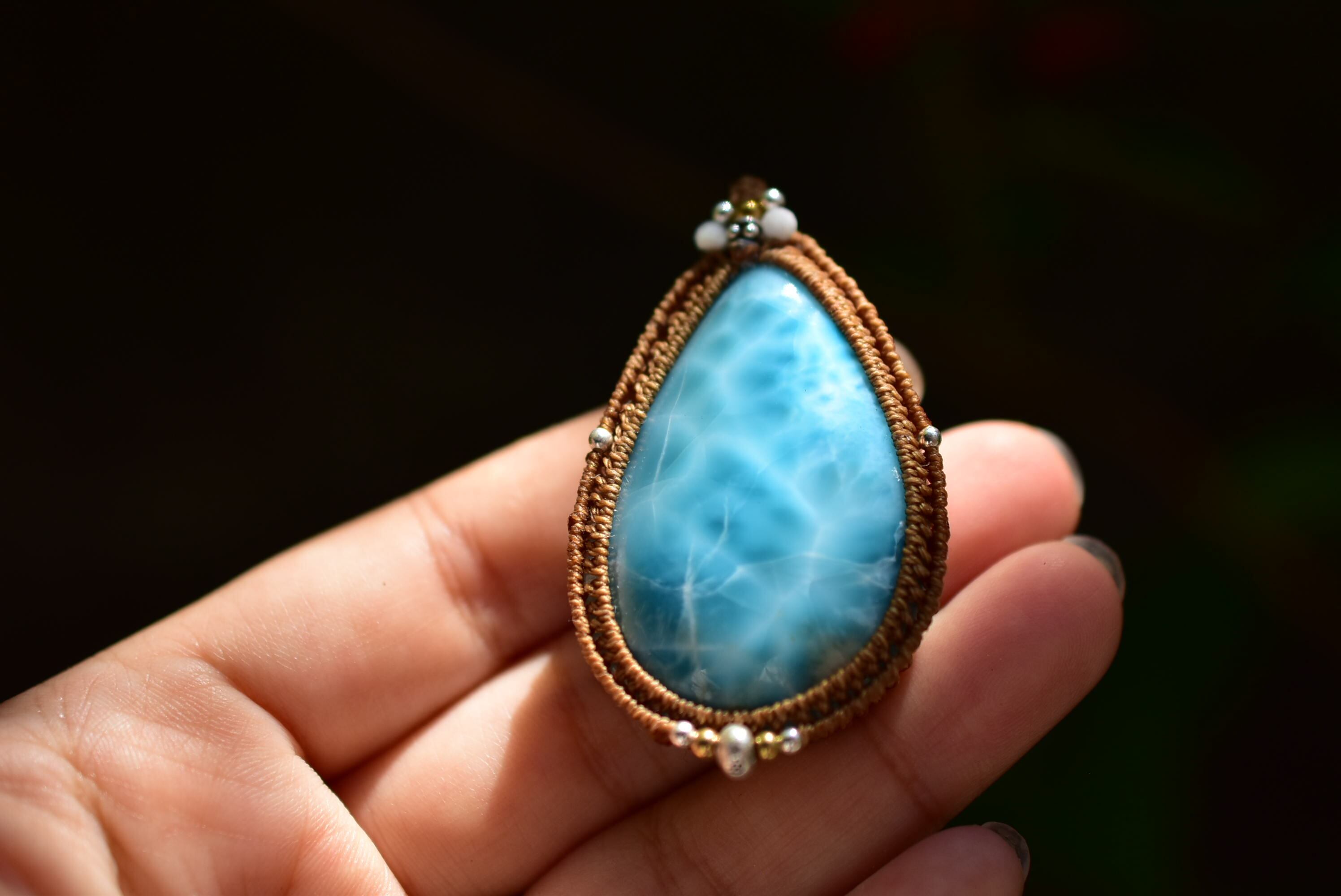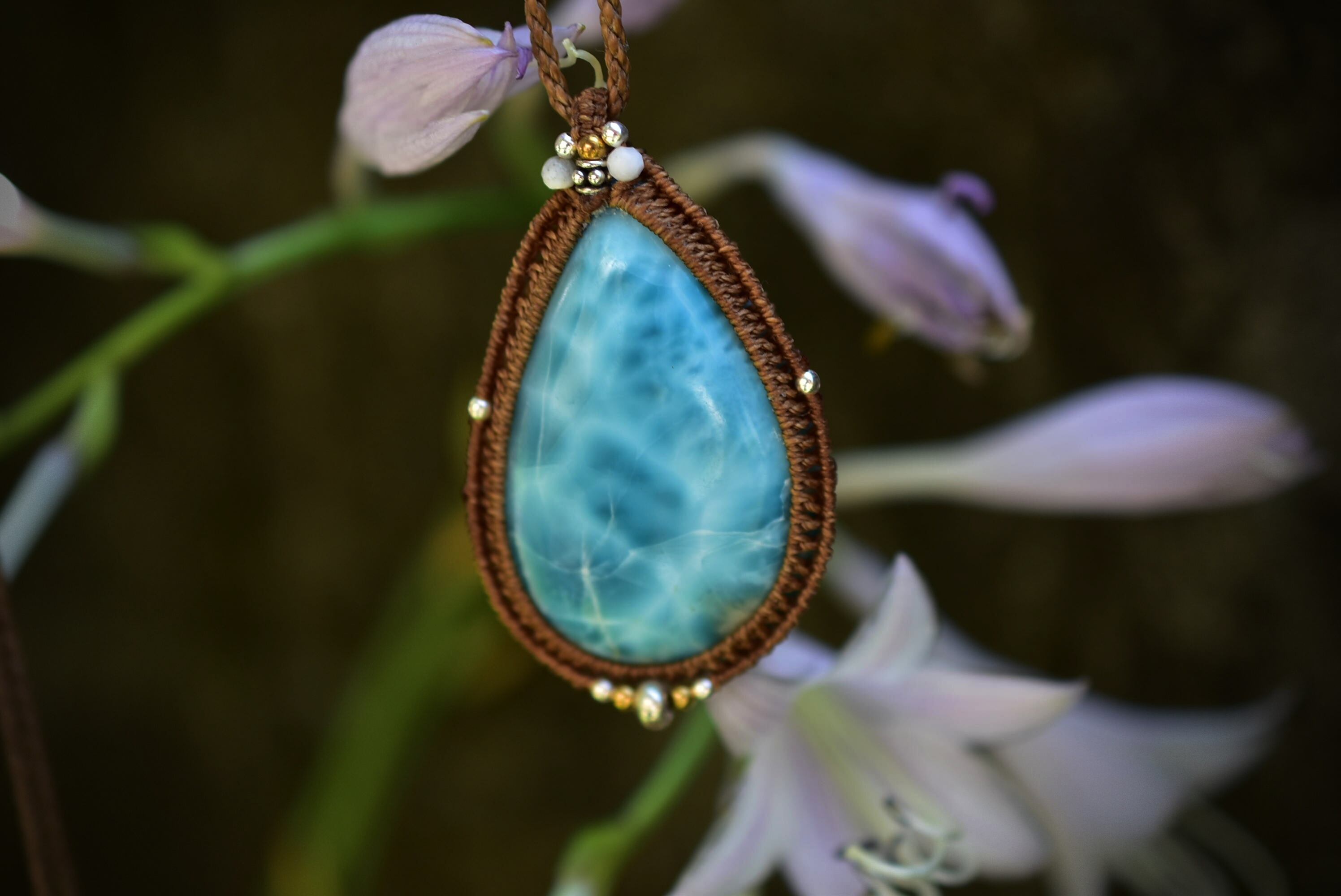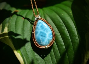 波とカケラ★大粒★ラリマー マクラメペンダント490