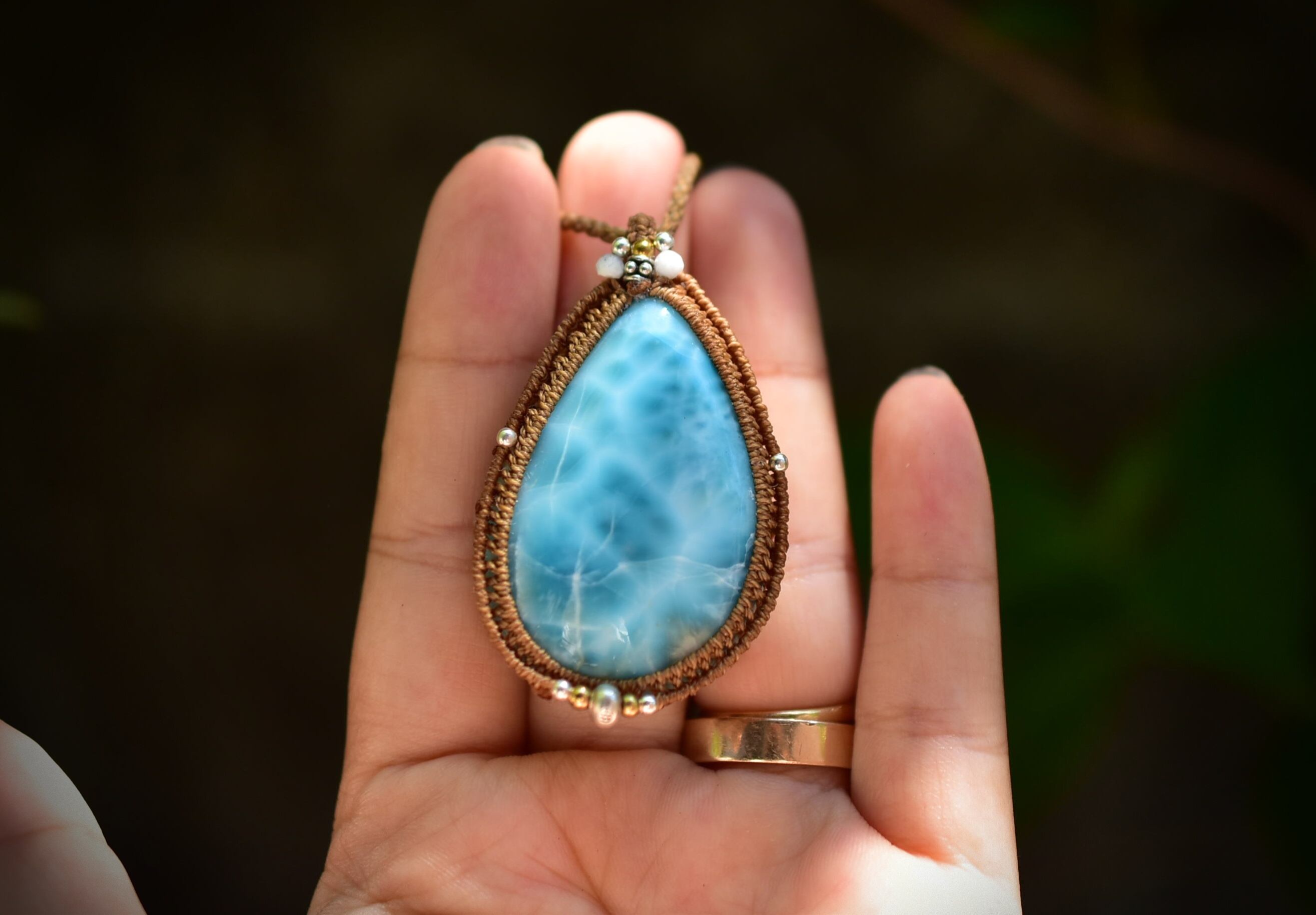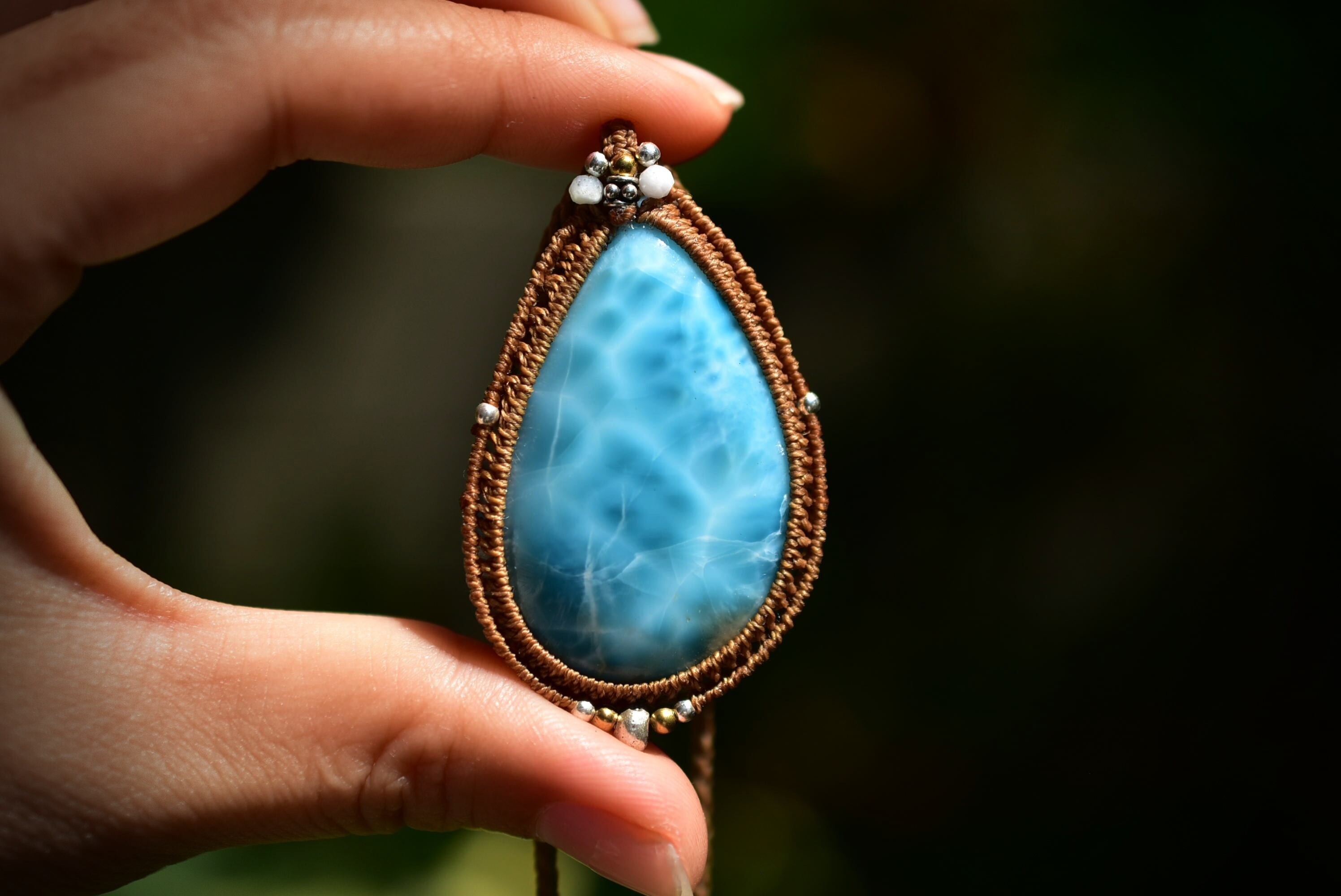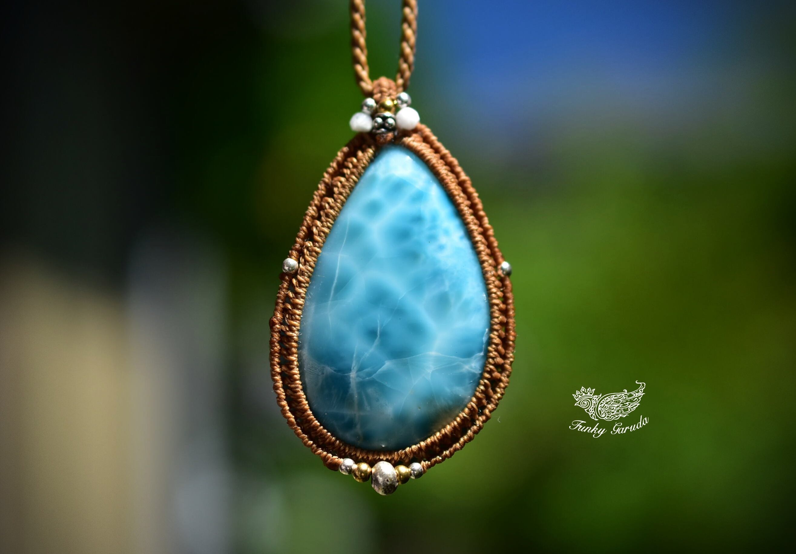 波とカケラ★大粒★ラリマー マクラメペンダント490
