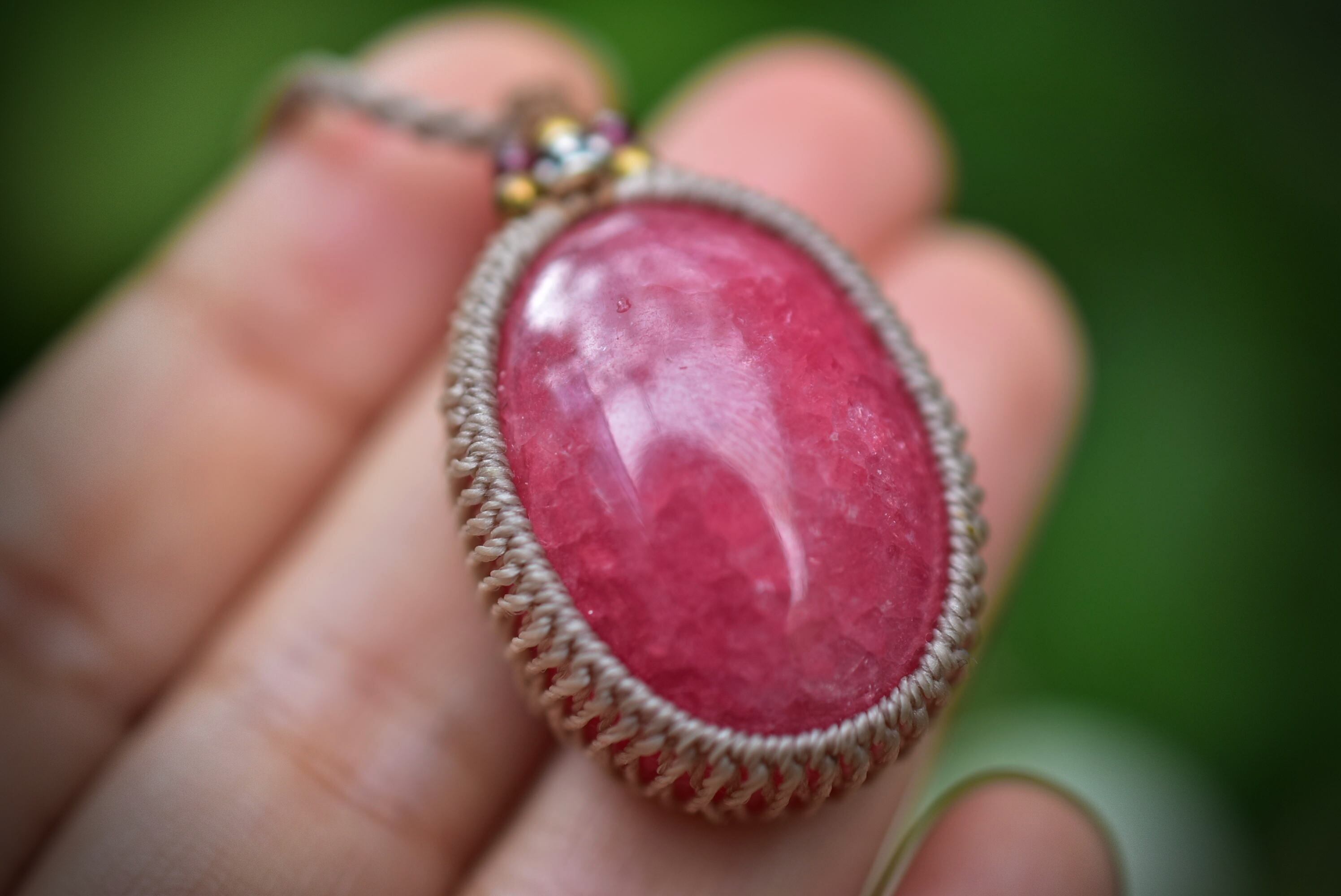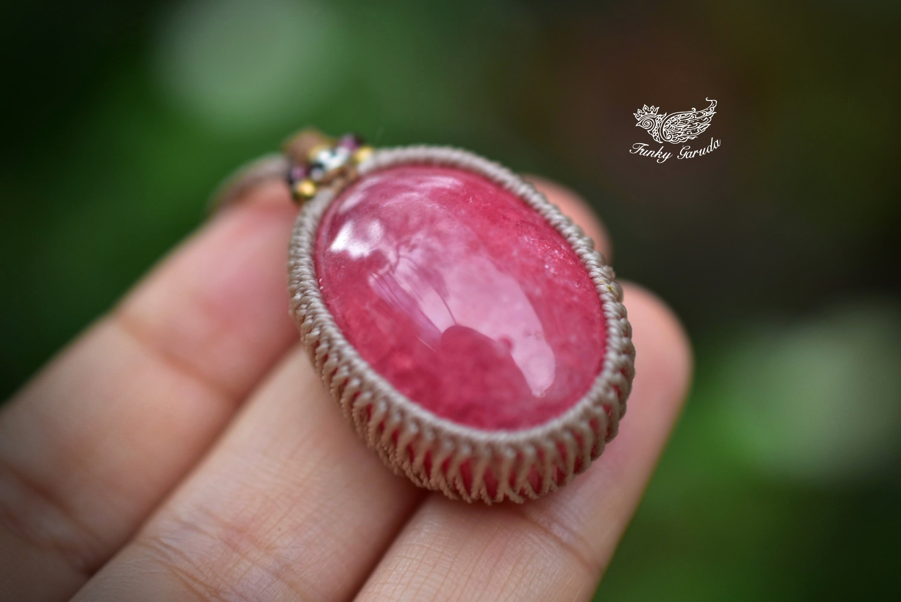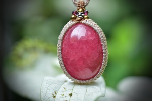 ◆このたびはキャラメル色の蝋引き糸を使用しマクラメ編み装飾を施しました。
