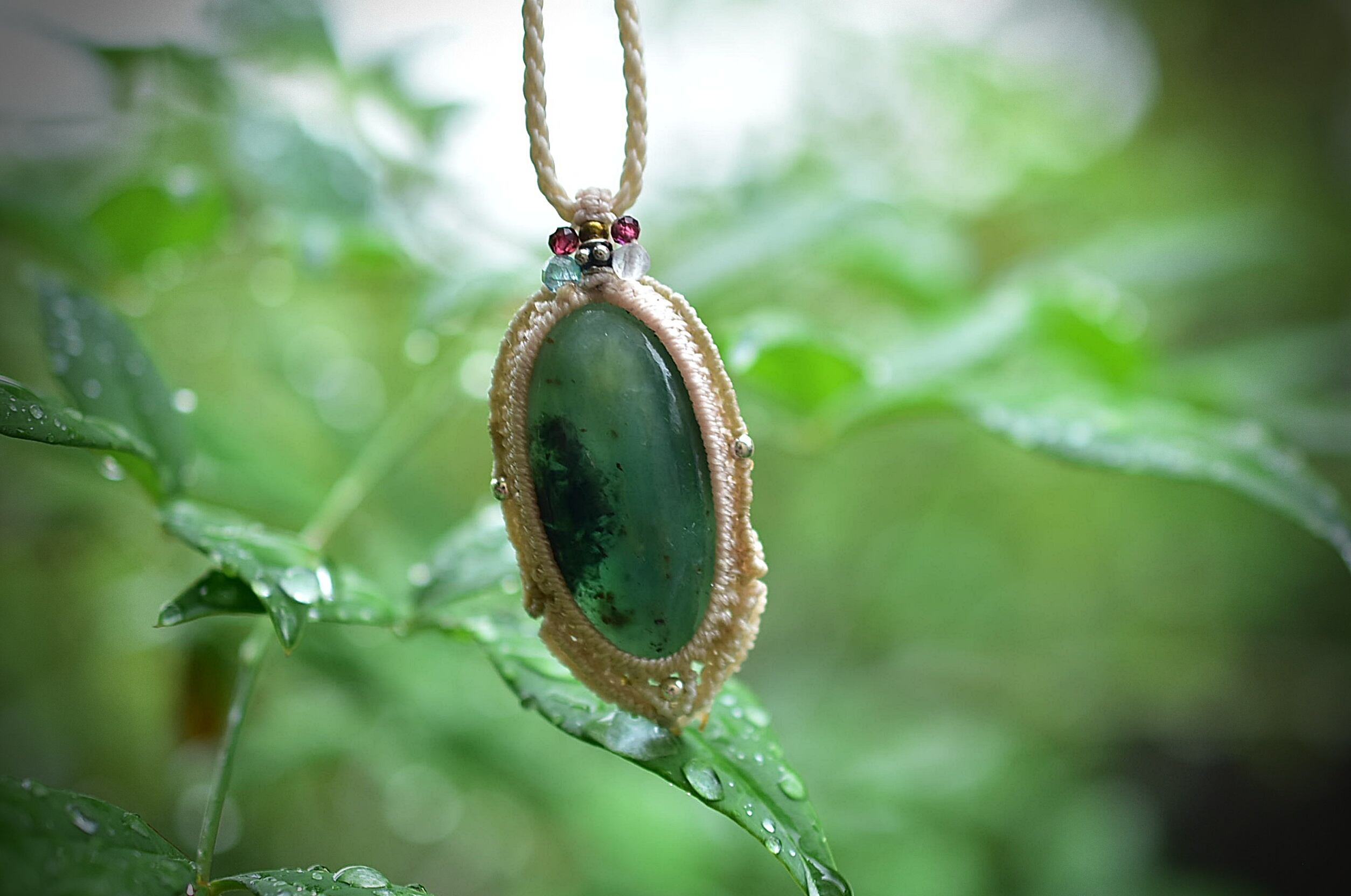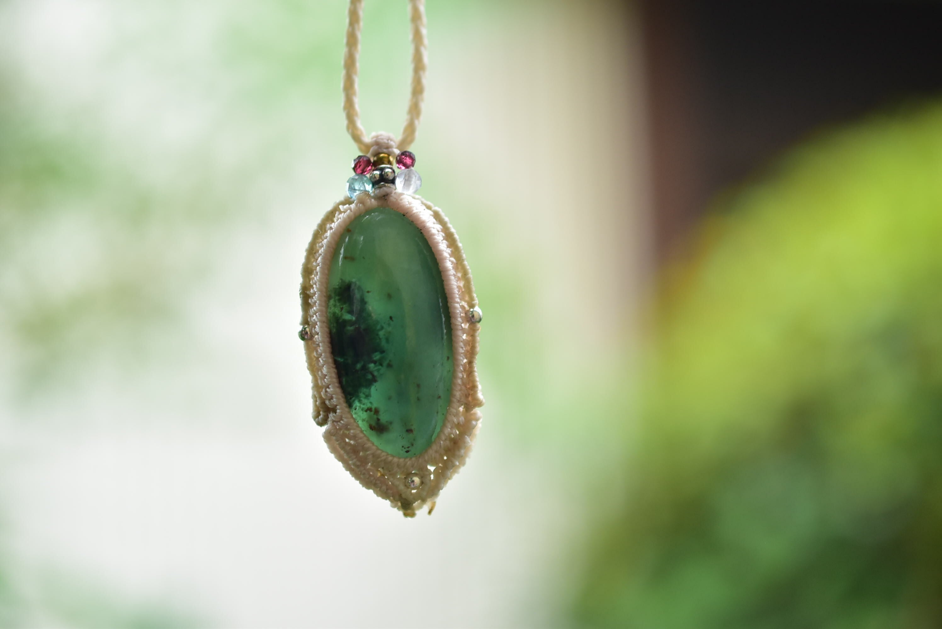 グラデーション★大きなエメラルド★マクラメペンダント500