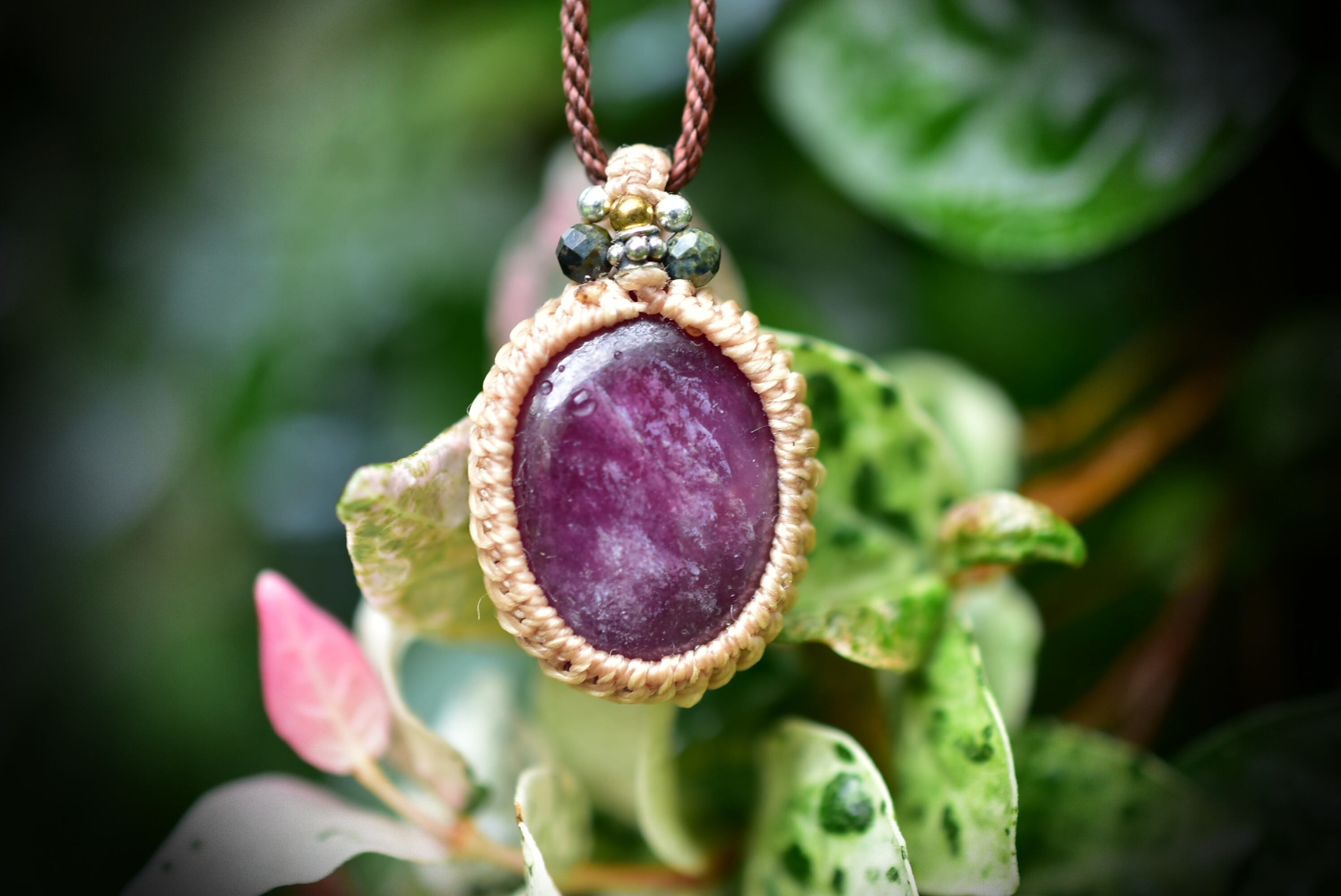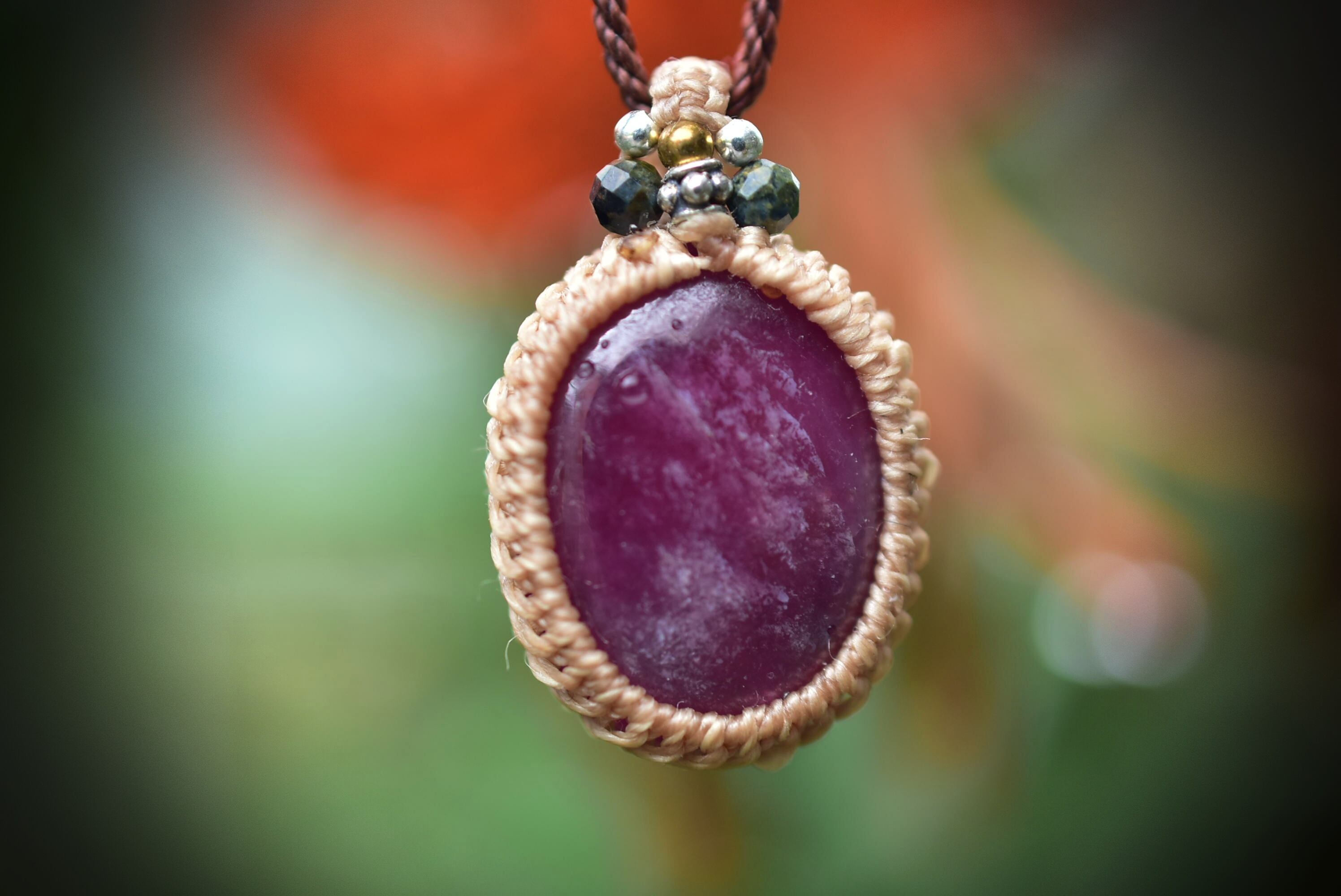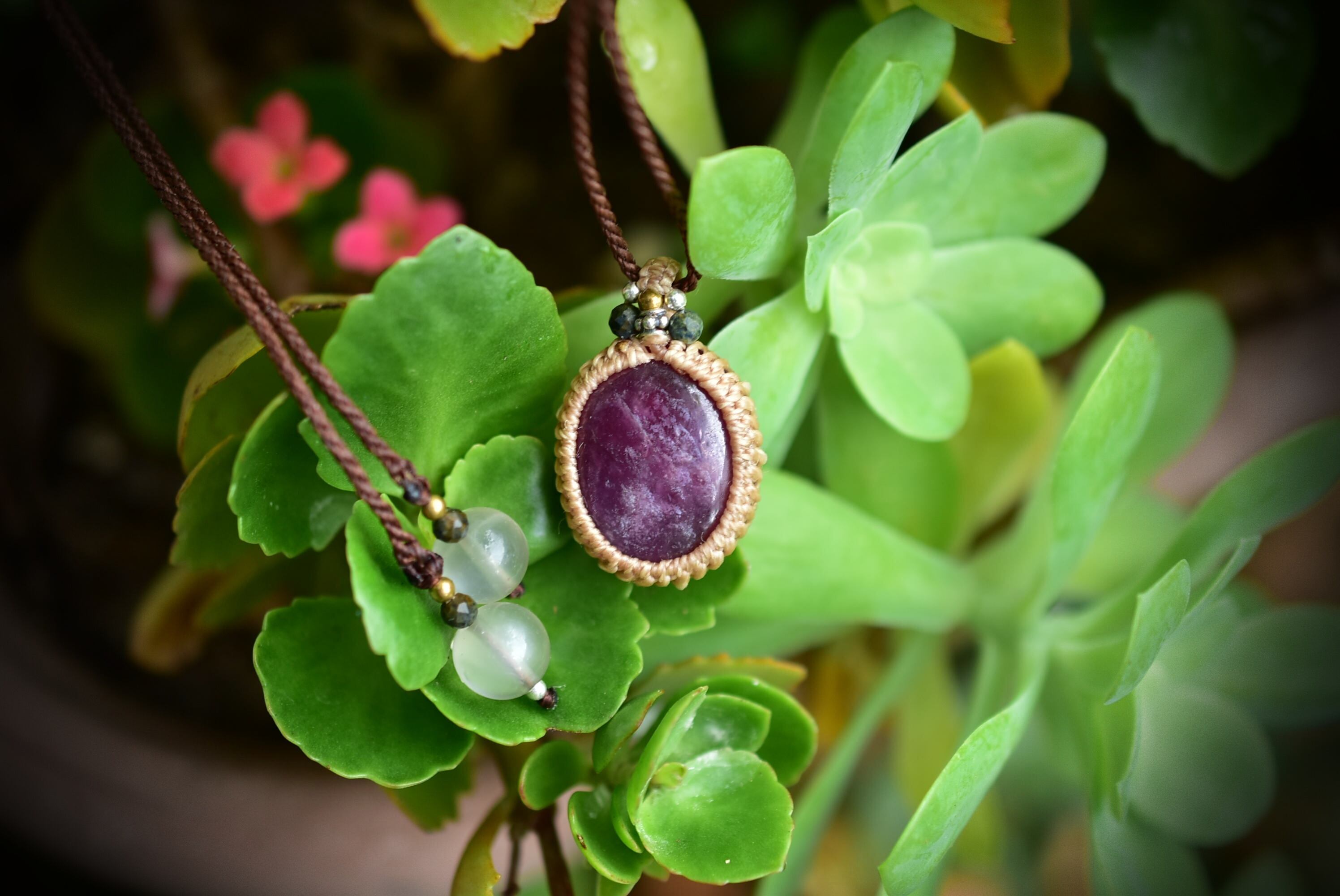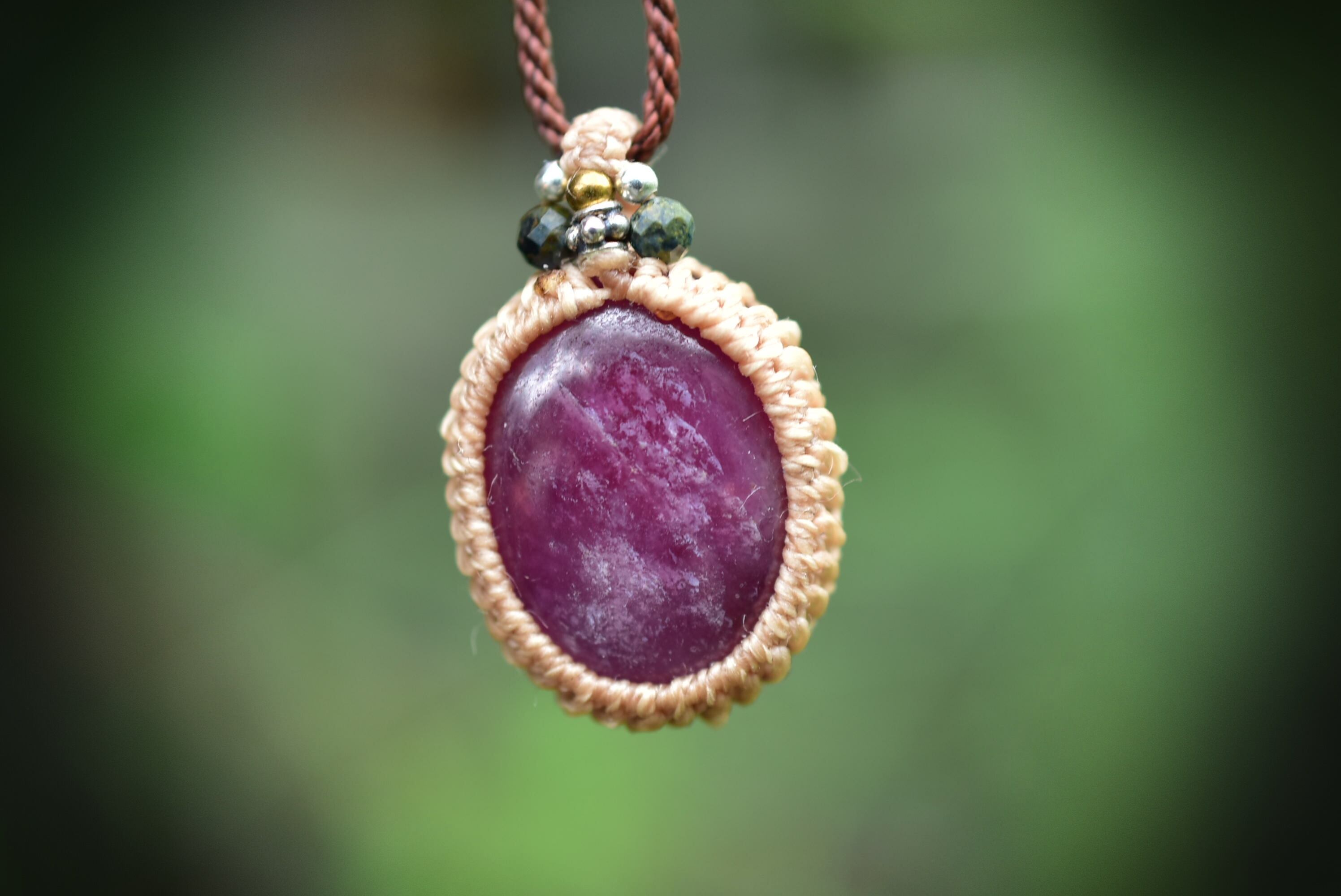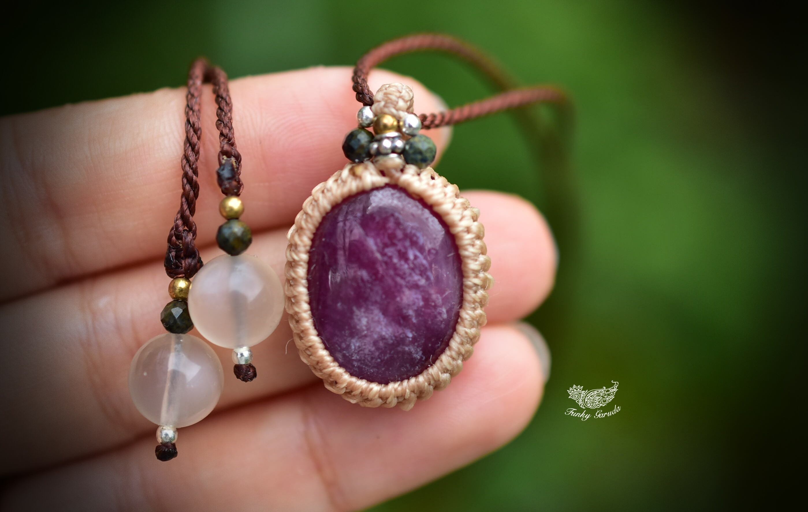 クラウディとシラー★ローズルビー マクラメペンダント504