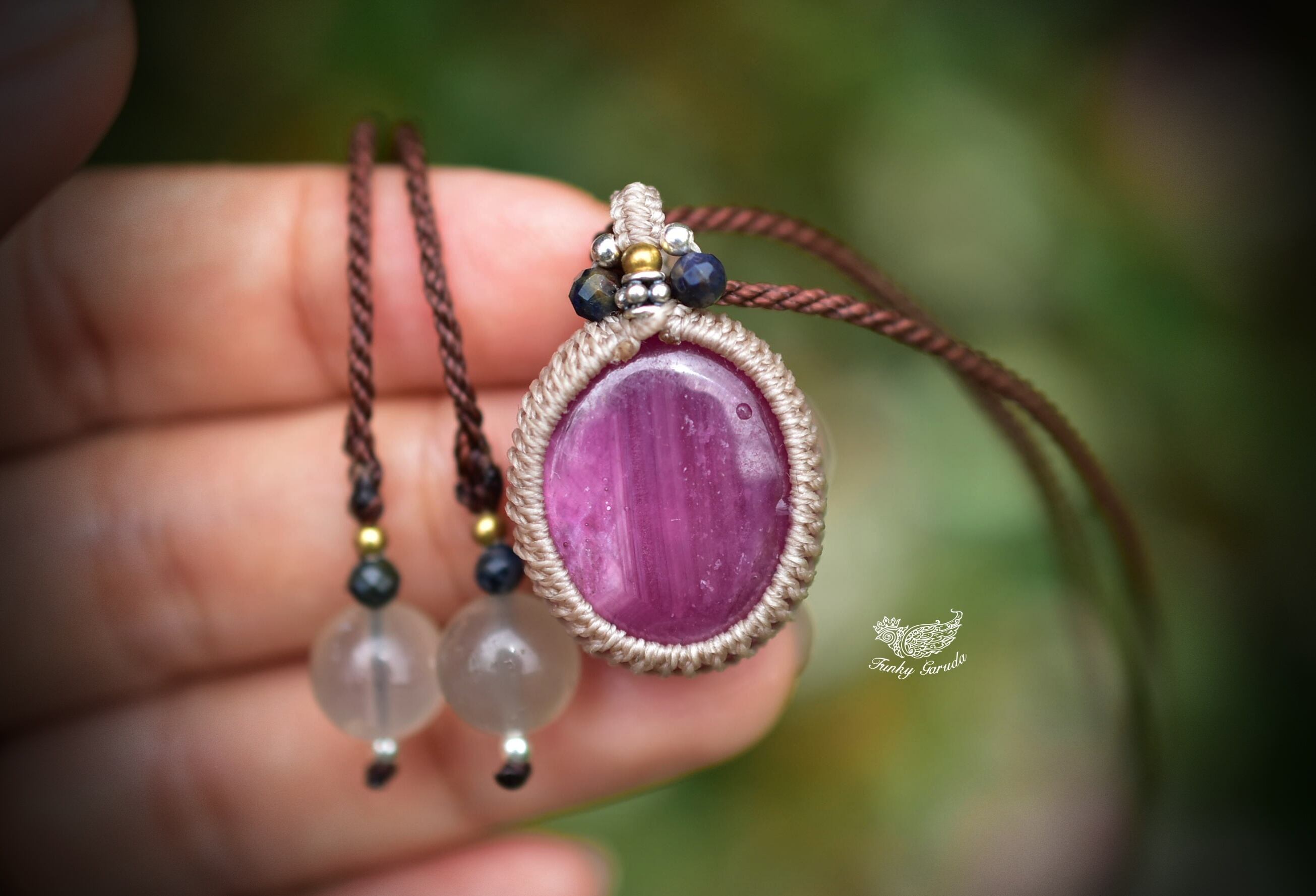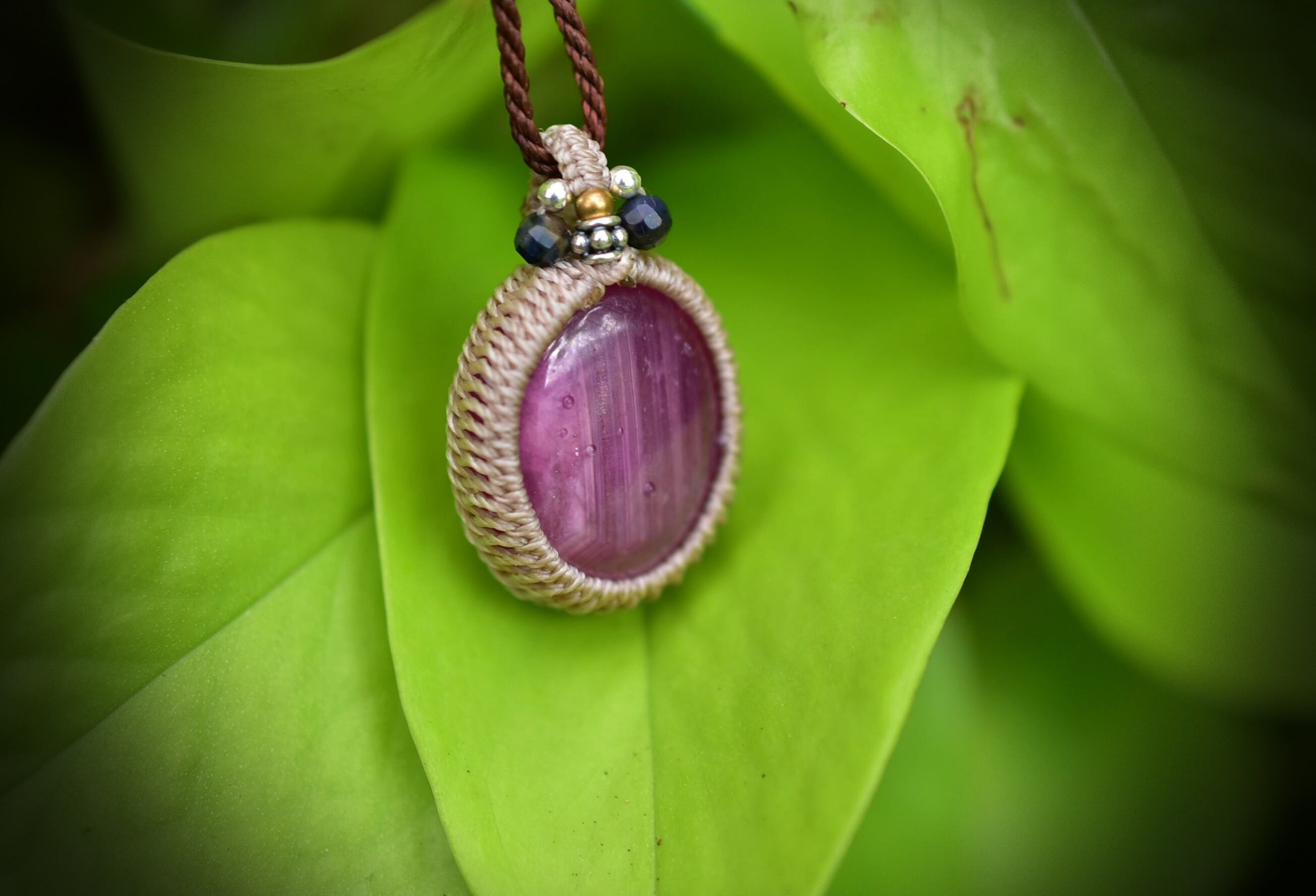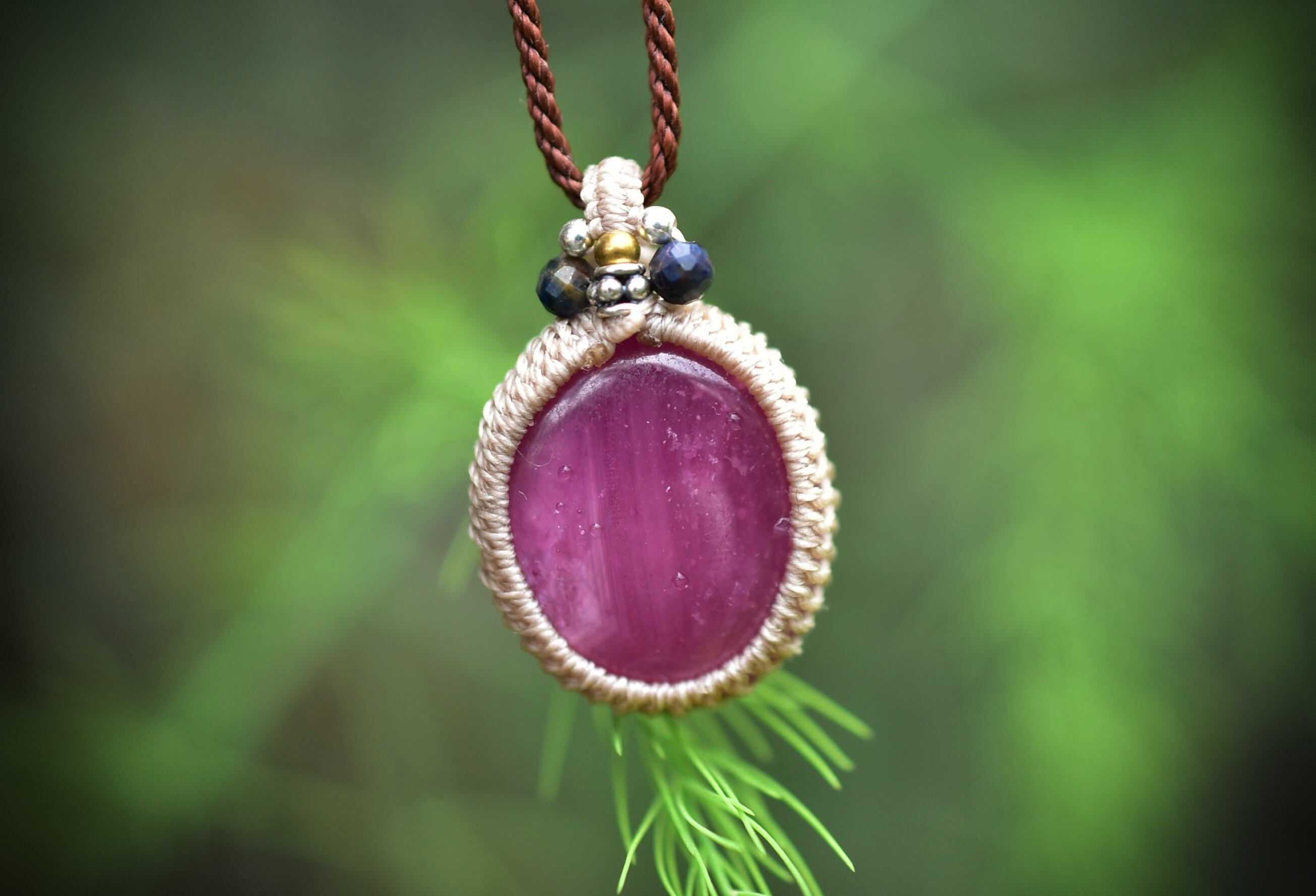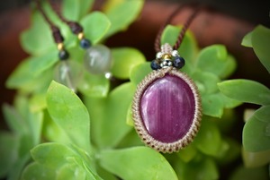 高品質★輝くシルク★ルビー マクラメペンダント506