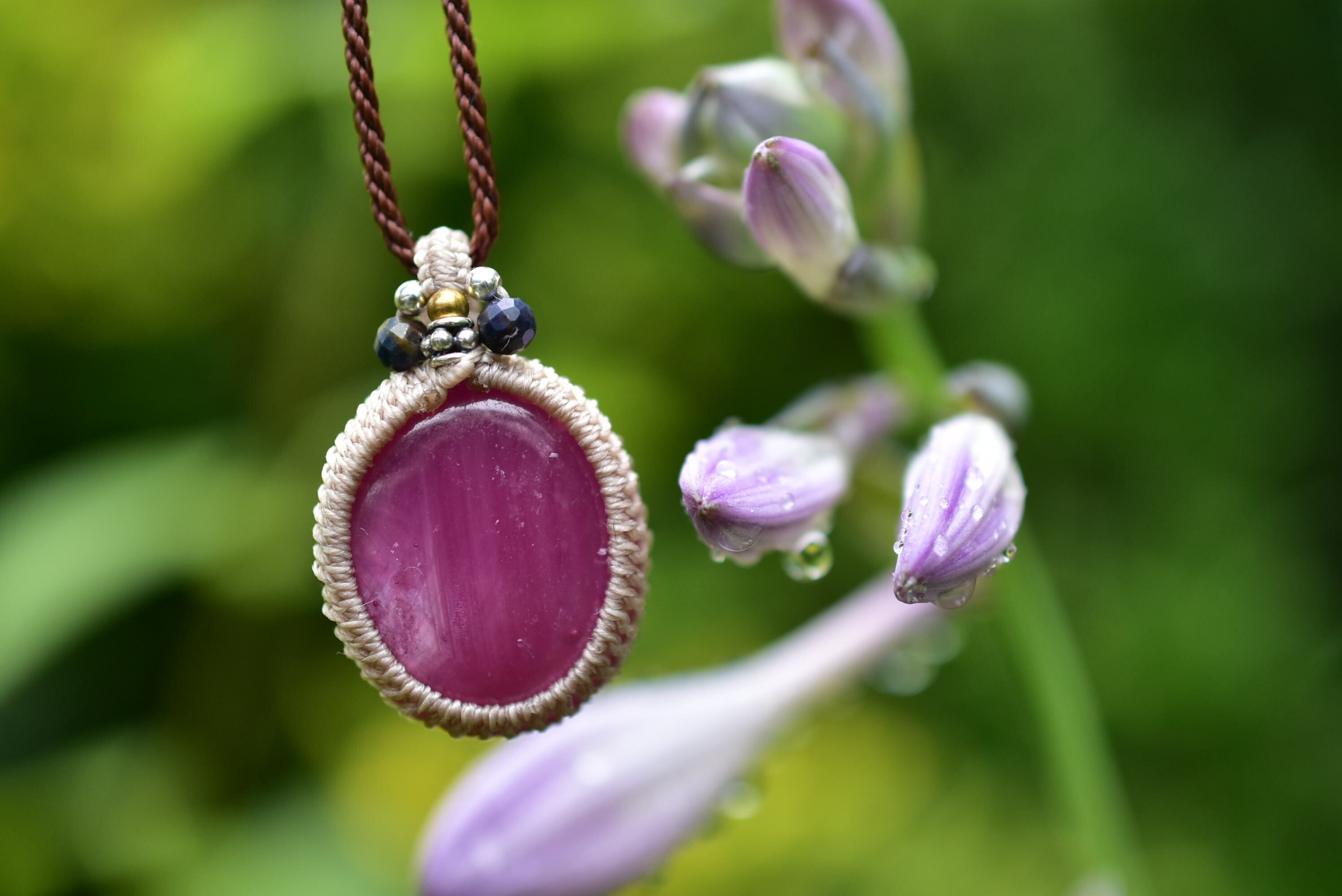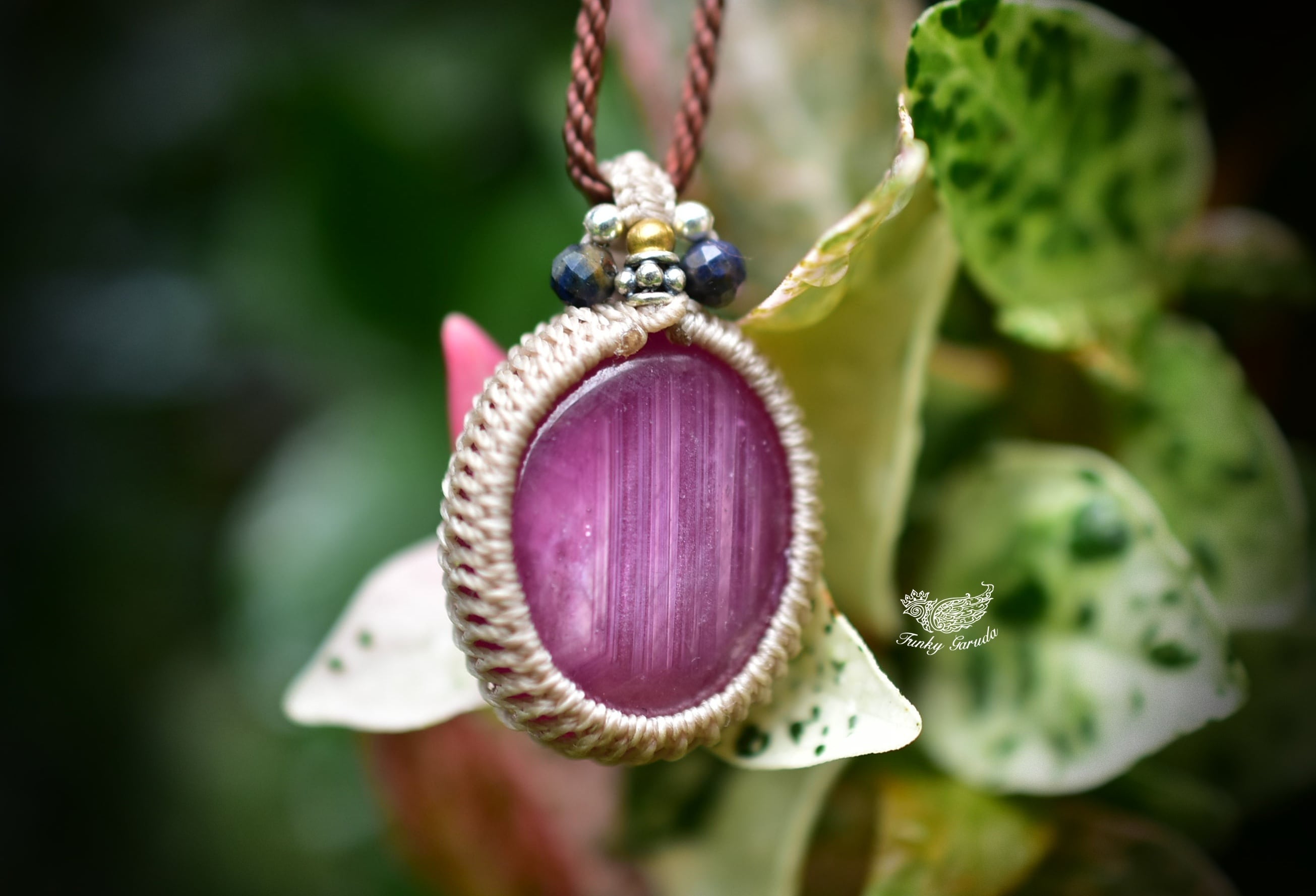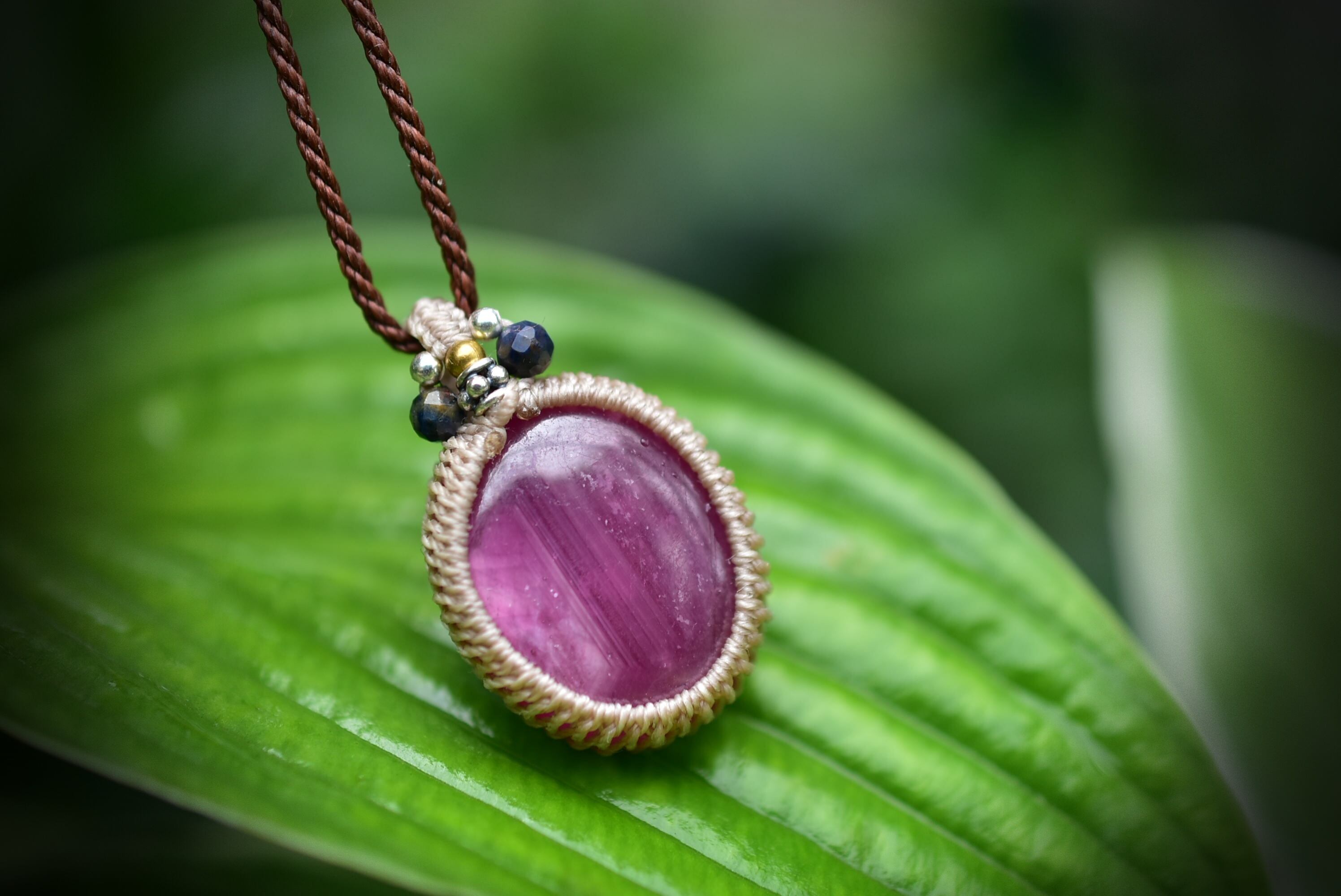 高品質★輝くシルク★ルビー マクラメペンダント506