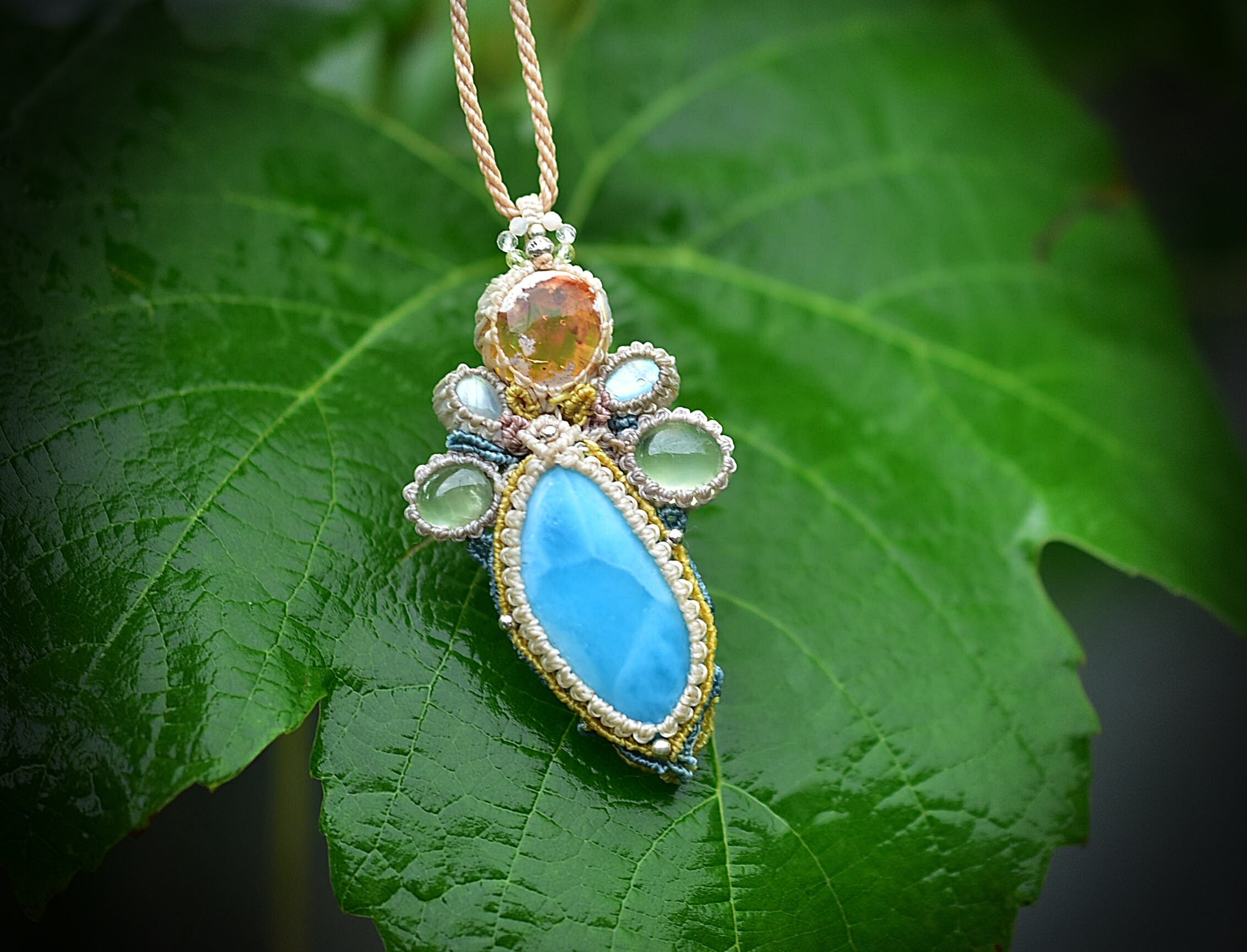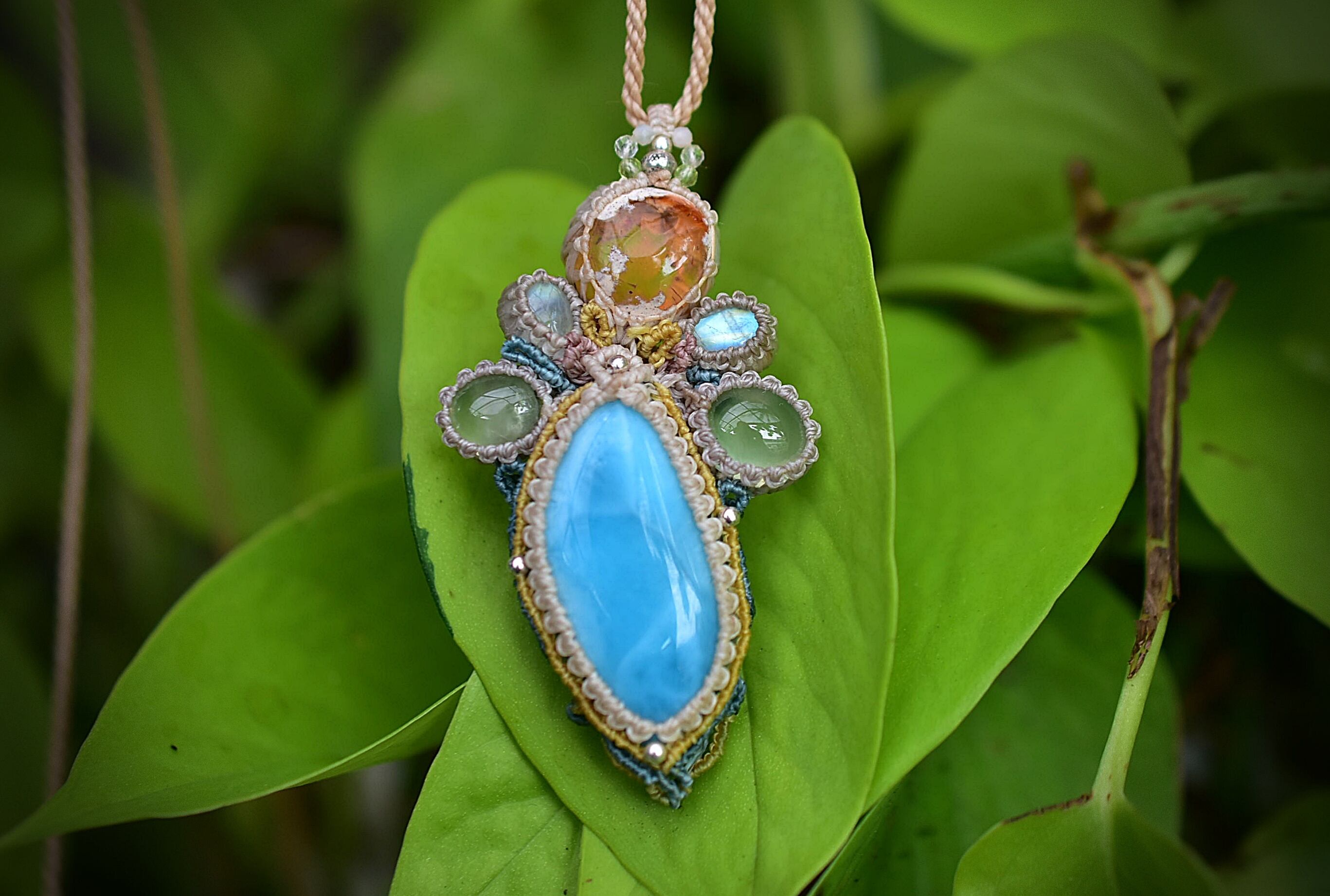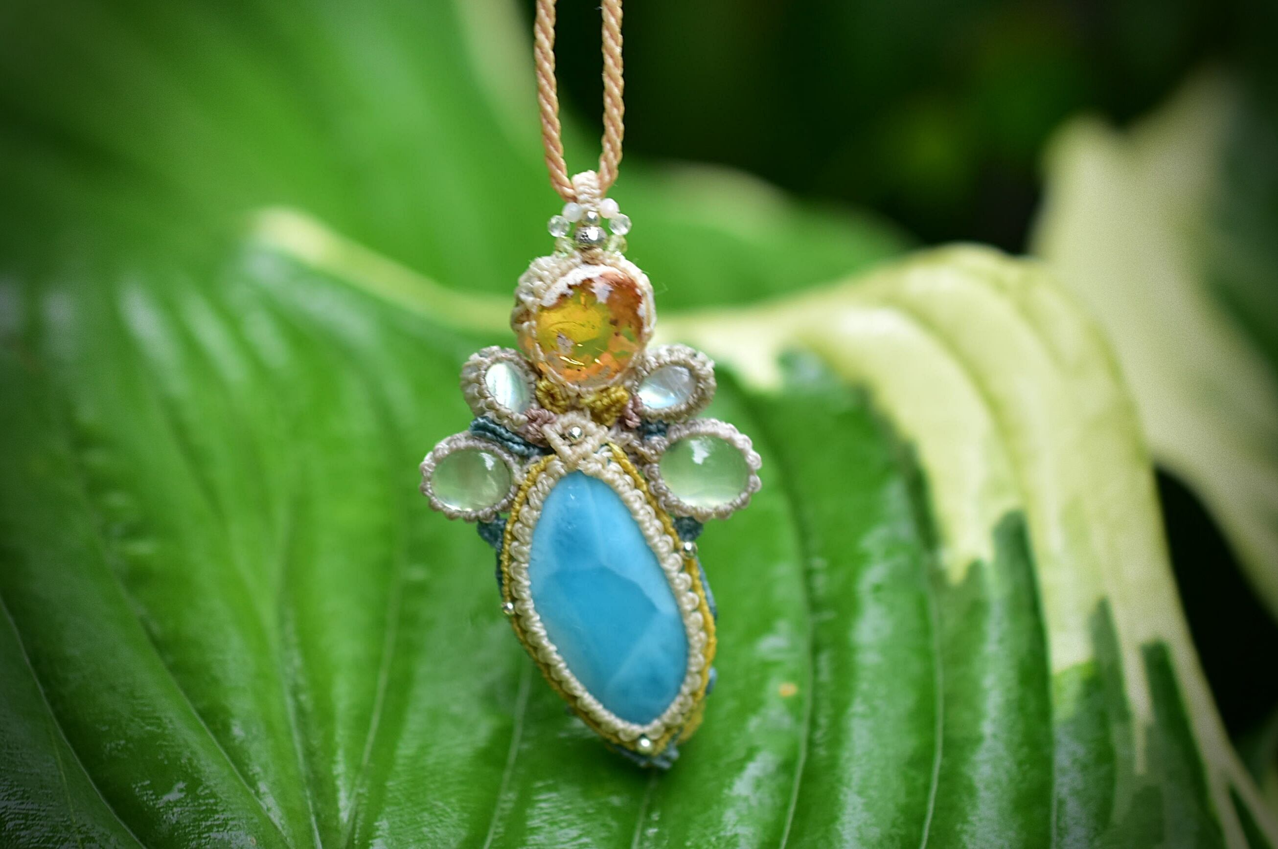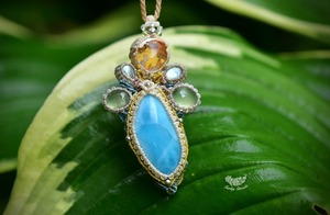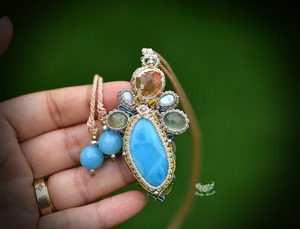 海と夕陽★ラリマー カンテラオパール マクラメペンダント581