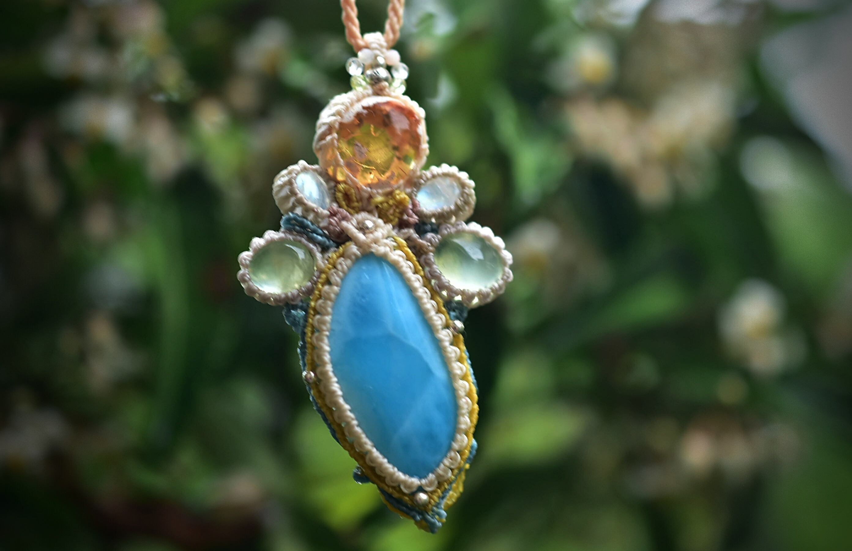 マクラメ編みペンダントを仕上げました