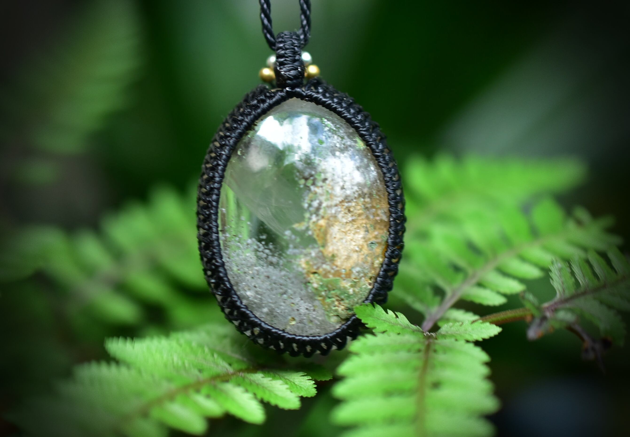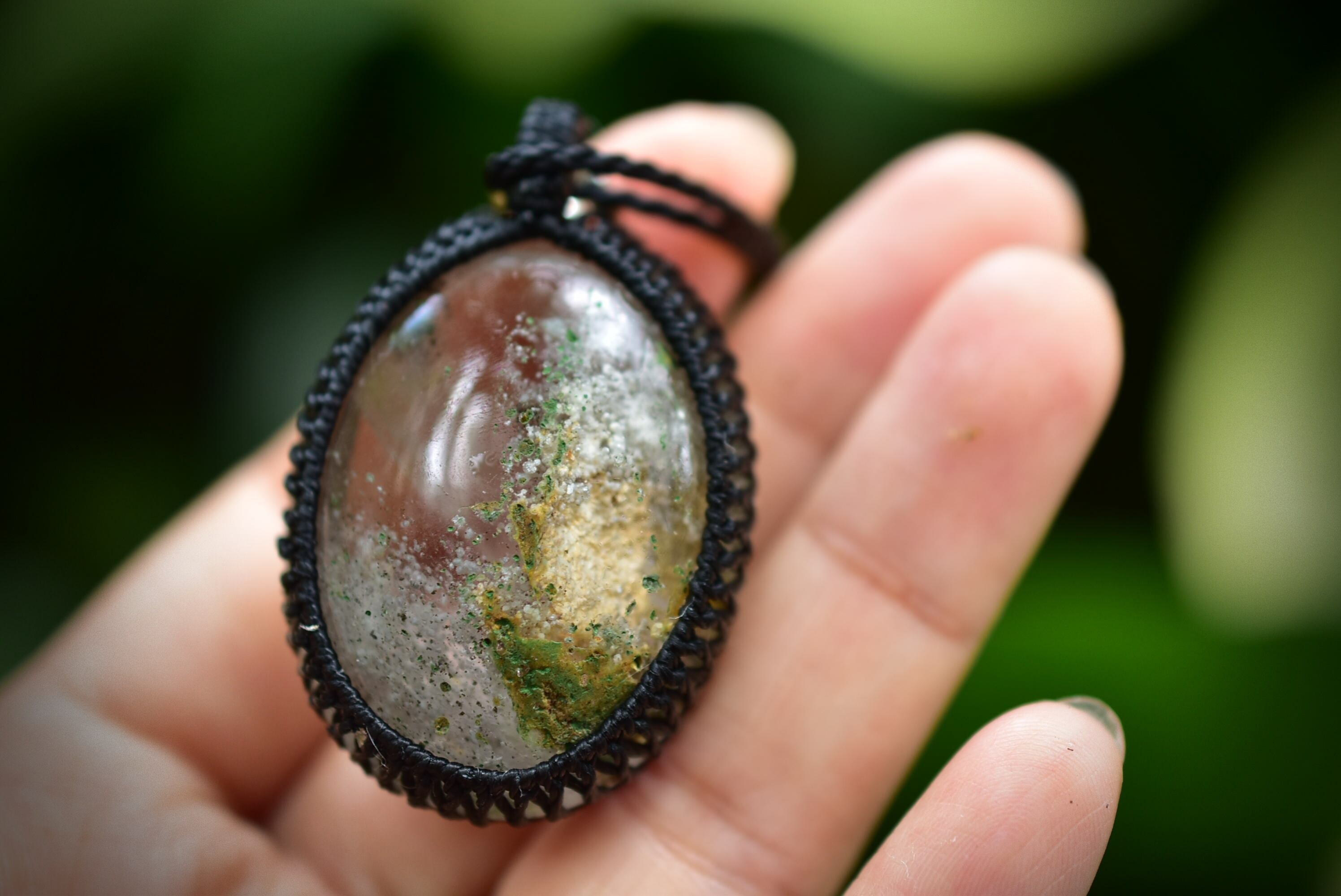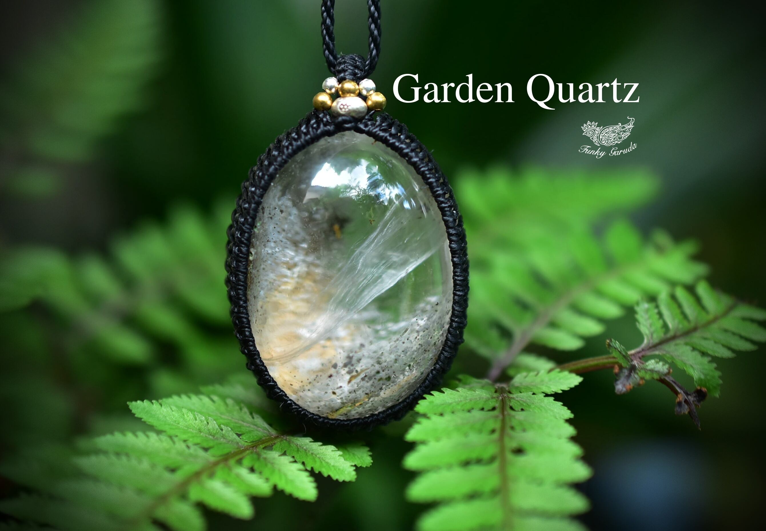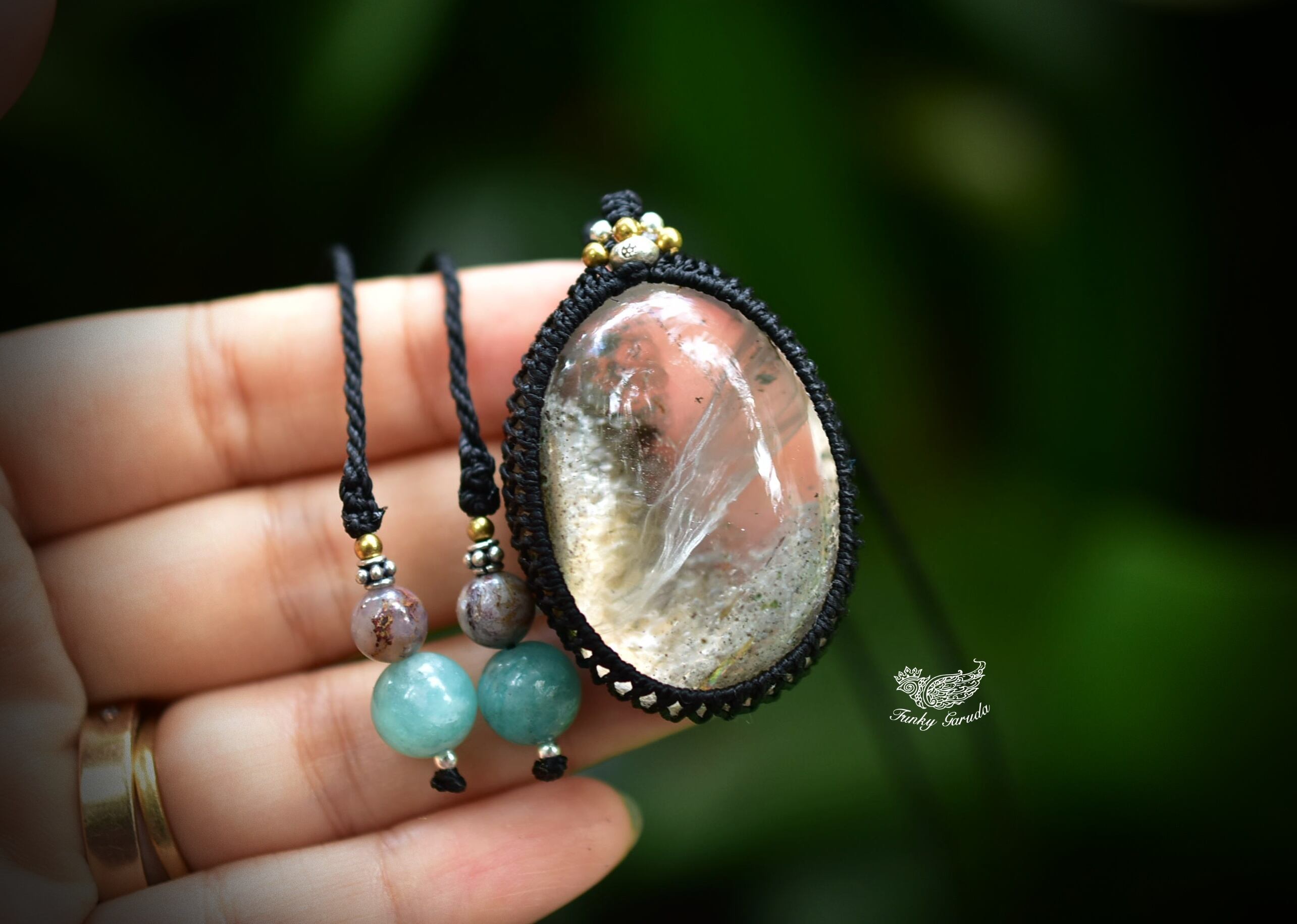 雪の煙★レア中粒★ガーデンクォーツ マクラメペンダント582