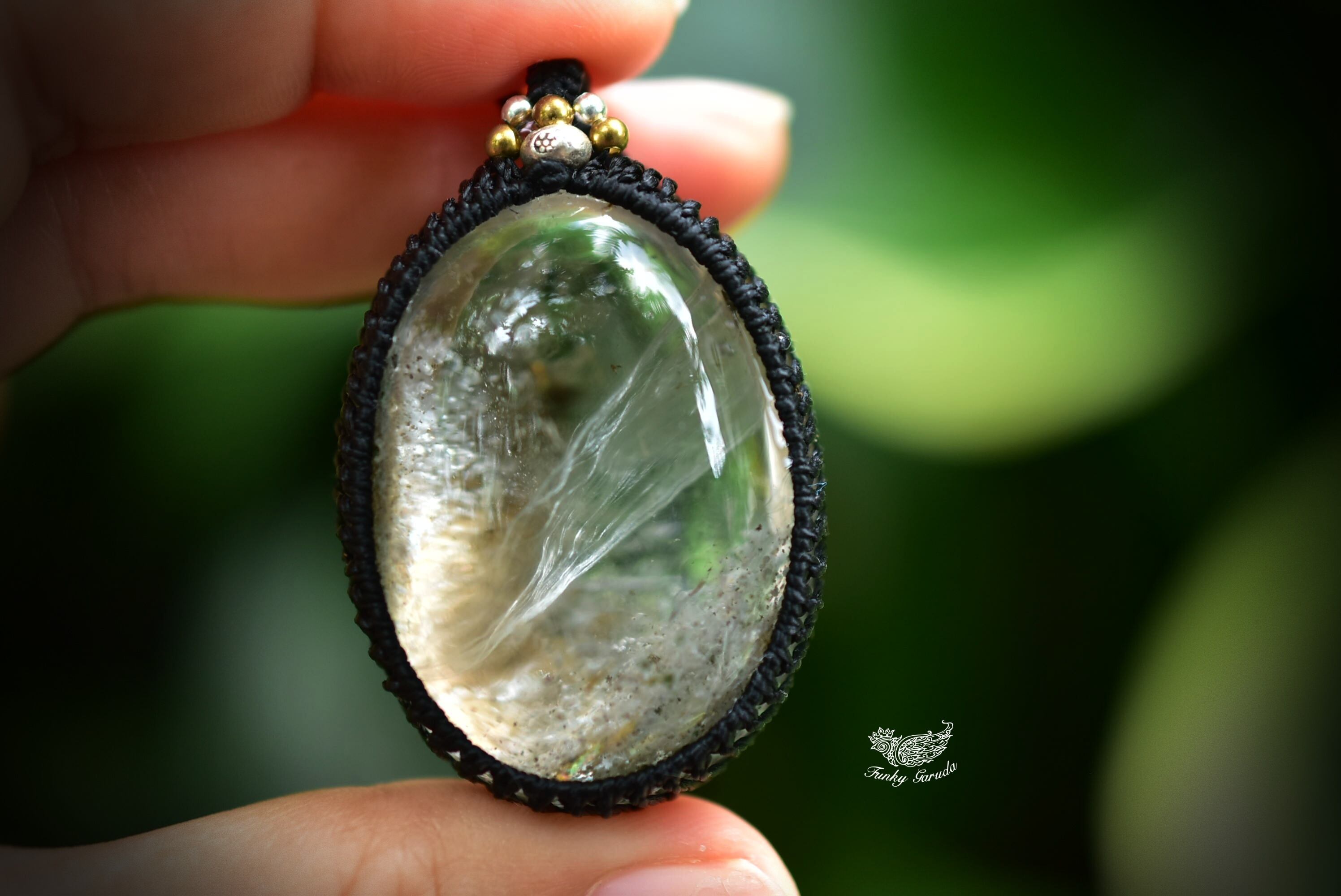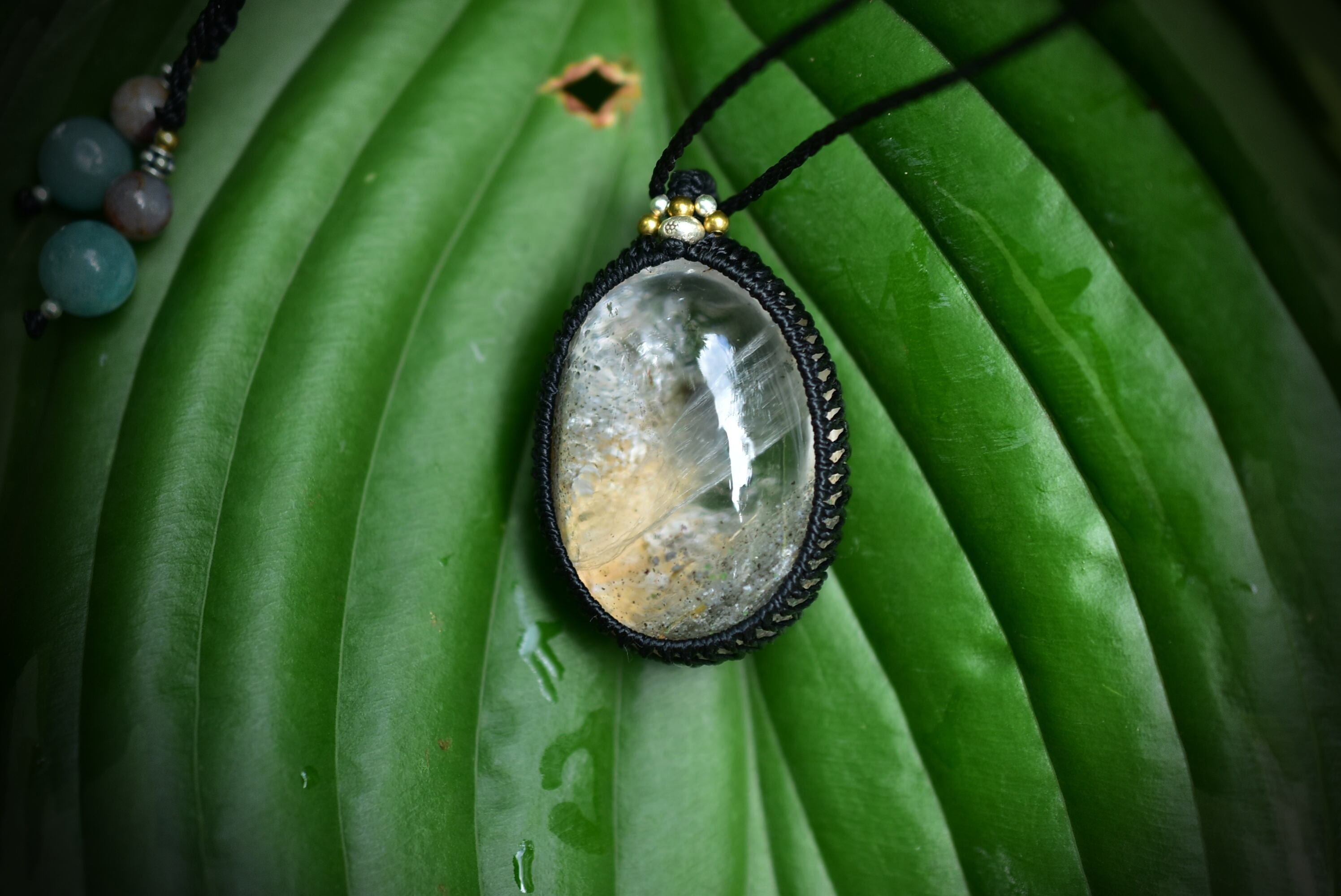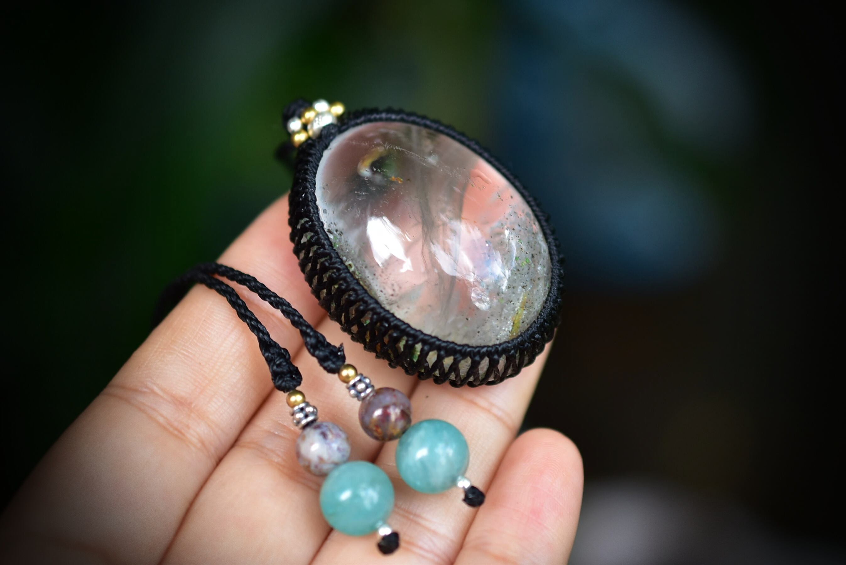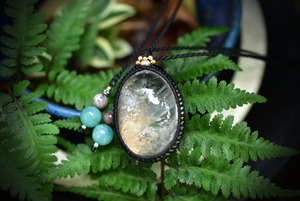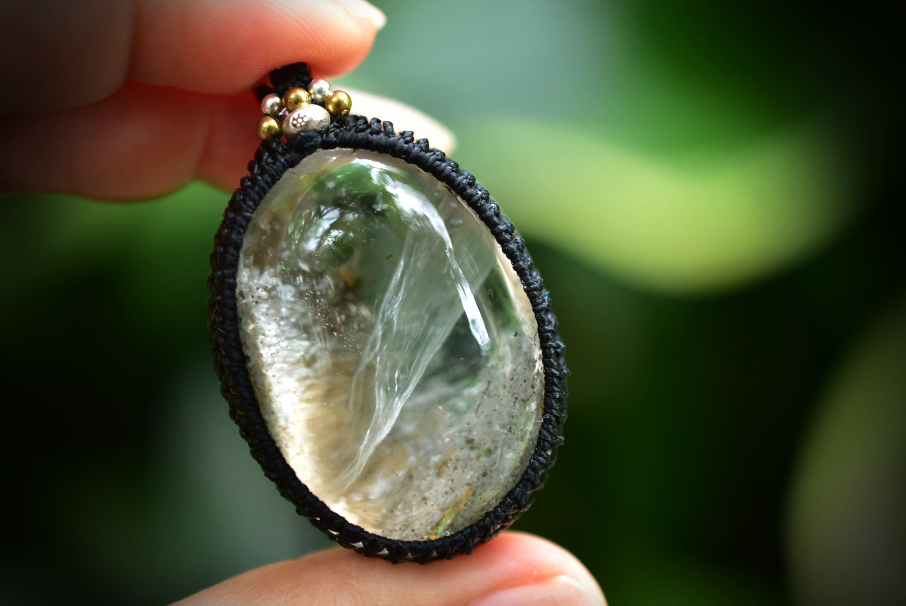 雪の煙★レア中粒★ガーデンクォーツ マクラメペンダント582