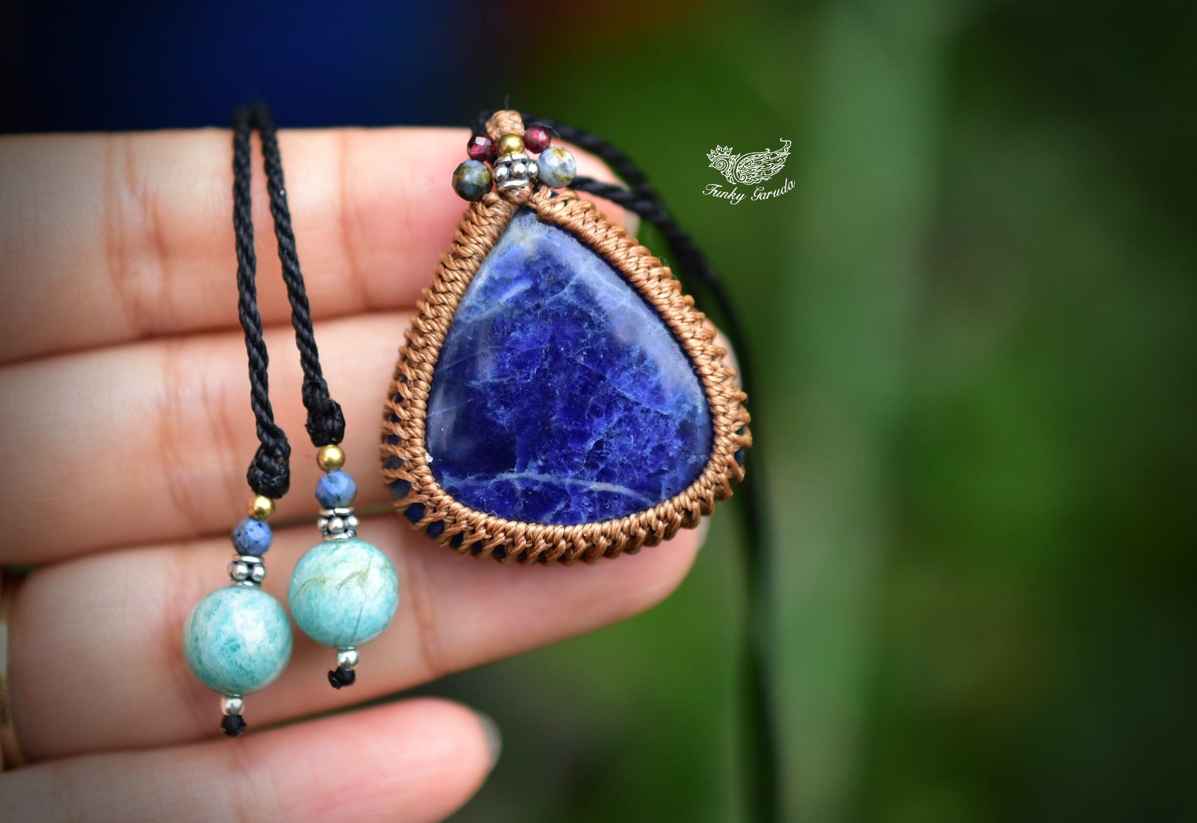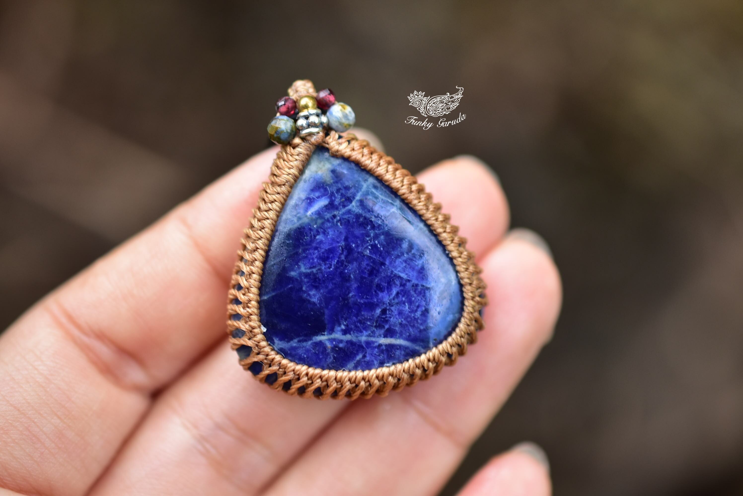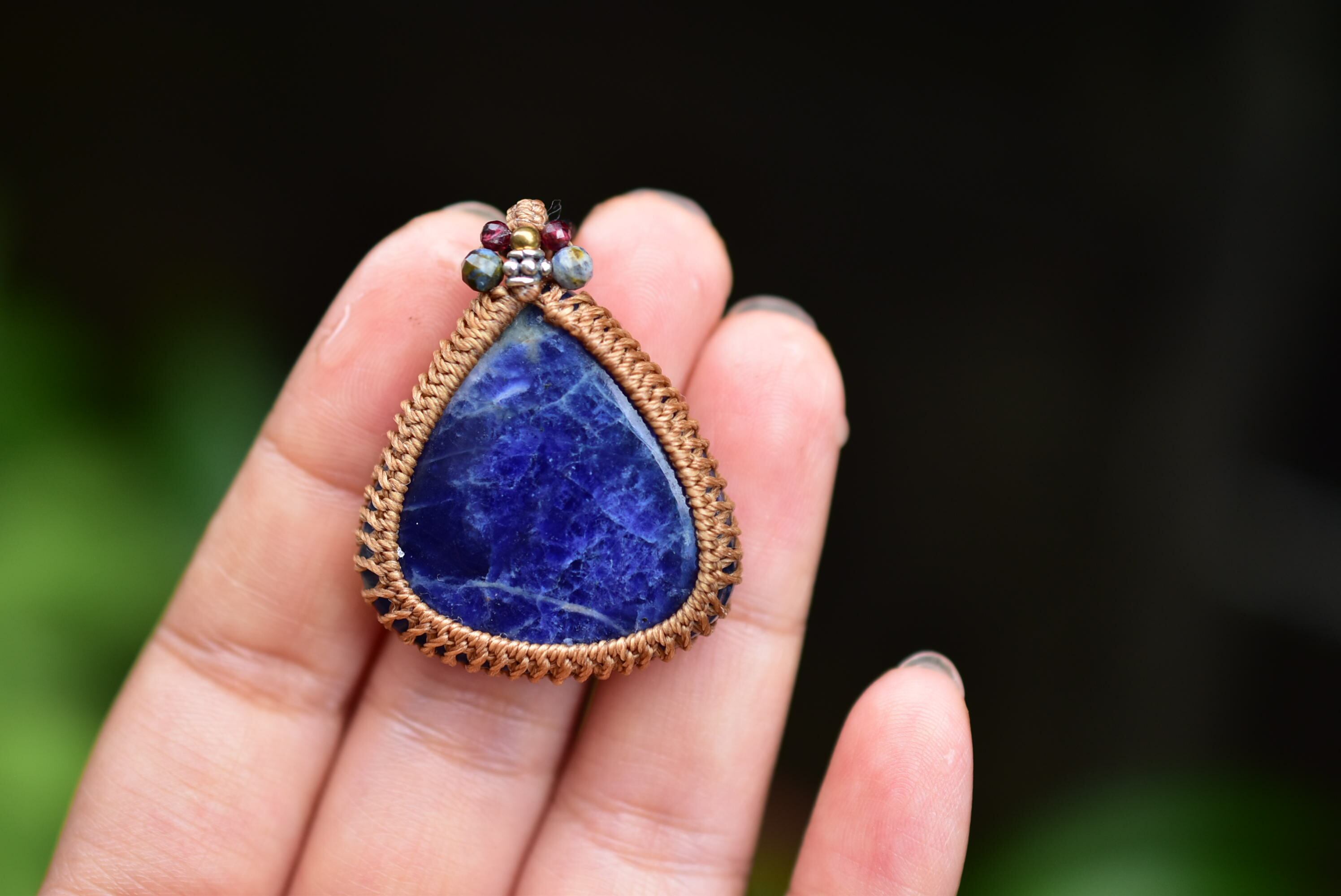 地球ブルー★ソーダライト マクラメペンダント583