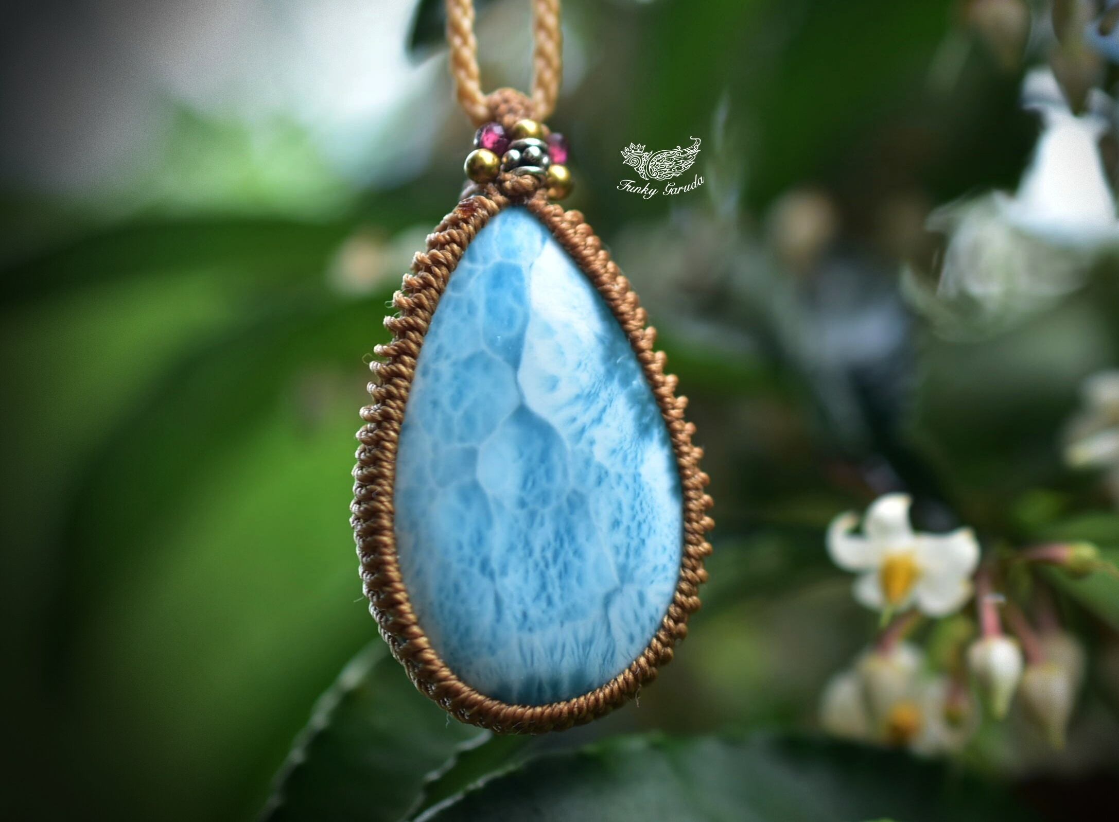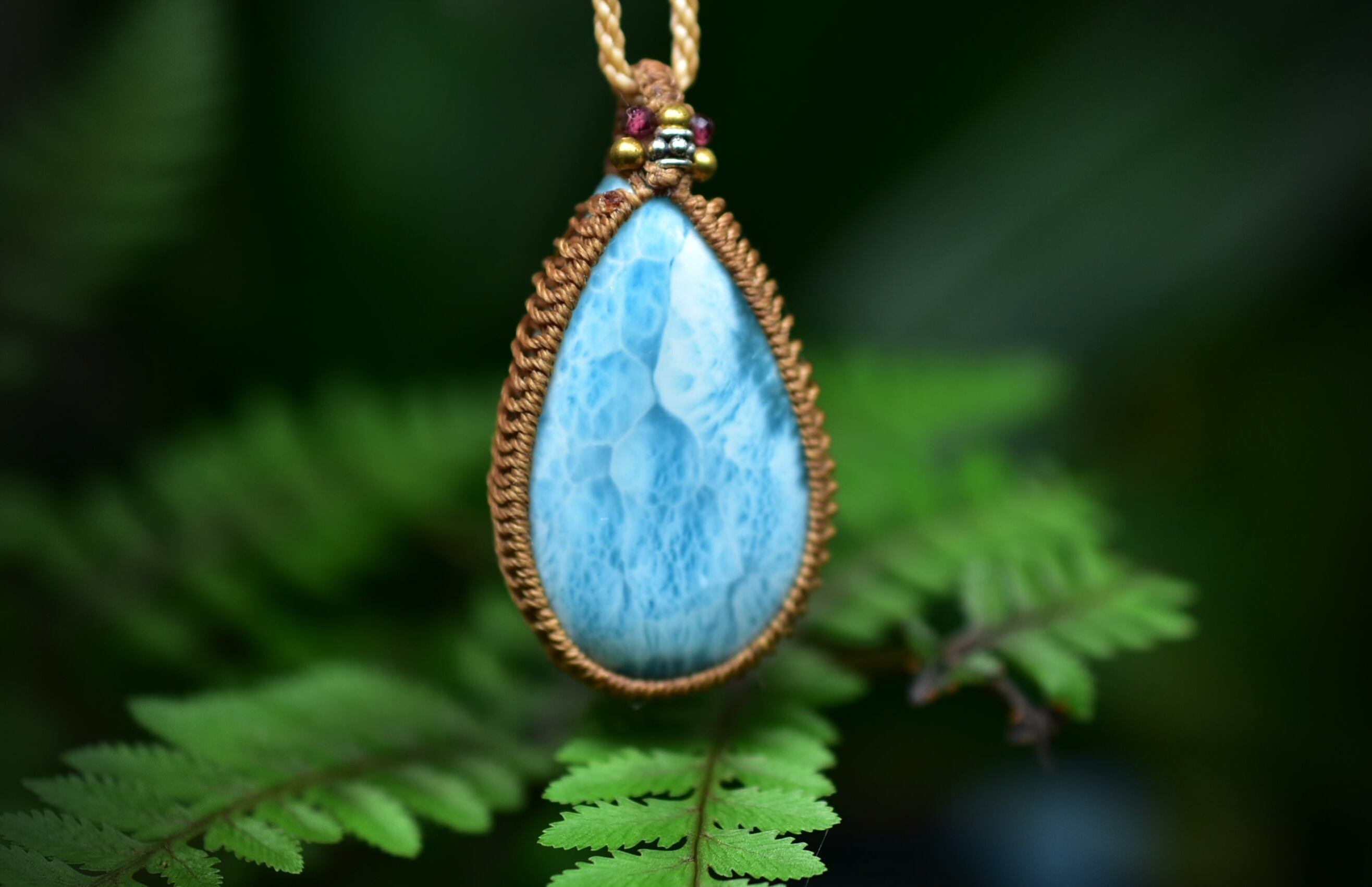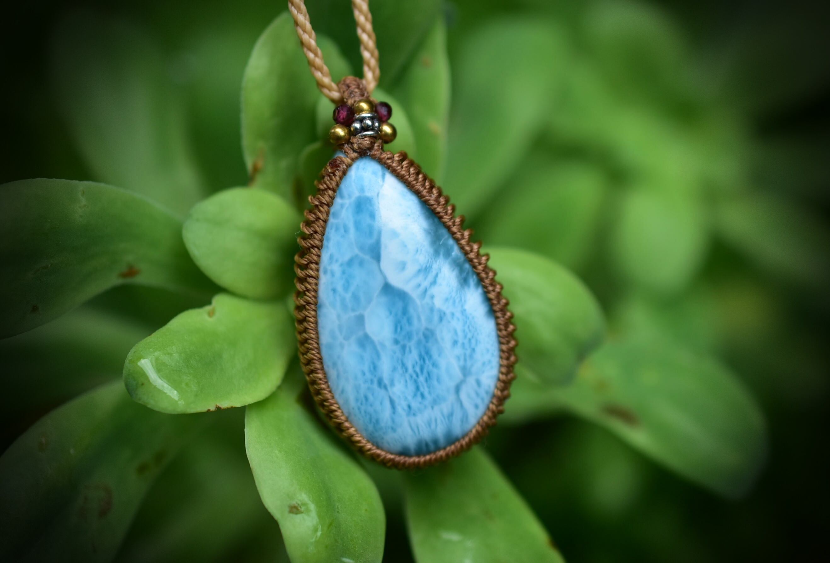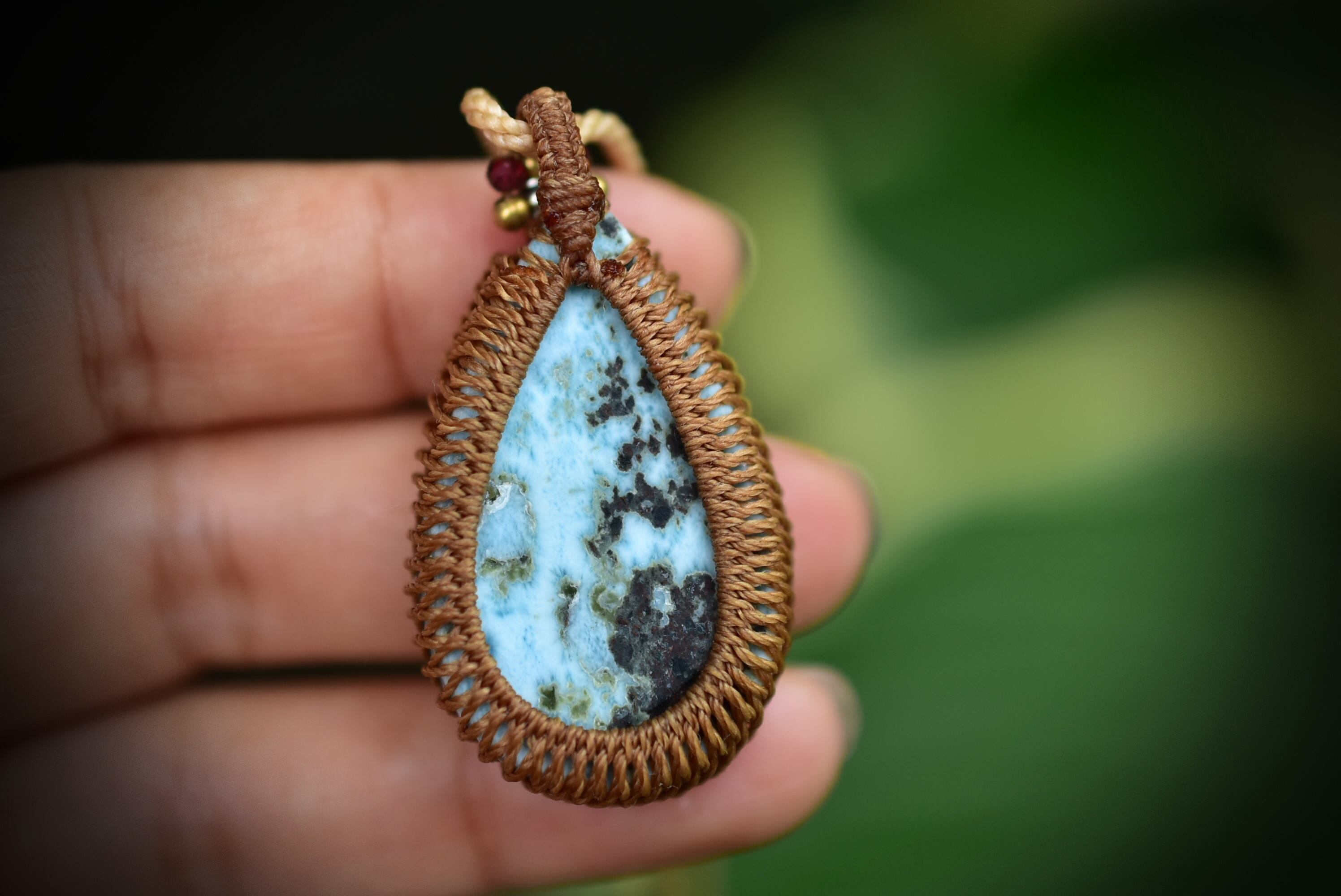 波の雫★ラリマー マクラメペンダント586