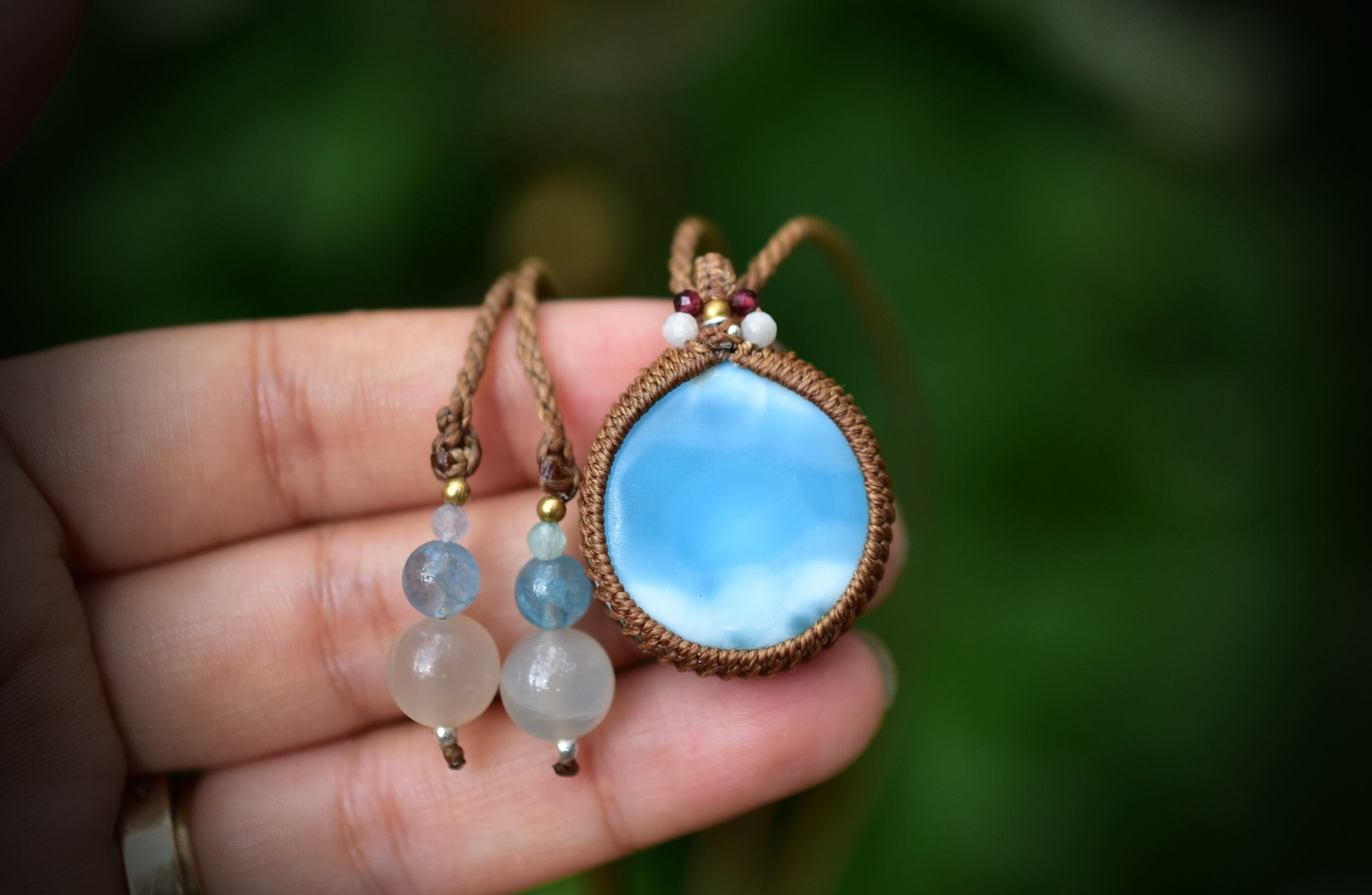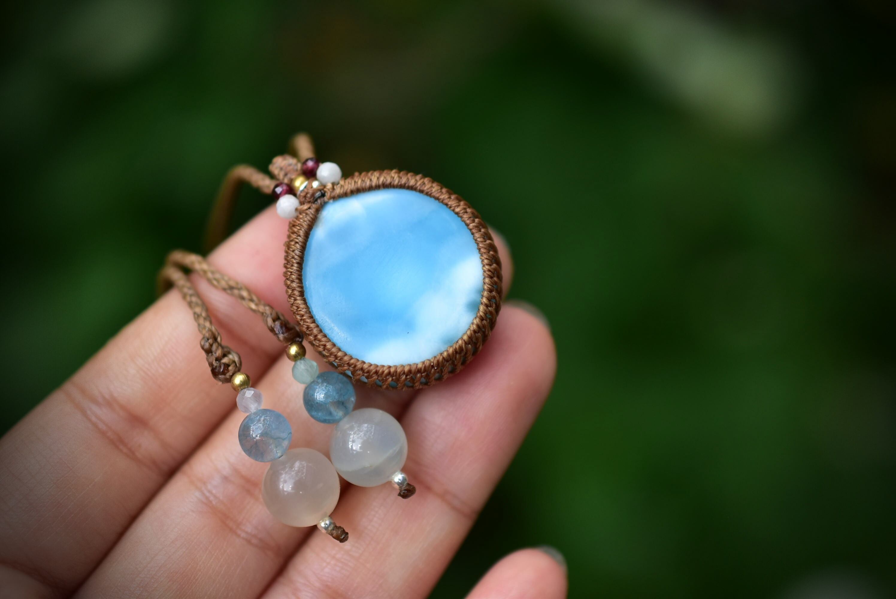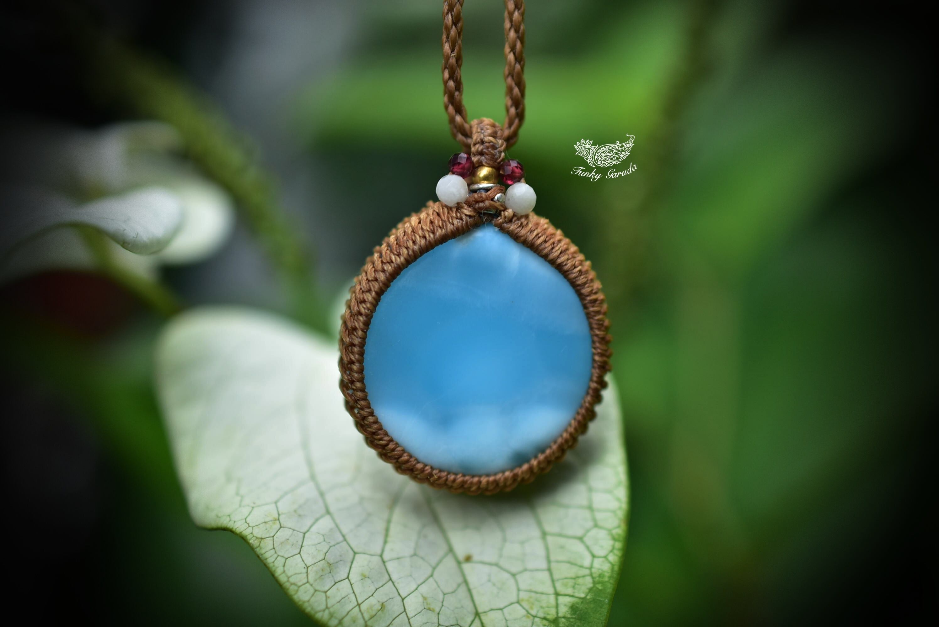 透明なブルー★高品質★ラリマー マクラメペンダント587