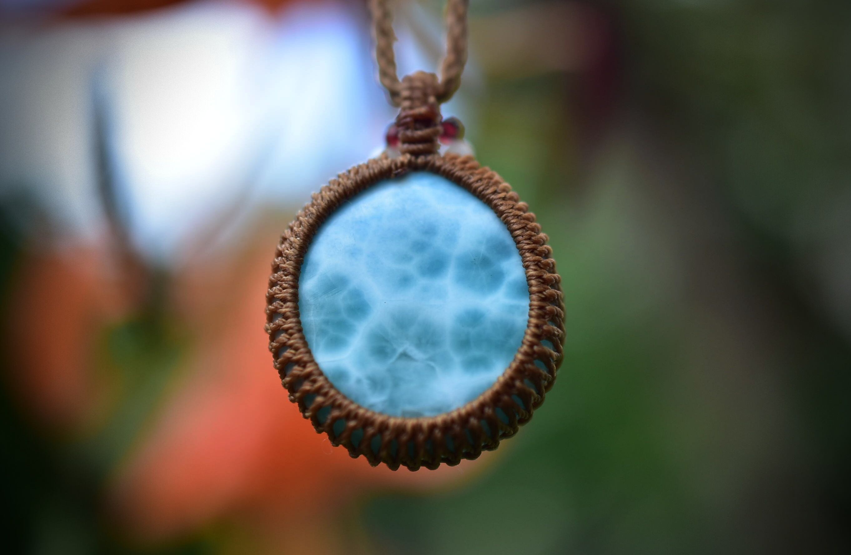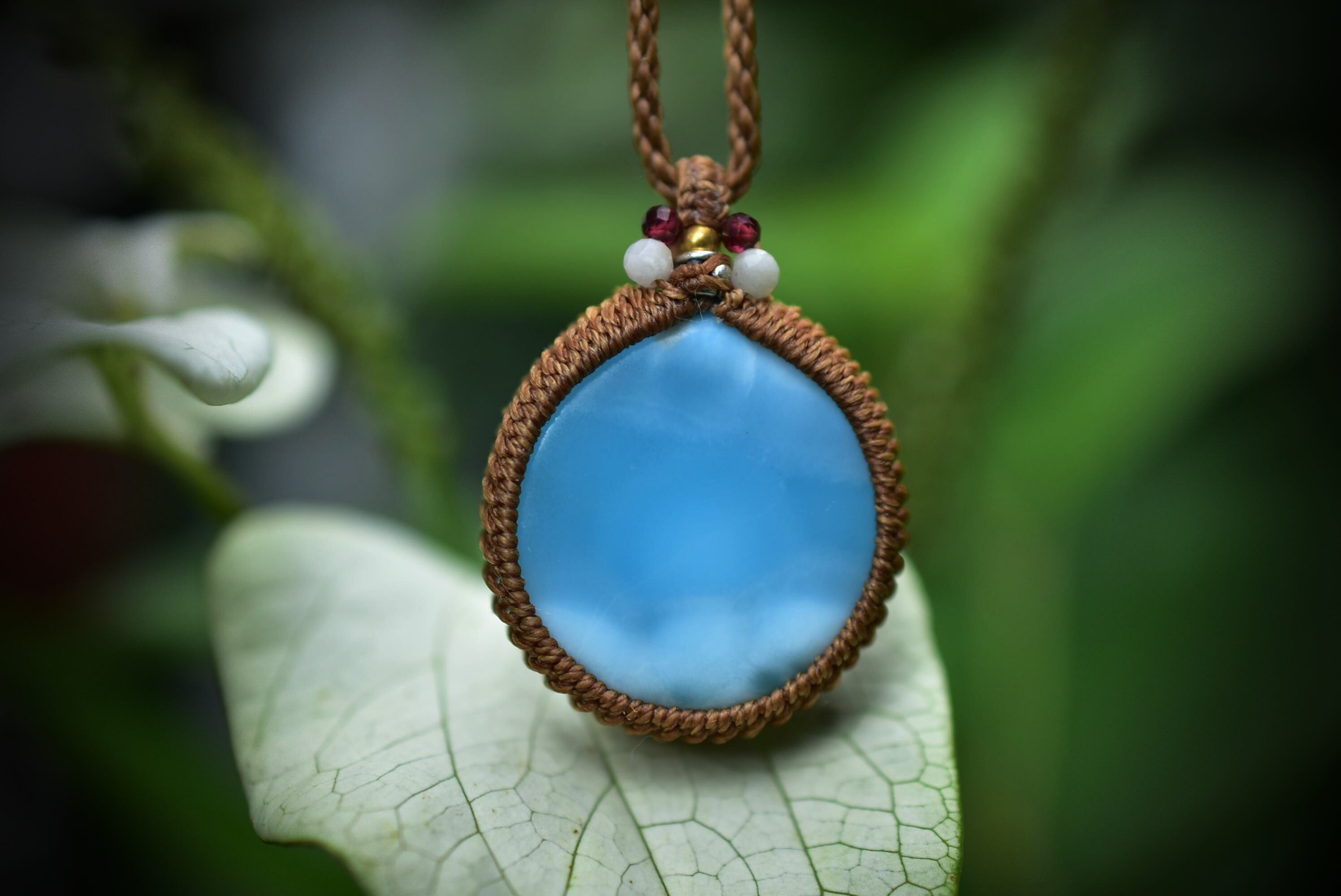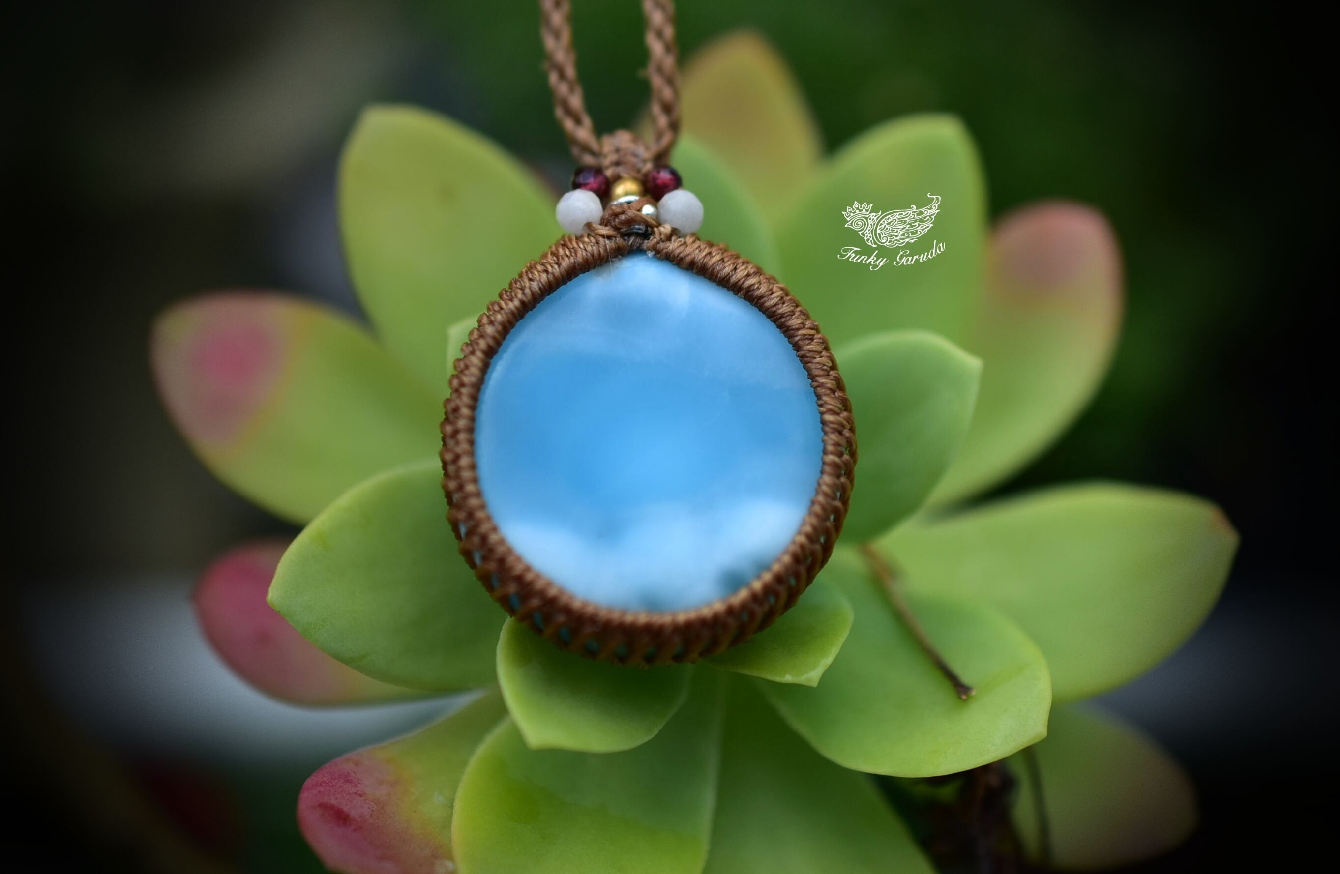 透明なブルー★高品質★ラリマー マクラメペンダント587
