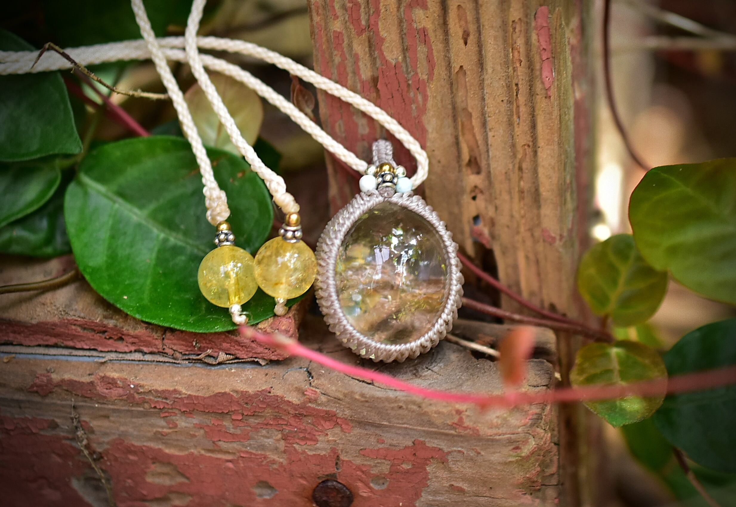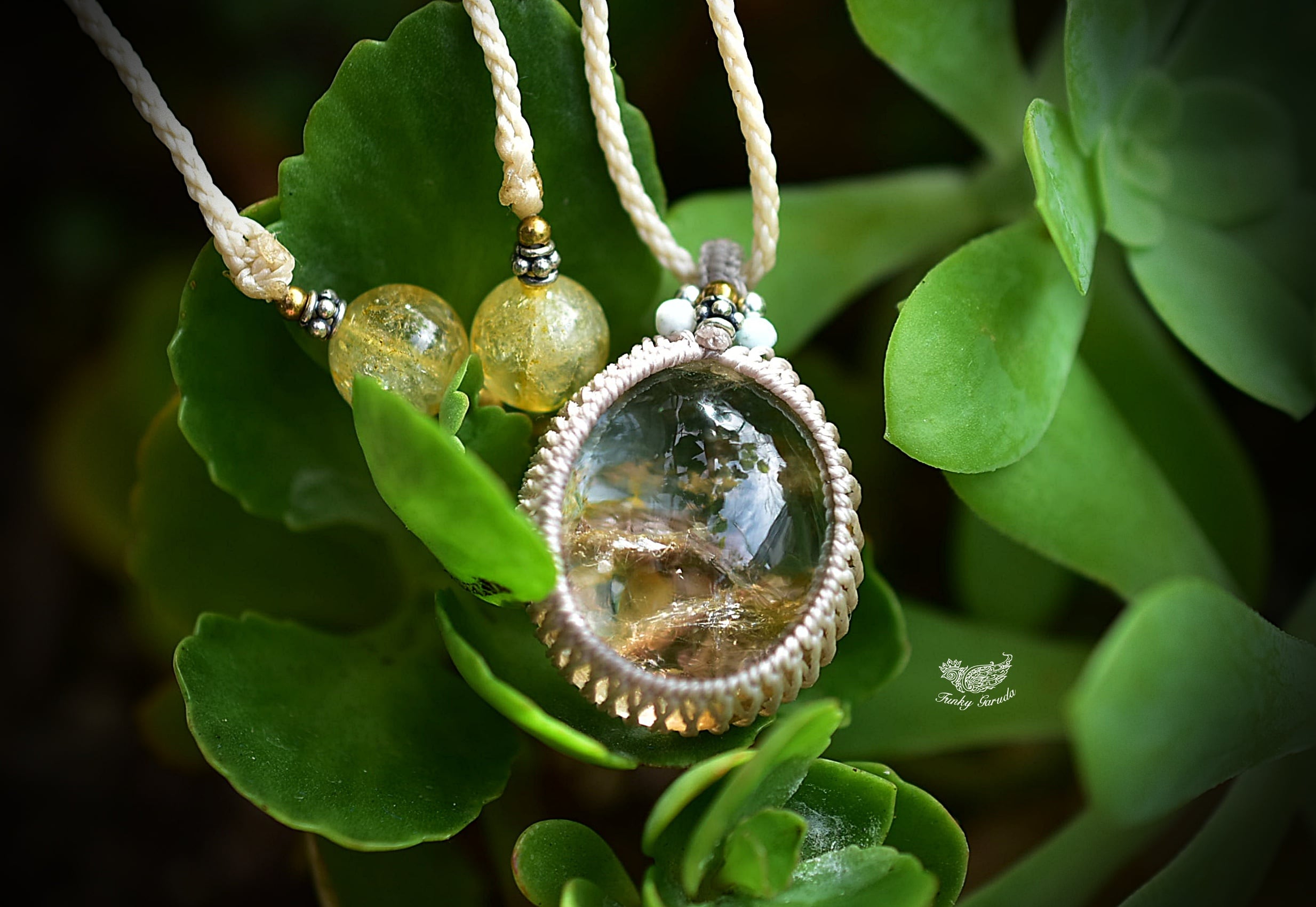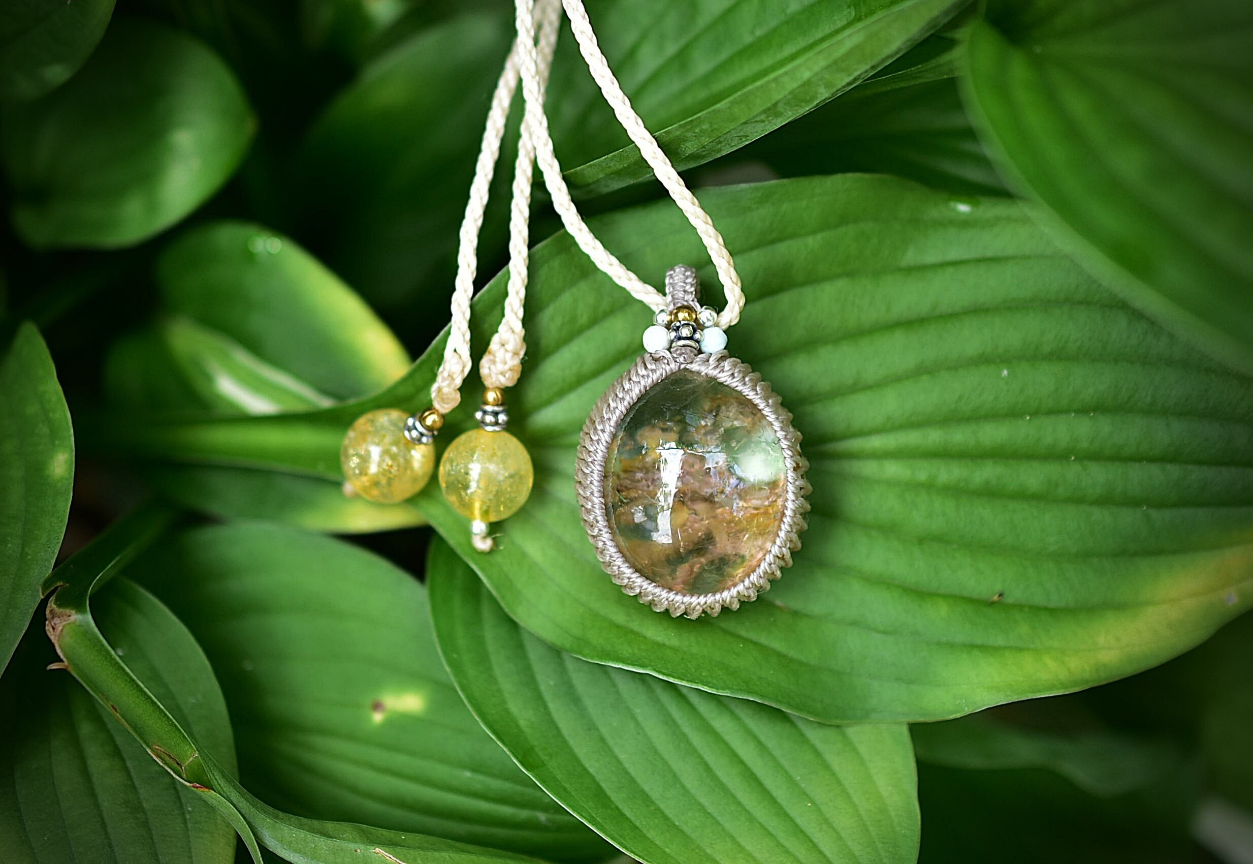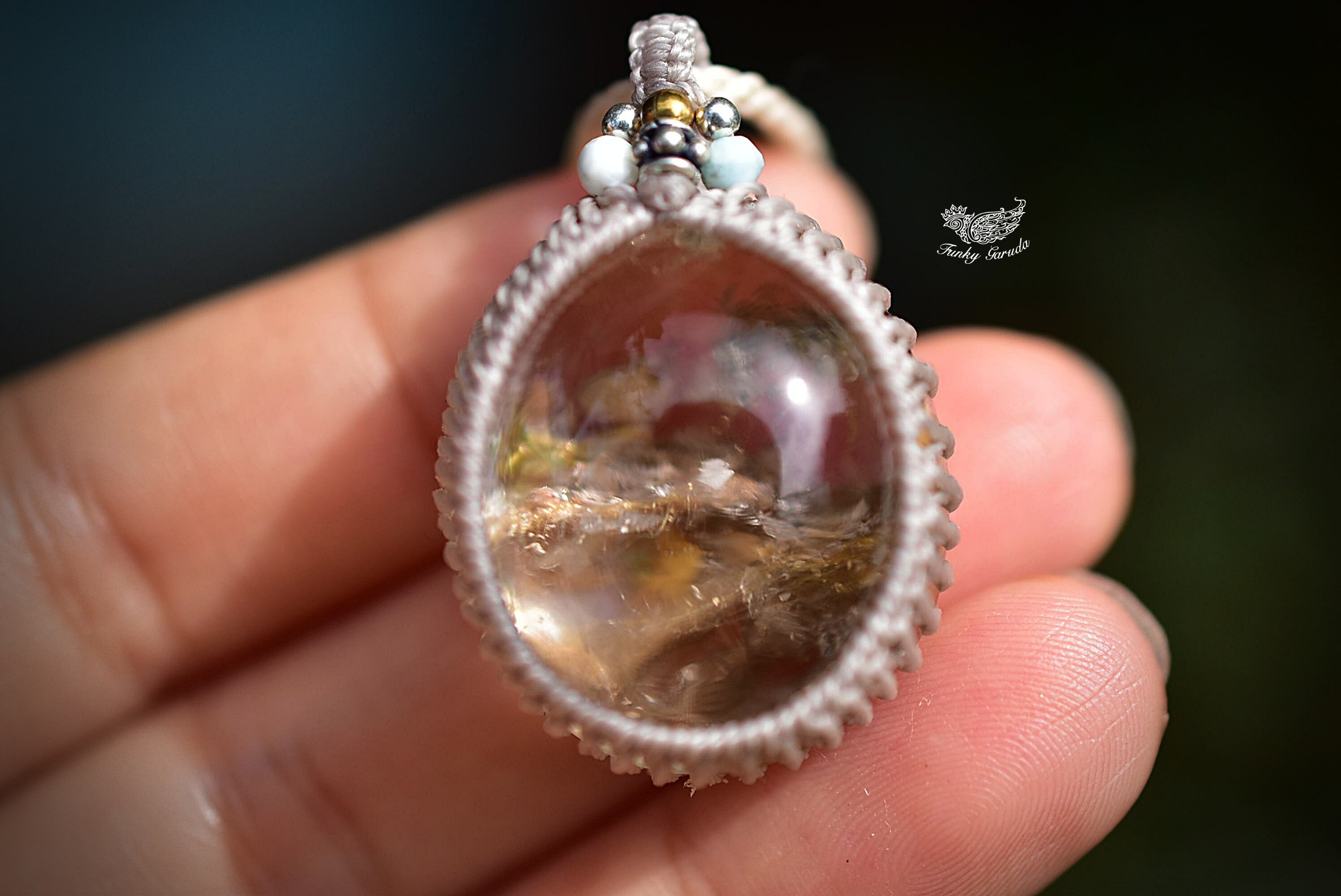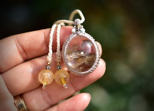 立体流動★ガーデンクォーツ マクラメペンダント589