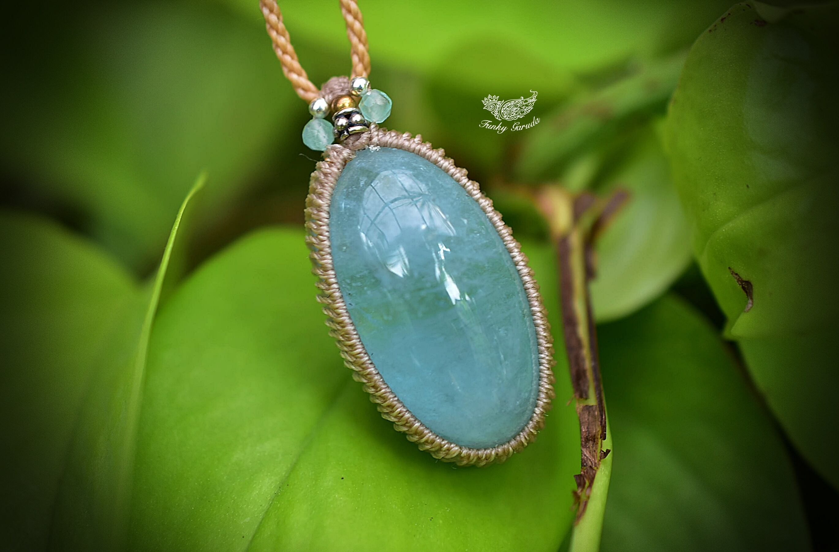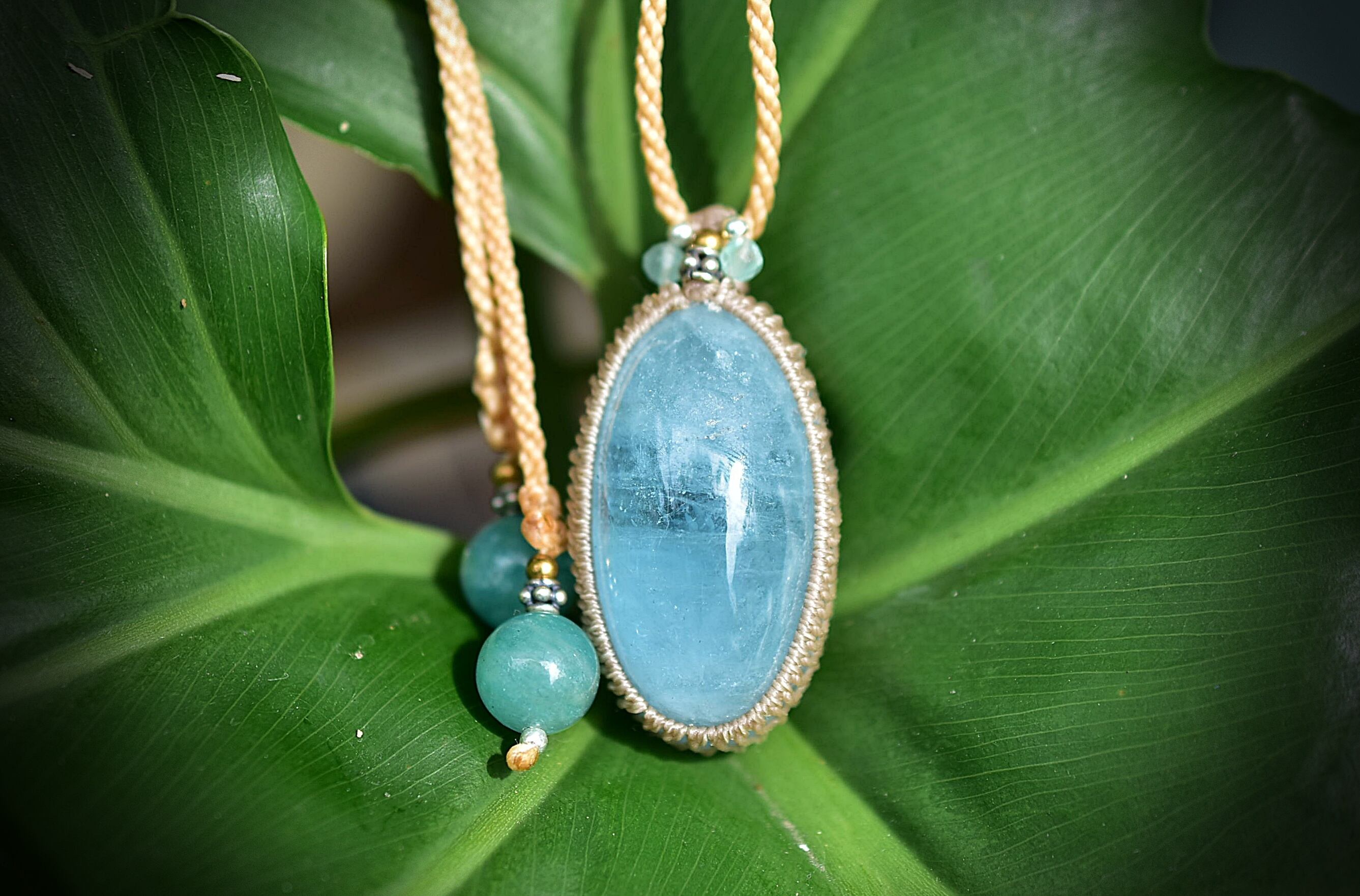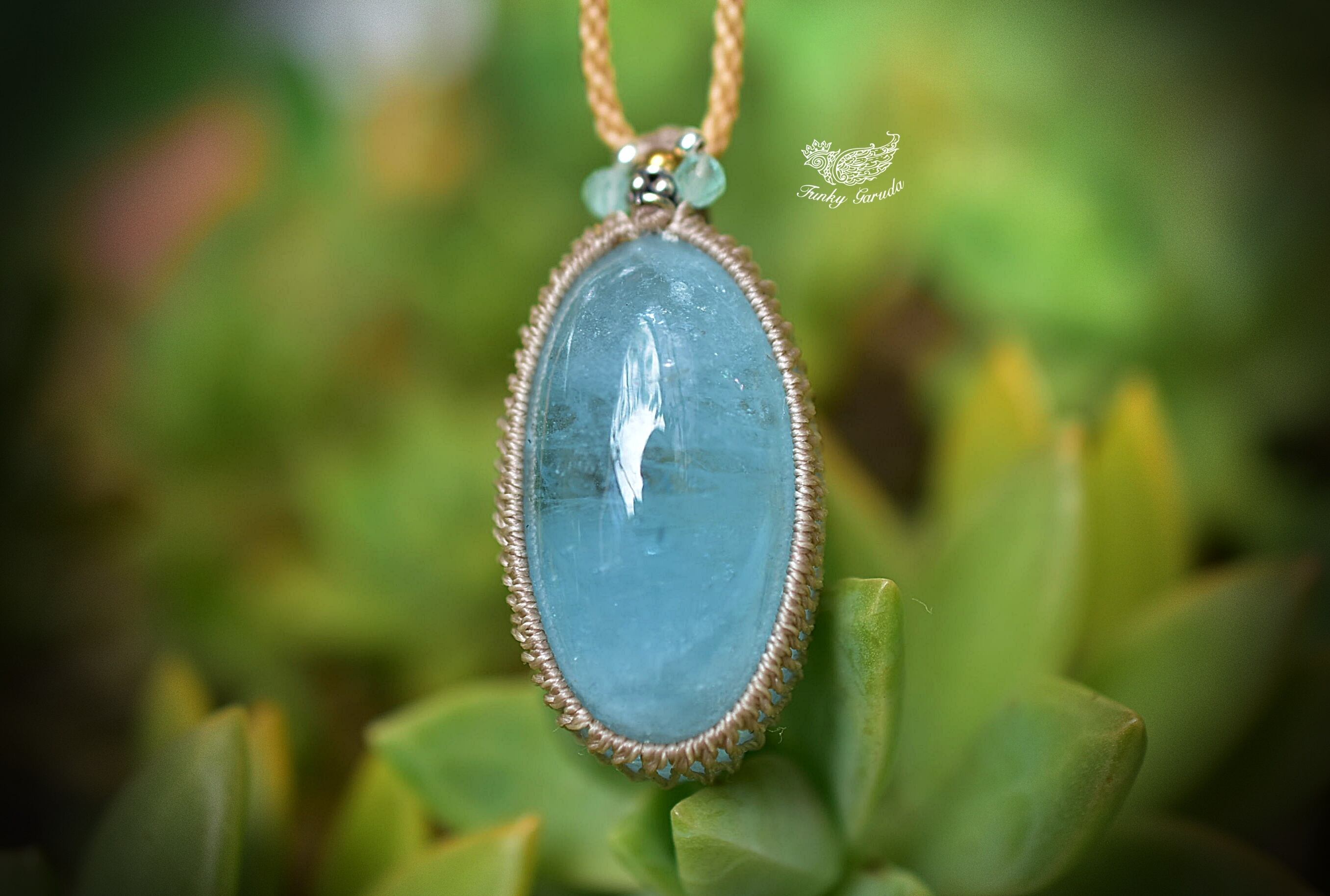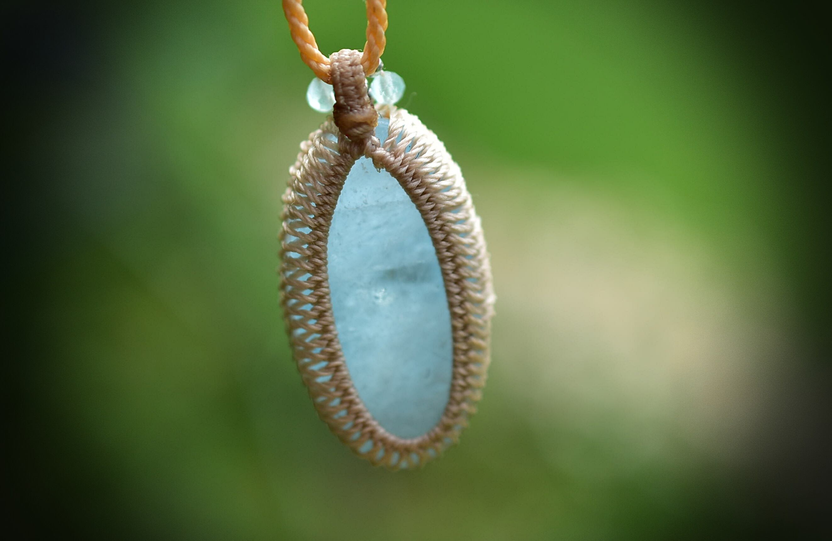水色アクアリウム★高品質アクアマリン マクラメペンダント594