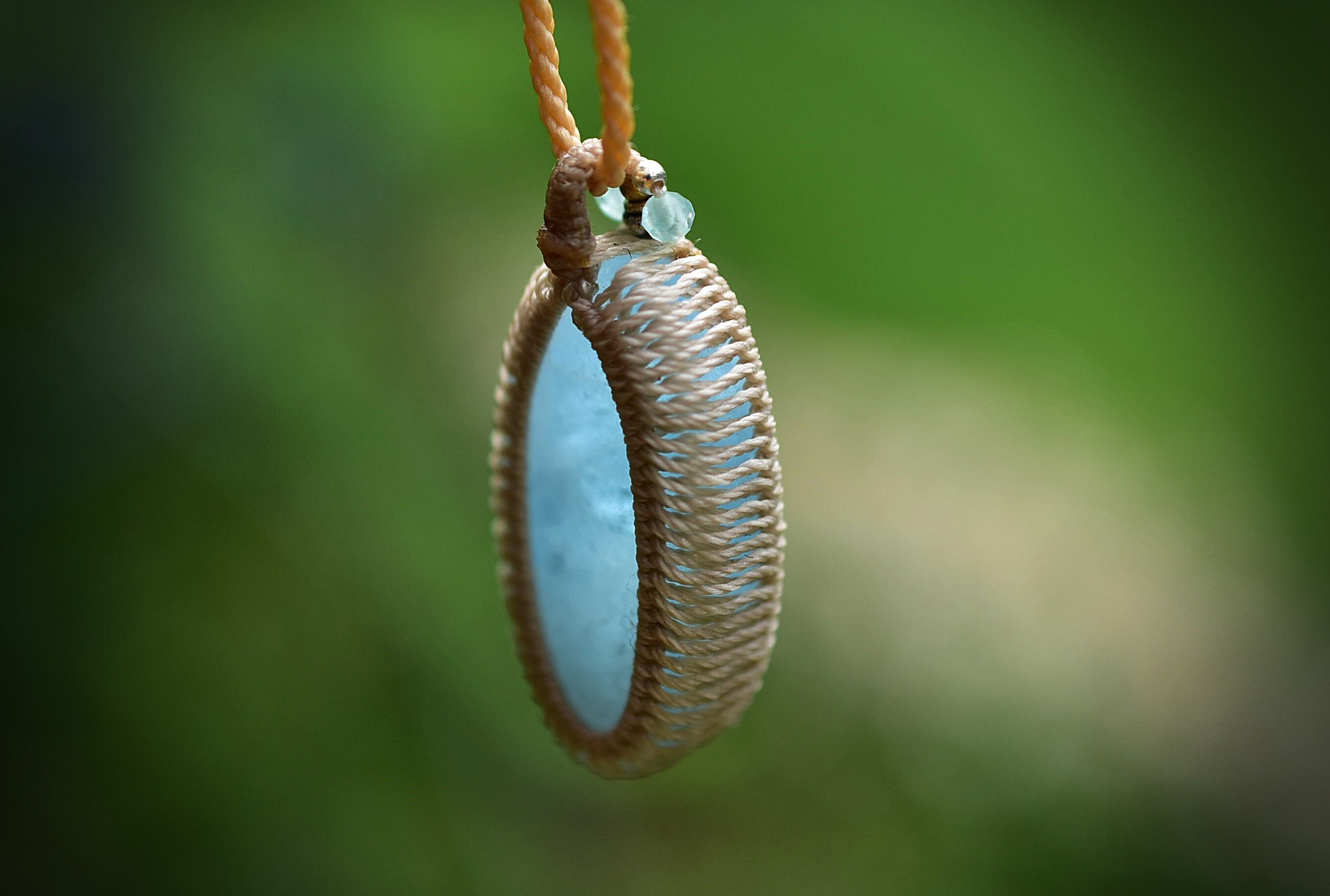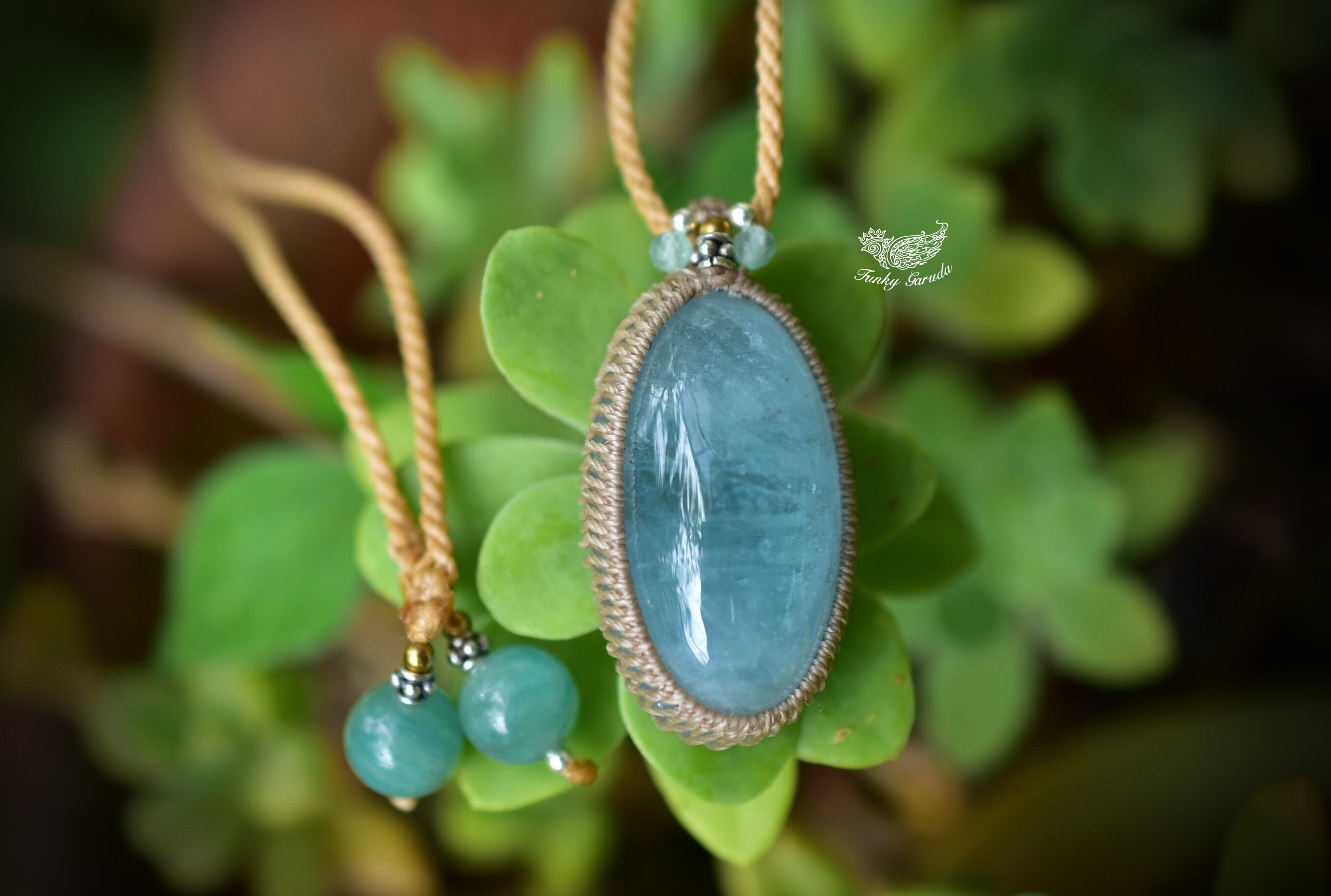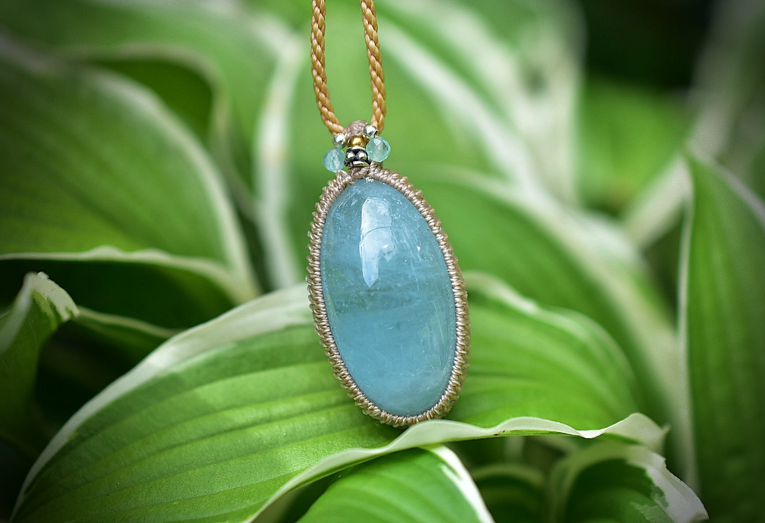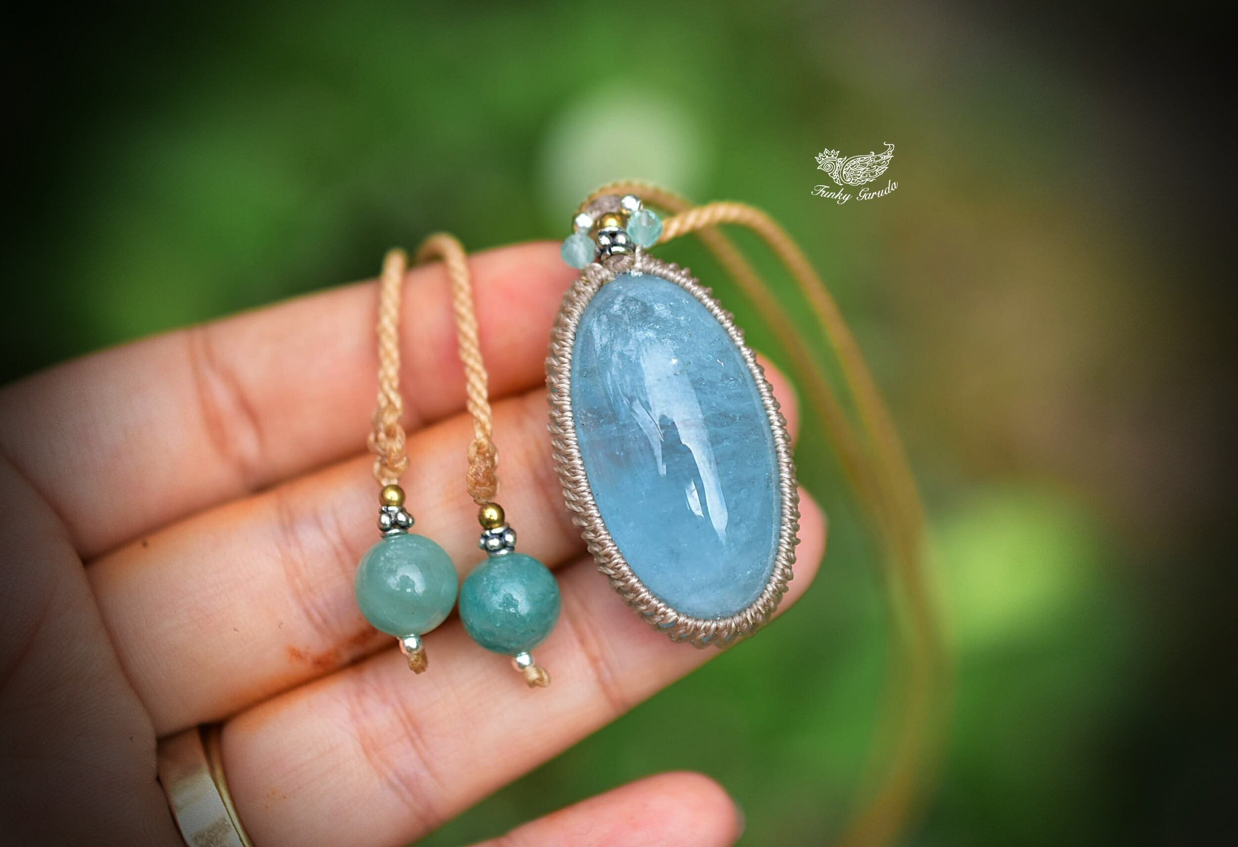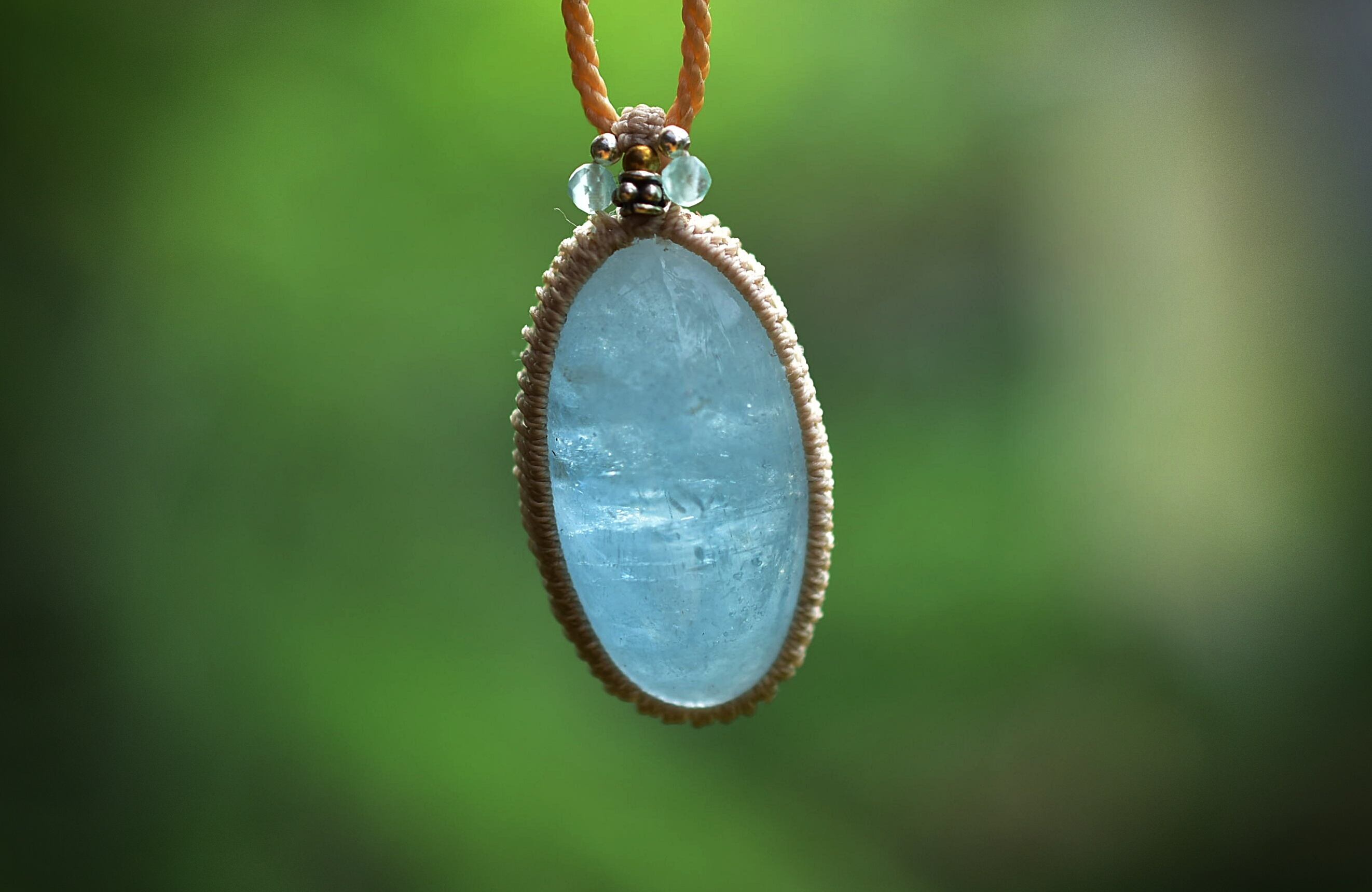 水色アクアリウム★高品質アクアマリン マクラメペンダント594