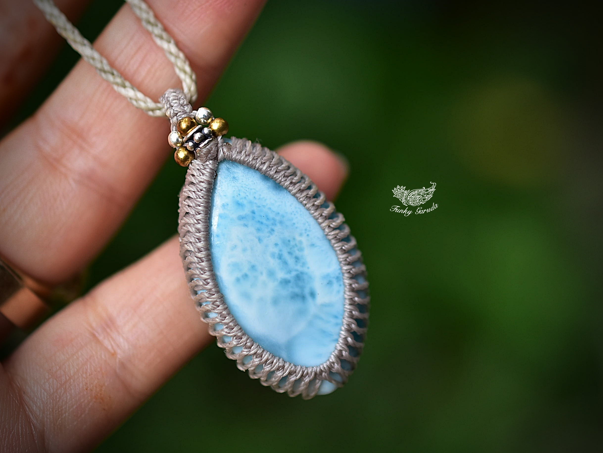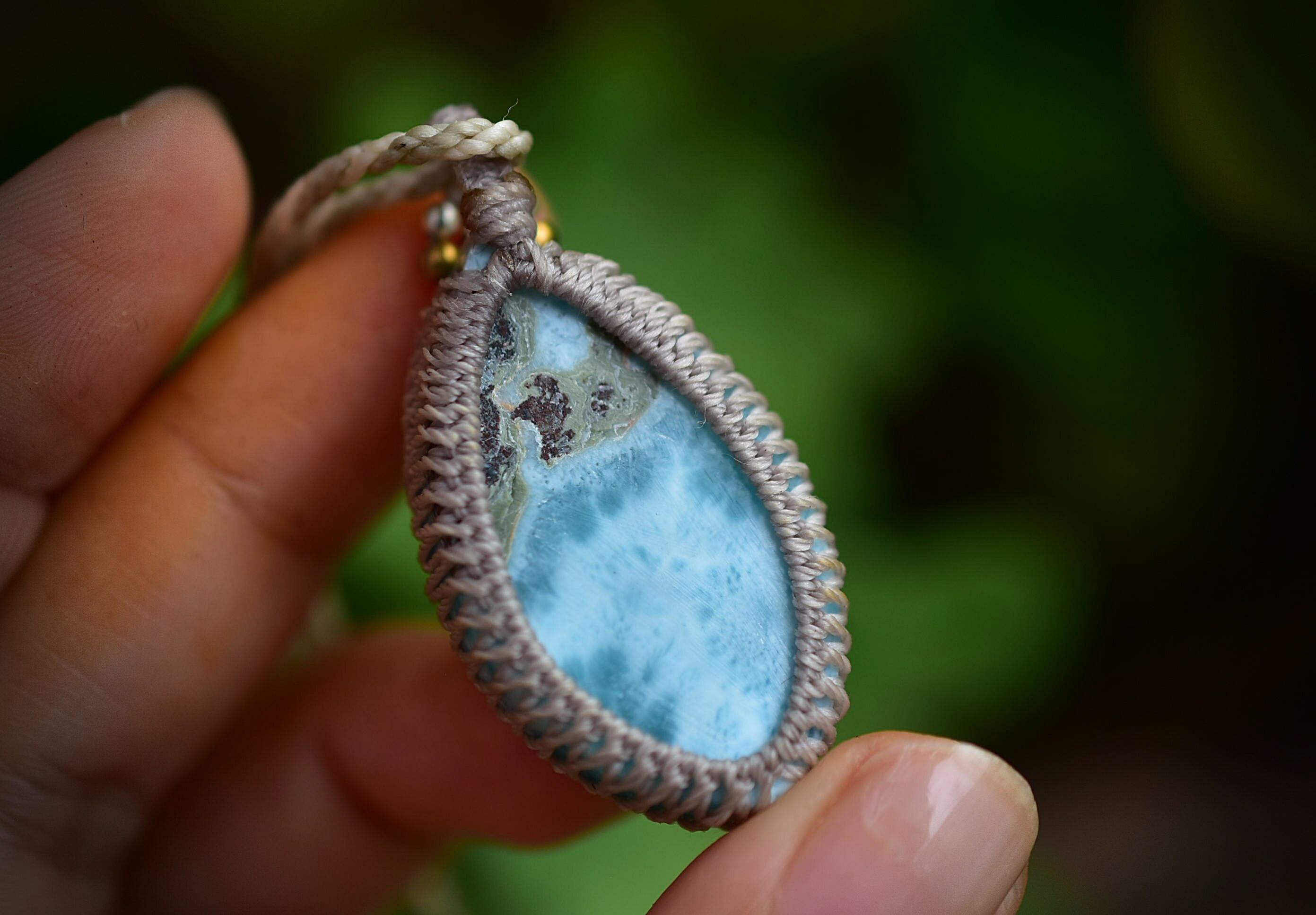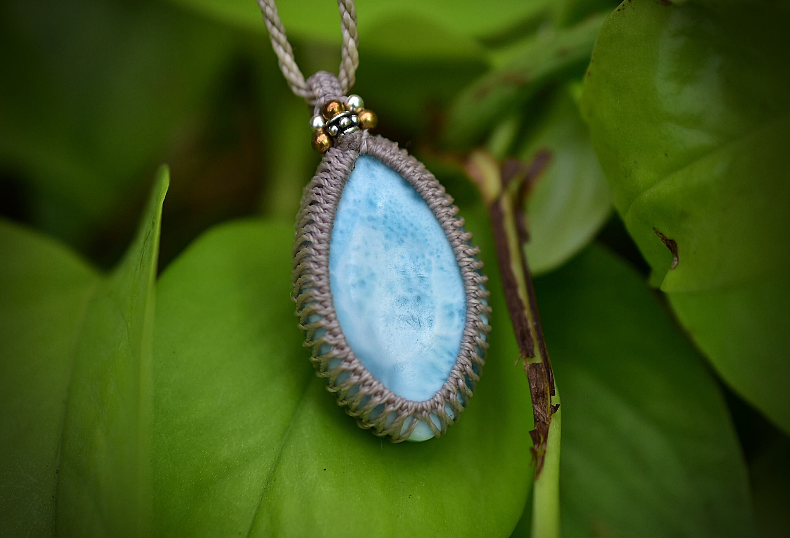白いシャトヤンシー★ラリマー マクラメペンダント597