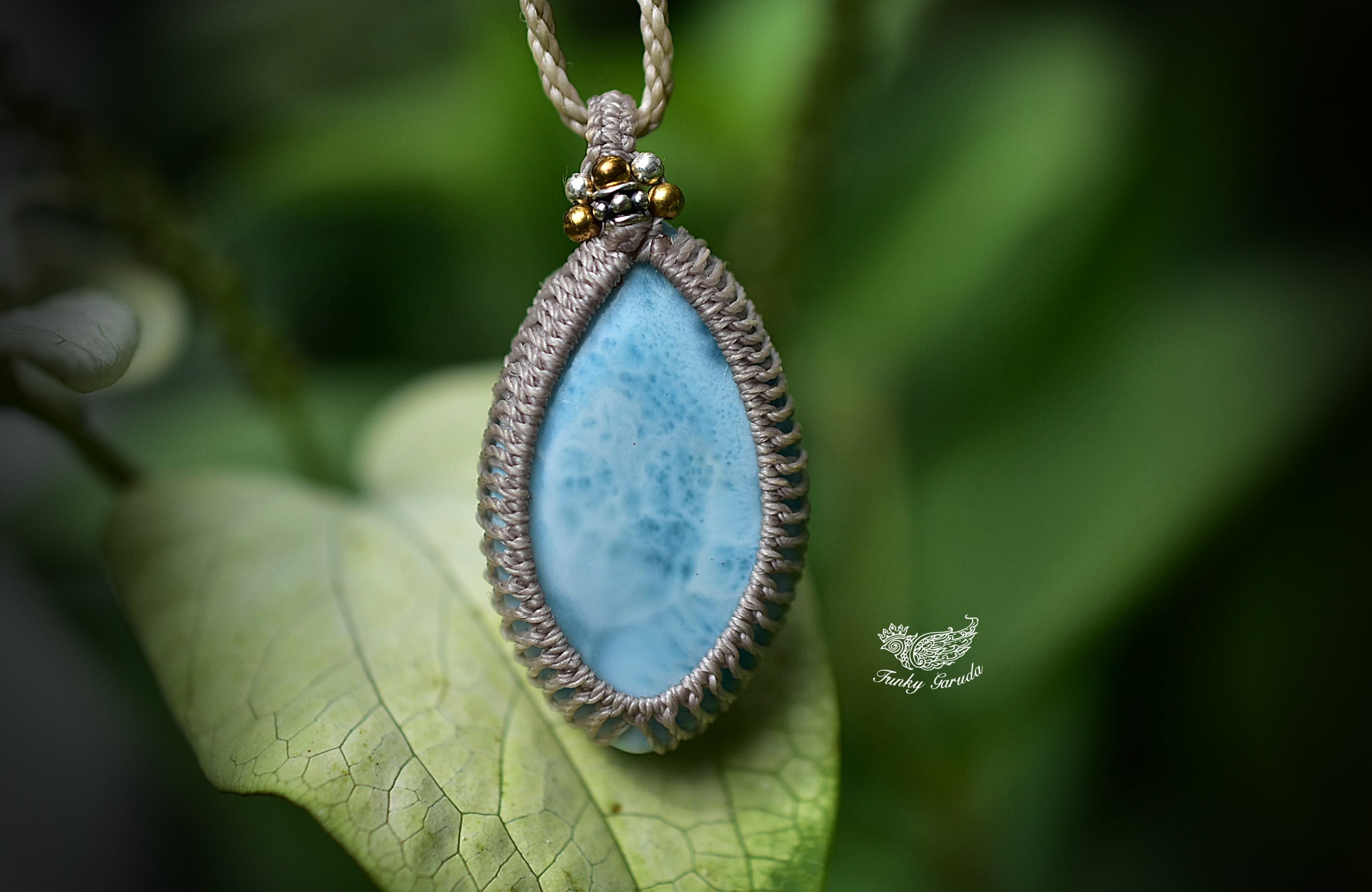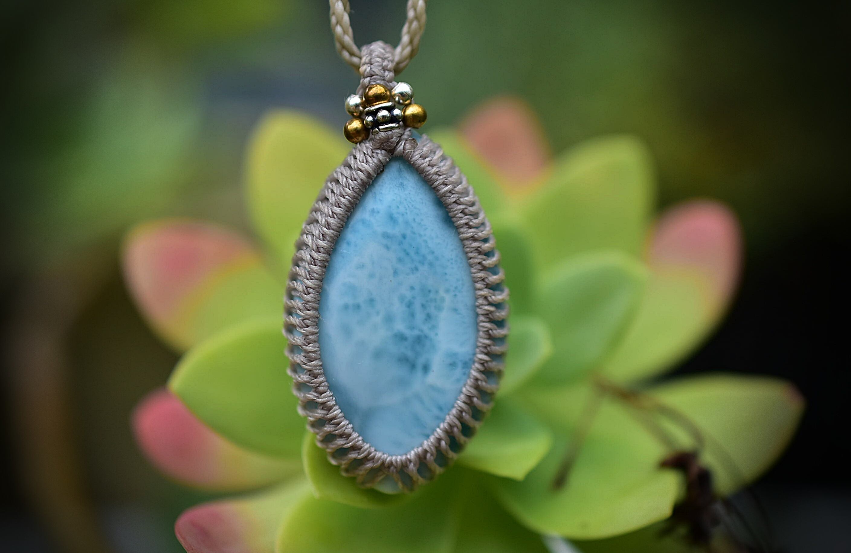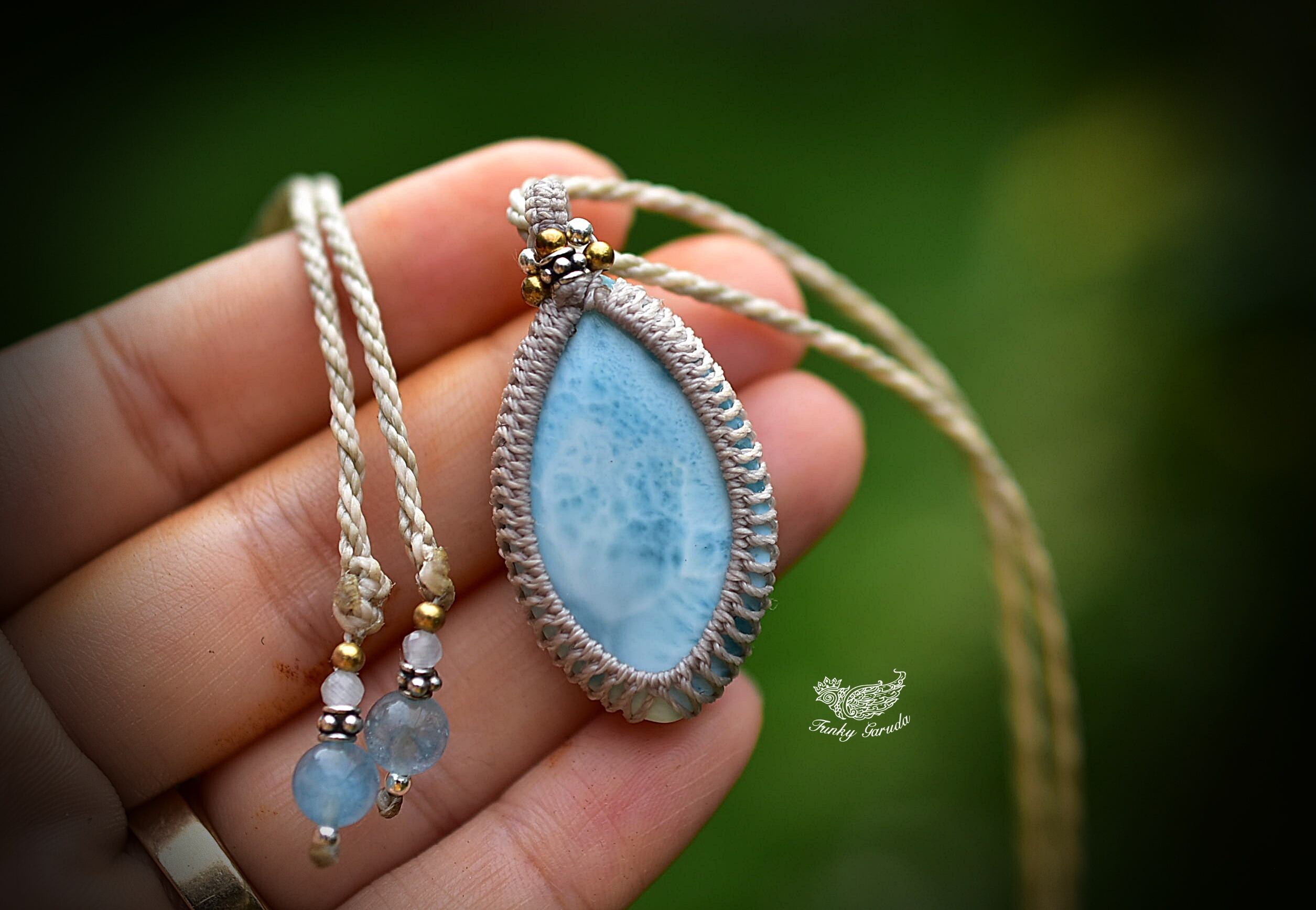白いシャトヤンシー★ラリマー マクラメペンダント597