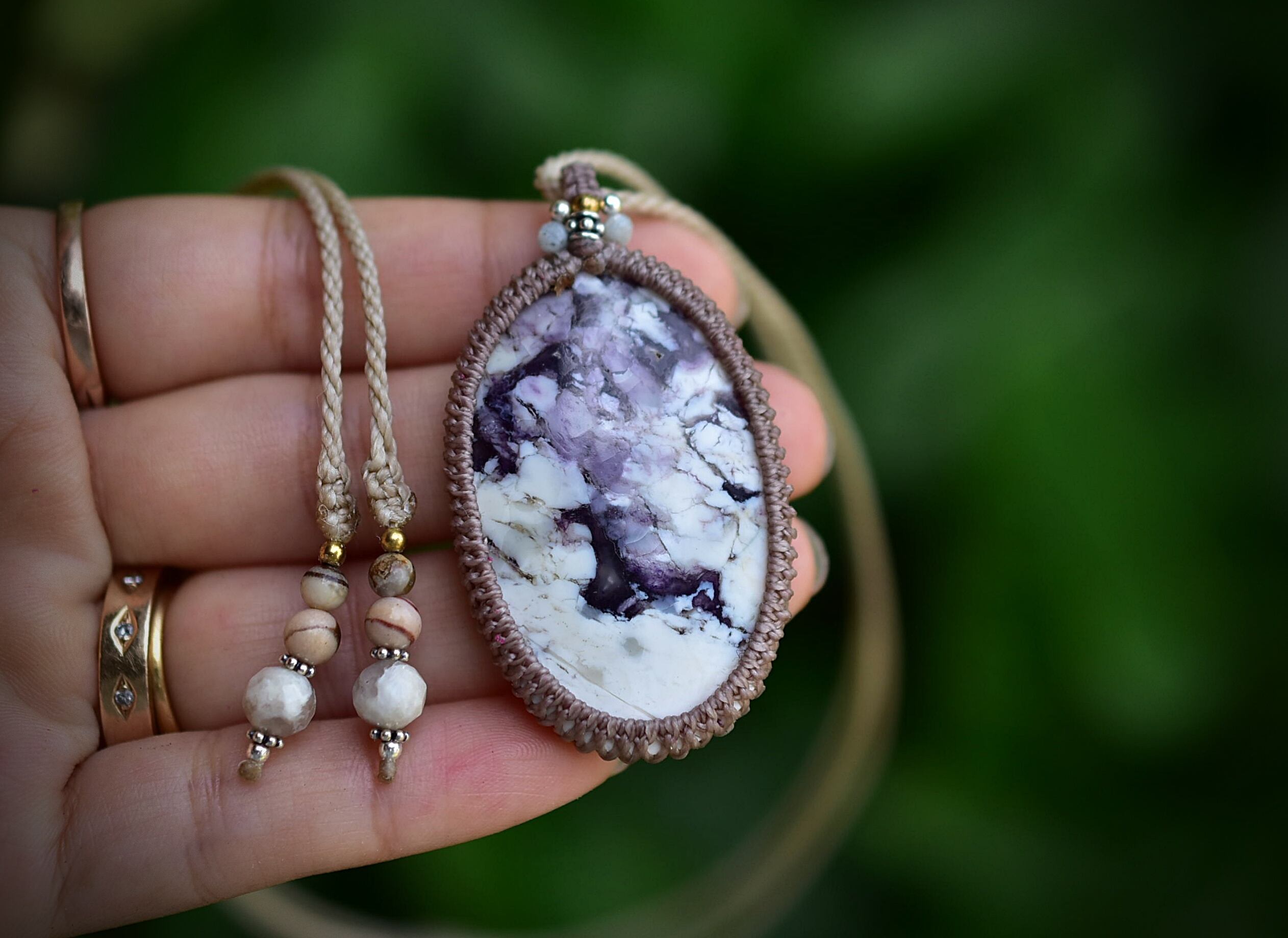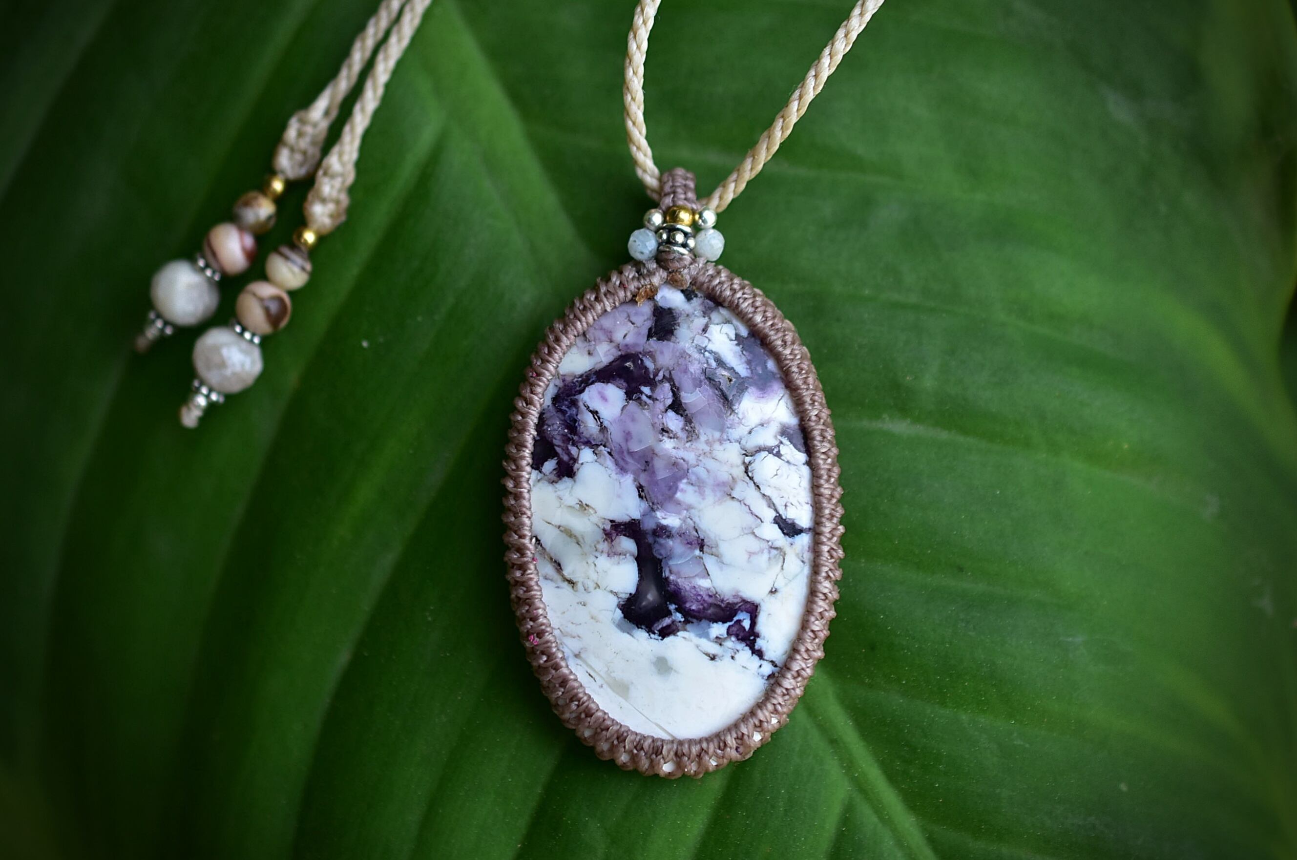 大粒の芸術★ティファニーストーン マクラメペンダント602
