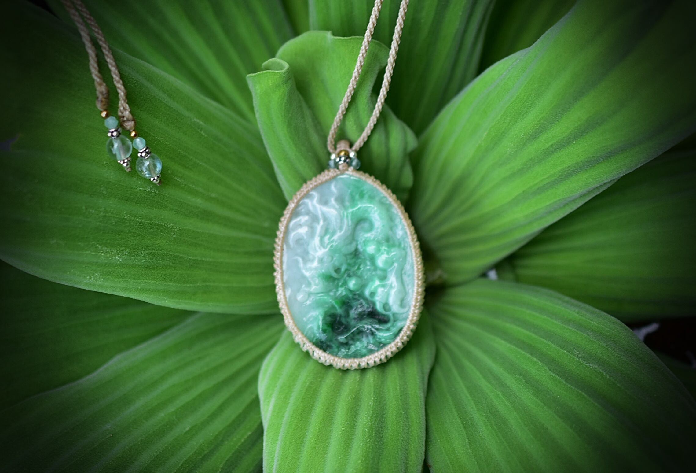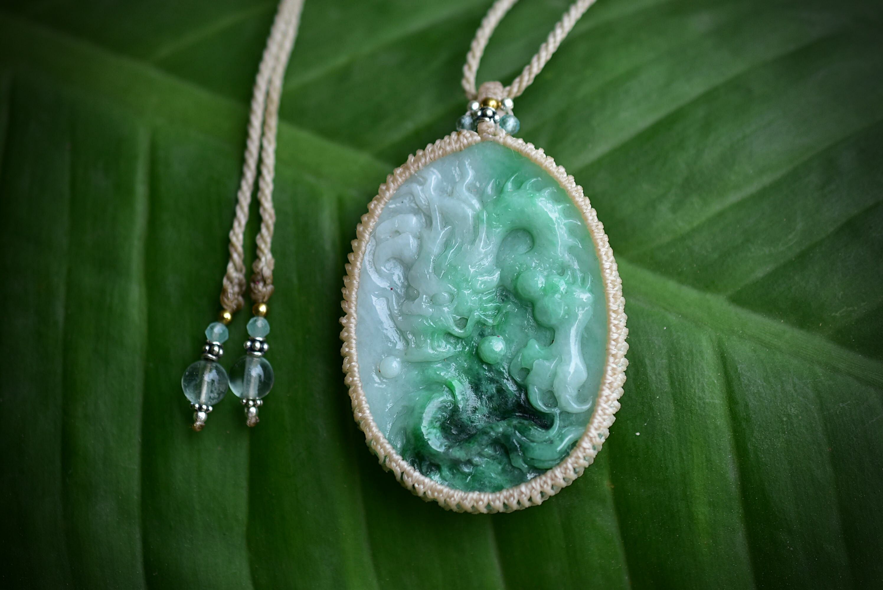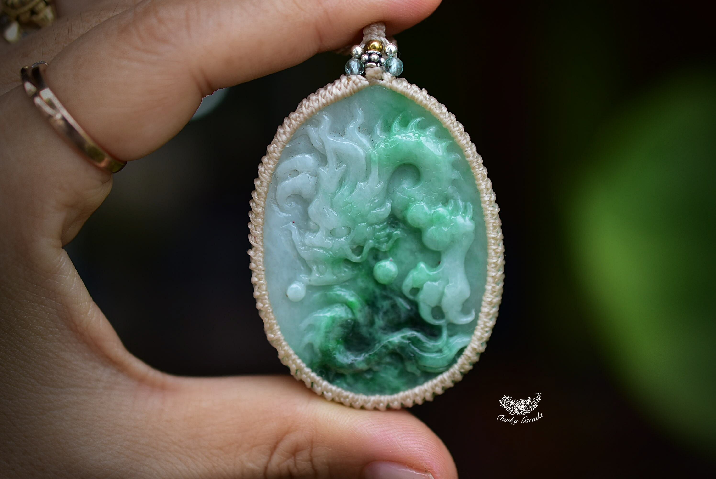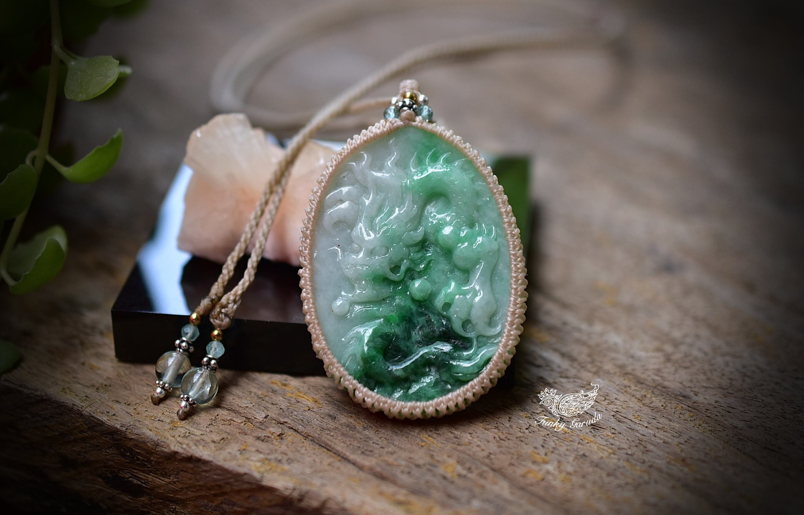 レア★龍彫刻★ミャンマー翡翠 マクラメペンダント603