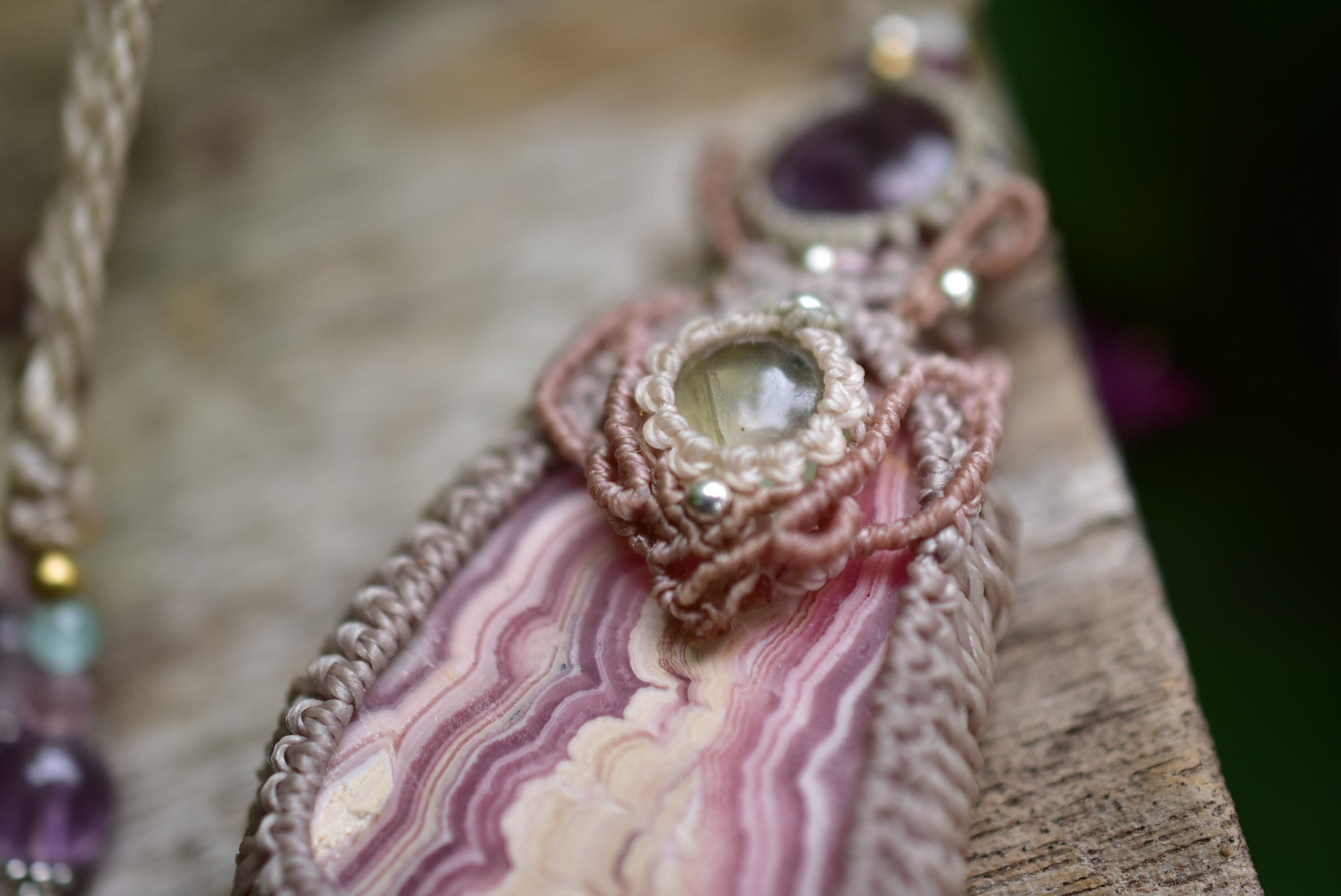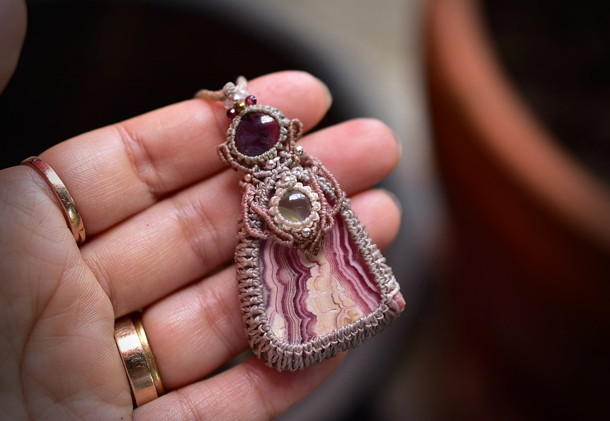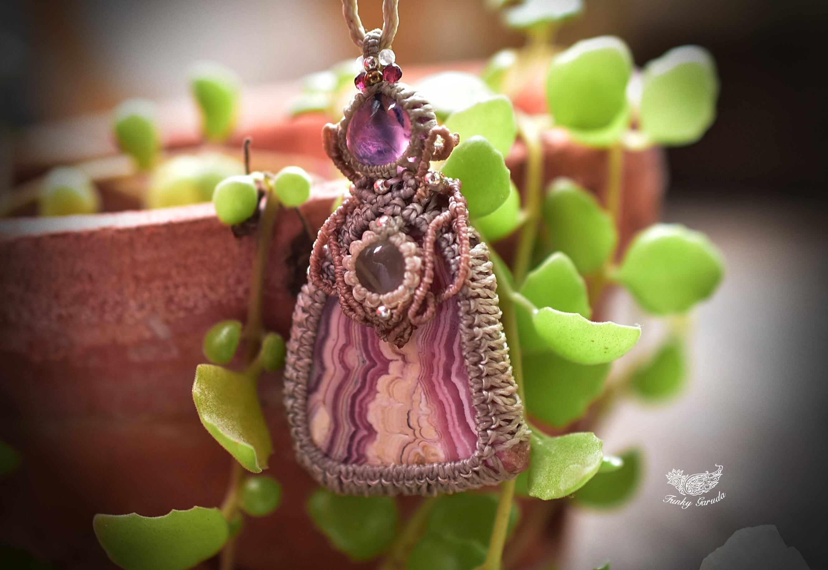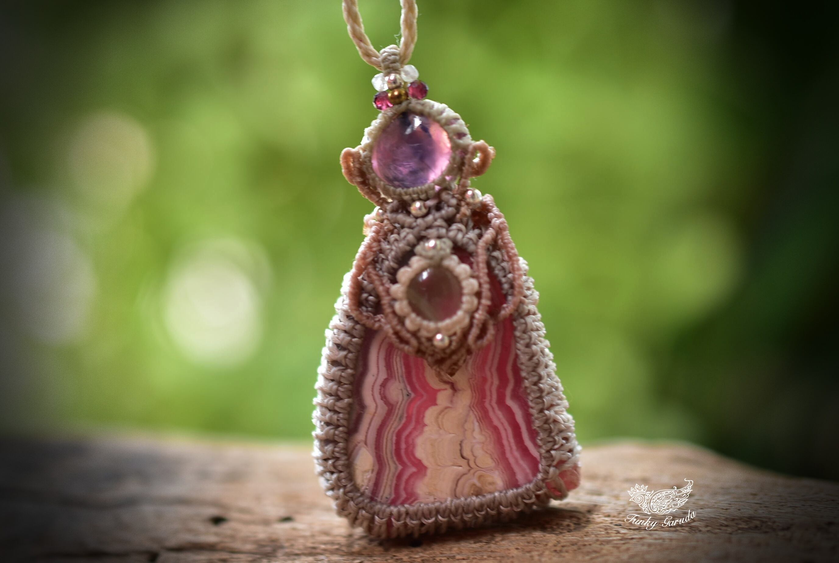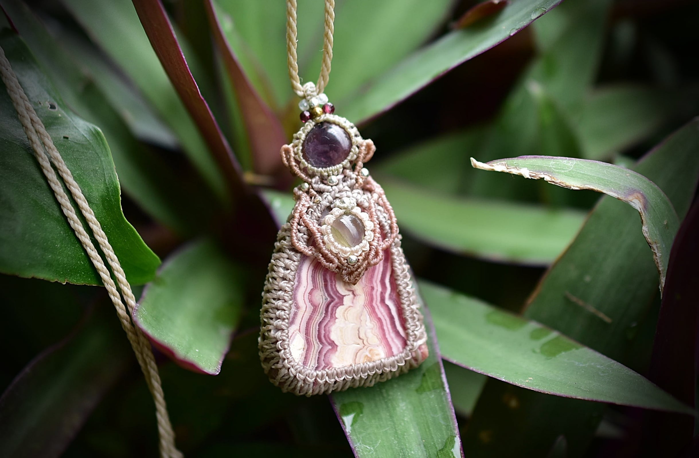 ピンク断層の揺めき★ルビー ロードクロサイト マクラメペンダント605
