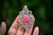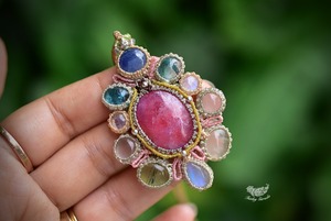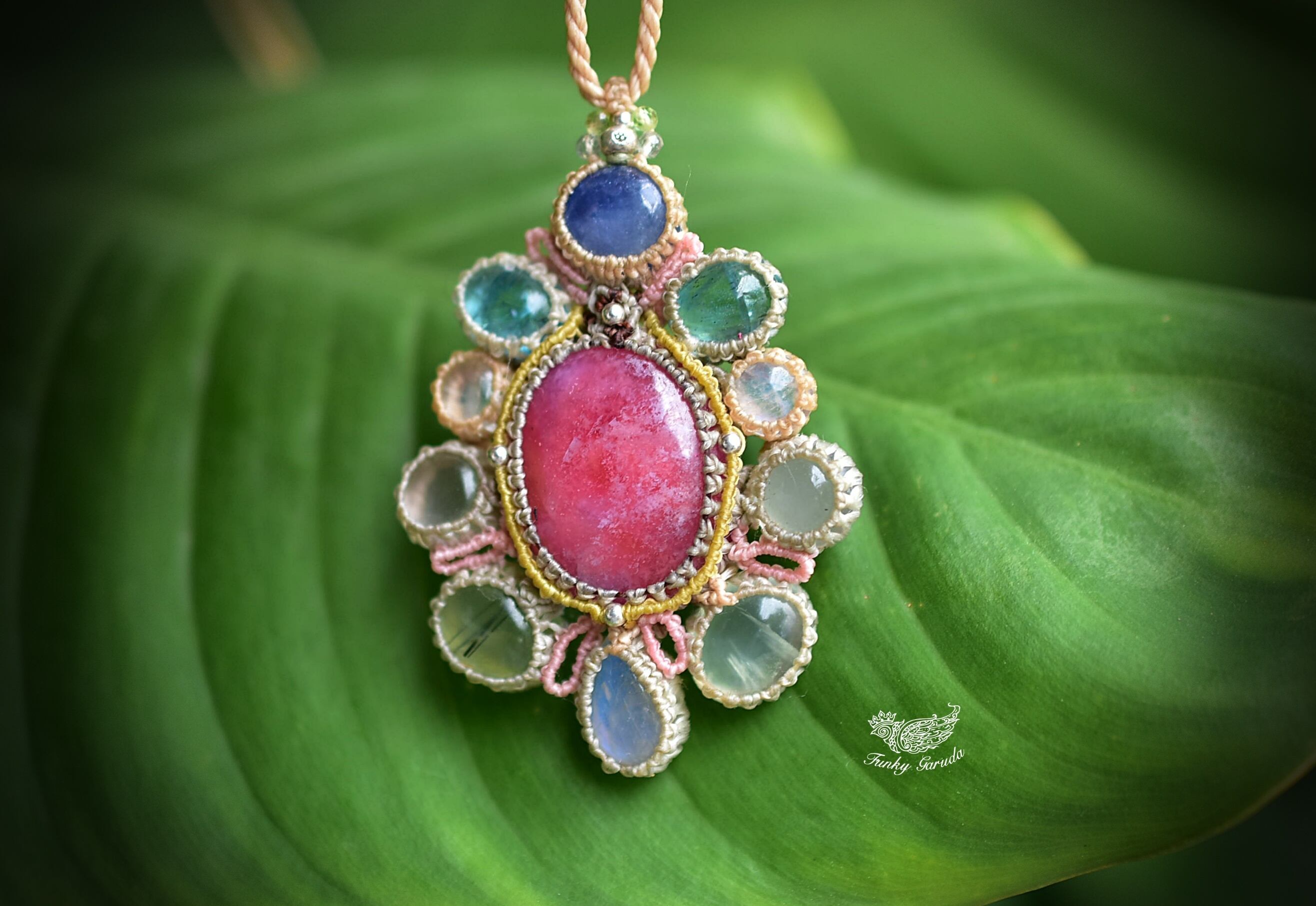 華の石★ルビー サファイア アパタイト マクラメペンダント607