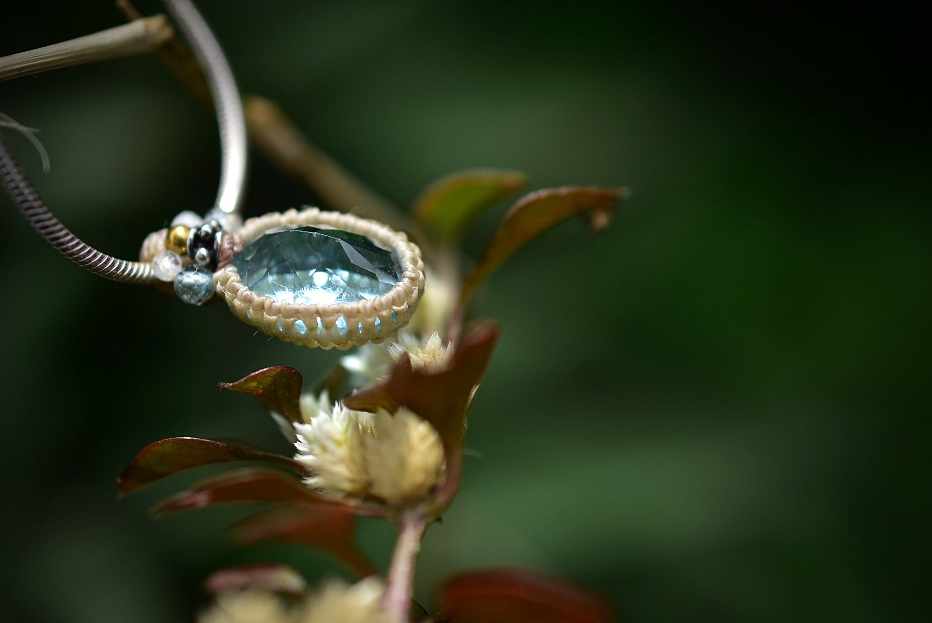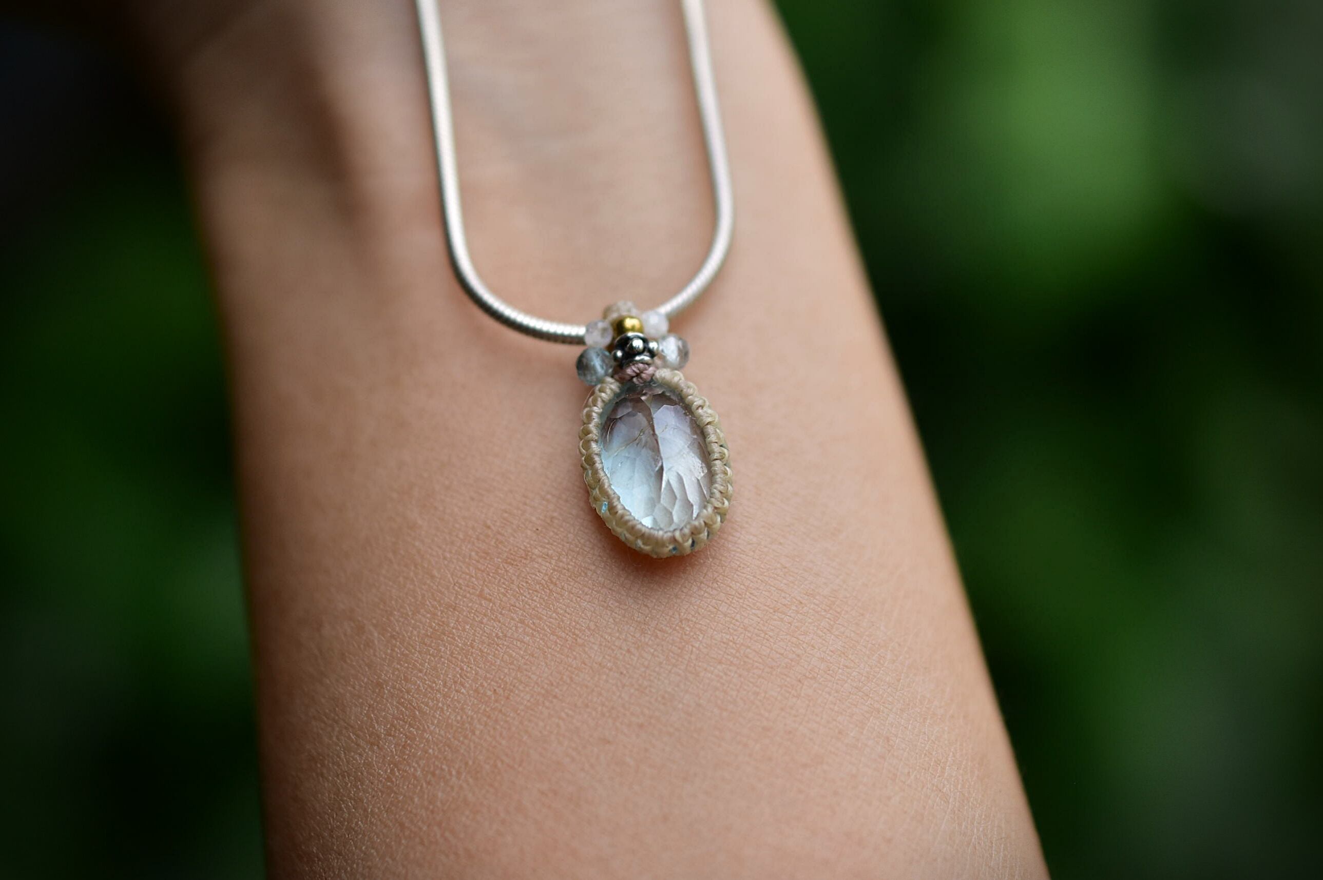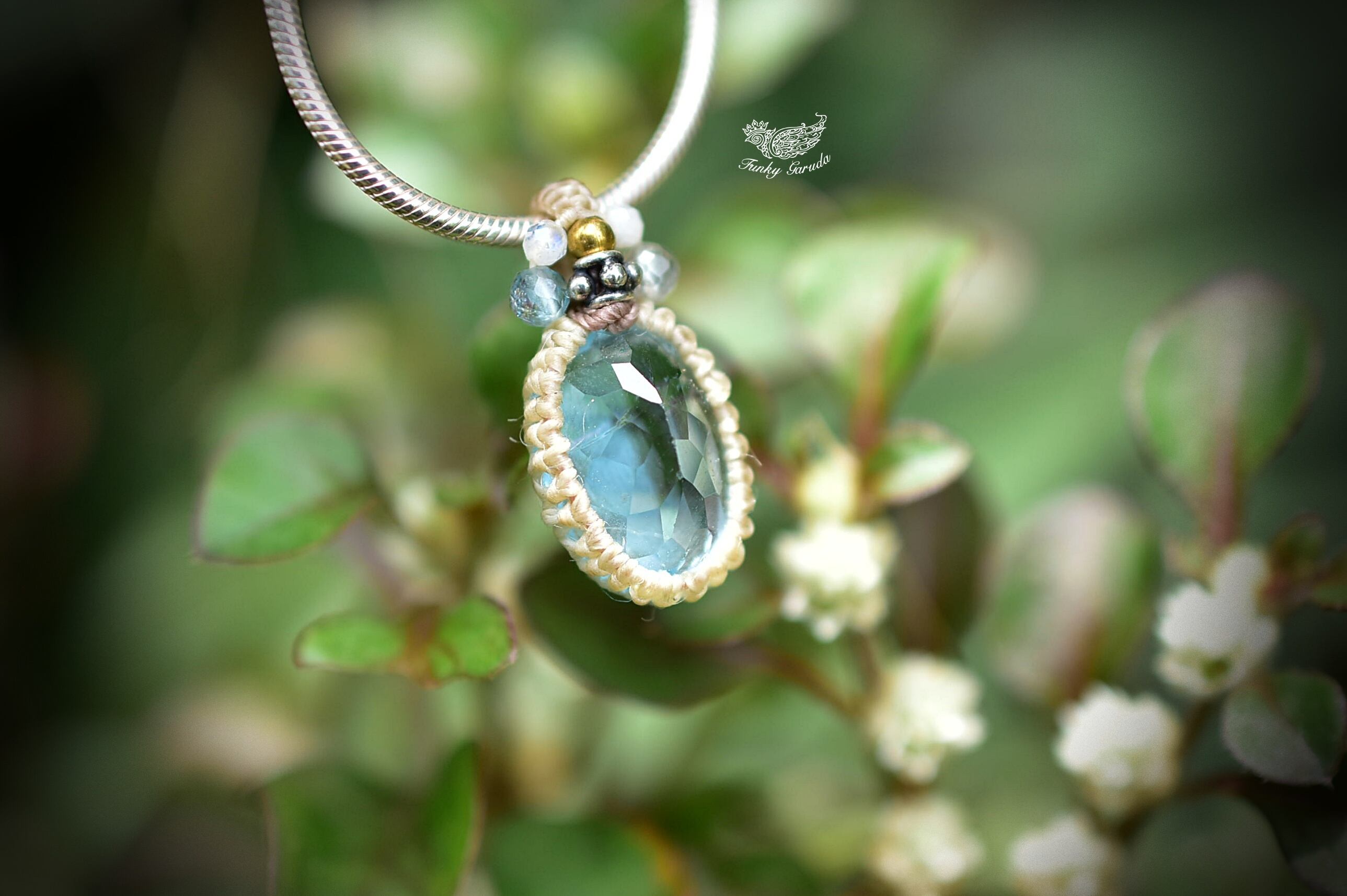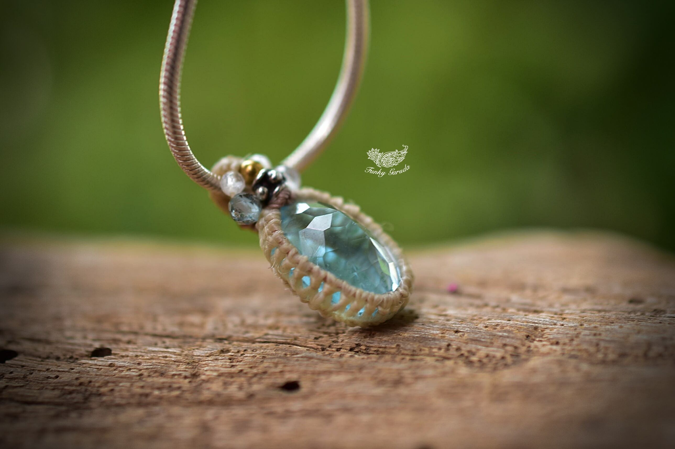 シルバーチェーン★ブルートパーズ マクラメペンダント608
