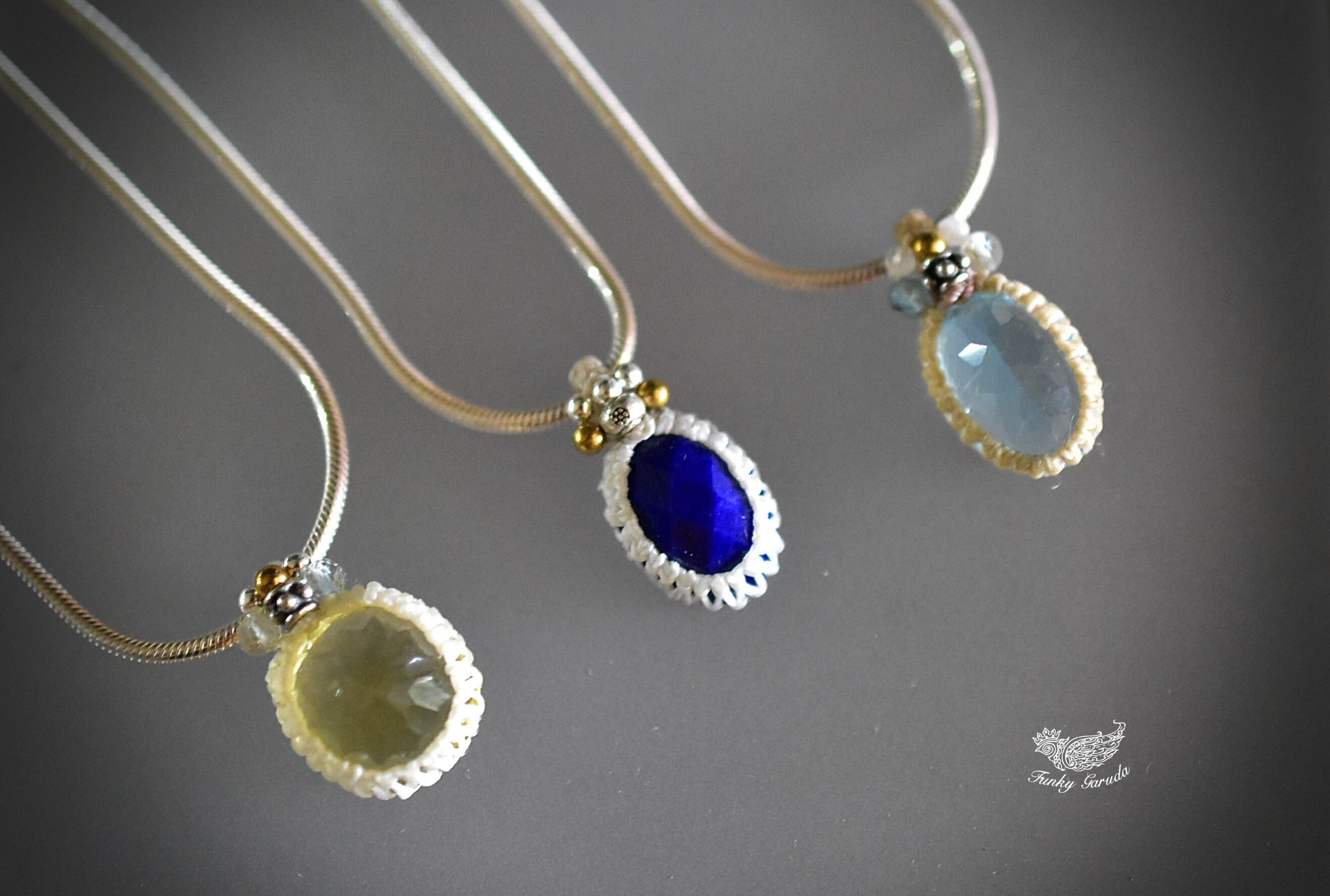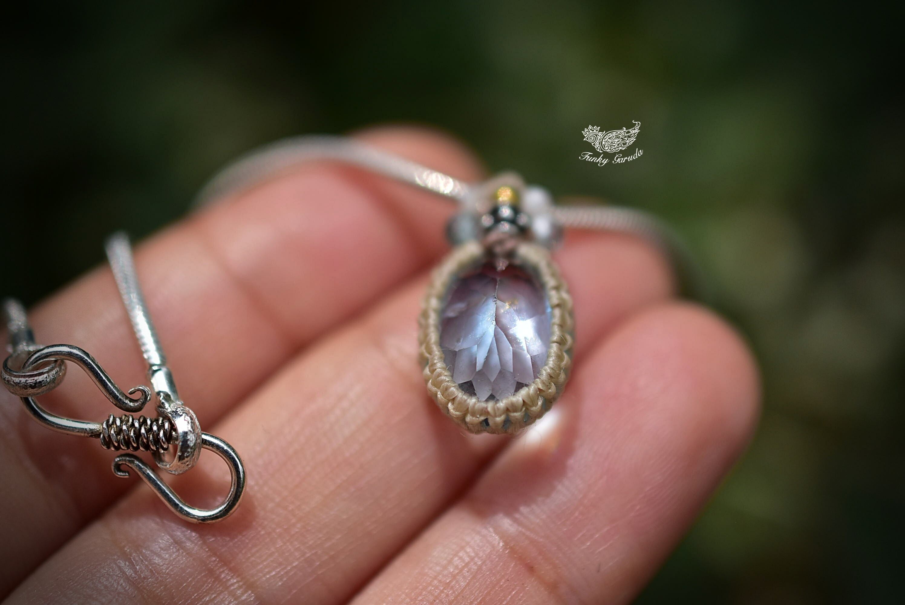 ◆ペンダントトップはホワイト色の蝋引き糸を使用し、囲みあみにてマクラメ編み装飾を施しております。