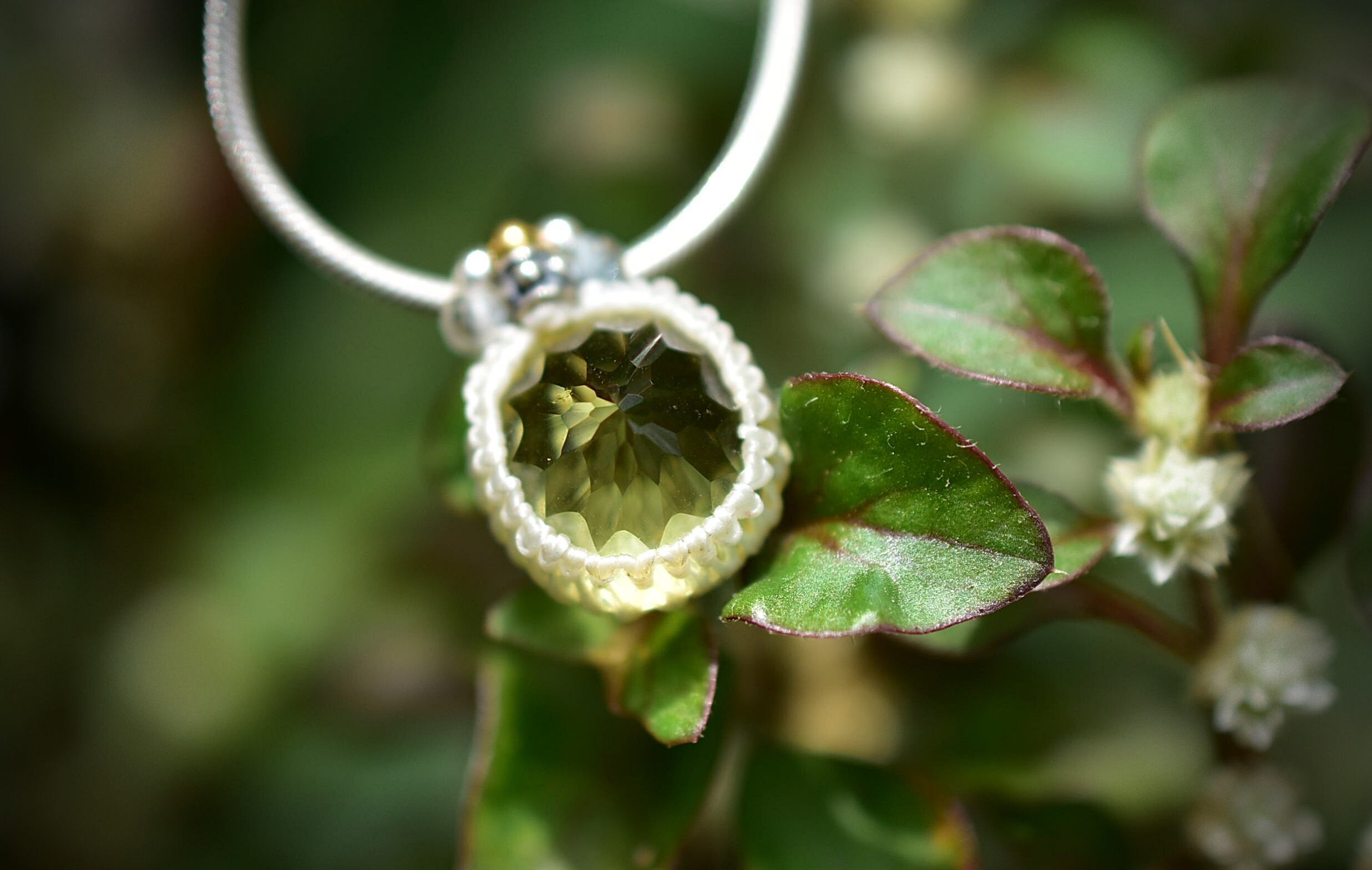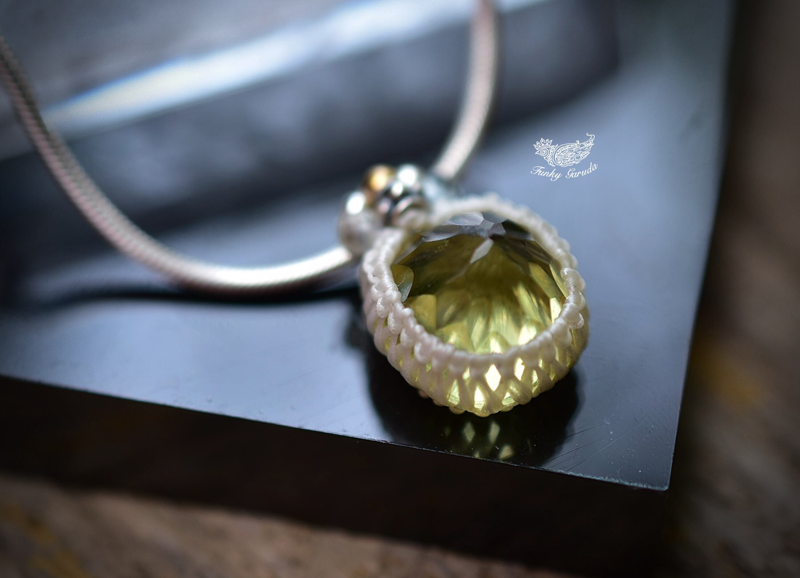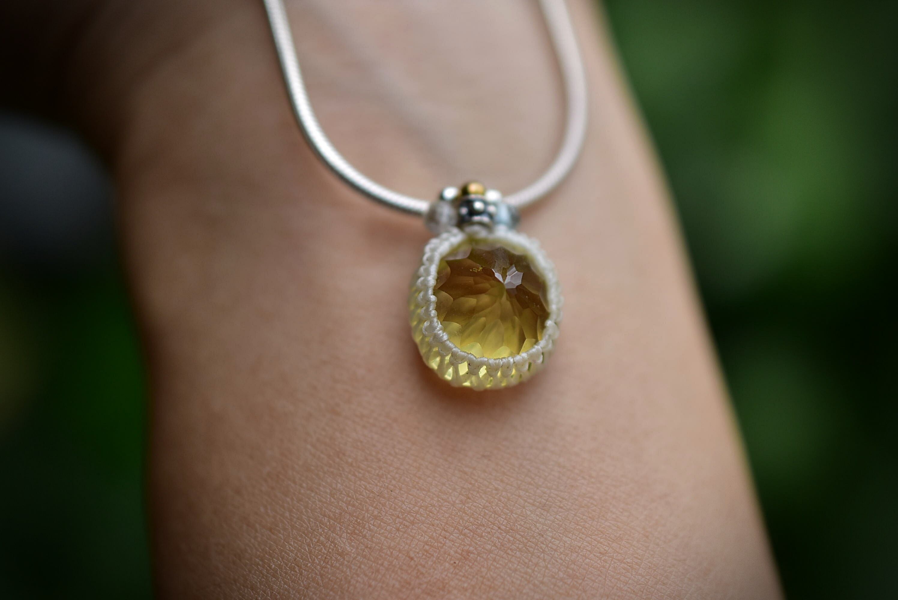 レモンクォーツをマクラメペンダントトップとして