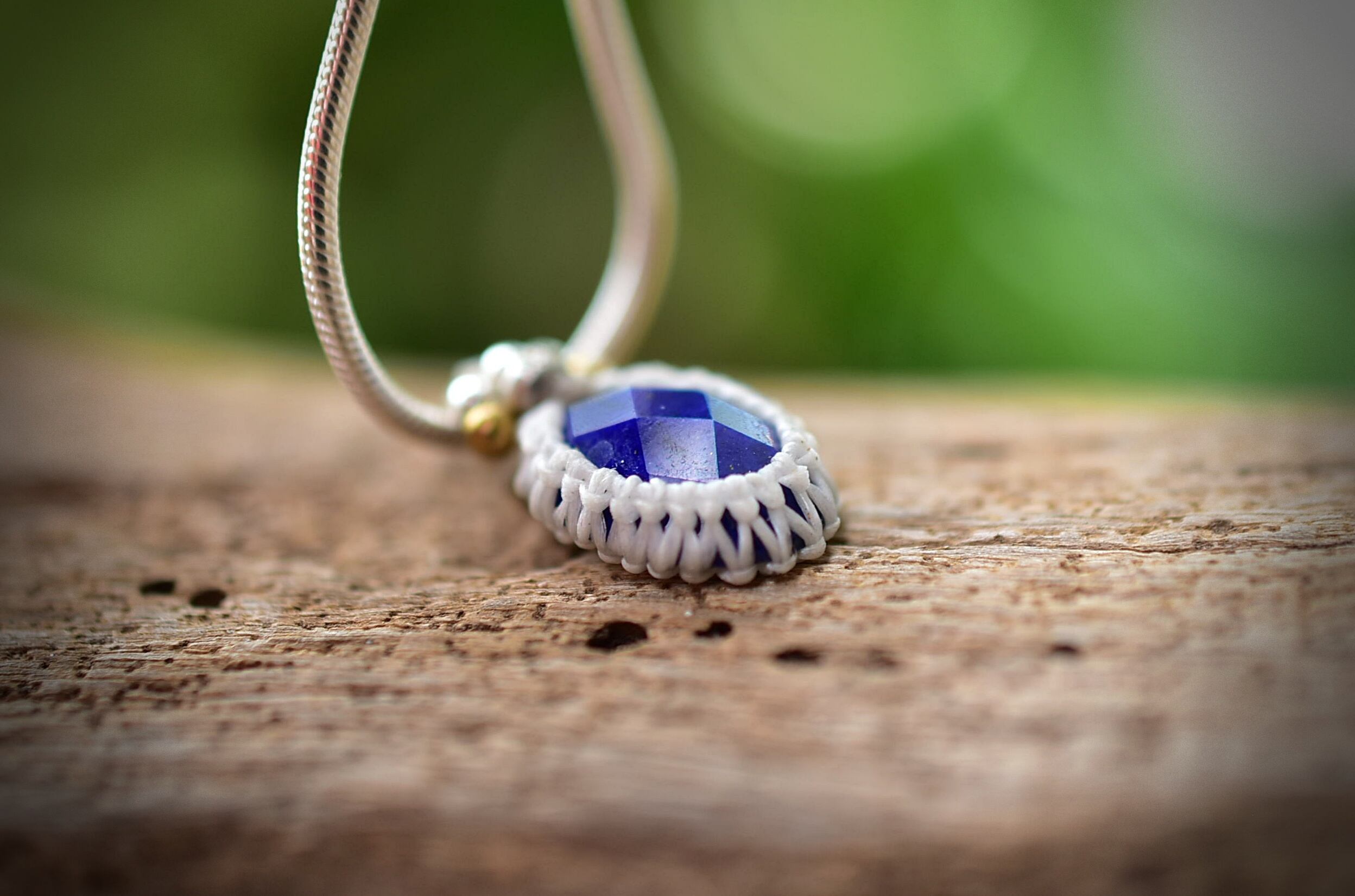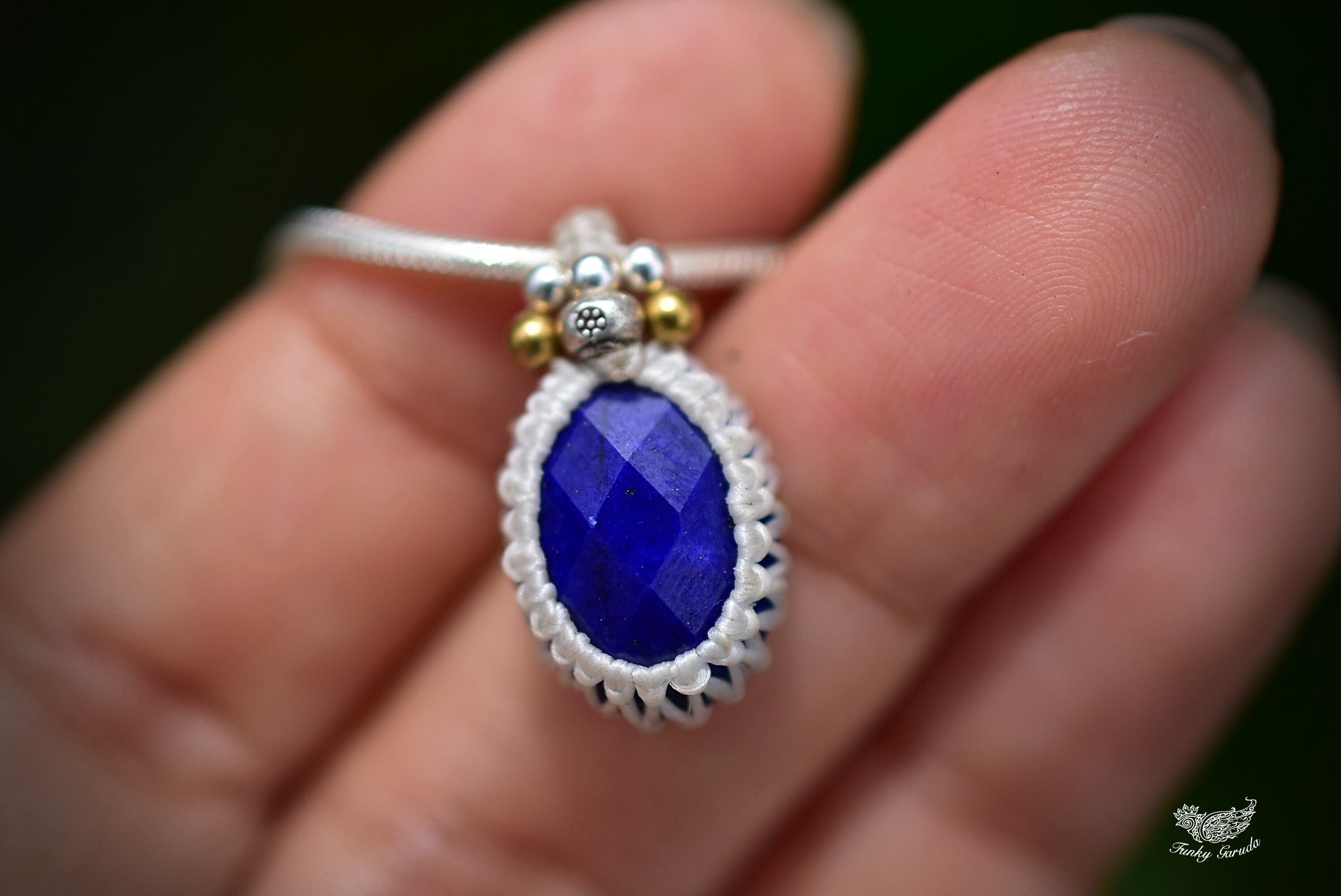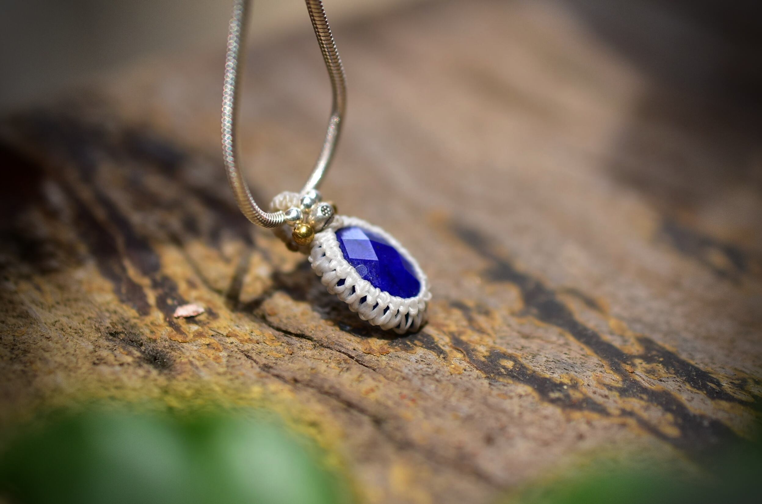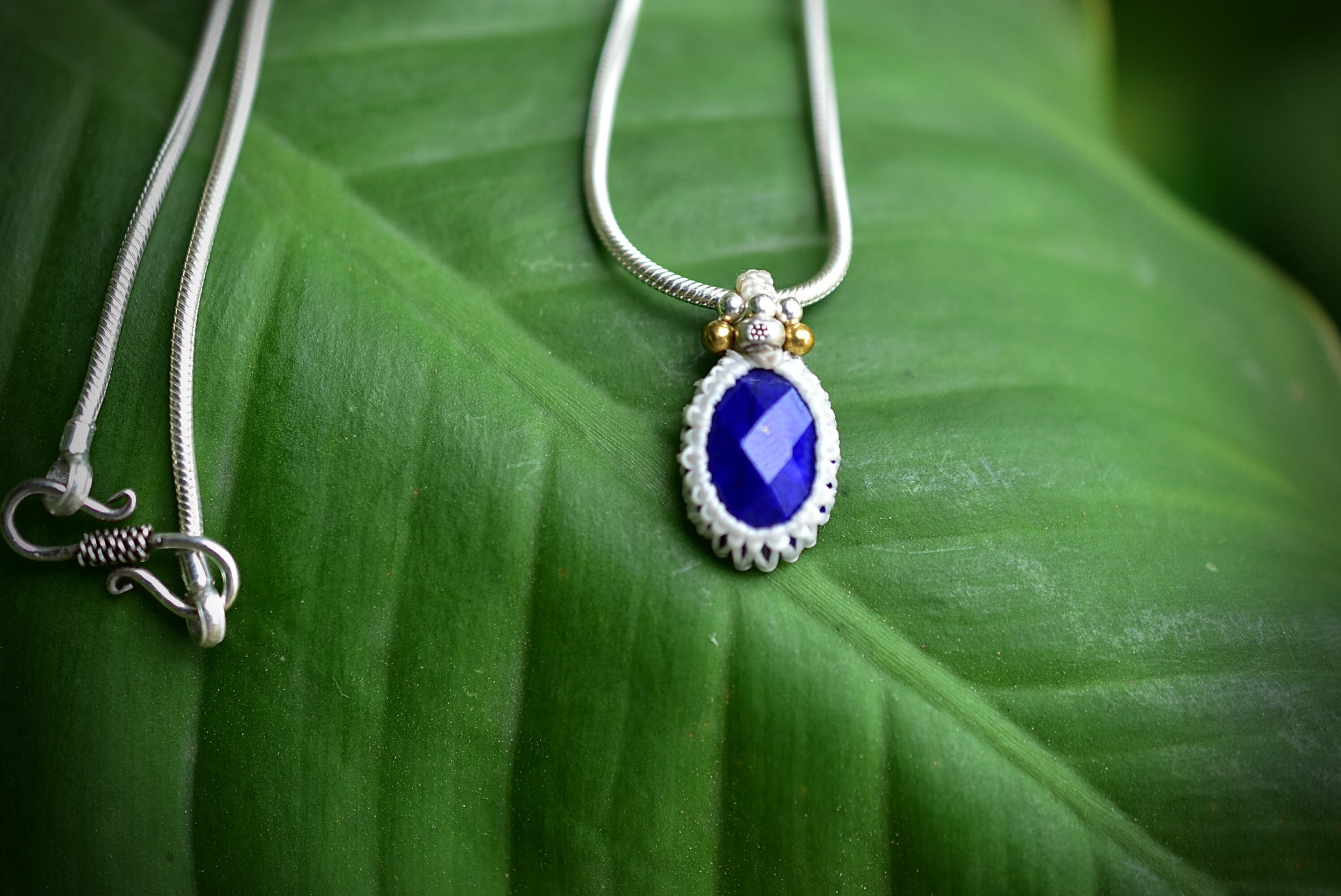シルバーチェーン★ラピスラズリ マクラメペンダント610
